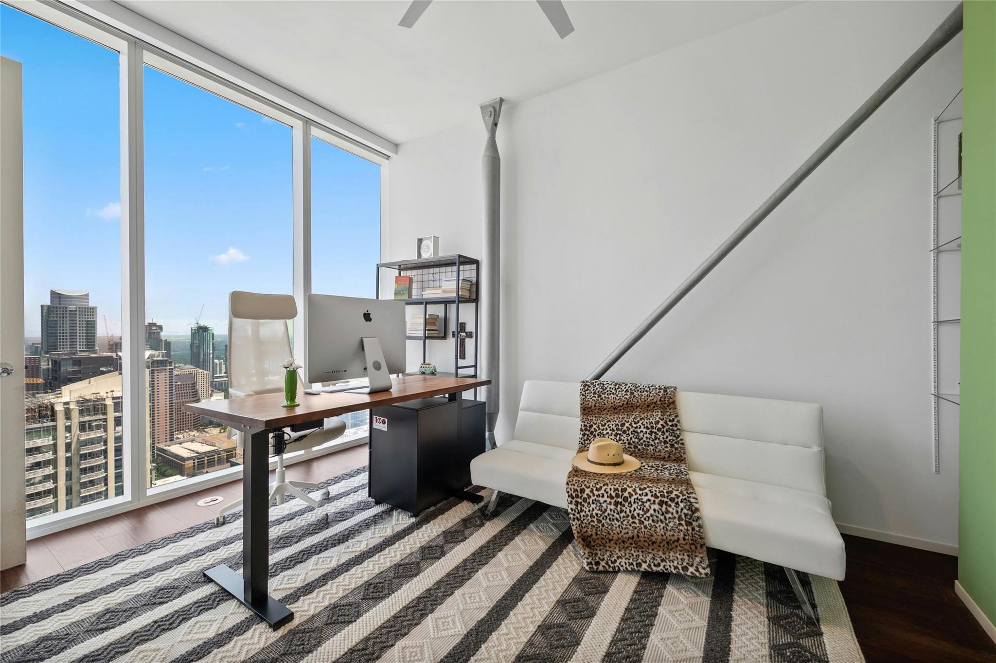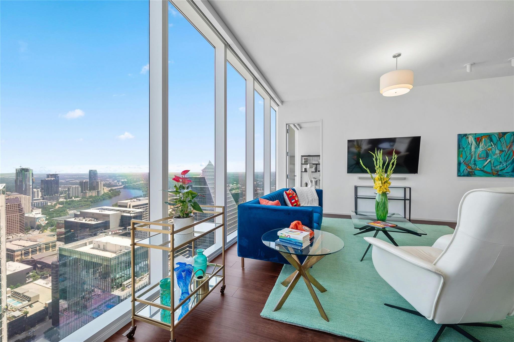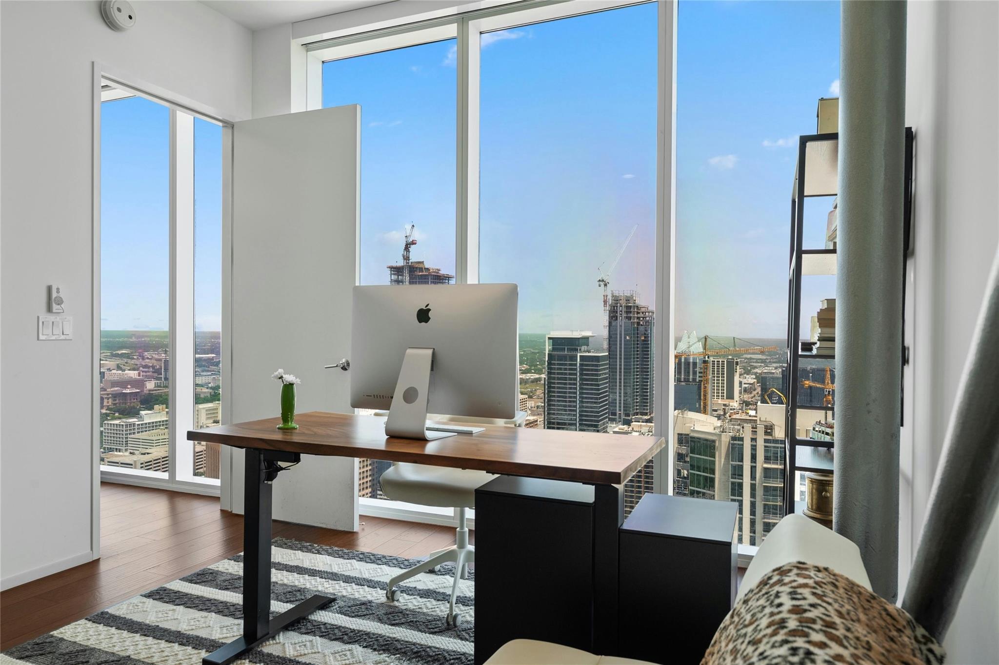 Welcome to the iconic Independent luxury tower! This rare 2 bedroom, 2 bath, plus study unit offers a lifestyle of unparalleled sophistication and breathtaking views from every room. Step inside to a seamless blend of contemporary design and impeccable craftmanship with floor to ceiling windows that allow the natural light to flood in. The kitchen offers top of the line Bosch appliances and an open concept to the living and dining area with spectacular views of The Capital and Lady Bird Lake. The master suite offers a large, luxurious ensuite with dual vanities, soaking tub and separate shower. Hardwood floors throughout, custom blinds, upgraded bathrooms and built out closets, this condo has it all! The building offers the complete package for those seeking unequalled premium utilities. Full time concierge and security, infinity pool, owner’s lounge, club house, dog park, guest suites, private movie theater and much more! Embrace the vibrant energy that downtown Austin offers. Walk to Lady Bird Lake trails or to the many restaurants and shops within blocks of your front door.