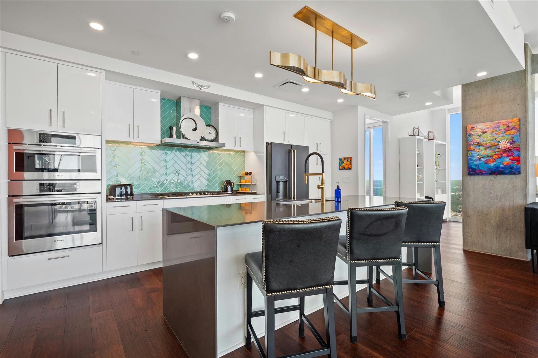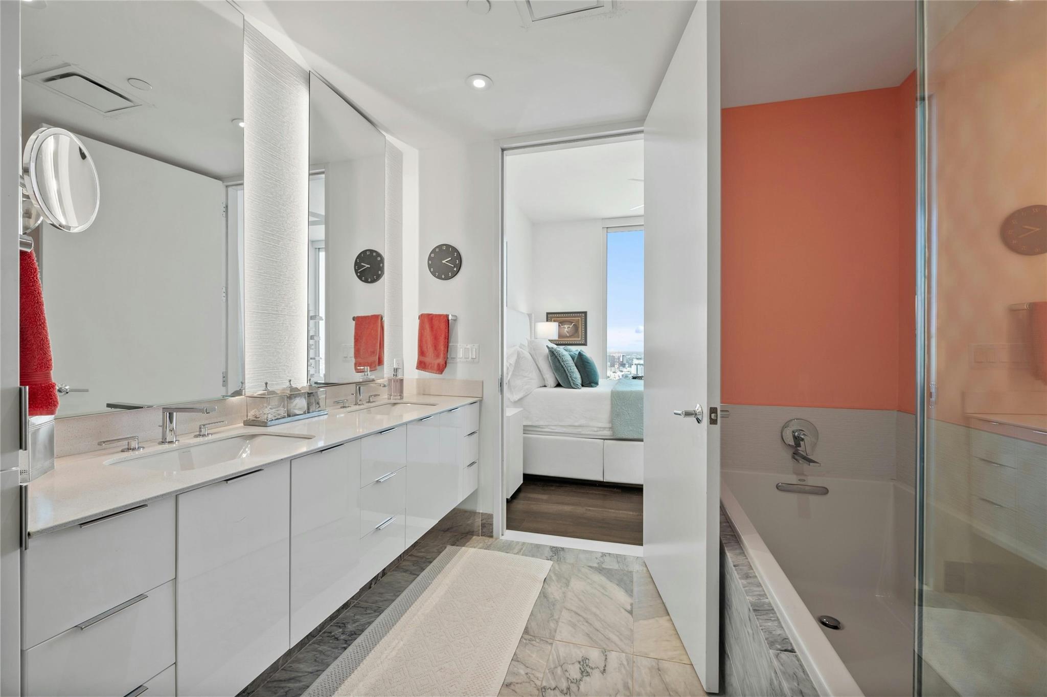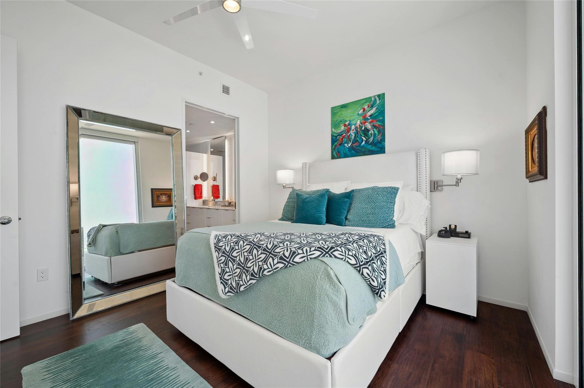 Welcome to the iconic Independent luxury tower! This rare 2 bedroom, 2 bath, plus study unit offers a lifestyle of unparalleled sophistication and breathtaking views from every room. Step inside to a seamless blend of contemporary design and impeccable craftmanship with floor to ceiling windows that allow the natural light to flood in. The kitchen offers top of the line Bosch appliances and an open concept to the living and dining area with spectacular views of The Capital and Lady Bird Lake. The master suite offers a large, luxurious ensuite with dual vanities, soaking tub and separate shower. Hardwood floors throughout, custom blinds, upgraded bathrooms and built out closets, this condo has it all! The building offers the complete package for those seeking unequalled premium utilities. Full time concierge and security, infinity pool, owner’s lounge, club house, dog park, guest suites, private movie theater and much more! Embrace the vibrant energy that downtown Austin offers. Walk to Lady Bird Lake trails or to the many restaurants and shops within blocks of your front door.