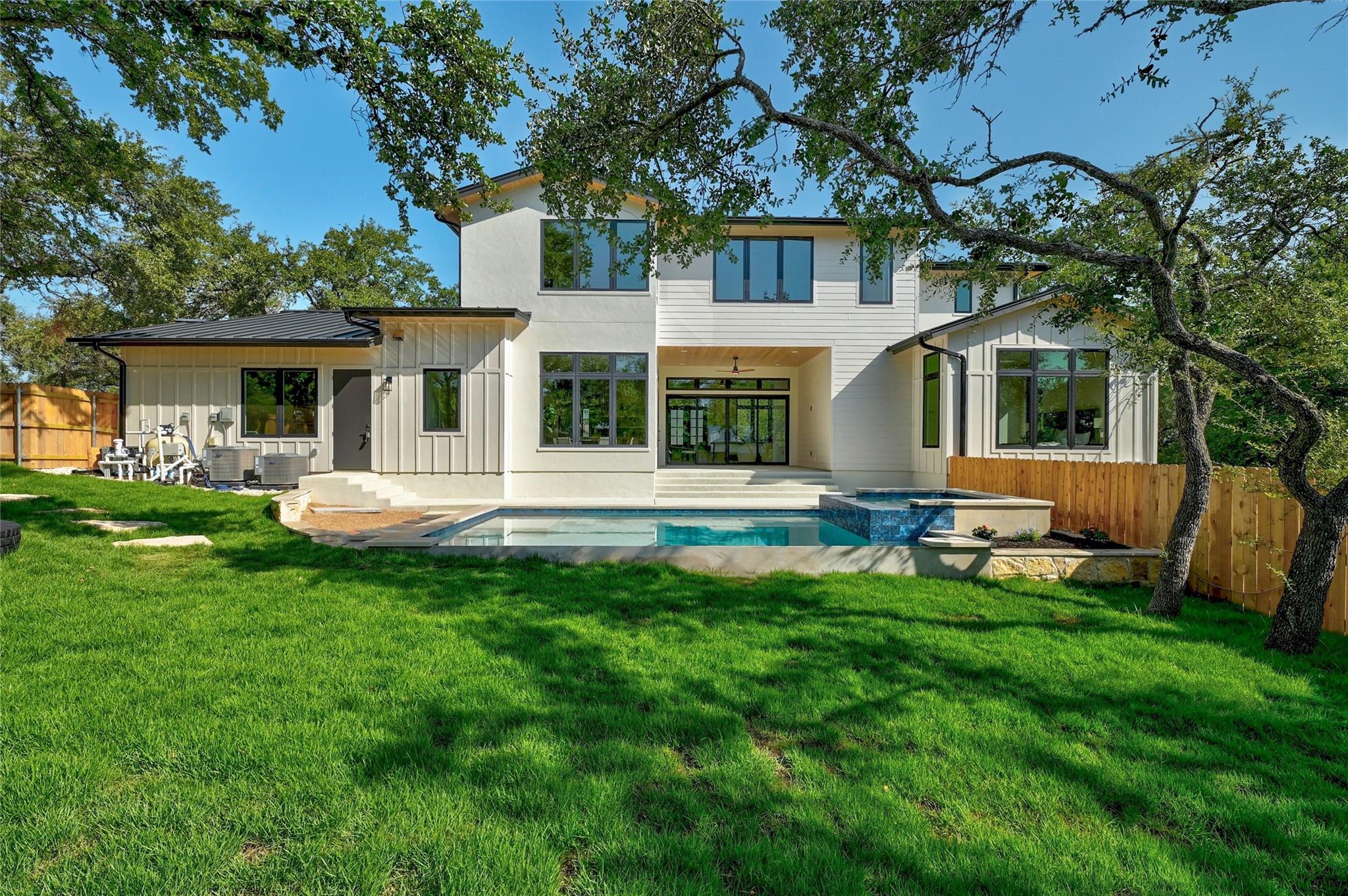 New construction with a pool in Eanes! Located on a .33 acre corner lot with 3491 sq ft of luxury, 1101 Village West offers modern sophistication and comfortable living. Located in the acclaimed Eanes ISD, it's an incredible opportunity for families seeking an exquisite residence with access to outstanding schools. Stepping inside, the open floor plan creates a seamless flow for entertaining and everyday living. The spacious living room features a fireplace, soaring ceilings, and abundant natural light. The gourmet kitchen is a culinary enthusiast's dream, with top-of-the-line appliances, oversized island, quartz countertops, and ample storage. In addition to the Bosch refrigerator, there are 2 additional undercounter refrigerators & ice-maker! The adjacent dining area opens to a covered patio overlooking the pool & backyard oasis, ideal for entertaining or enjoying quiet evenings poolside. This home boasts 4 generously sized bedrooms, each with its own ensuite bathroom. The primary suite on the first floor offers a spa-like retreat with dual vanities, a soaking tub, separate shower, and walk-in closet. There's also a dedicated office/study and a media/gameroom area upstairs. Indulge in outdoor living with the sparkling pool and soothing spa. The landscaped grounds provide ample space for recreation and enjoyment. With a 3-car garage, parking & storage is a breeze. You also have access to Lake Austin through the voluntary Lake Hills Community Association, which maintains a lakeside park, boat ramp & community pool. Additionally, the scenic 215-acre Commons Ford Ranch Metropolitan Park also offers Lake Austin access, hiking trails & picnic areas. Nearby amenities include HEB grocery stores, Whole Foods, and the Hill Country Galleria for shopping, dining & entertainment. 1101 Village West Dr is a remarkable home that epitomizes luxurious living in a sought-after neighborhood. Don't miss this opportunity to make it your own!