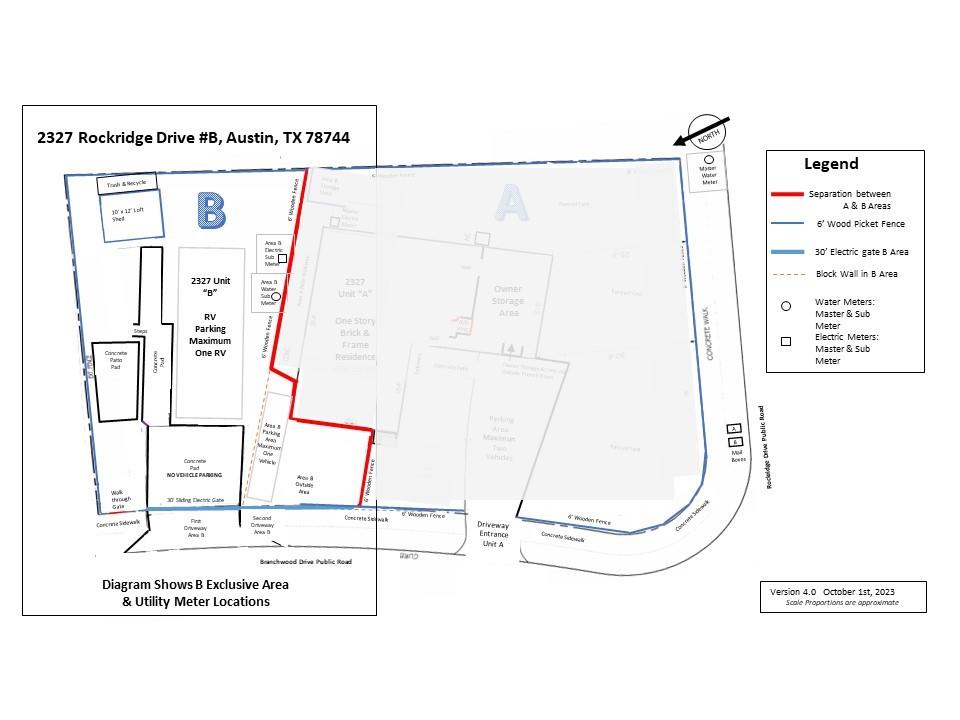 This is a private, fully fenced, separate 70' x 50' compound nestled in a residential neighborhood, Will suit a large RV. Convenient on street parking, separate mailbox etc. It has full RV hookup, an outside patio area and many other features including an air conditioned and heated 10' x 12' storage loft. Call agent for detailed description. Viewing by appointment only.
