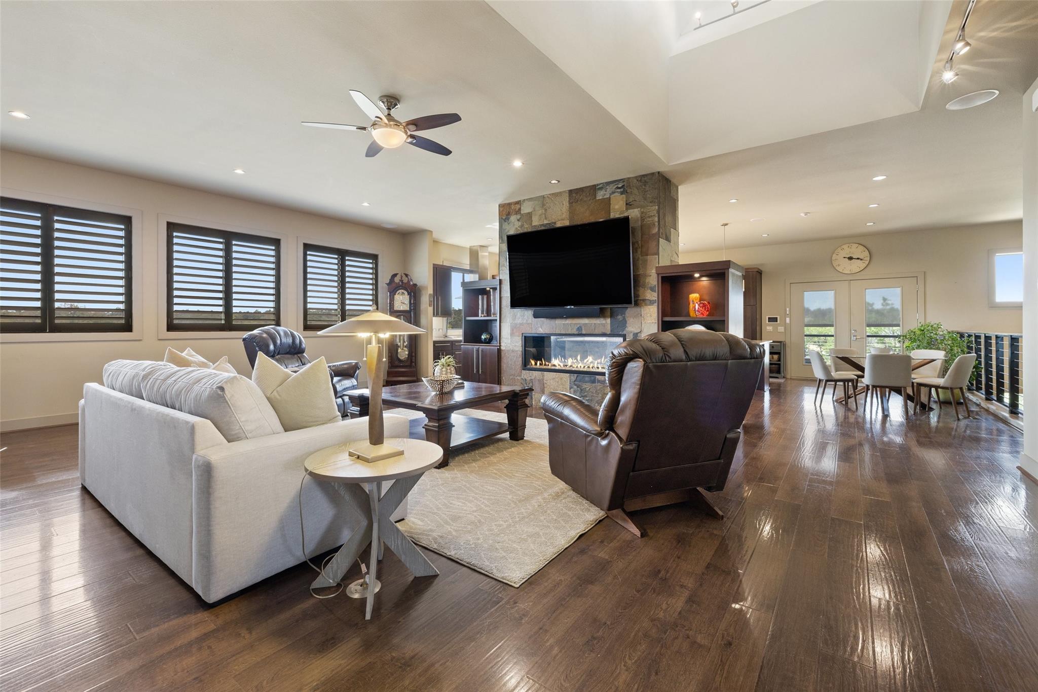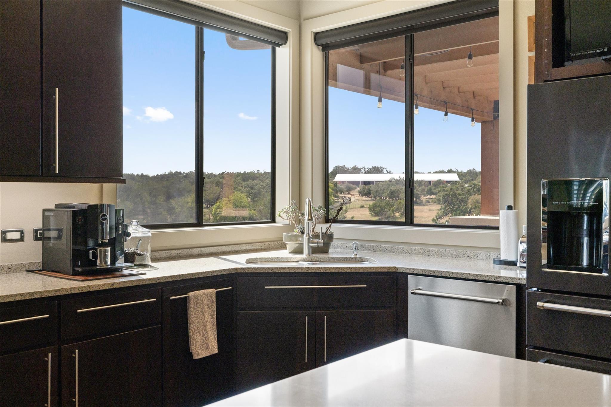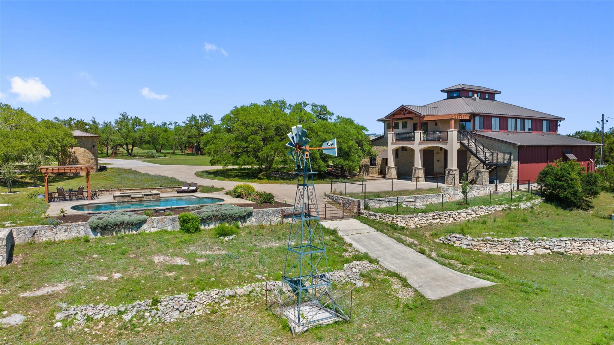 Welcome to Dragonfly Ranch, a hill country oasis with stunning views, green pastures, and the coveted hill country lifestyle. Beautifully nestled on 22.594 acres, this private retreat features over 4820' of living space, a 3183' drive thru garage barn able to accommodate 10+ cars, or service vans if you desire a live/work environment. The open floor plan seamlessly blends the indoor and outdoor together, creating serenity while, working, entertaining or relaxing and enjoying endless sunsets. The property includes a two bed guest house, pool & spa, horse and equipment barns, a geothermal heating and cooling system, a 30,000 rainwater collection system, water well, fully fenced, and much more for those who prefer practical luxury in this Lifestyle Ranch. Come experience the tranquility of the countryside and seize the opportunity to live your dream life at Dragonfly Ranch.