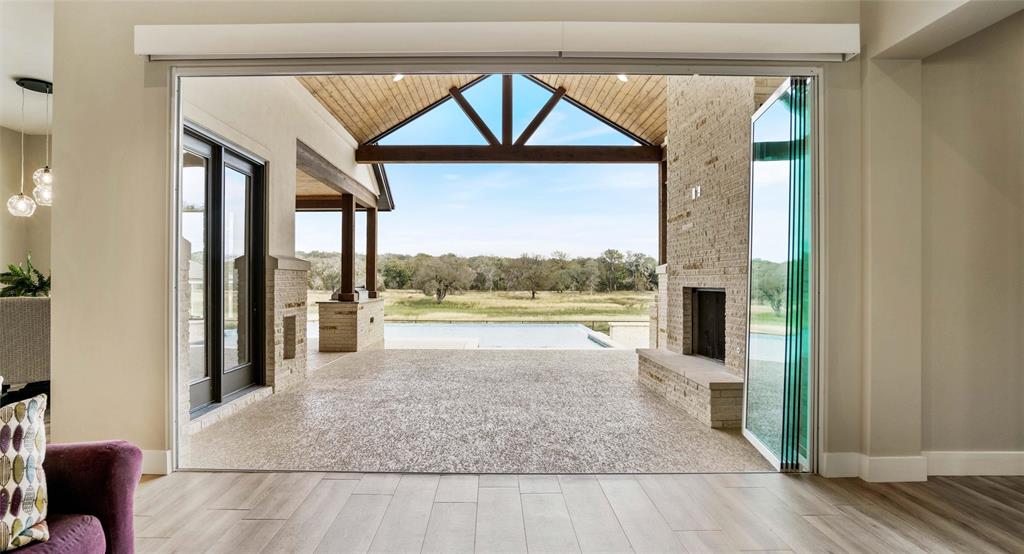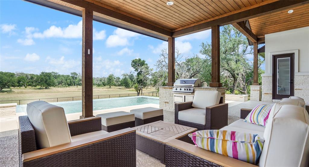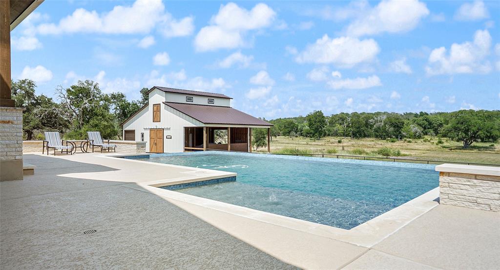 Experience modern farmhouse living at its finest on this remarkable 14.1-acre property in the prestigious gated community, Stone Gate on the Waters, near Austin. This 2021-built home blends contemporary elegance with rural charm, offering luxurious living and serene natural surroundings. Inside, abundant natural light fills the open living spaces, creating an inviting atmosphere. The living room features foldable glass doors leading to a stunning negative edge pool, and outdoor fireplace on the covered patio. Perfect for relaxation and entertainment. The home's well-planned layout ensures each bedroom is a private oasis, all en suite. The primary suite, with an exercise studio, provides privacy and comfort and has exquisite views. A private study offers a dedicated workspace. Wood look tile flooring enhances elegance throughout the first floor. Situated on 14.1 acres backing to the San Gabriel River, this property offers a picturesque backdrop and wildlife habitat. A fully-equipped barn suits equestrian or storage needs. A three-car garage with a Tesla charger ensures convenience. The property relies on well water, purified through a state-of-the-art system. Energy-efficient with whole-house foam insulation. Landscape lighting, irrigation system, and electrical transfer switch enhance convenience and security. This modern farmhouse offers a haven of comfort, luxury, and natural beauty. It's a unique opportunity to embrace a sophisticated rural lifestyle within a gated community. Whether by the infinity pool, river, or outdoor fireplace, it's a reminder of modernity and nature's coexistence. Don't miss this chance to own the epitome of modern farmhouse living. Ag Exempt, Horses and livestock allowed.