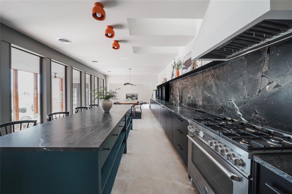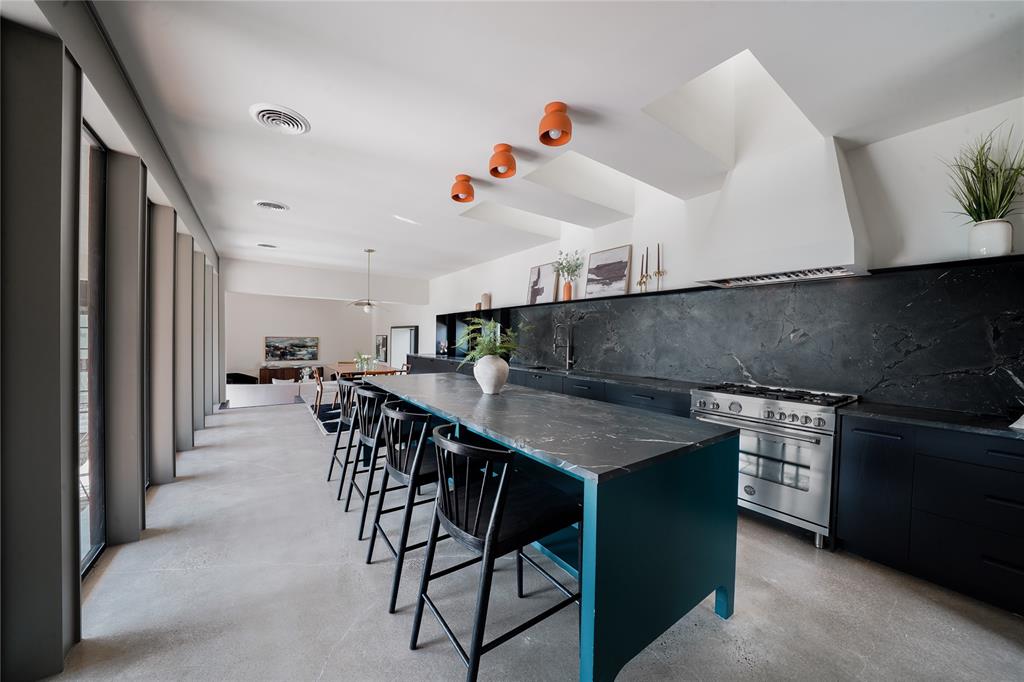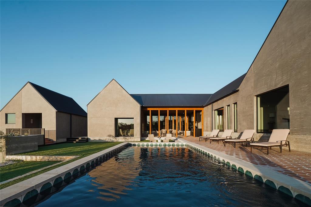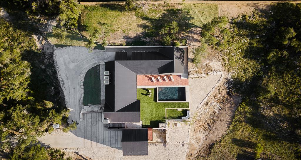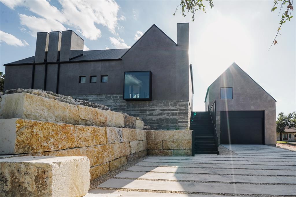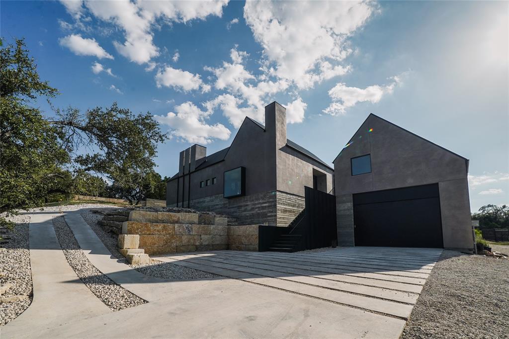 Welcome to the pinnacle of modern living. Thoughtfully designed by North Arrow Studio and flawlessly executed by an incredible trifecta of builders: Canedo Builders, Bravo Petro Homes, and North Arrow Studio. This newly completed masterpiece at 203 N Canyonwood Drive sits on nearly 1.5 acres and sets the standard for luxury hill country homes. Prepare to be captivated by its sleek lines, high-end finishes, and attention to detail. Step inside through the custom glass and metal single-pivot door and be greeted by several carefully framed views of the gorgeous exterior landscape. Hand-selected Saltillo Clay Imports tile flows throughout the main living room area and extends directly outside to the covered patio. This home has custom hidden LED lighting in each room creating seamless and clean ceilings. The heart of this home is the chef-inspired kitchen, featuring exquisite granite countertops that blend beauty and functionality. Gorgeous accent windows and skylights above the 6 burner gas range allow ample light and playful shadows throughout the day. Centaurus granite countertops in the bathrooms and laundry areas exude elegance and sophistication. Immerse yourself in culinary delights while embracing the open-concept living space, or take the gathering outside to the covered porch with an outdoor kitchen. The main house consists of 2 en suite bedrooms with vaulted ceilings and stunning custom-selected bathroom fixtures. The tadelakt shower walls create a Marfa-inspired setting that ties into the rest of the home. The powder bathroom, made perfect for your visiting guests, is just around the corner from the kitchen. A total of 2,160 sqft in the main house and a delightful and convenient 320 sqft studio w/ 1 full bath above the 2 car garage. Embrace the vibrant spirit of Dripping Springs and all it has to offer.