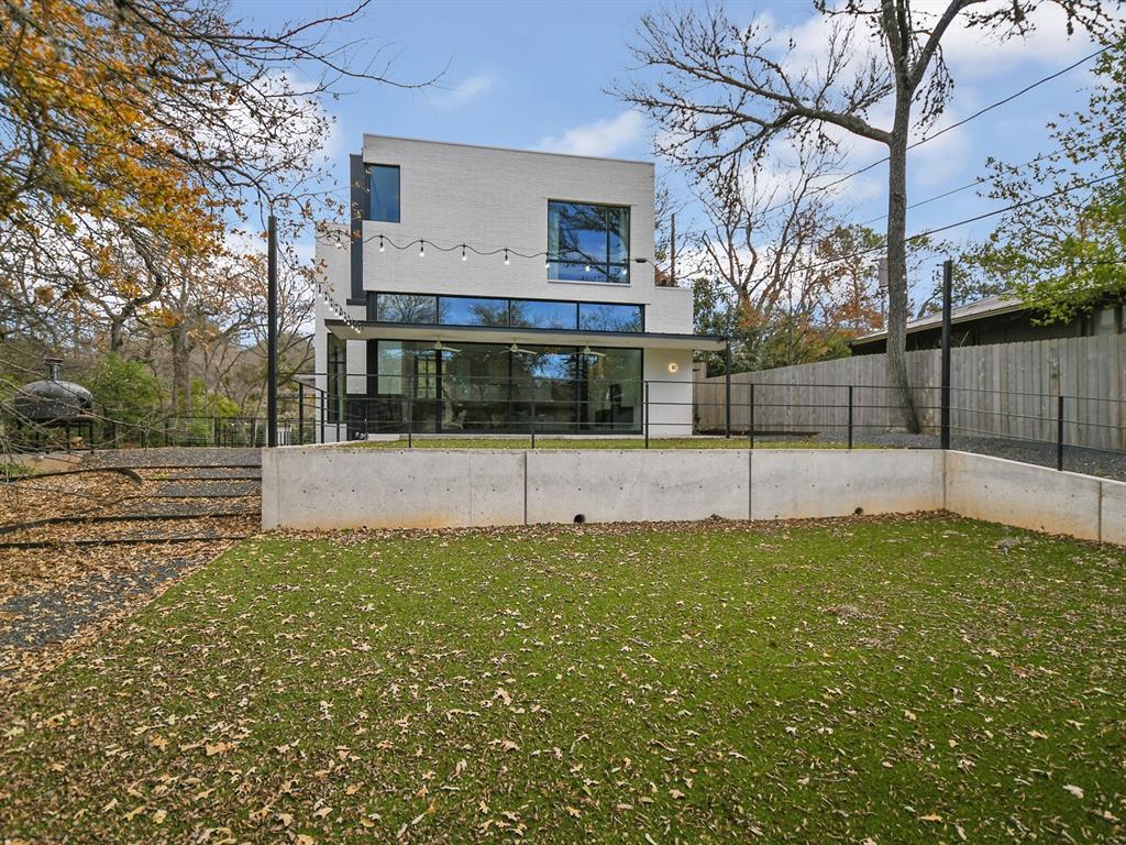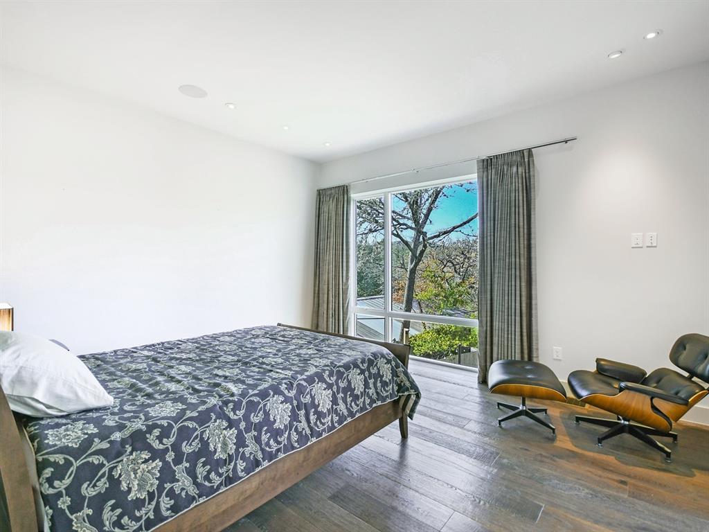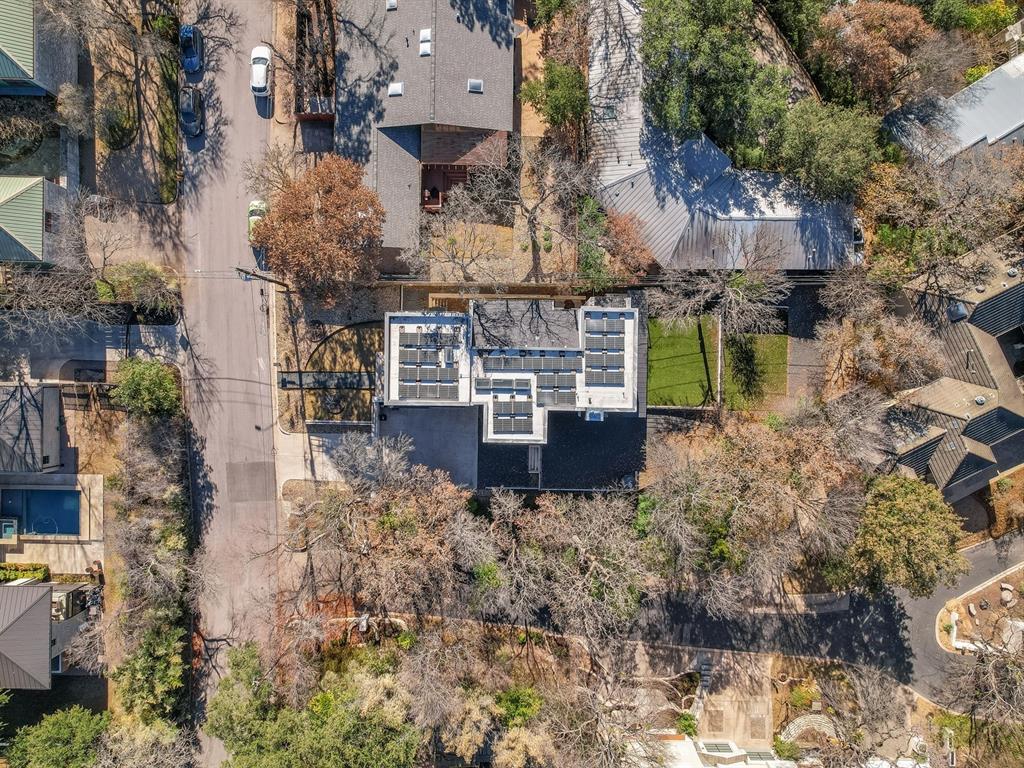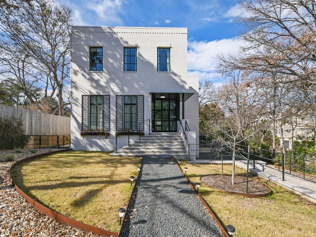 Hugh Randolph home in the heart of Tarrytown. Natural light abounds from custom walls of glass overlooking the serene outdoor living space with Forno Bravo oven and outdoor fireplace, perfect for entertaining or relaxing at home. Fourteen foot ceilings create soaring entrances throughout the home, paired with exposed brick walls, DuChateau flooring and glass staircase topped with skylight. Primary bedroom on the second floor features spa-like bath with separate tub and shower, dual vanity and large picturesque window revealing beautiful surrounding trees. Easy access to the home office also located on the second level. The third bedroom on the main level with full bathroom is well suited for guests. Loads of added features include Solar Panels, On Demand Hot Water, Noon Home, Ann Sachs Tile, Hudson Valley Lighting, August Home Locks, and outdoor bathroom with pool plans available. This highly sought-after Tarrytown location offers ease of walkability to Lake Austin, Mozart’s, Hula Hut, shopping and schools.