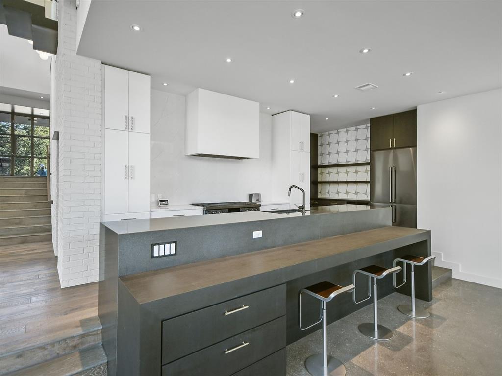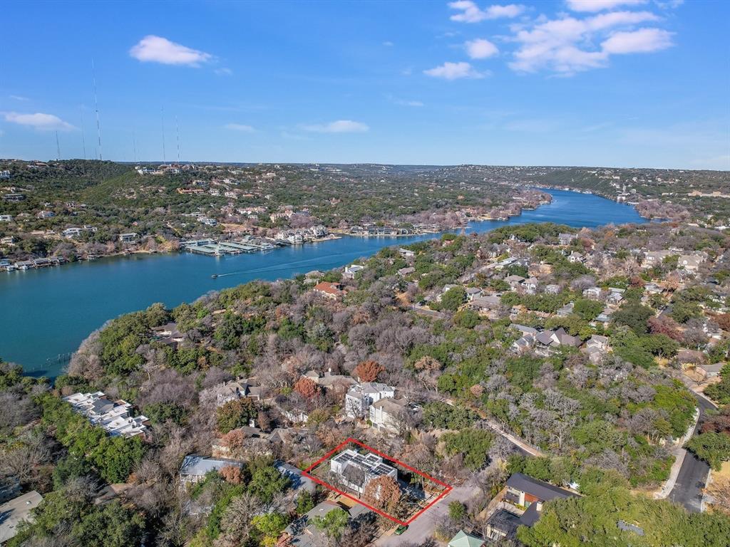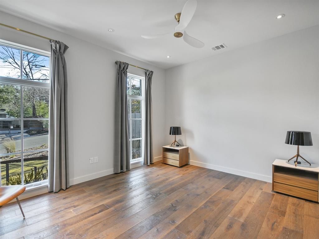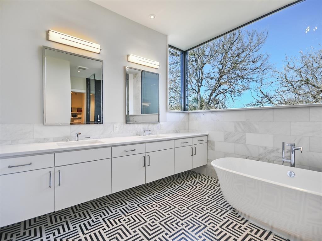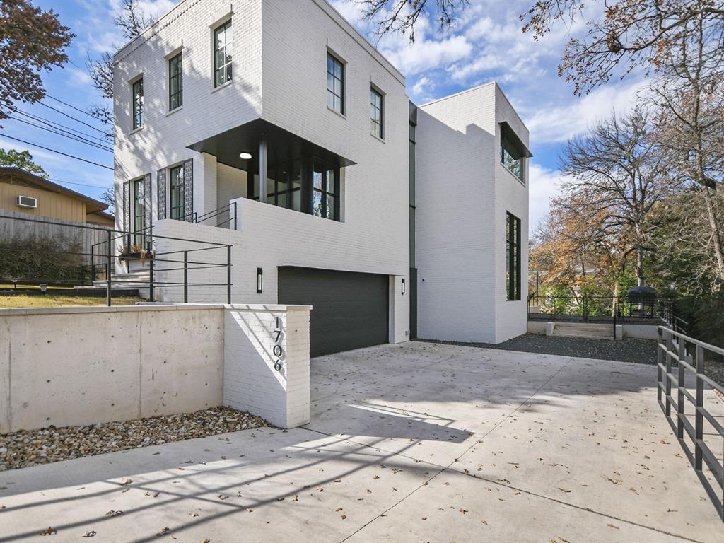 Hugh Randolph home in the heart of Tarrytown. Natural light abounds from custom walls of glass overlooking the serene outdoor living space with Forno Bravo oven and outdoor fireplace, perfect for entertaining or relaxing at home. Fourteen foot ceilings create soaring entrances throughout the home, paired with exposed brick walls, DuChateau flooring and glass staircase topped with skylight. Primary bedroom on the second floor features spa-like bath with separate tub and shower, dual vanity and large picturesque window revealing beautiful surrounding trees. Easy access to the home office also located on the second level. The third bedroom on the main level with full bathroom is well suited for guests. Loads of added features include Solar Panels, On Demand Hot Water, Noon Home, Ann Sachs Tile, Hudson Valley Lighting, August Home Locks, and outdoor bathroom with pool plans available. This highly sought-after Tarrytown location offers ease of walkability to Lake Austin, Mozart’s, Hula Hut, shopping and schools.
