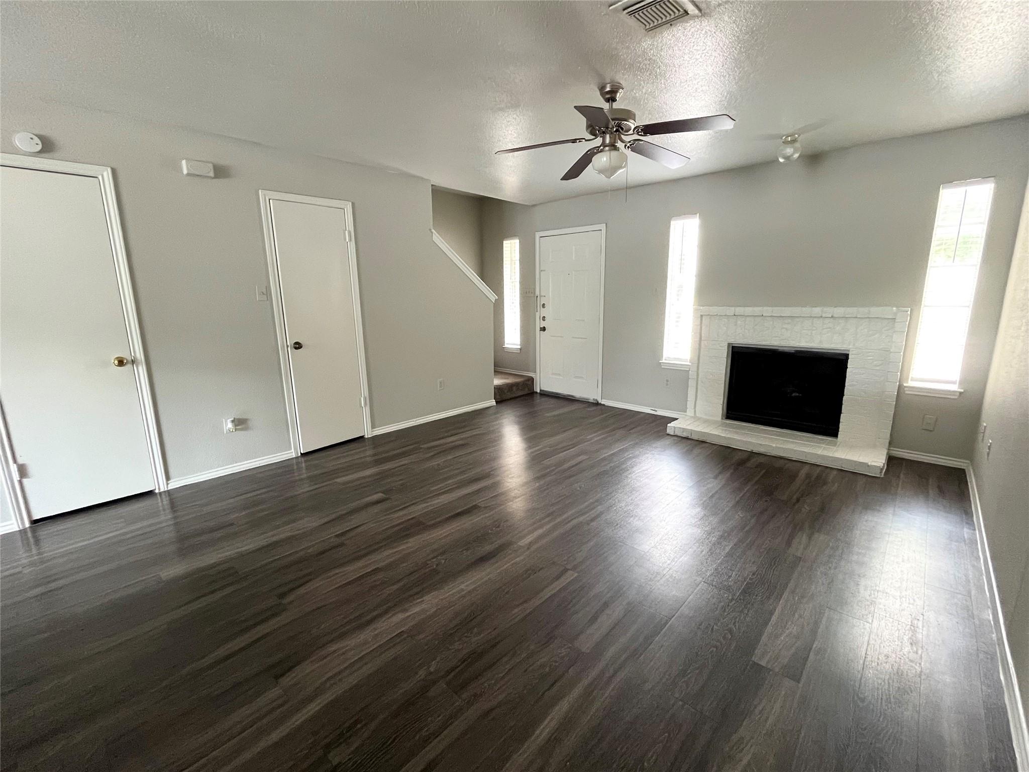 Spacious condo close to downtown. Bedrooms are located on the second floor and each have a full bath and balcony. Living room has a fireplace and kitchen includes an electric range, refrigerator and dishwasher. Full sized washer and dryer included. Backyard area is fully fenced. Community has a pool and sand volleyball court. Quick access to bus stop.