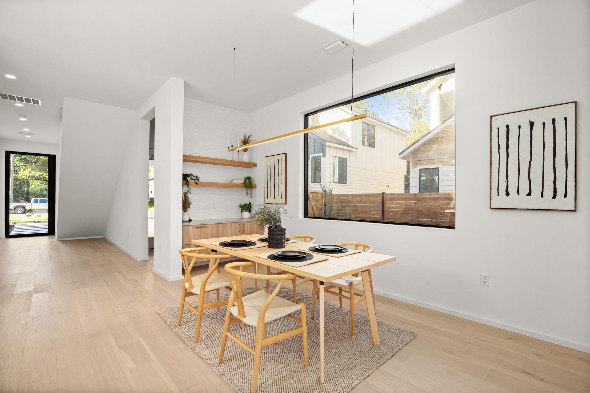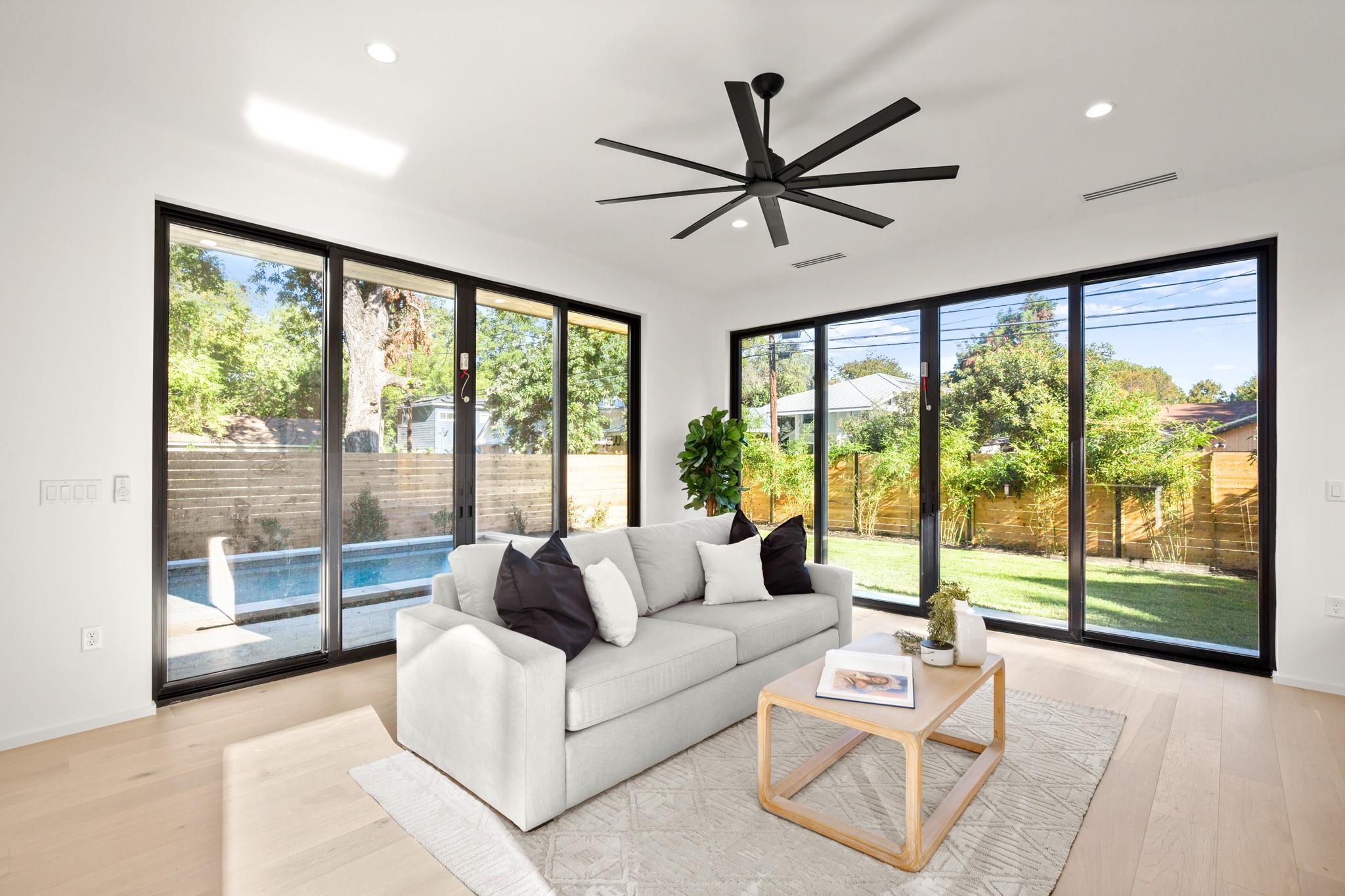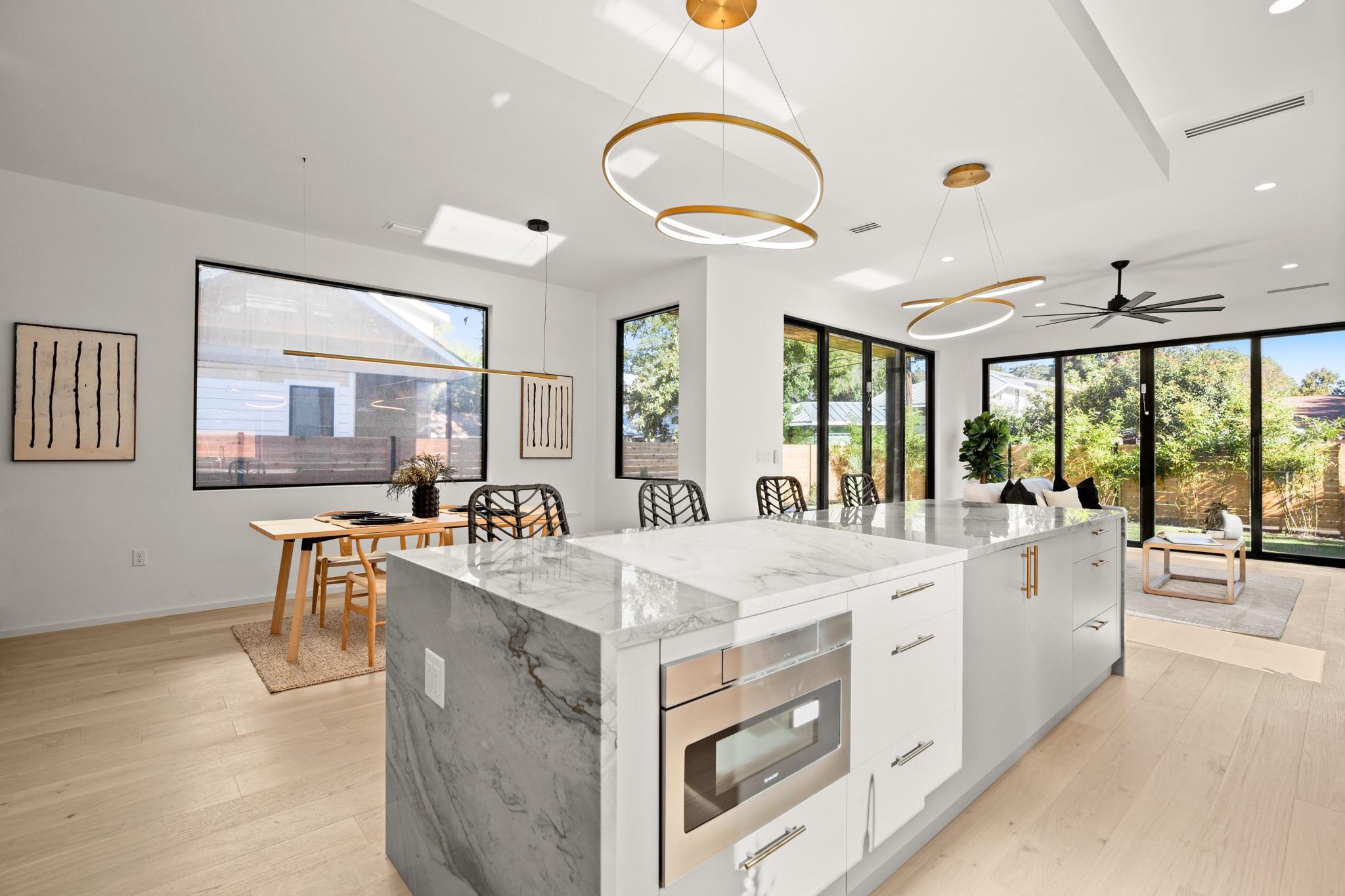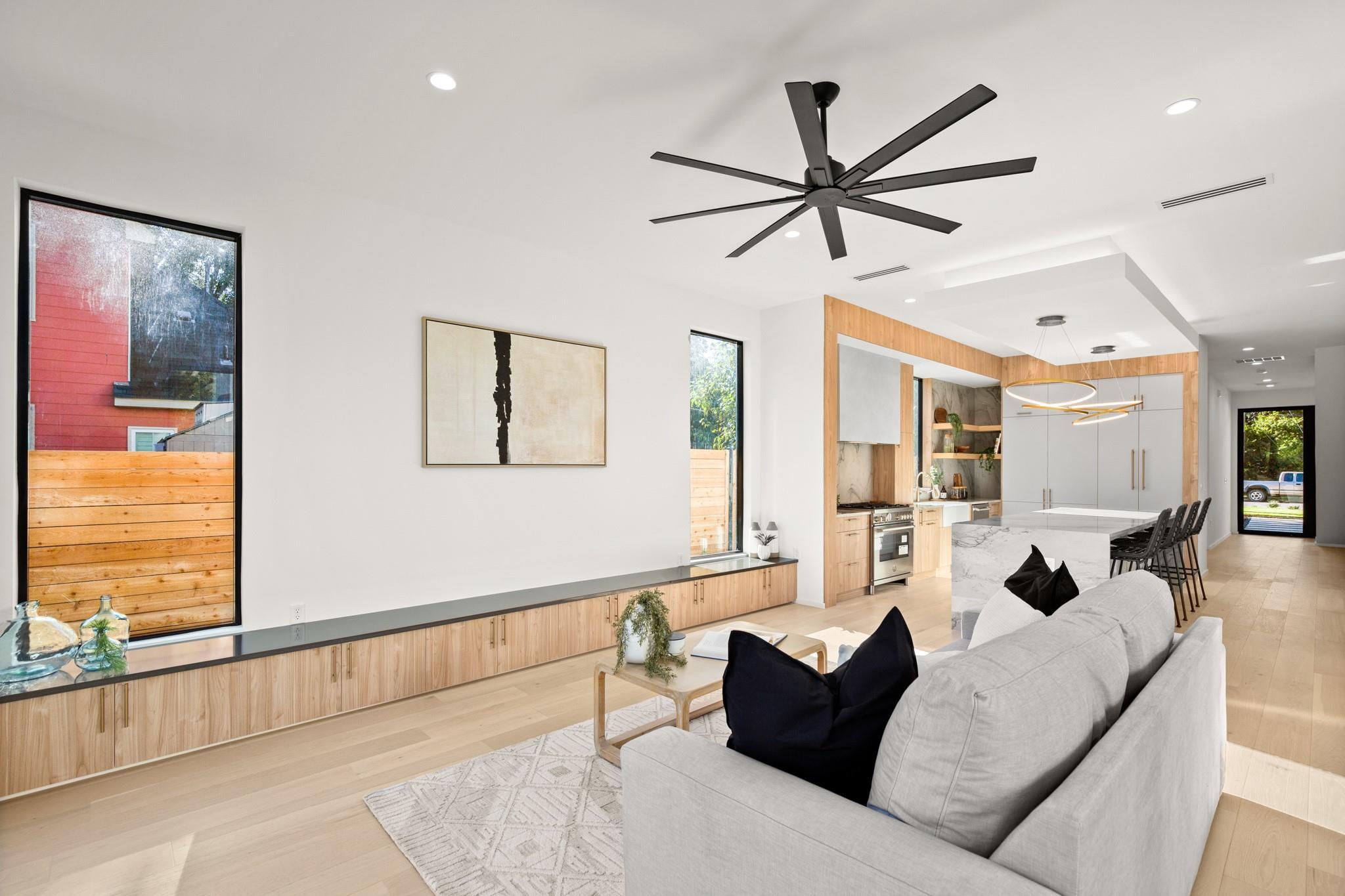 Impeccable modern architecture located in the highly walkable Holly neighborhood in the heart of 78702! Masterfully built by McCarley Construction this home embodies both functionality and effortless design. Sleek contemporary lines mixed with warm, natural elements invite you in with an abundance of natural light during the day and a cool, entertainers’ atmosphere at night. This well thought out and strategically designed open floor plan is perfect for hosting and entertaining. Enjoy indoor/outdoor living year-round with massive floor to ceiling sliding glass doors, private fenced front and back yard with a stunning private pool. The exquisite kitchen features a jaw dropping waterfall island with quartz countertops, state-of-the-art stainless steel appliances package and sophisticated custom cabinetry. Allow yourself to indulge in luxury and relaxation in the spacious primary suite and gorgeous spa like primary bathroom. Carefully curated tile and fixture selections throughout the home truly make for an impressive place of residence. This home is in one of Austin’s most coveted and convenient zip codes, with walkability to multiple different shopping districts, restaurants, coffee shops and more. Easy access to I- 35, and literally just minutes to everything East Austin has to offer. Unmatched location, unbeatable design.