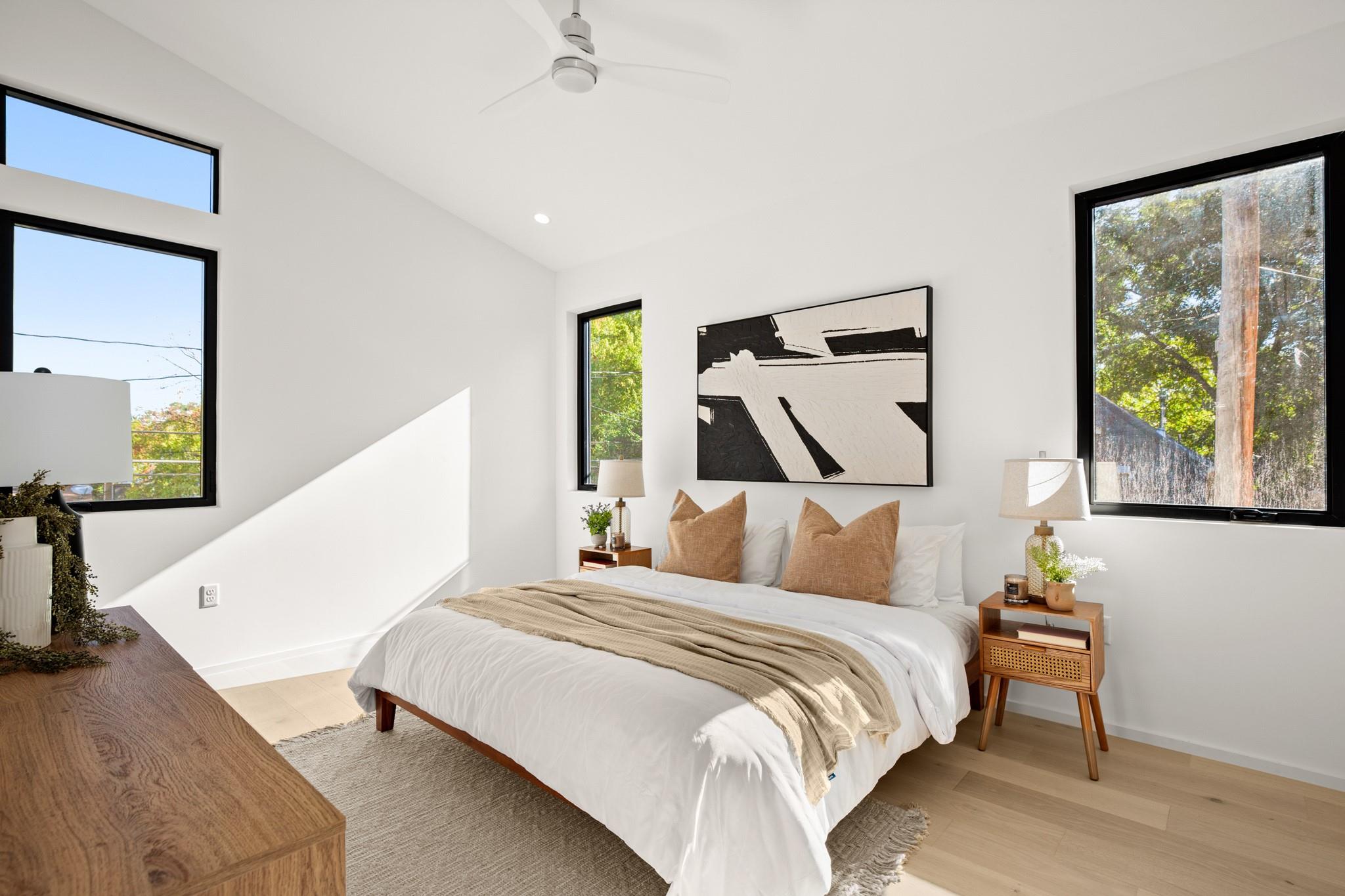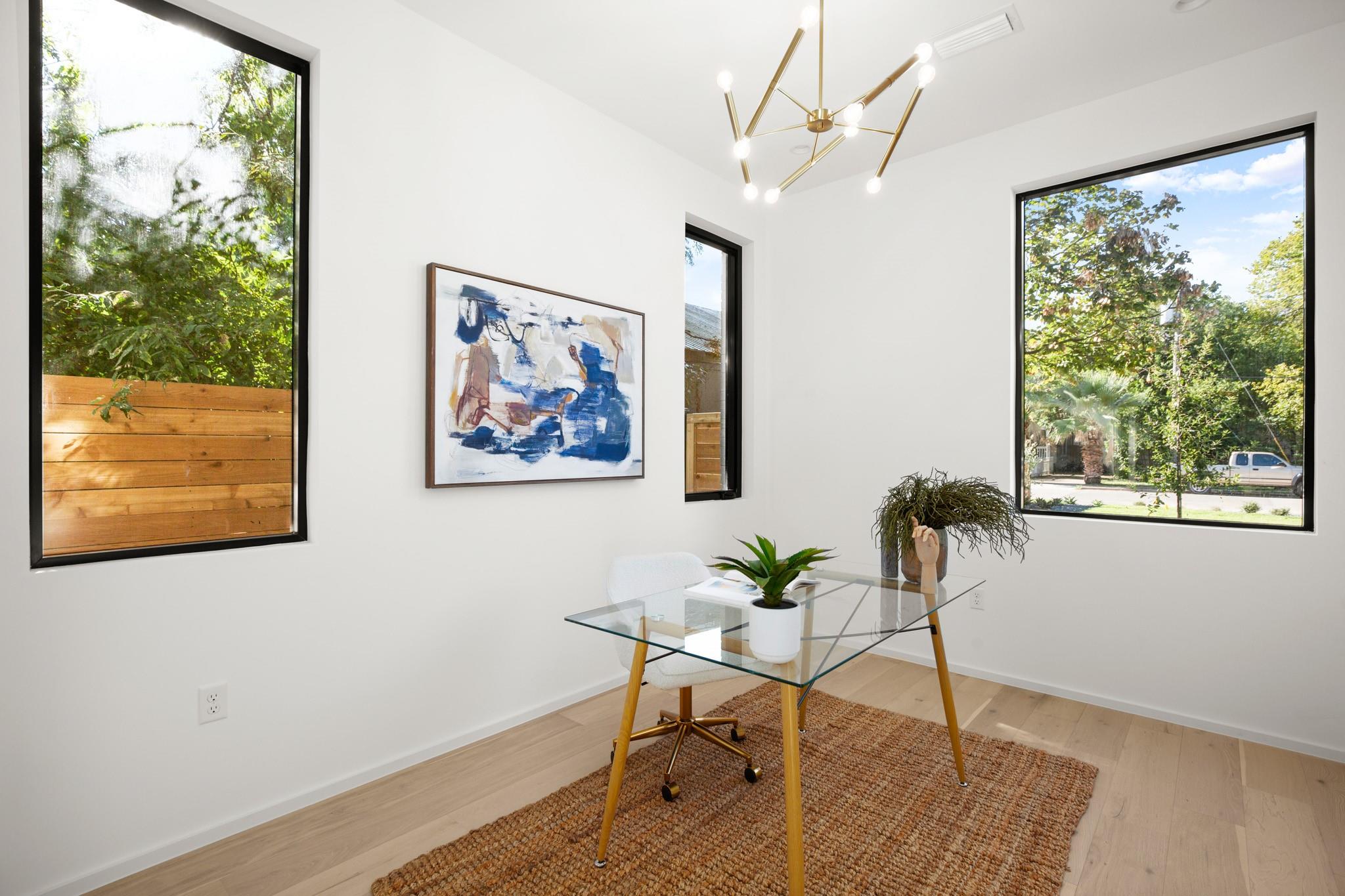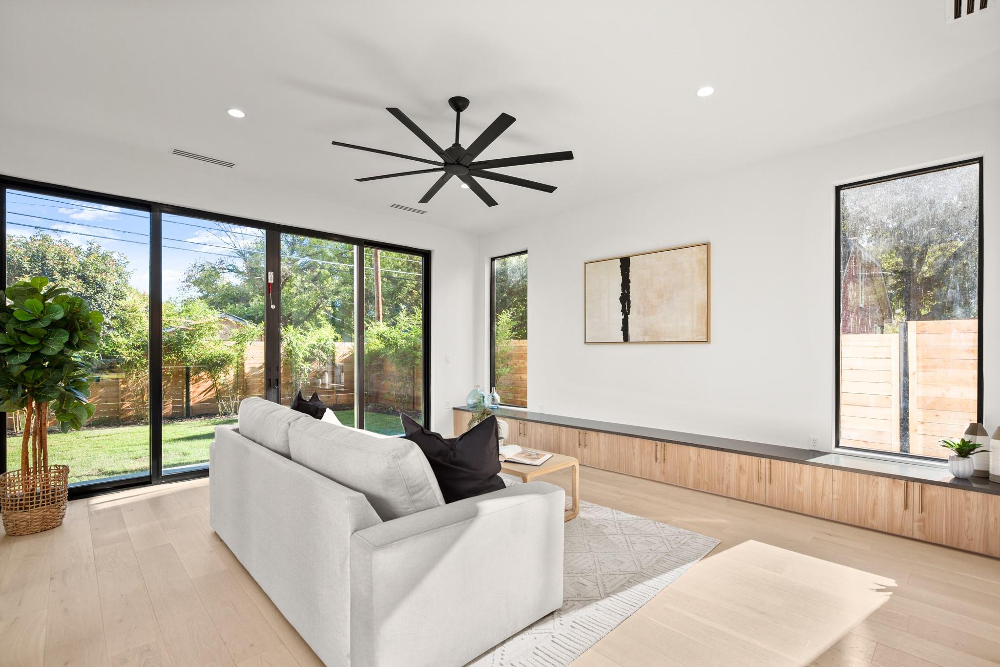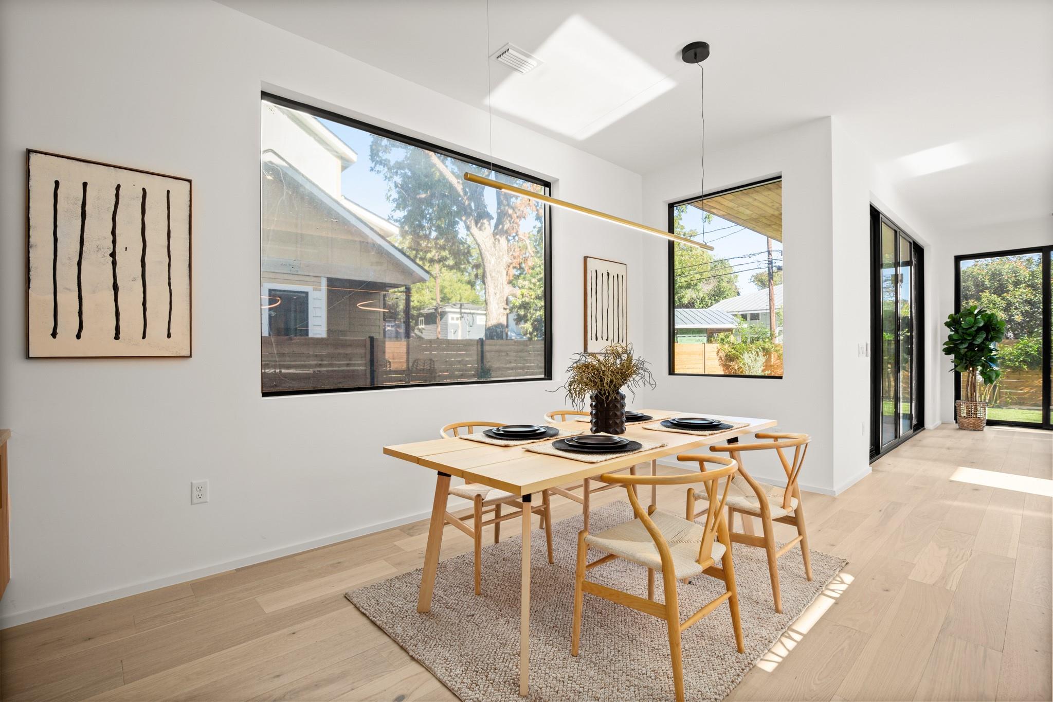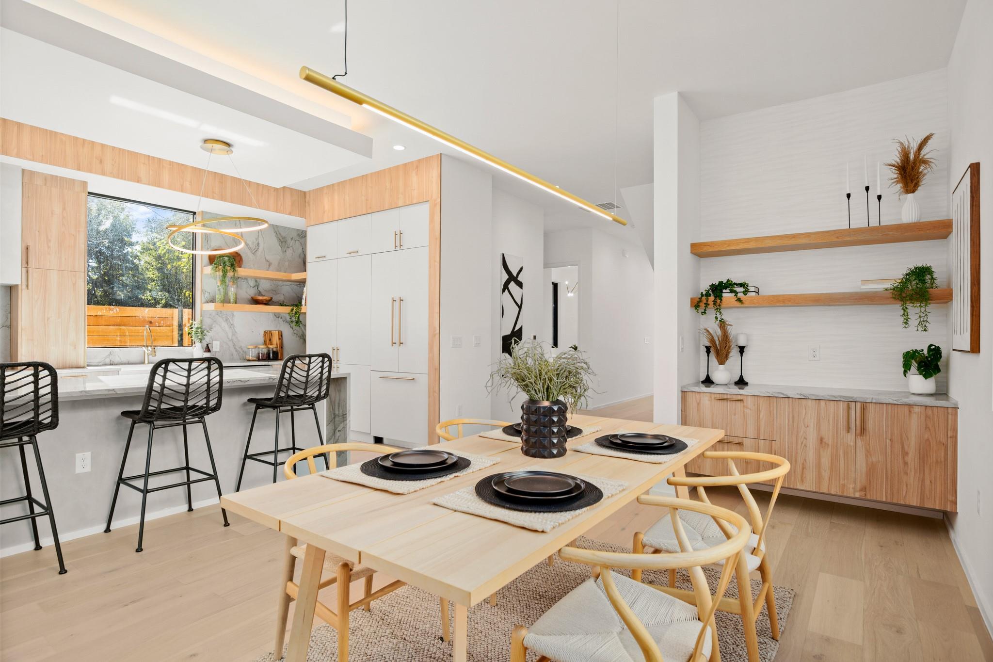 Impeccable modern architecture located in the highly walkable Holly neighborhood in the heart of 78702! Masterfully built by McCarley Construction this home embodies both functionality and effortless design. Sleek contemporary lines mixed with warm, natural elements invite you in with an abundance of natural light during the day and a cool, entertainers’ atmosphere at night. This well thought out and strategically designed open floor plan is perfect for hosting and entertaining. Enjoy indoor/outdoor living year-round with massive floor to ceiling sliding glass doors, private fenced front and back yard with a stunning private pool. The exquisite kitchen features a jaw dropping waterfall island with quartz countertops, state-of-the-art stainless steel appliances package and sophisticated custom cabinetry. Allow yourself to indulge in luxury and relaxation in the spacious primary suite and gorgeous spa like primary bathroom. Carefully curated tile and fixture selections throughout the home truly make for an impressive place of residence. This home is in one of Austin’s most coveted and convenient zip codes, with walkability to multiple different shopping districts, restaurants, coffee shops and more. Easy access to I- 35, and literally just minutes to everything East Austin has to offer. Unmatched location, unbeatable design.