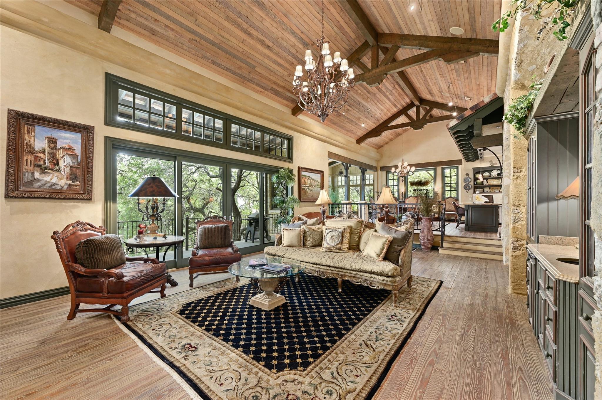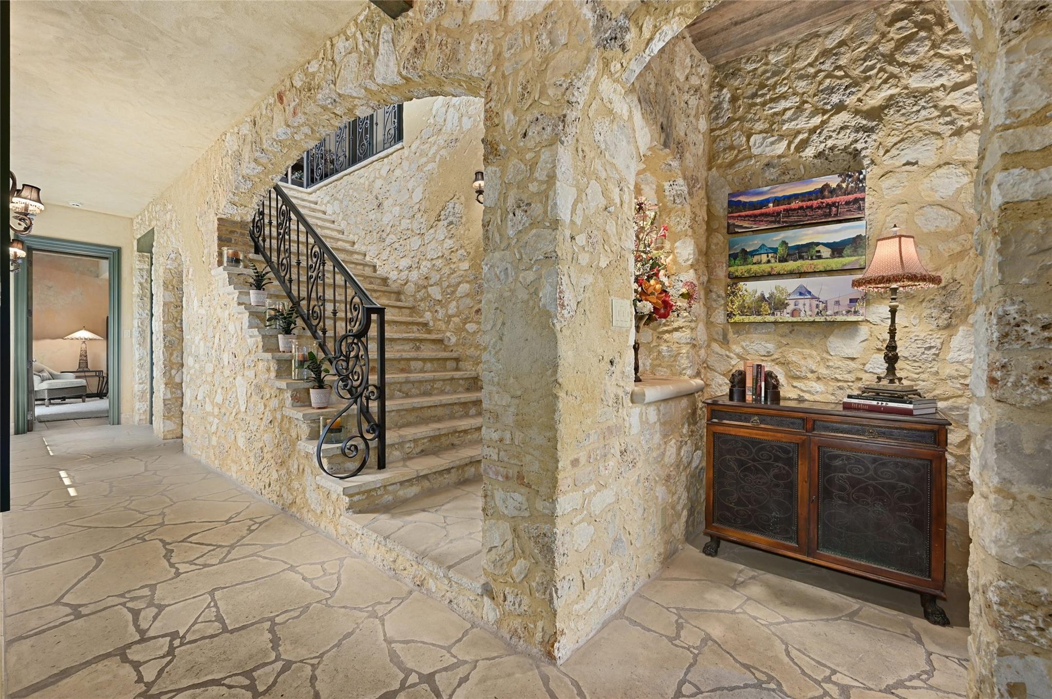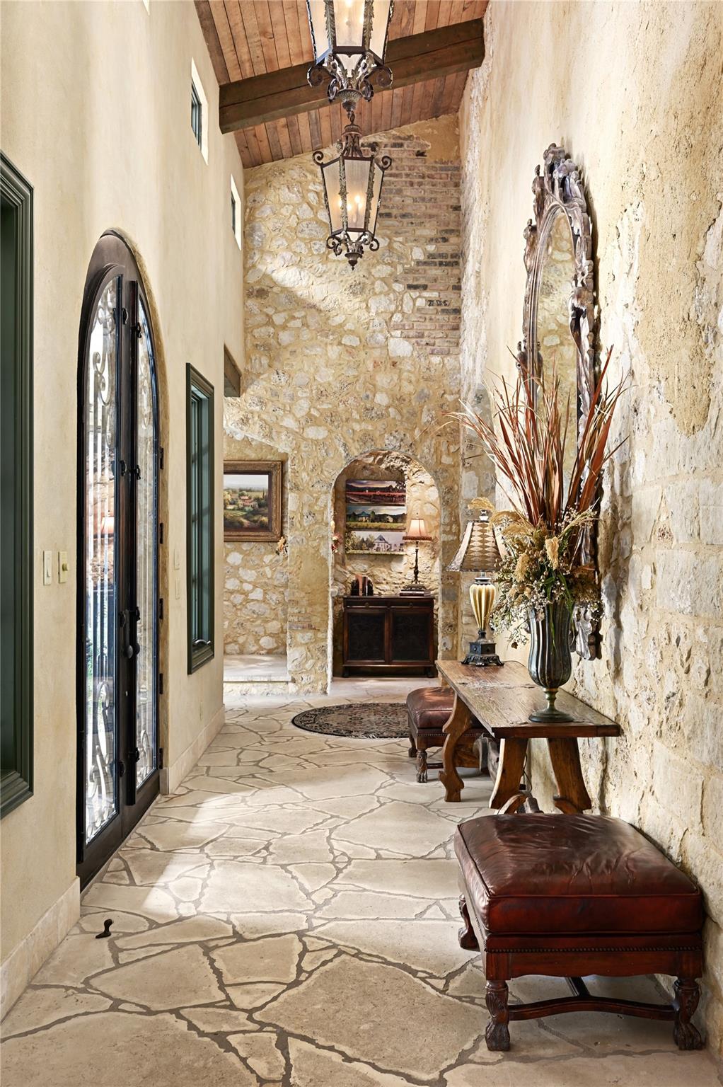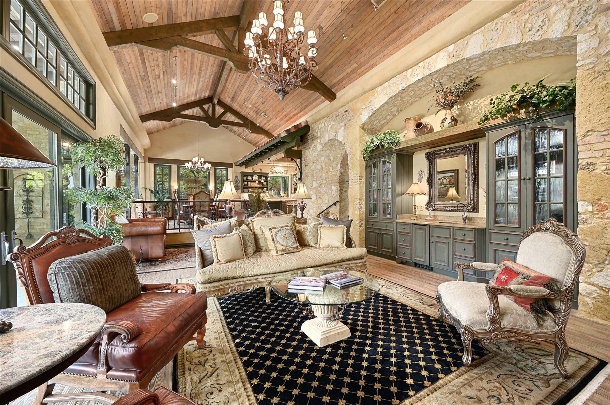 3601 Toro Canyon Road is a magnificent Austin residence, expertly crafted by the owner, who is one of the city’s renowned home builders, Gary Reissig. This Tuscan-style gem showcases impeccable stonework and intricate custom selections, exuding an old-world charm that captivates all who enter. The home offers a seamless blend of formal and informal living spaces, making it ideal for hosting gatherings, whether grand or intimate. The great room, with its soaring ceilings adorned with rustic wood beams, features one of the homes many cozy fireplaces, a wet bar, and a sunroom to enjoy morning coffee and conversation. The kitchen is an Italian countryside dream, featuring charming farmhouse-style elements, including a wood burning fireplace, an open gas grill, a butcher's block-style island, and brick and stone wall accents. The primary suite is a true retreat, complete with yet another inviting fireplace, a luxurious Jacuzzi tub, a spacious walk-in shower, and vast his and her walk-in closets. In total, there are 3 additional bedrooms and 4.5 bathrooms throughout the residence. The lower level features a highly customized home office space with another stone fireplace. For wine enthusiasts, wine storage room adds a touch of sophistication to this already exceptional property. The downstairs living area is a marvel with its glass garage-style door that opens up to the inviting pool deck, creating a seamless indoor-outdoor transition. The outdoor amenities include a grilling area, a massive stone outdoor fireplace; a covered cantina & outdoor kitchen with a Traulsen fridge, and covered bar seating, perfect for entertaining family and friends while poolside Measured square footage deviates from TCAD records. Measurements attached. Tax and assessed values are estimates for illustration purposes only. All tax and square footage figures should be independently verified. 24-Hour Advance Showing Notice.