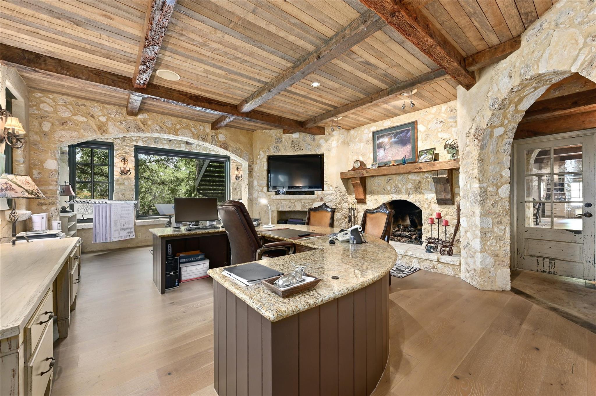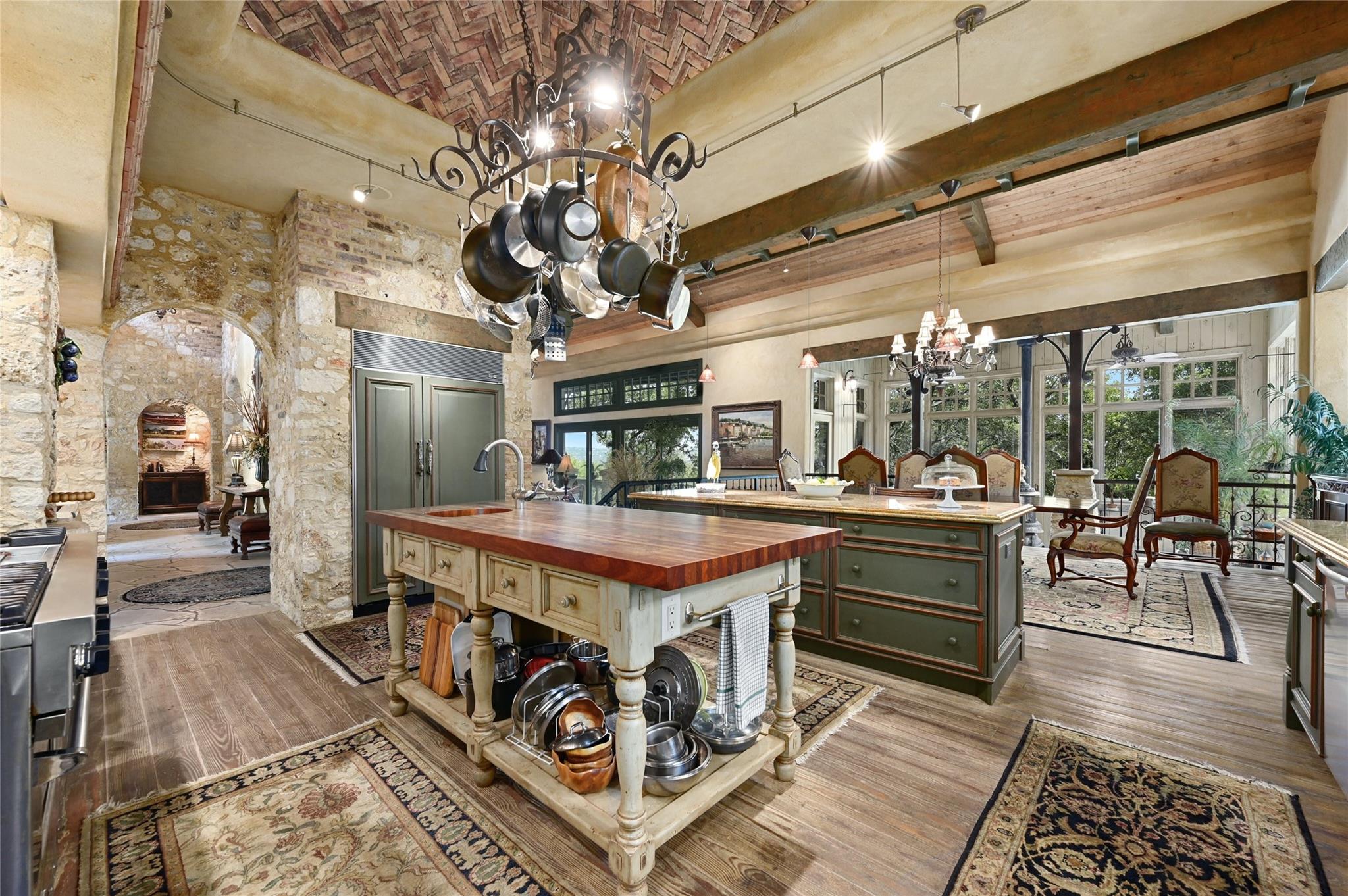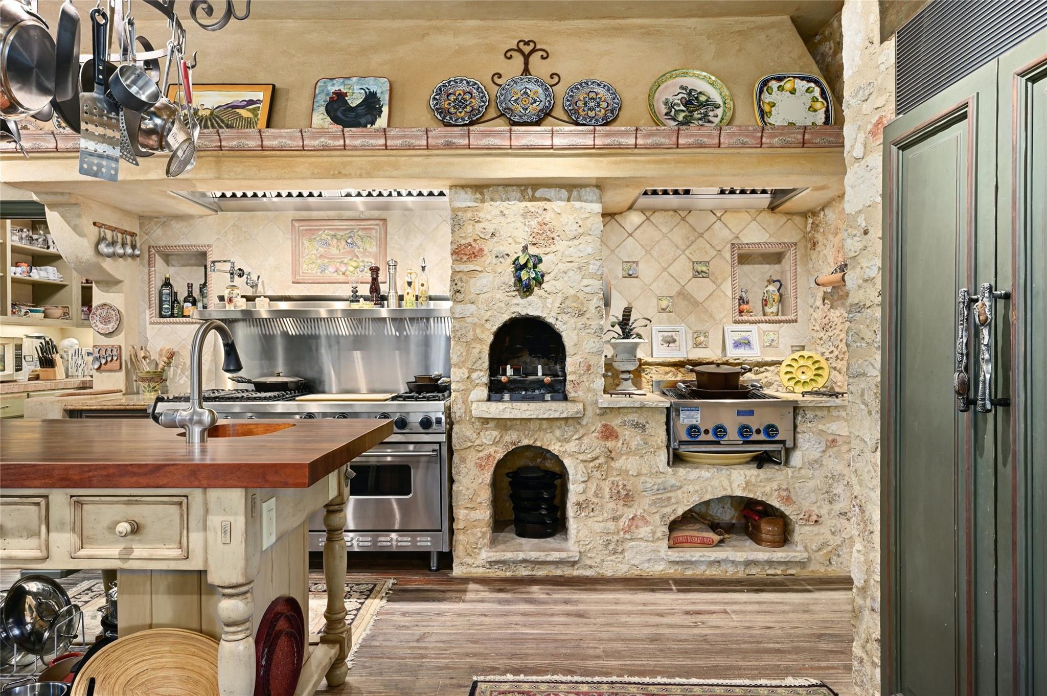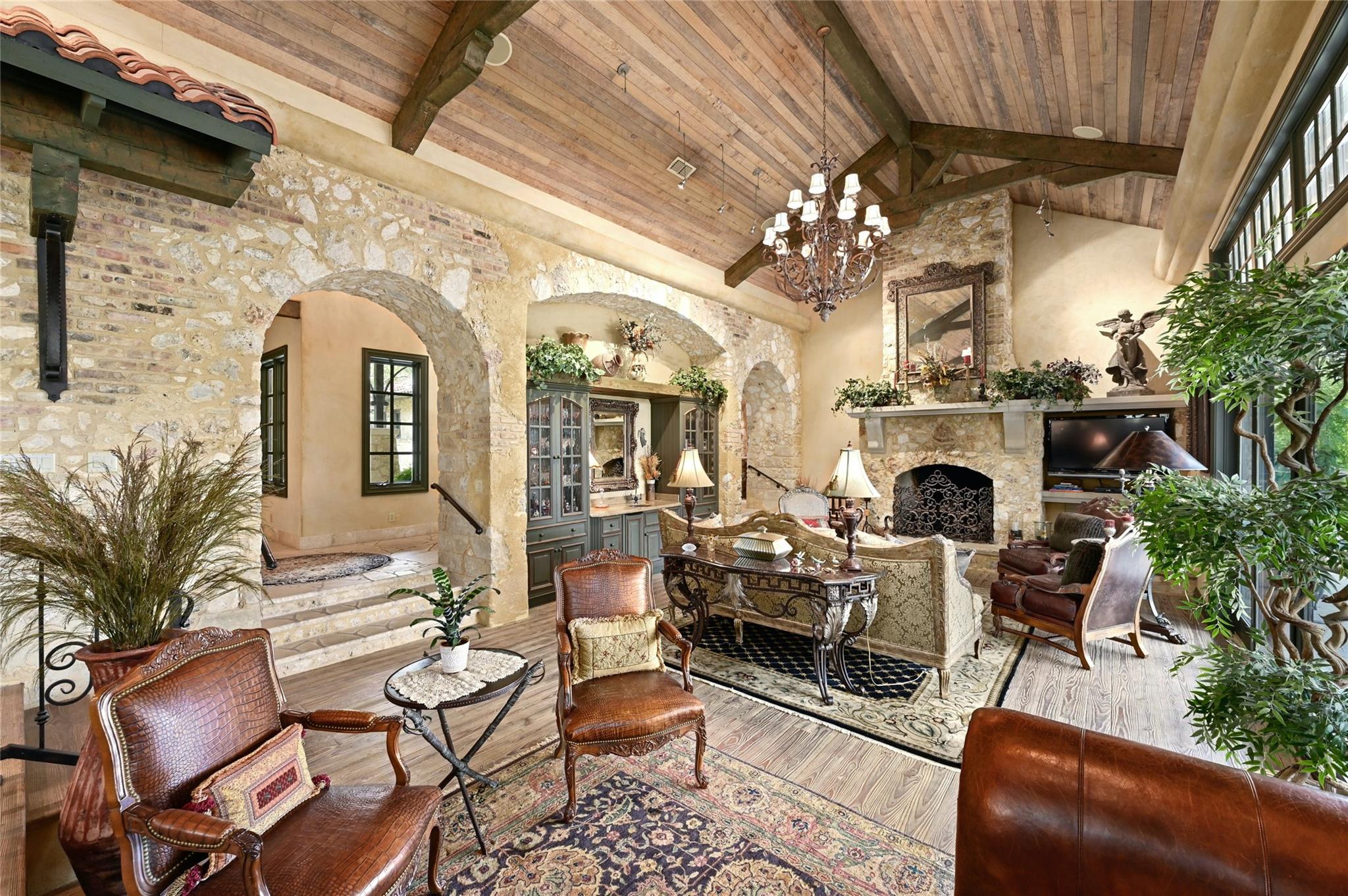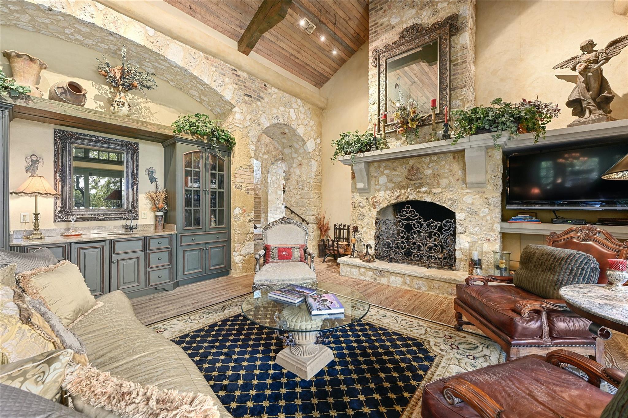 3601 Toro Canyon Road is a magnificent Austin residence, expertly crafted by the owner, who is one of the city’s renowned home builders, Gary Reissig. This Tuscan-style gem showcases impeccable stonework and intricate custom selections, exuding an old-world charm that captivates all who enter. The home offers a seamless blend of formal and informal living spaces, making it ideal for hosting gatherings, whether grand or intimate. The great room, with its soaring ceilings adorned with rustic wood beams, features one of the homes many cozy fireplaces, a wet bar, and a sunroom to enjoy morning coffee and conversation. The kitchen is an Italian countryside dream, featuring charming farmhouse-style elements, including a wood burning fireplace, an open gas grill, a butcher's block-style island, and brick and stone wall accents. The primary suite is a true retreat, complete with yet another inviting fireplace, a luxurious Jacuzzi tub, a spacious walk-in shower, and vast his and her walk-in closets. In total, there are 3 additional bedrooms and 4.5 bathrooms throughout the residence. The lower level features a highly customized home office space with another stone fireplace. For wine enthusiasts, wine storage room adds a touch of sophistication to this already exceptional property. The downstairs living area is a marvel with its glass garage-style door that opens up to the inviting pool deck, creating a seamless indoor-outdoor transition. The outdoor amenities include a grilling area, a massive stone outdoor fireplace; a covered cantina & outdoor kitchen with a Traulsen fridge, and covered bar seating, perfect for entertaining family and friends while poolside Measured square footage deviates from TCAD records. Measurements attached. Tax and assessed values are estimates for illustration purposes only. All tax and square footage figures should be independently verified. 24-Hour Advance Showing Notice.