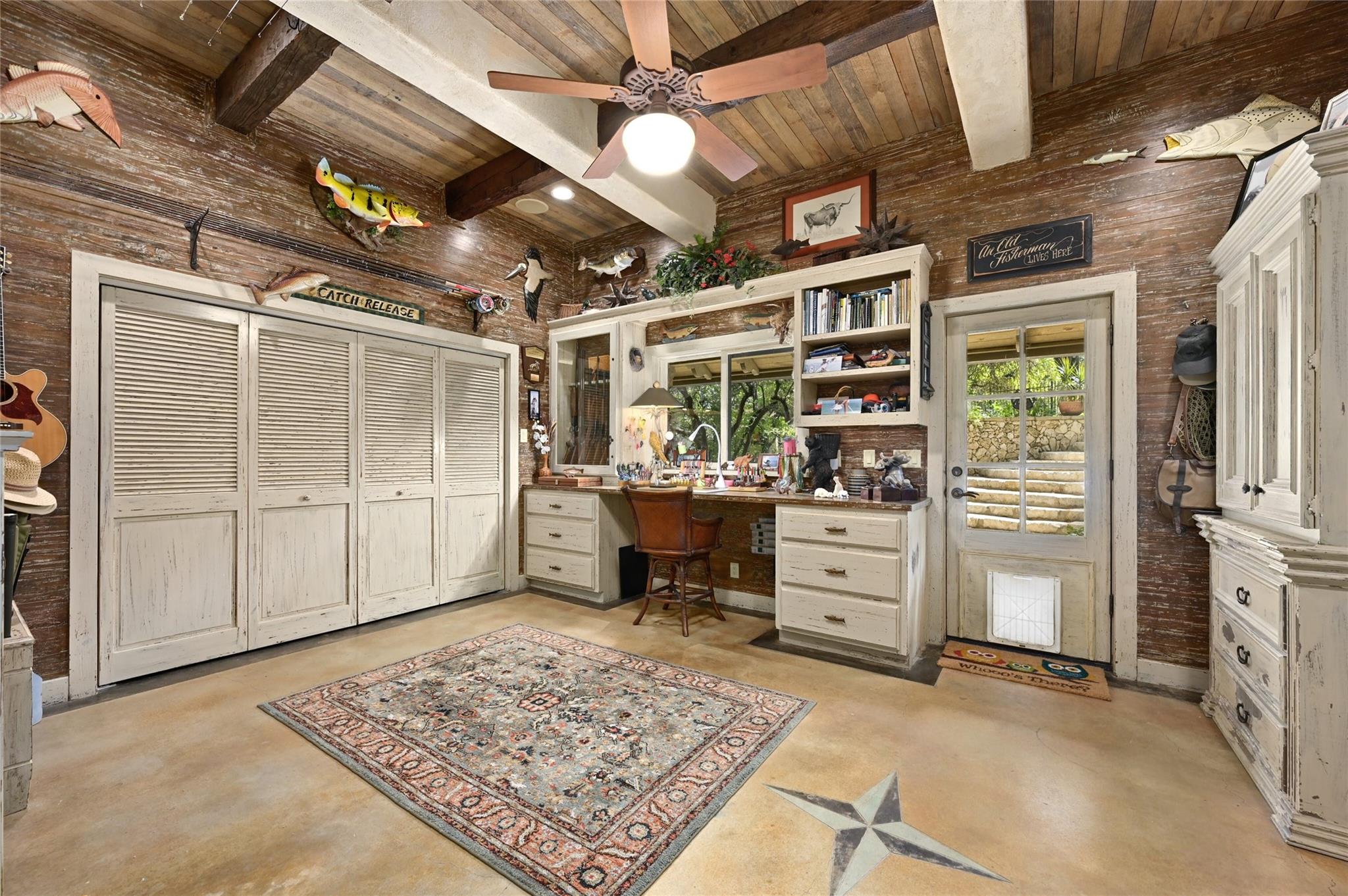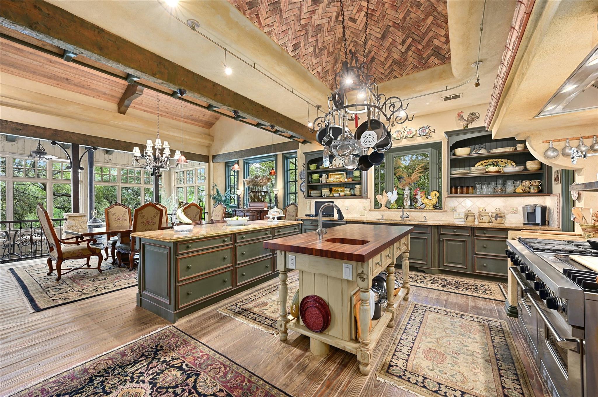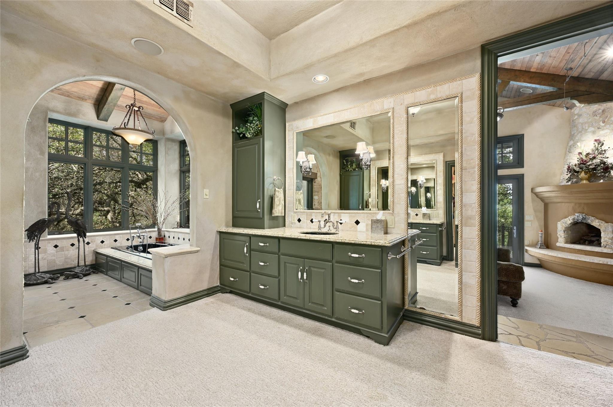 | Interior Features | Bookcases, Breakfast Bar, Beamed Ceilings, High Ceilings, Double Vanity, Entrance Foyer, Interior Steps, Kitchen Island, Multiple Dining Areas, Multiple Living Areas, Open Floorplan, Pantry, Primary Bedroom on Main, Recessed Lighting, Walk-In Closet(s) | |