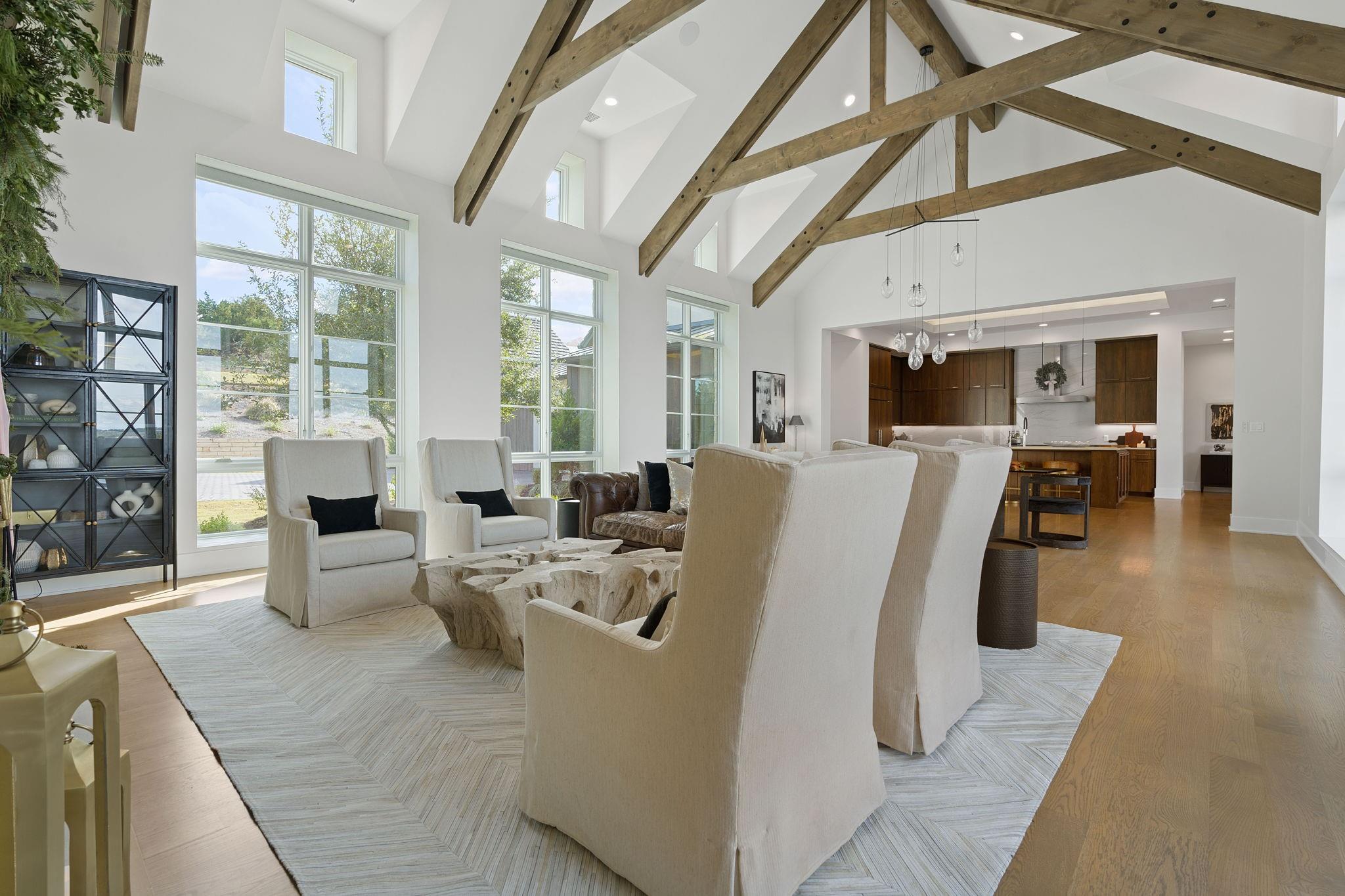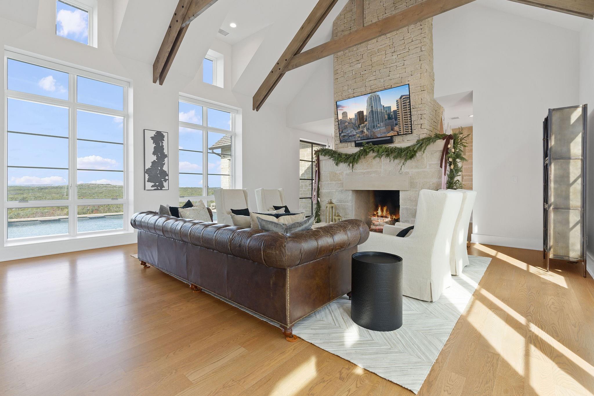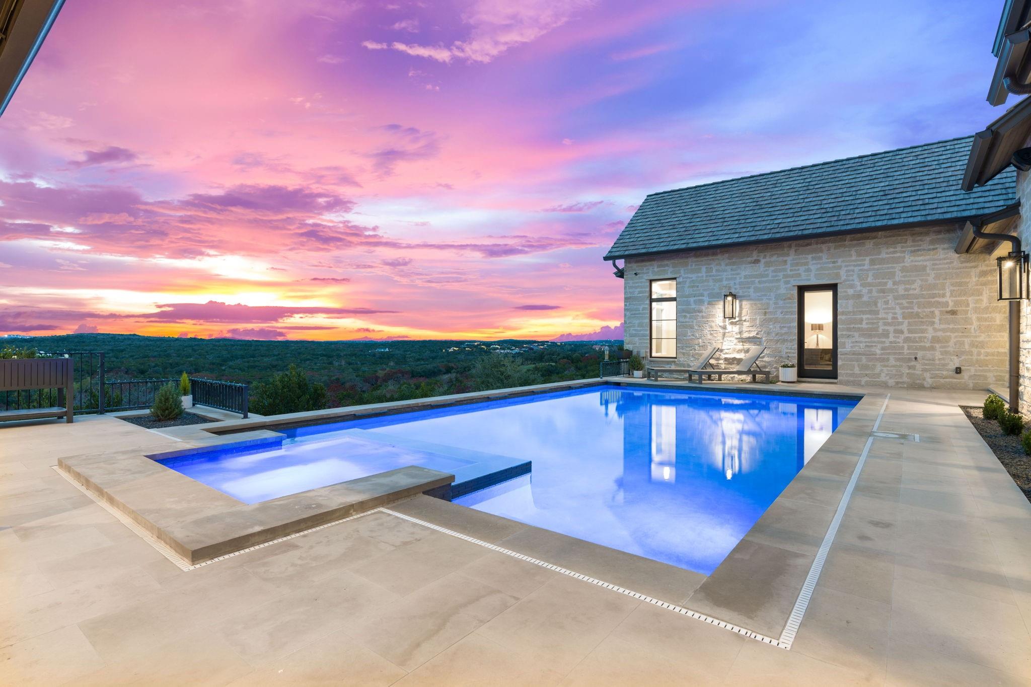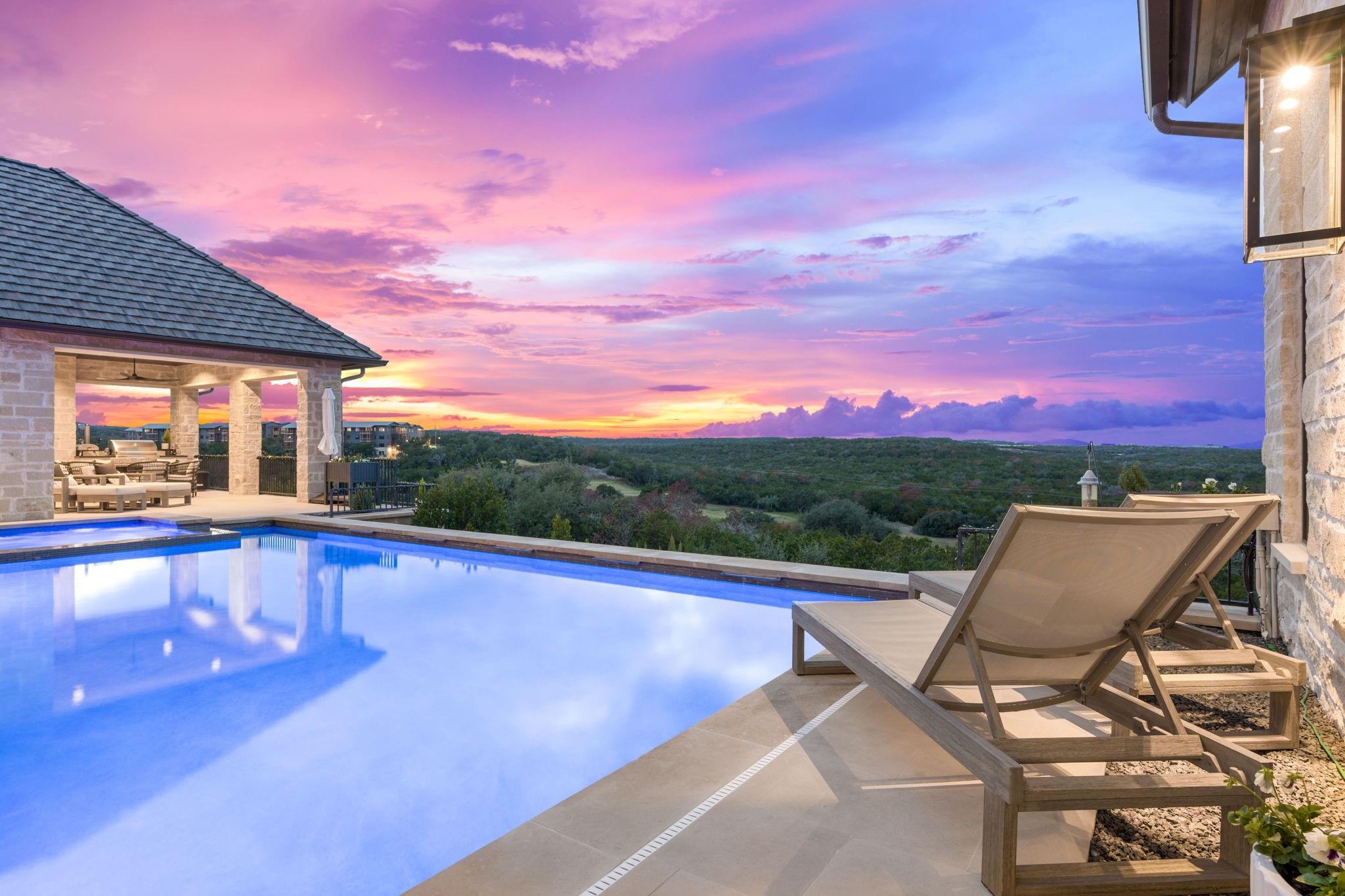Perched above the 16th hole of Barton Creek’s Fazio Canyons Golf Course, sitting on nearly 3 acres with miles of unobstructed, protected green belt views, sits a Heyl Homes Showcase Property just 2 years young. Sprawling over 5,100 sqft, without a single interior stair, is a beautifully laid out 4 bedroom (all with en-suite baths) floor plan. Capping off the rooms is a large, private office next to the primary suite and powder half bath between the kitchen and pool. Throughout this former model home (Sept '20-June '21), you will find ceiling heights ranging from 12 to 20 feet. The dramatic, wood-beamed great room connected to the kitchen allows for a central, connected living space that easily entertains 30+ people. Walls of windows throughout connects you with some of the best hill country views in Travis County. The 20x36’ pool directly off the kitchen with 1200 sqft of covered patio space keeps you shaded in the summer and warm in the winter. The entire home is finished with hand-finished hardwood floors, white quartz, and high-end appliances. No detail was missed in this exclusive Amarra Estate.