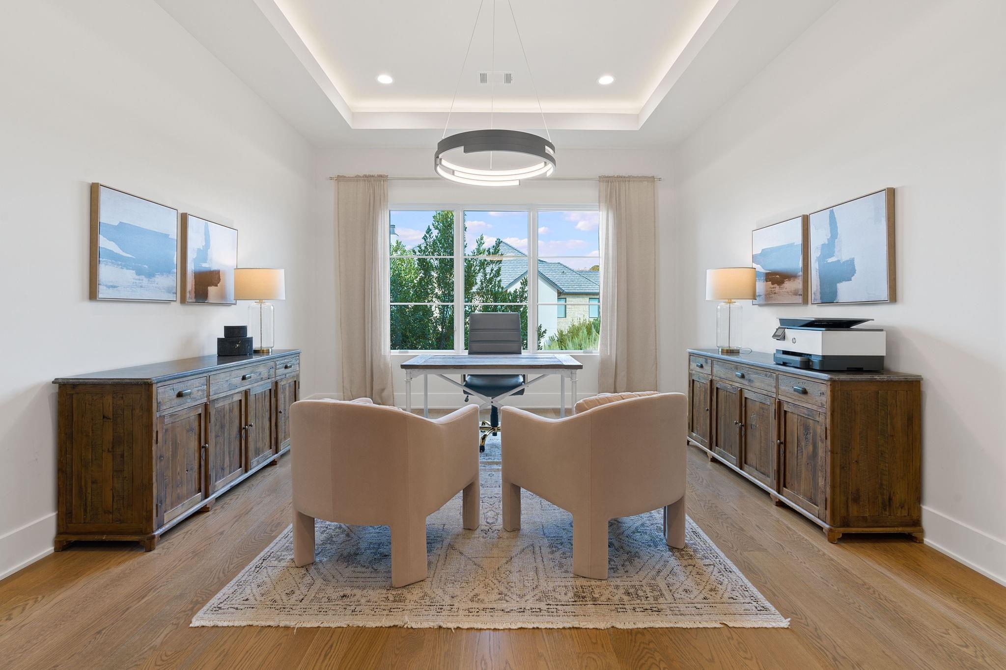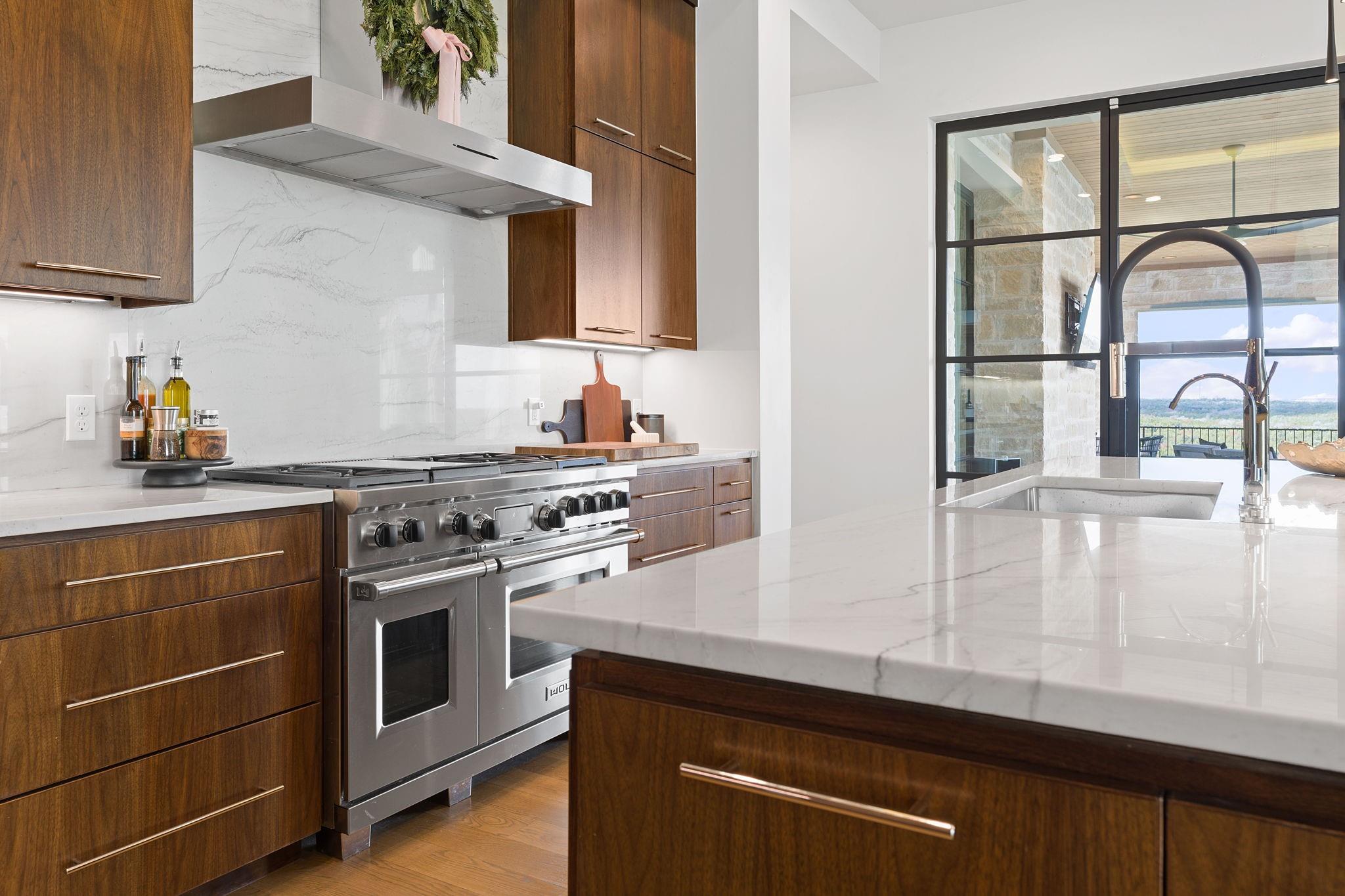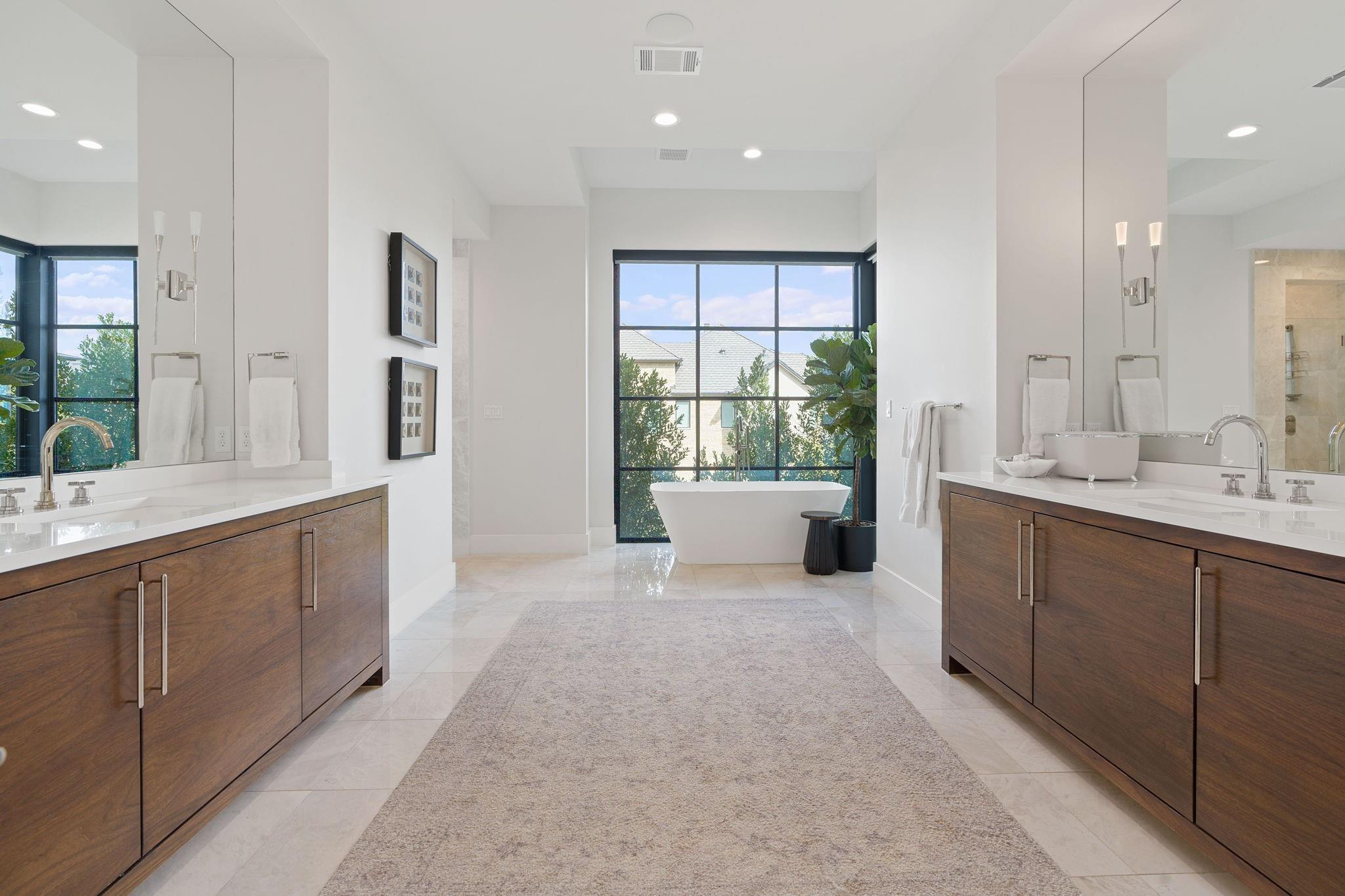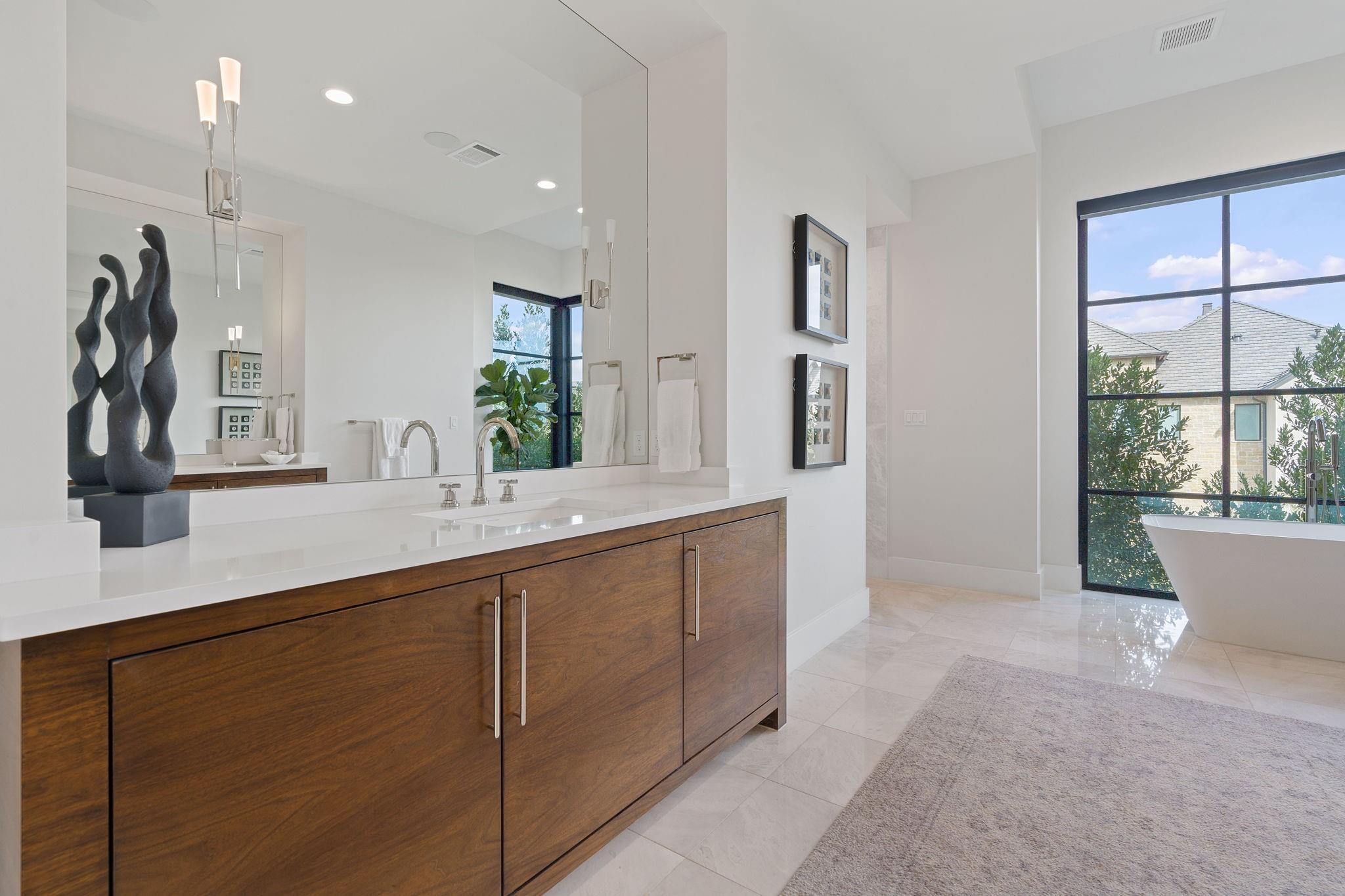 Perched above the 16th hole of Barton Creek’s Fazio Canyons Golf Course, sitting on nearly 3 acres with miles of unobstructed, protected green belt views, sits a Heyl Homes Showcase Property just 2 years young. Sprawling over 5,100 sqft, without a single interior stair, is a beautifully laid out 4 bedroom (all with en-suite baths) floor plan. Capping off the rooms is a large, private office next to the primary suite and powder half bath between the kitchen and pool. Throughout this former model home (Sept '20-June '21), you will find ceiling heights ranging from 12 to 20 feet. The dramatic, wood-beamed great room connected to the kitchen allows for a central, connected living space that easily entertains 30+ people. Walls of windows throughout connects you with some of the best hill country views in Travis County. The 20x36’ pool directly off the kitchen with 1200 sqft of covered patio space keeps you shaded in the summer and warm in the winter. The entire home is finished with hand-finished hardwood floors, white quartz, and high-end appliances. No detail was missed in this exclusive Amarra Estate.