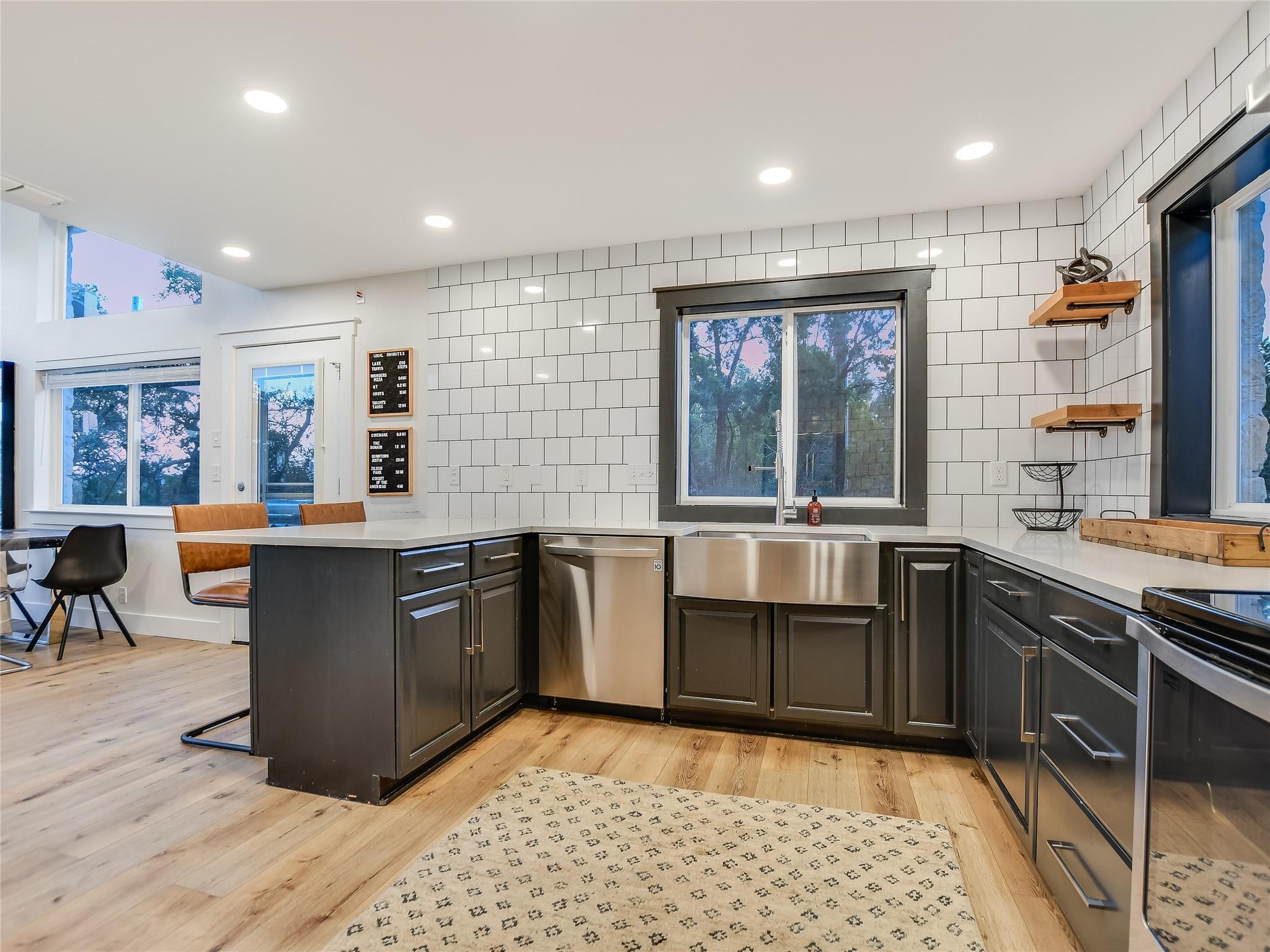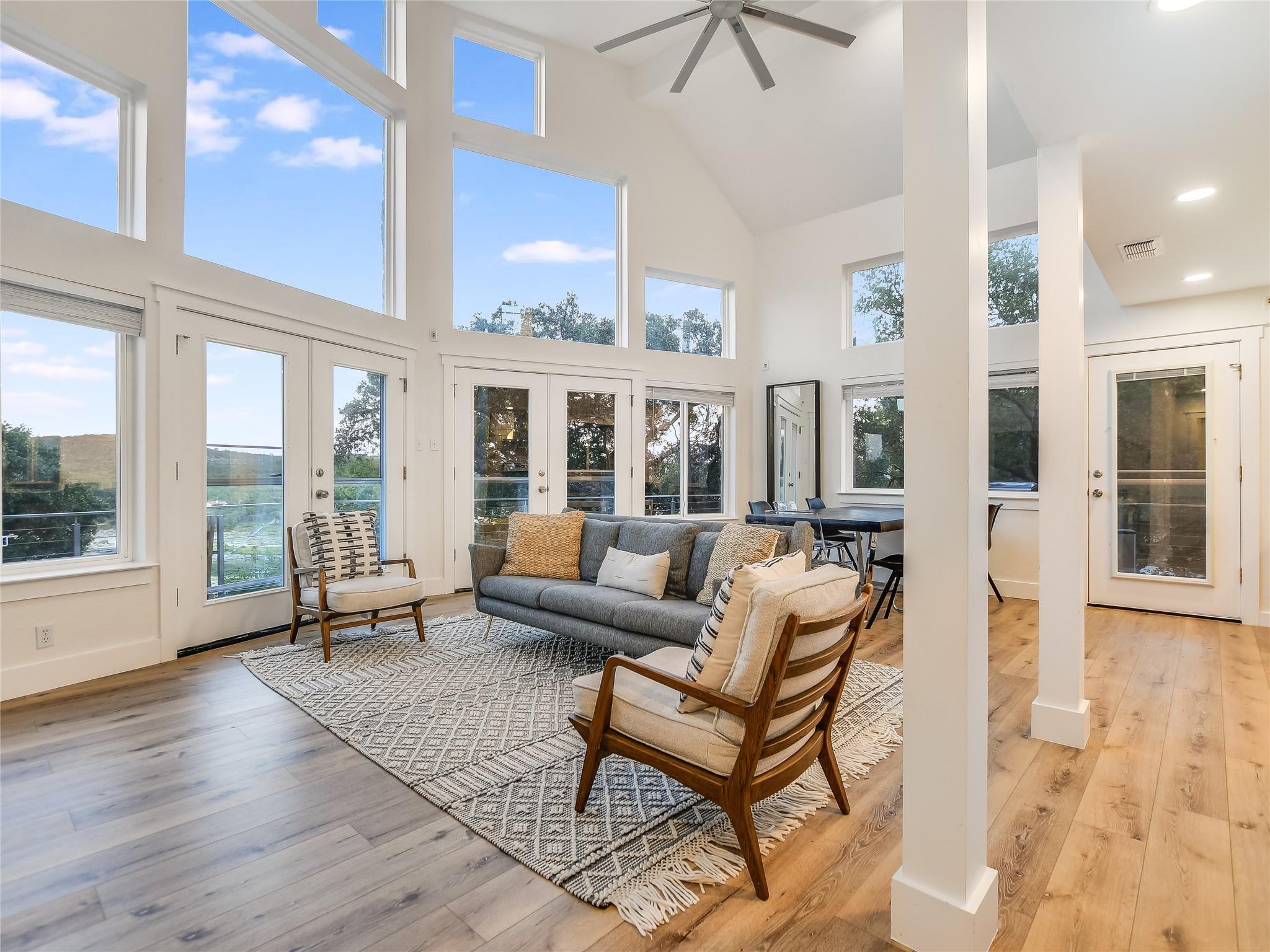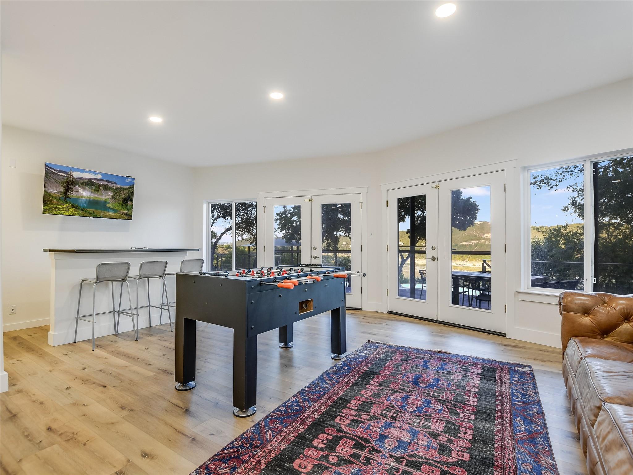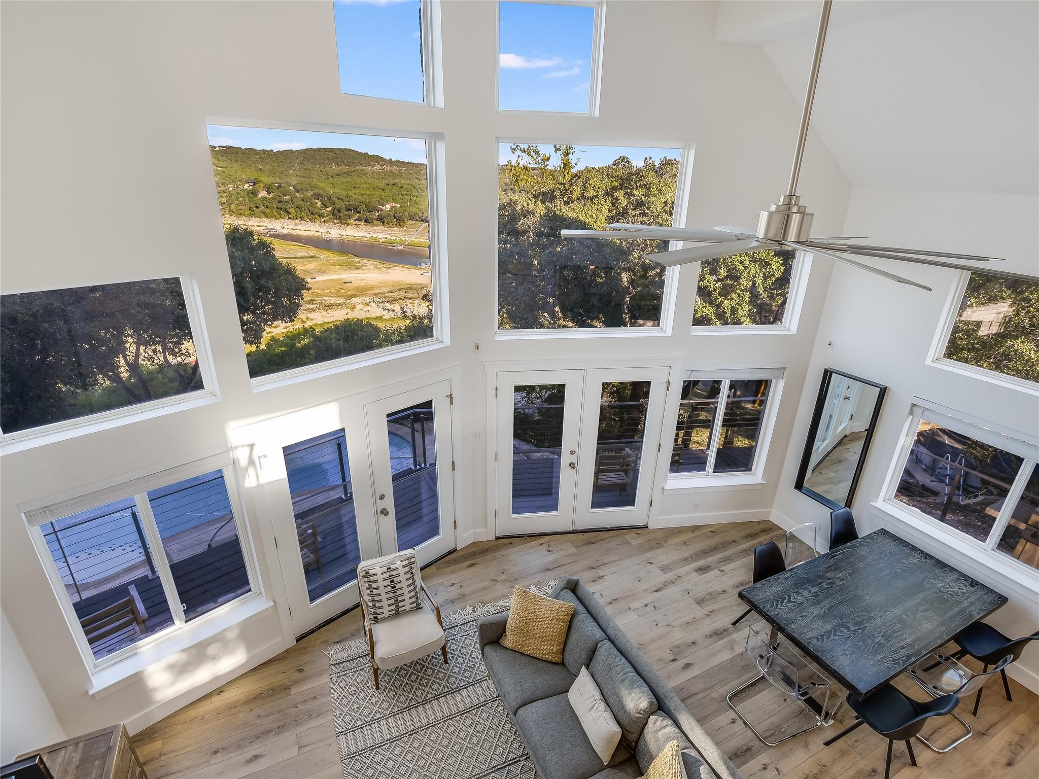 Magnificent Lake Travis estate situated on a sprawling 1 acre bluff lot above Lake Travis. Income producing or private to share with family and friends, with main estate and 2 separate units. Captivating views, this home offers a seamless blend of indoor-outdoor living. Inviting layout, where the living, dining, and kitchen areas flow effortlessly together. French doors adorn the perimeter, bathing the interior in natural light and offering panoramic views of the surrounding landscape and lake. Shared Path to lake per an agreement with waterfront owner This versatile space, along with an elevated daylight and walkout basement, which includes a large living/game and wet bar area sets the stage for unforgettable moments. Step outside onto the expansive decks; relax, dine, swim or soak in the breathtaking scenery. Primary suite retreat, a sanctuary boasting views, a luxurious ensuite bathroom, and direct access to the outdoor decks. Additional bedrooms provide comfortable accommodations for family and guests, each offering its own blend of comfort and style. Outside, resort-style amenities await, including a sparkling negative edge pool, hot tub, and a pathway leading directly to the lake. Spend leisurely afternoons lounging by the poolside or embark on adventures on the lake; where boating, swimming, and fishing await. Multi-level decks with room for lots of outdoor living. In addition to the main residence, the property features two separate units. The ample studio apartment over the garage feels like a cabin nestled in the trees. Complete with a private bathroom, kitchenette and its own entrance, it offers privacy and convenience for guests or tenants. The guest house 'Condo' further enhances the potential of the property, offering yet another opportunity for rental income or accommodations for visitors. Completed in 2023 with its own 2 bedrooms, full huge kitchen and living area, it provides a cozy and inviting space for guests to enjoy.
