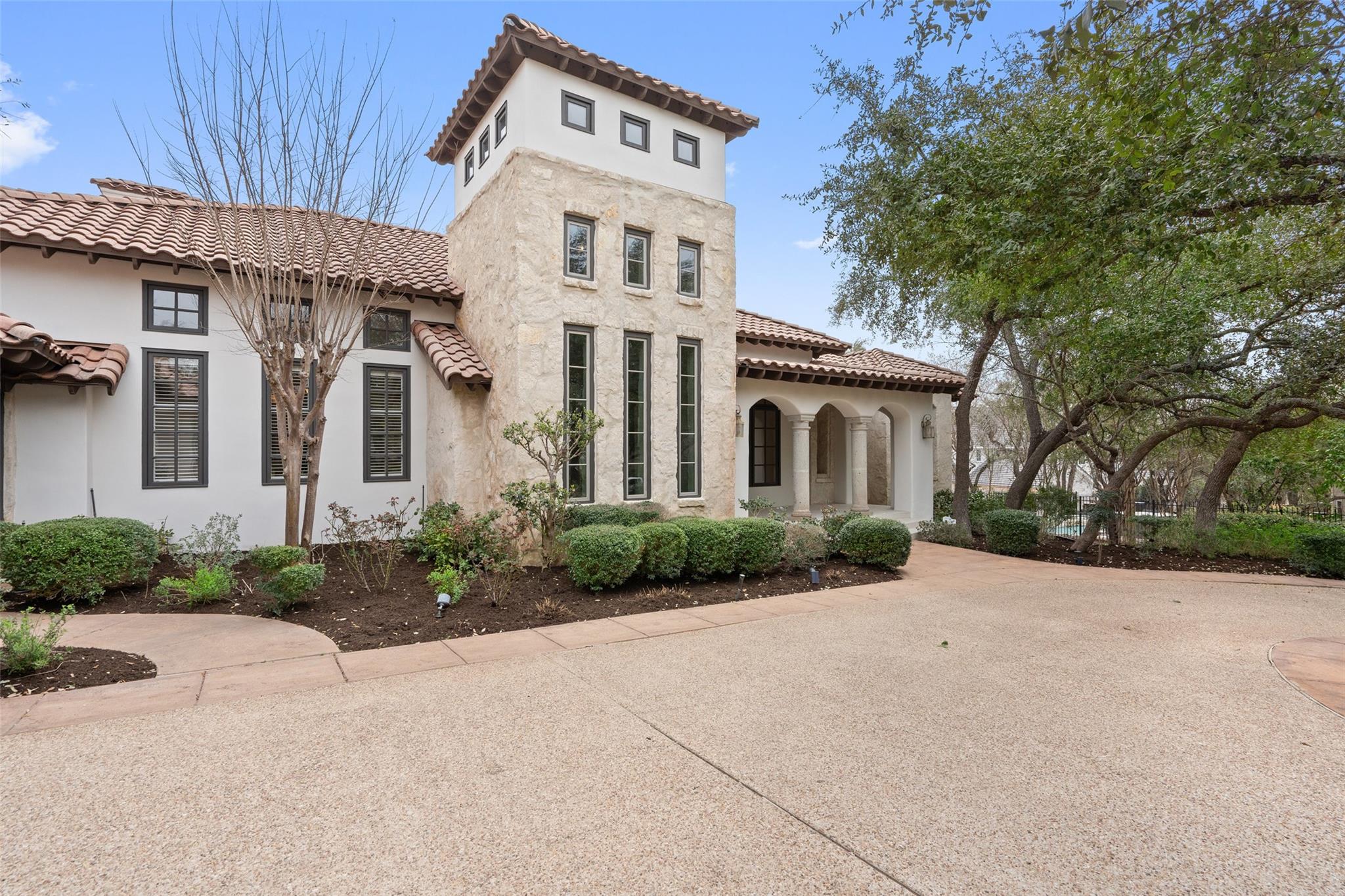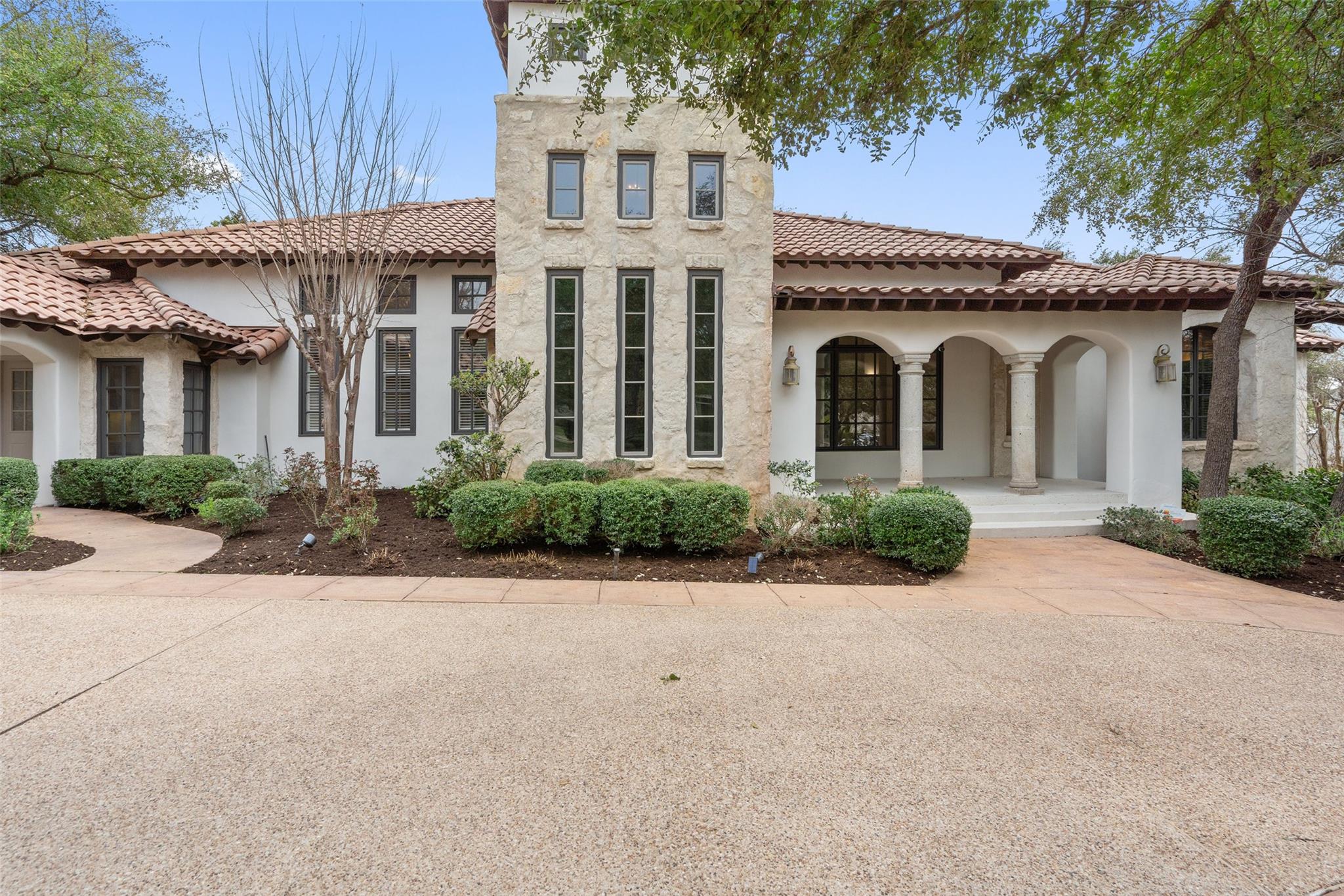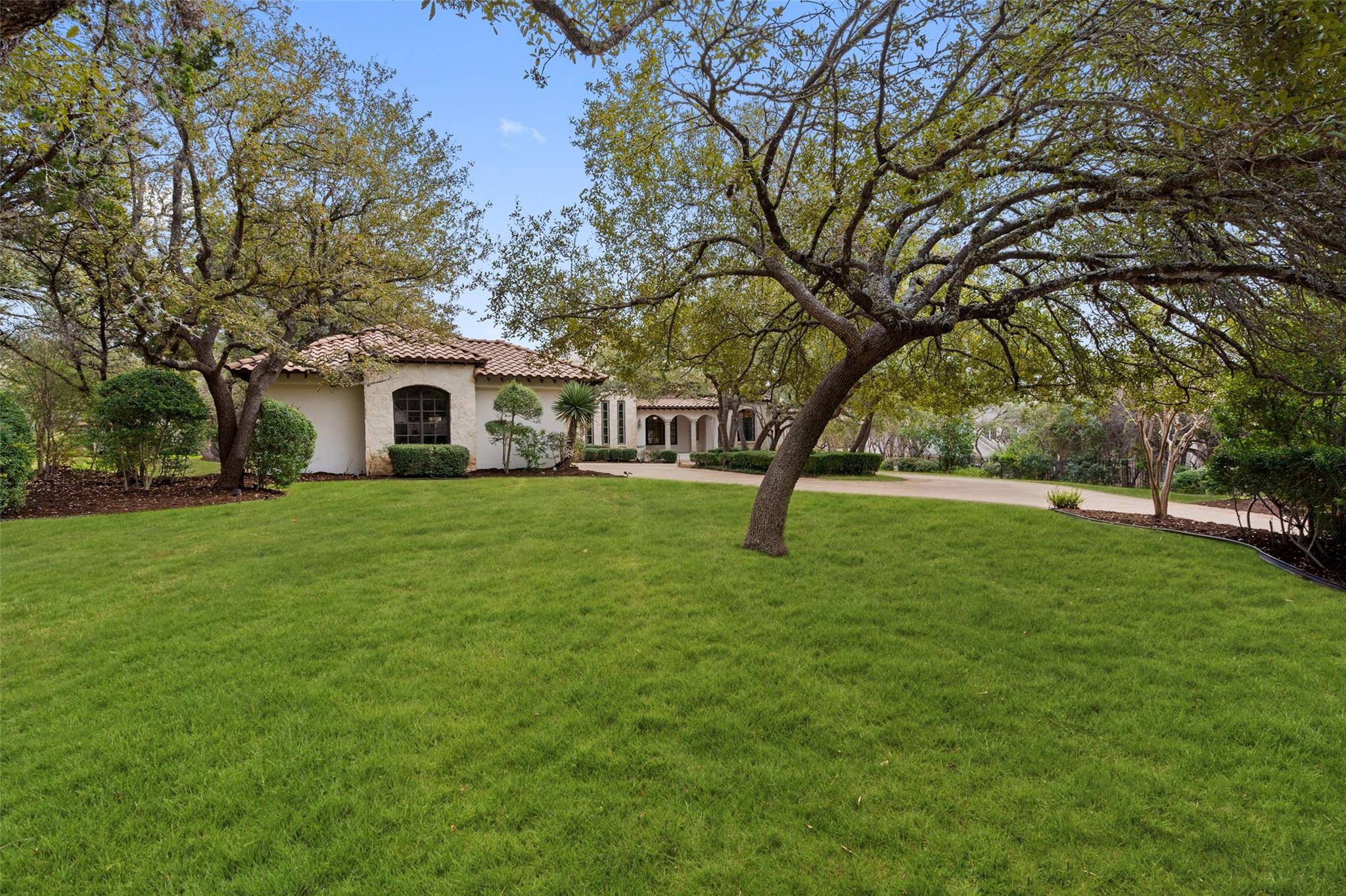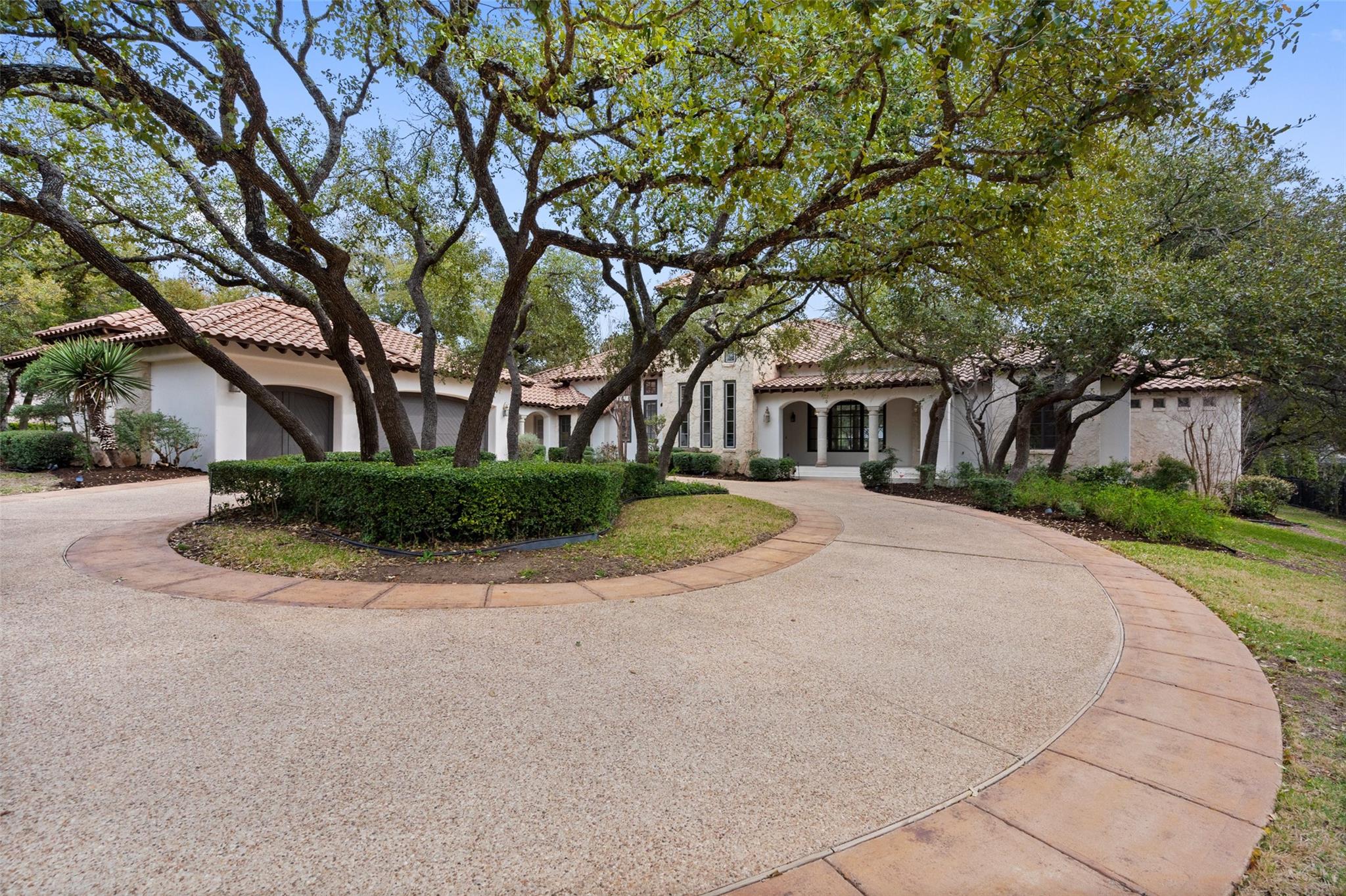 Welcome to your private oasis behind the gates in the prestigious community of Woods I in Barton Creek. Nestled among the towering oak trees, this stunning single-story home boasts an open floor plan flooded with natural light, creating an inviting and serene atmosphere. As you step inside, you'll be greeted by a 25-foot entry tower with native limestone walls and wood beamed ceiling. Thirteen-foot ceilings with gorgeous architectural details are found throughout all living areas, accentuating the spaciousness and grandeur of the home. The formal living and dining areas provide an elegant backdrop for entertaining, while the breakfast room offers access to a private patio, perfect for creating an outdoor kitchen. The generously sized primary suite features two walk-in closets, a separate shower, a luxurious whirlpool tub, bidet, and separate sinks, offering a peaceful retreat. Additionally, there are 3 bedrooms, each with private baths and walk-in closets, providing comfort and privacy. The exterior of the home is adorned with a beautiful stone and stucco facade, complemented by a concrete tile roof, exuding timeless elegance and durability. The .77-acre lot is adorned with an abundance of oak trees and Japanese-style gardens, creating a tranquil and picturesque setting. For the culinary enthusiast, the spacious kitchen is equipped with a Sub-Zero refrigerator, ice maker, 5-burner gas stove, single oven, granite counters, and an abundance of custom cabinetry. The sit-up bar and island provide the perfect space for meal preparation and casual entertaining. Additional features include beamed ceilings, a cantera stone fireplace, built-in entertainment center and speakers in the informal living area. Built in 1998 by award-winning Thomas L. Luth, this home exudes quality and craftsmanship at every turn. With a 3-car garage, and a large covered verandah, this home offers the perfect blend of luxury, comfort, and functionality.