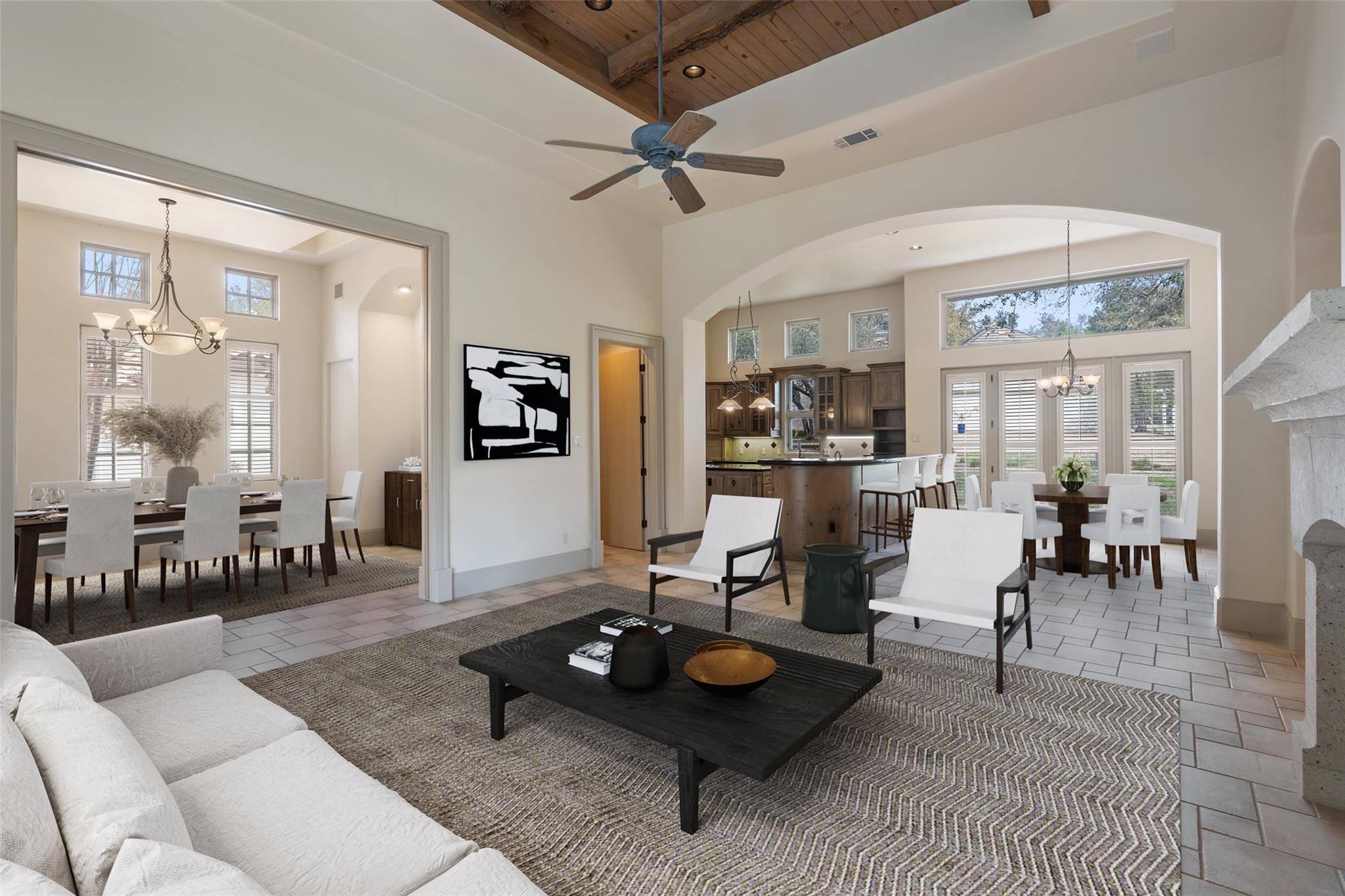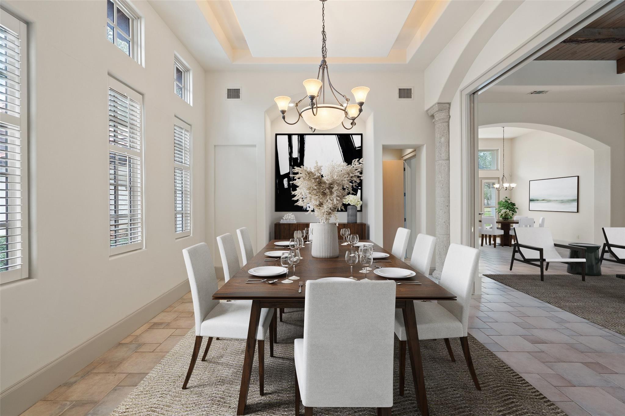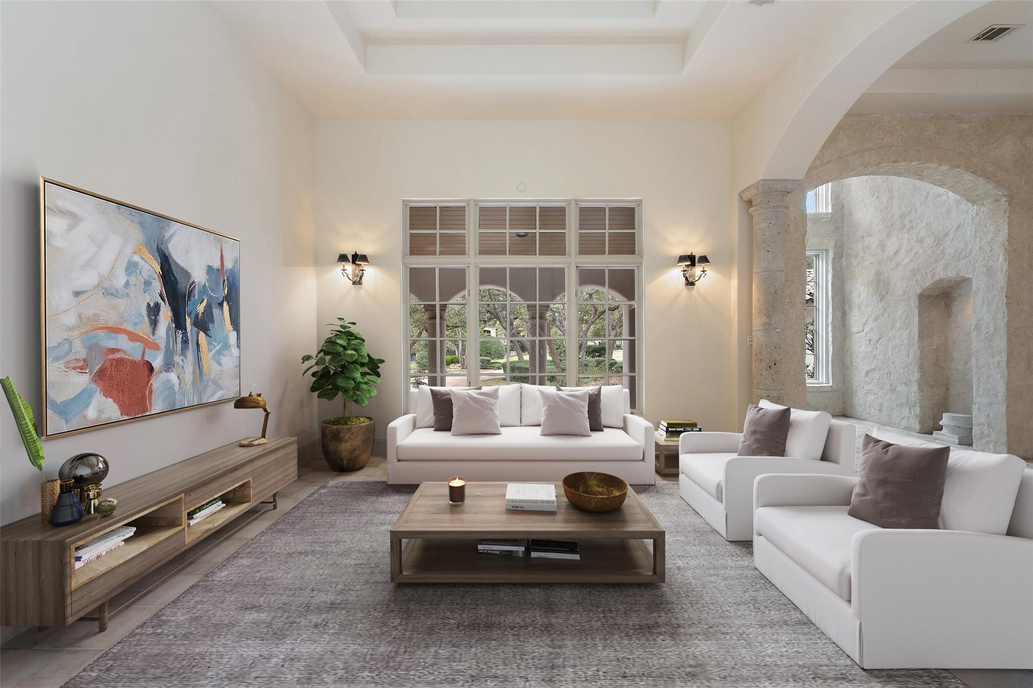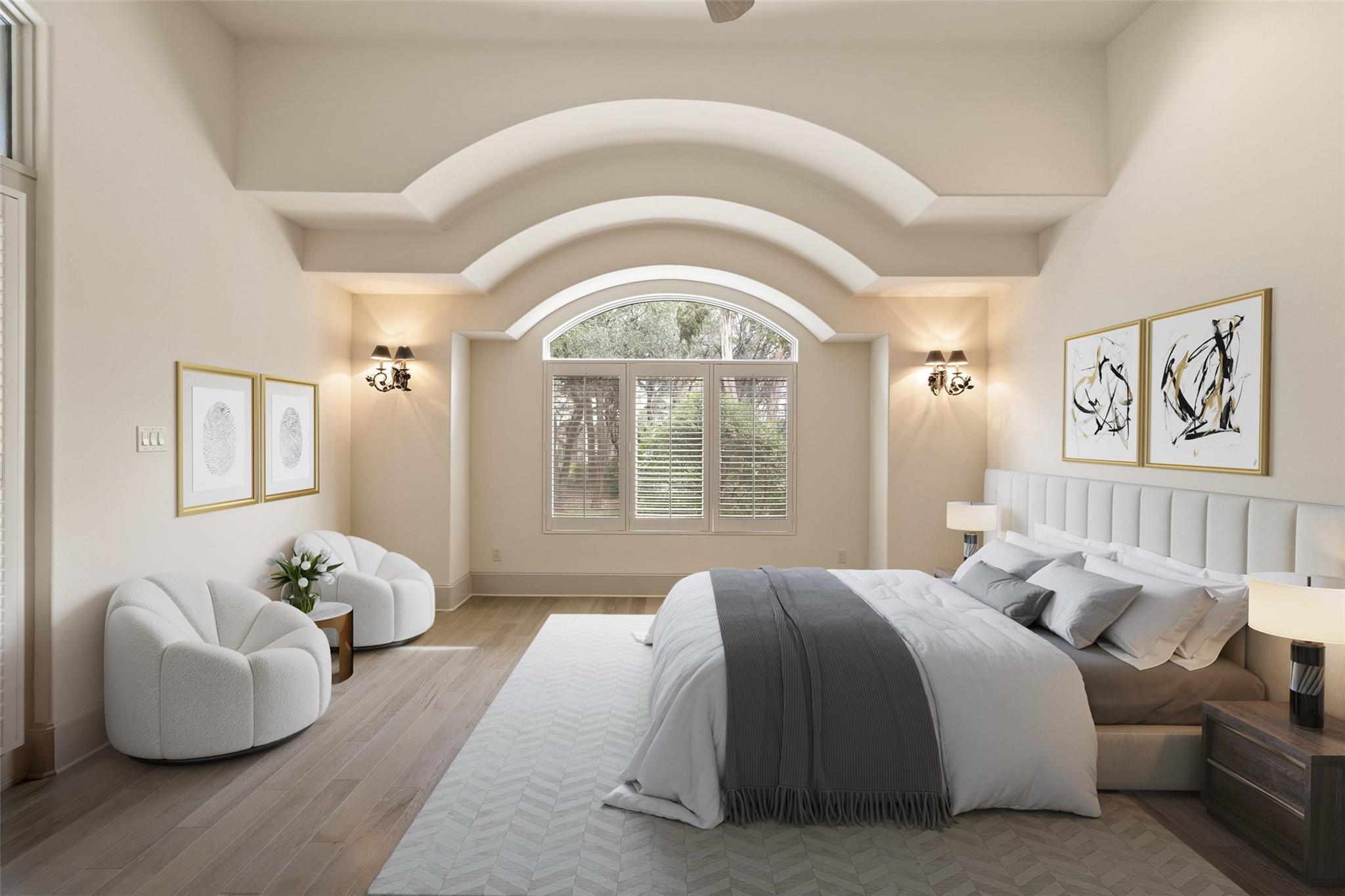 Welcome to your private oasis behind the gates in the prestigious community of Woods I in Barton Creek. Nestled among the towering oak trees, this stunning single-story home boasts an open floor plan flooded with natural light, creating an inviting and serene atmosphere. As you step inside, you'll be greeted by a 25-foot entry tower with native limestone walls and wood beamed ceiling. Thirteen-foot ceilings with gorgeous architectural details are found throughout all living areas, accentuating the spaciousness and grandeur of the home. The formal living and dining areas provide an elegant backdrop for entertaining, while the breakfast room offers access to a private patio, perfect for creating an outdoor kitchen. The generously sized primary suite features two walk-in closets, a separate shower, a luxurious whirlpool tub, bidet, and separate sinks, offering a peaceful retreat. Additionally, there are 3 bedrooms, each with private baths and walk-in closets, providing comfort and privacy. The exterior of the home is adorned with a beautiful stone and stucco facade, complemented by a concrete tile roof, exuding timeless elegance and durability. The .77-acre lot is adorned with an abundance of oak trees and Japanese-style gardens, creating a tranquil and picturesque setting. For the culinary enthusiast, the spacious kitchen is equipped with a Sub-Zero refrigerator, ice maker, 5-burner gas stove, single oven, granite counters, and an abundance of custom cabinetry. The sit-up bar and island provide the perfect space for meal preparation and casual entertaining. Additional features include beamed ceilings, a cantera stone fireplace, built-in entertainment center and speakers in the informal living area. Built in 1998 by award-winning Thomas L. Luth, this home exudes quality and craftsmanship at every turn. With a 3-car garage, and a large covered verandah, this home offers the perfect blend of luxury, comfort, and functionality.