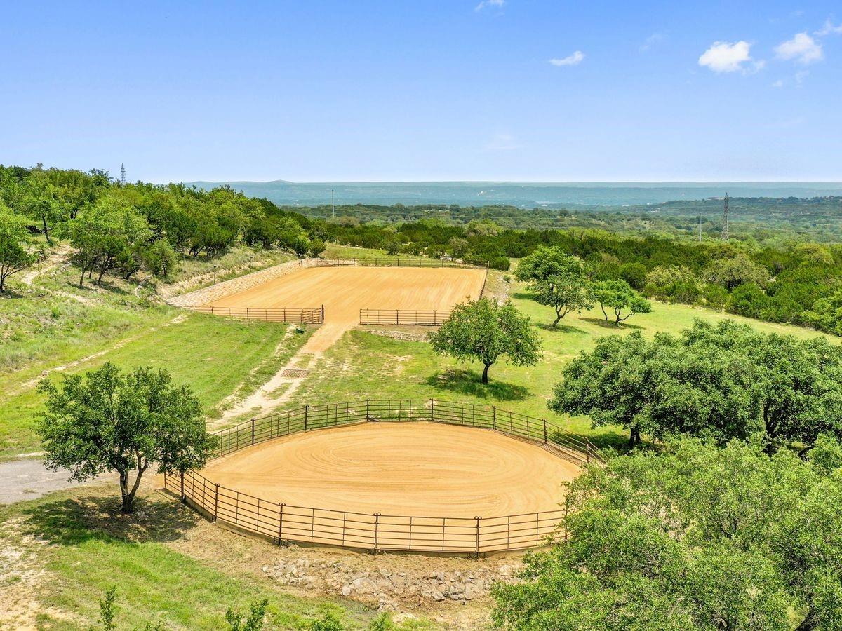 Embrace the ultimate equestrian lifestyle on this breathtaking 20.9-acre property, perfectly designed for horse enthusiasts. Featuring a horse barn with paddocks, RV hook-up and RV dump station, and a fully fenced perimeter with cross fencing, this property offers everything you need. Enjoy spectacular 360-degree hill country views from within a secure gated subdivision. A spectacular building site with 360 degree views of the hill country is located at the top of hill for a future homesite if you wish to build another home. The equestrian facilities include a round pen and a lighted riding arena, perfect for day and night training sessions. Located close to Austin, Bee Cave, and the renowned Texas wine country, this property is just minutes from a new $130 million retail center, three LCRA parks that allow trail riding and camping with your horses, and a new 1,500-acre Travis County wilderness park for hiking. Majestic oak trees enhance the natural beauty of the landscape, while the neighborhood provides excellent dog-walking opportunities. Additionally, the property is only 10 minutes from Baylor, Scott and White Hospital, offering convenience and peace of mind. This is your chance to experience unparalleled country living with modern amenities and nearby city conveniences."