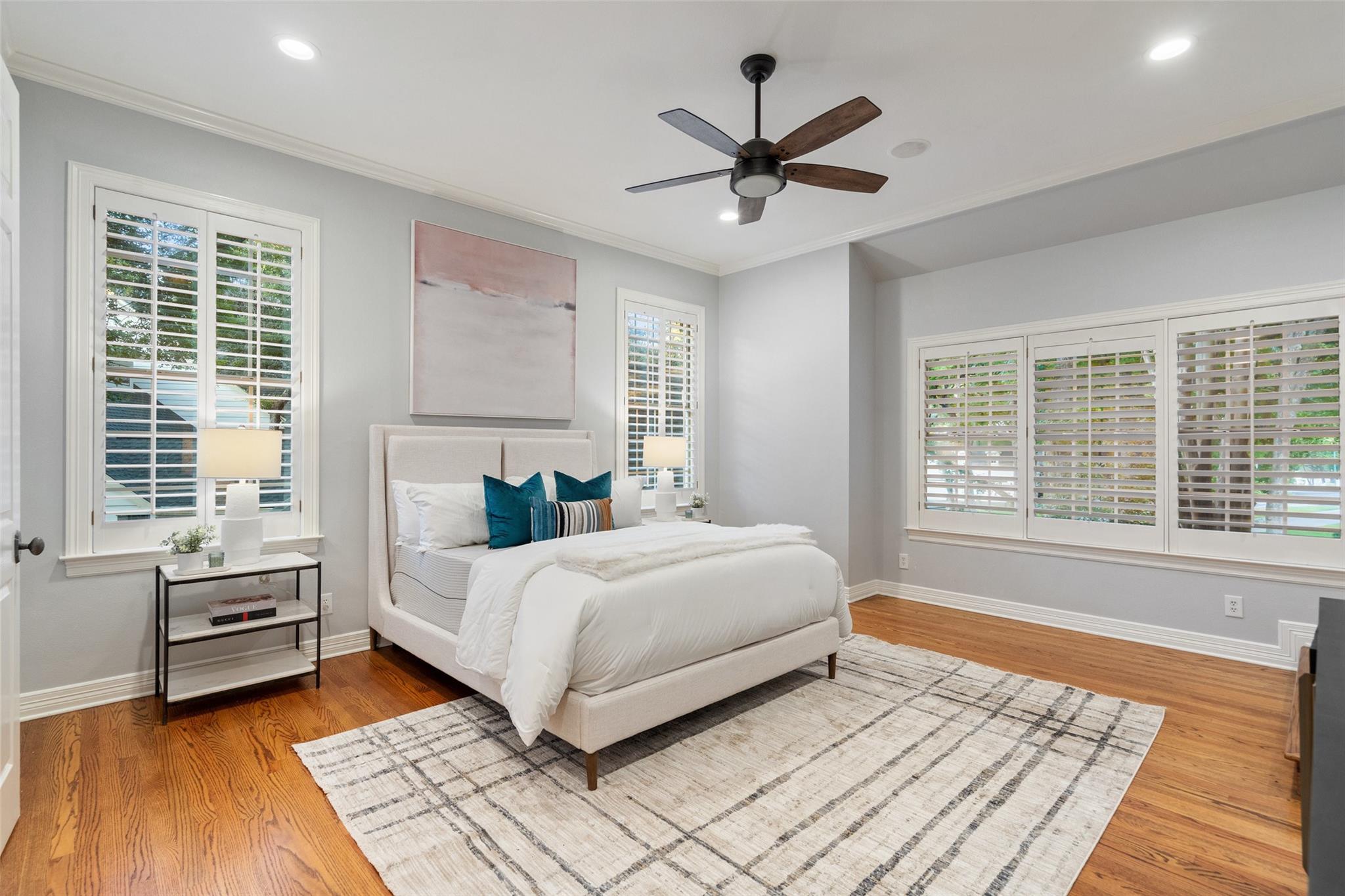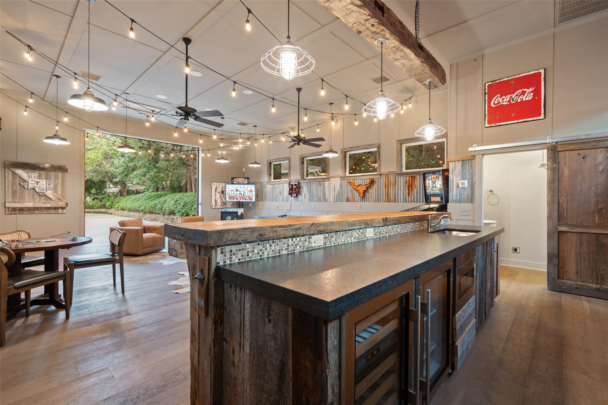 Situated on a picturesque tree lined cul-de-sac in the heart of Eanes ISD, this timeless home is one of a kind. Set on almost an acre, the serene park-like yard is highlighted with a rare 864 sq ft barn that has been completely renovated showcasing a half bath, bar area with dual Sub-Zero bar refrigerators, ice maker & microwave. The ADU was thoughtfully designed with the Texas lifestyle in mind with reclaimed barn wood materials, huge sliding doors to bring the outside in and wide plank wood flooring that make this multipurpose separate structure something rarely found in the Westlake area. In the main house you’re greeted with a quaint covered front porch. This custom designed floor plan has a dedicated office with both the primary and guest-ensuite bedrooms conveniently located on the main level. The renovated kitchen has beautiful quartzite countertops, built-in refrigerator, wine fridge and 6 burner gourmet range plus griddle with a double oven. Hardwood flooring is featured throughout the main level of the home. Upstairs are two generous sized secondary bedrooms with walk-in closets and an oversized flex room that could easily be converted into another spacious bedroom. The interior of the home has been freshly painted and carpeting has been installed on the upper level making this stunning home completely move in ready. The 3 ½ car garage with epoxy flooring provides plenty of extra room for a workshop. Step out to the private backyard to enjoy the expanded deck and sprawling shaded lawn with plenty of room for anything you can imagine from the pool of your dreams, pickleball court, sport court or all the above. Located within walking distance to blue ribbon zoned schools Cedar Creek Elementary & Hill Country Middle. One mile from Westlake High School. Minutes away from downtown Austin, Barton Springs, Zilker Park, popular South Congress Ave & 13 miles to the airport, you couldn’t ask for a better location and setting in the most desirable location in Austin.