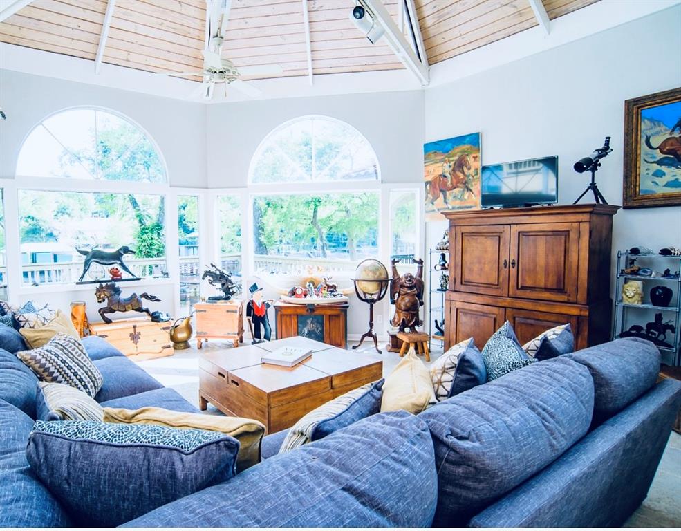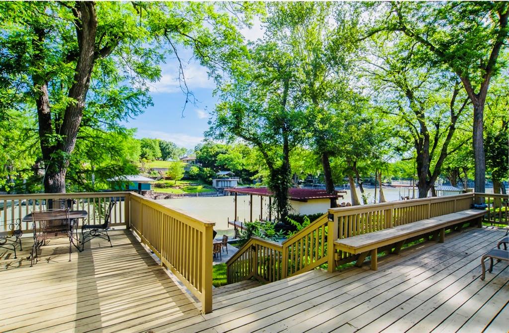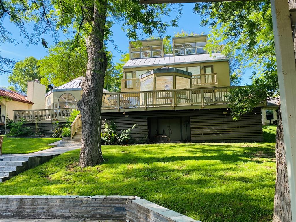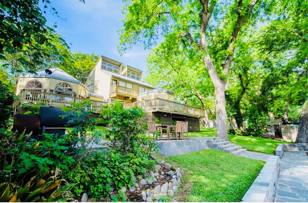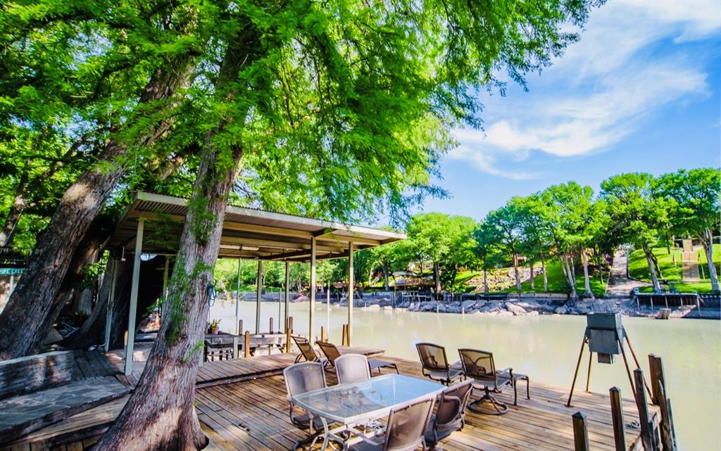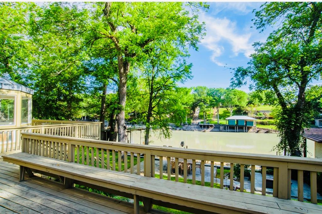 This is a rare find! Extraordinary custom waterfront home on Lake McQueeney. The Guadalupe River flows behind with outstanding views from a myriad of outdoor spaces. Architectural digest worthy from the stunning design to the appointments throughout, it's one of a kind. Admire the wood ceiling treatments, swoon at the exposed trusses and enjoy the circular rooms time and time again! Tree lined drive highlights the two detached garages making guests welcome. The half acre lot affords this beauty the ability to shine from every angle.