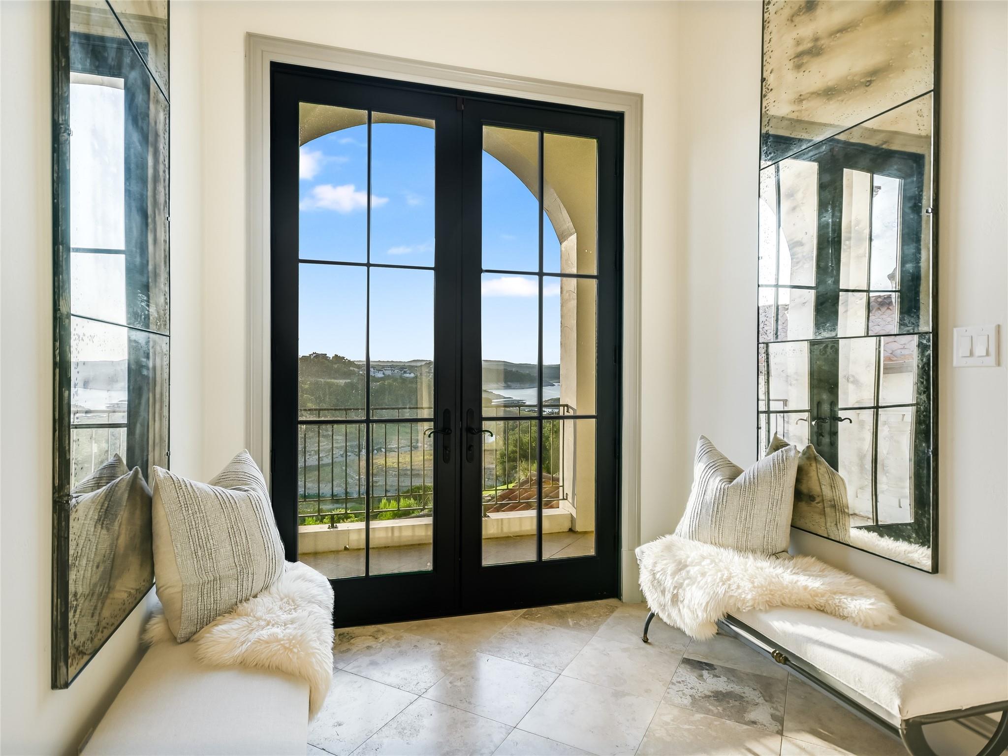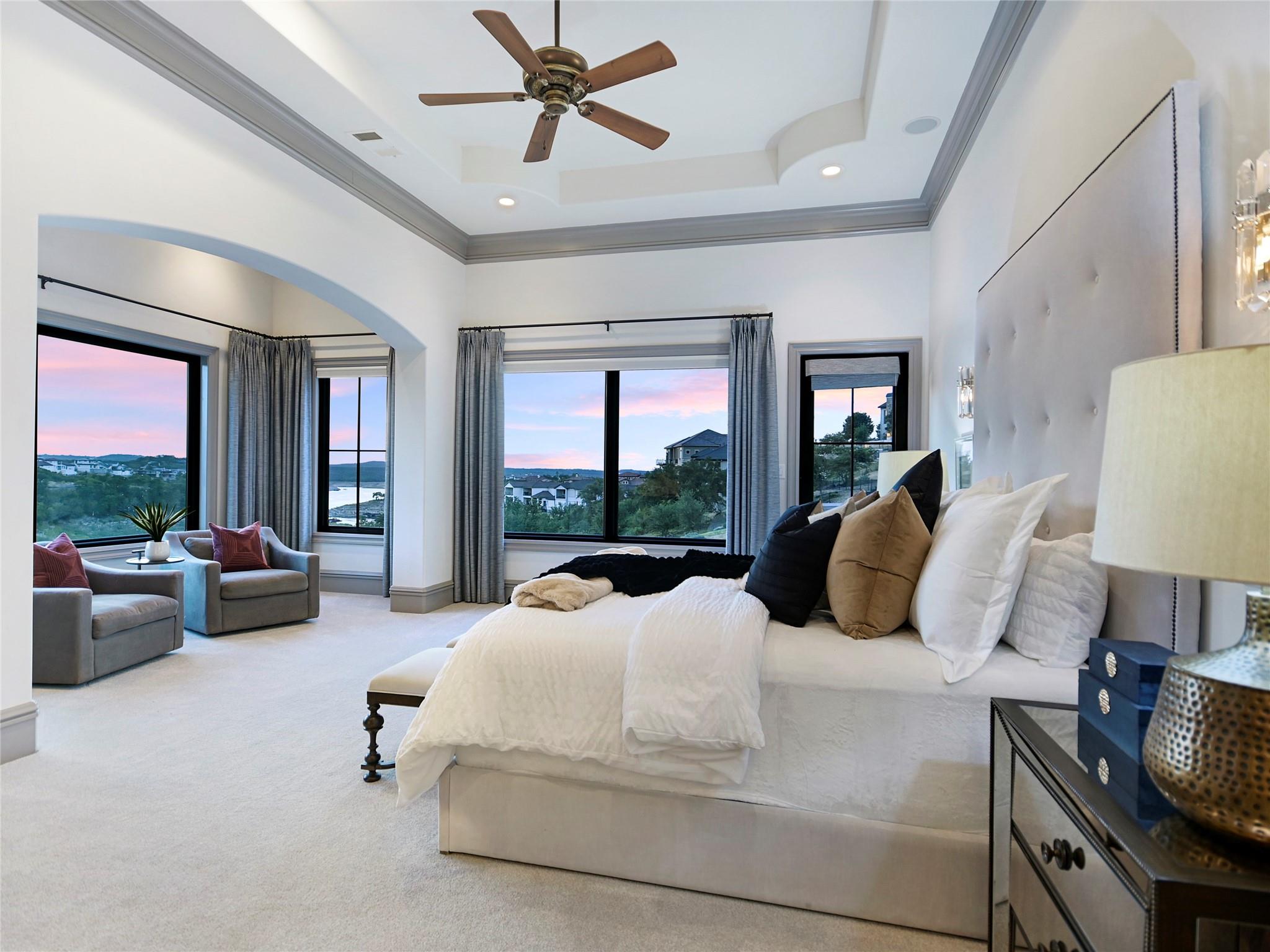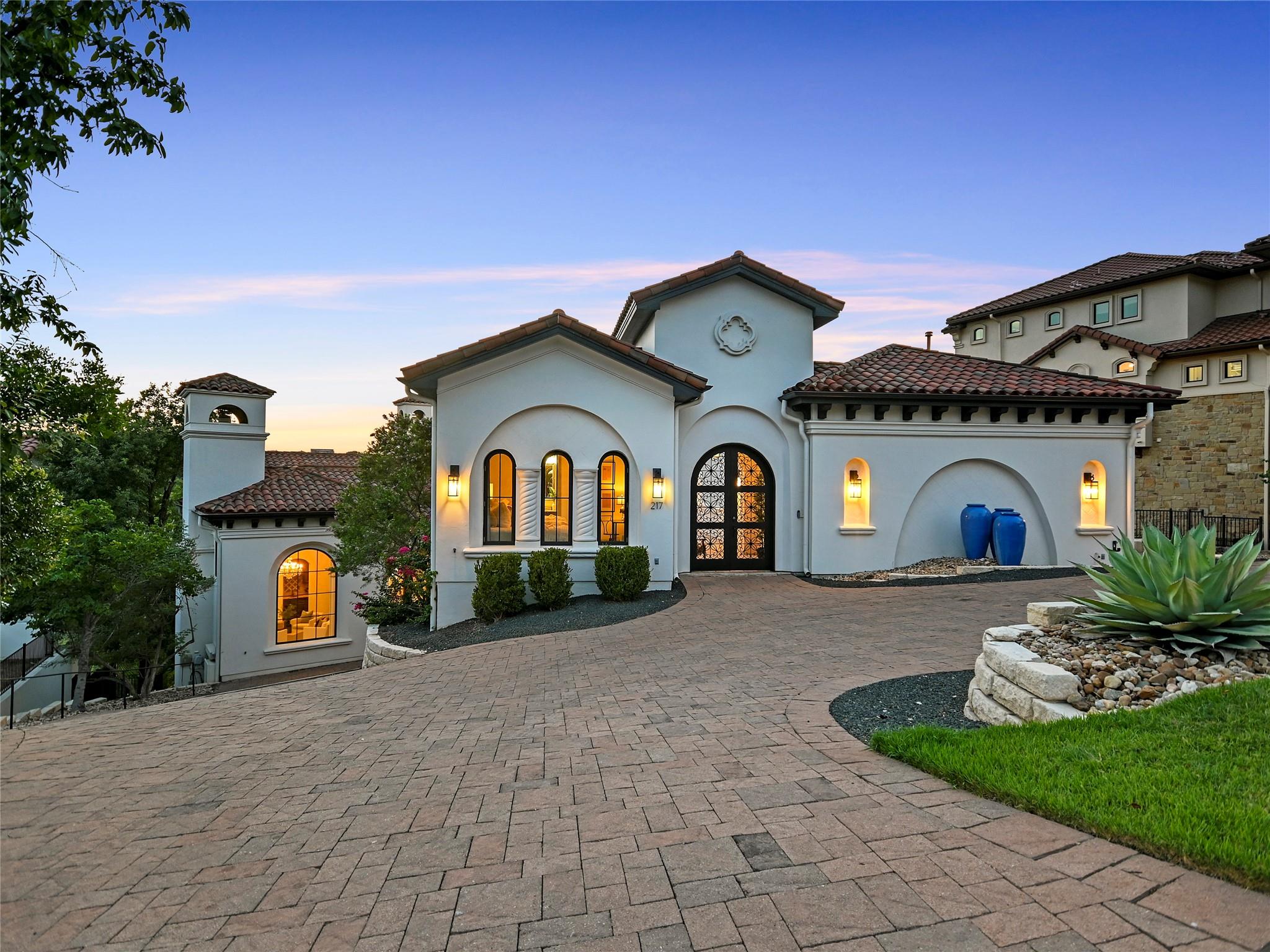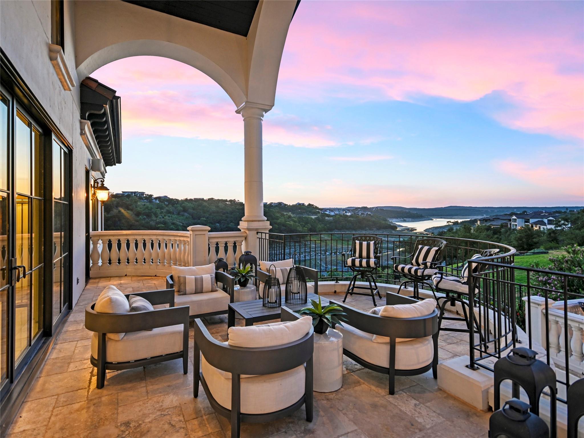 This Timeless Mediterranean-Santa Barbara Style home has a passionate history beginning with the home site selection, chosen to embrace one of the most iconic sunset coves on Lake Travis, overlooking the Large Yacht Marina. Incredible architecture and commercial grade engineering, providing a unique multi-level floor plan, ideal for formal entertaining and relaxed lake living! It was an award winning custom home, participating in the 2010 Parade of Home Tour, by a legacy estate, experienced home builder. The home provides 5 large bedrooms, two are separate entrance guest villas and 3 additional full bedrooms located in the main home, all with on suite baths. Another unique lifestyle feature is an upper tier entrance and private courtyard, with a stately home office and board room. Additionally, the main level boasts a Formal dining and living room, A Massive Greatroom, dining and kitchen, with an expansive verandah, providing panoramic views of the Lake and Yacht Marina. The lower level offers a game room and bar, media room, 2 guest bedrooms, fitness and the large verandah overlooking the lake, pool, waterfall and outdoor kitchen area. The mid-level Guest Villa, is very private and opens to the spa, with lake views. Additionally, the home has 2 Stone Gas-Log fireplaces and 2 elevators. The Main Entry Spiral Staircase is definitely a wow factor of this home! Community features include, Yacht Club and Restaurant, Fitness, Tennis and Pickle-Ball Club, Several Community Pools, Private and Public Golf Courses and options available within the Marina, based on availability. Plenty of area shopping and restaurants, with an easy commute to the Wine Country and Downtown Austin! Go to SerenitySunsets.com to see more!