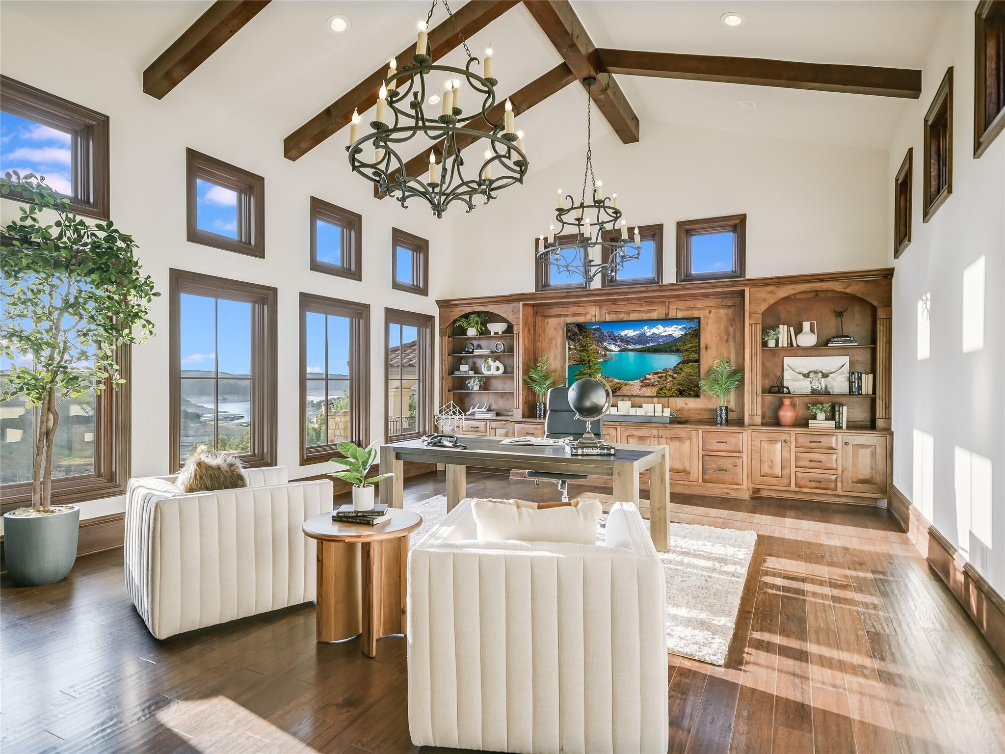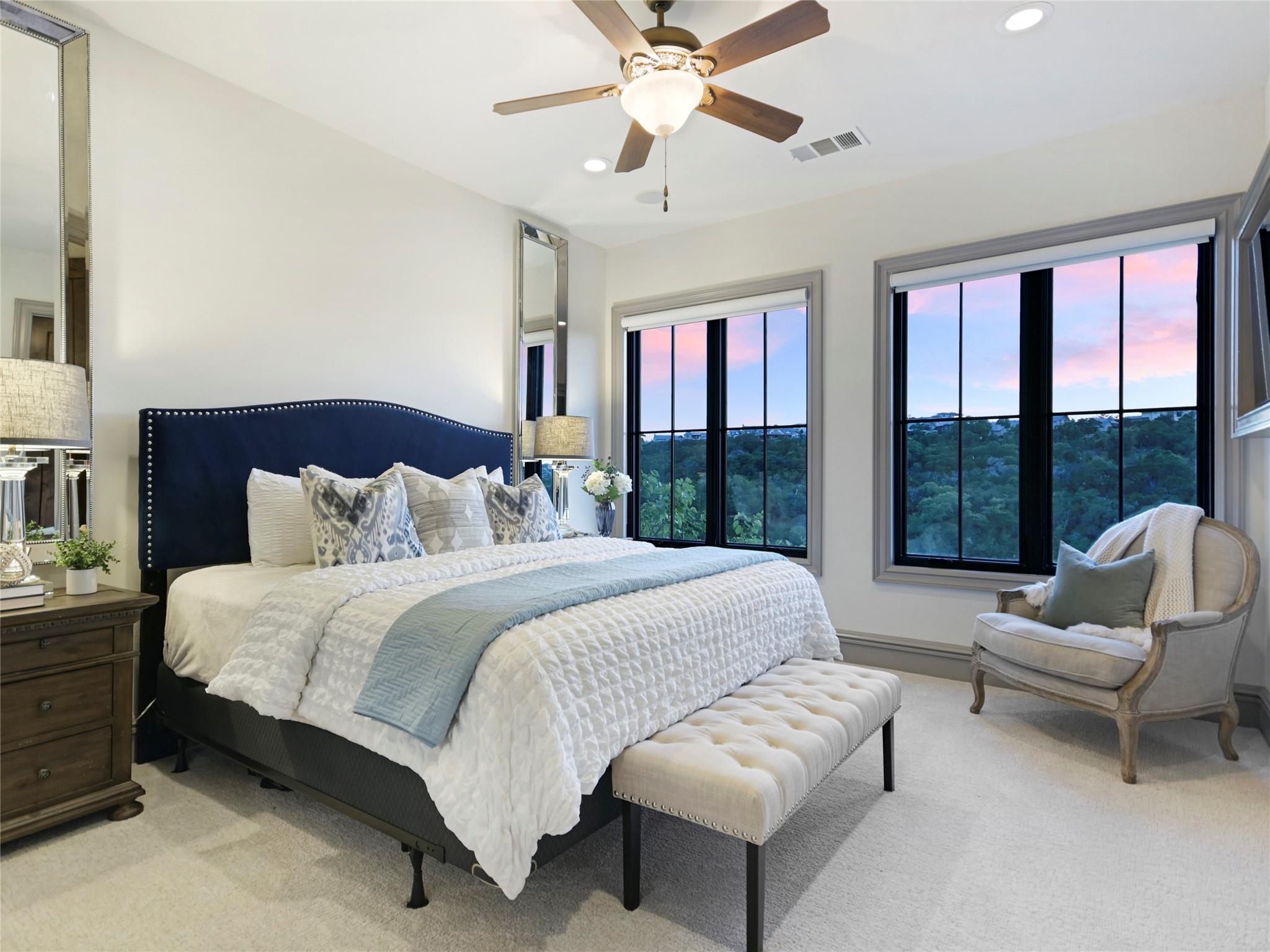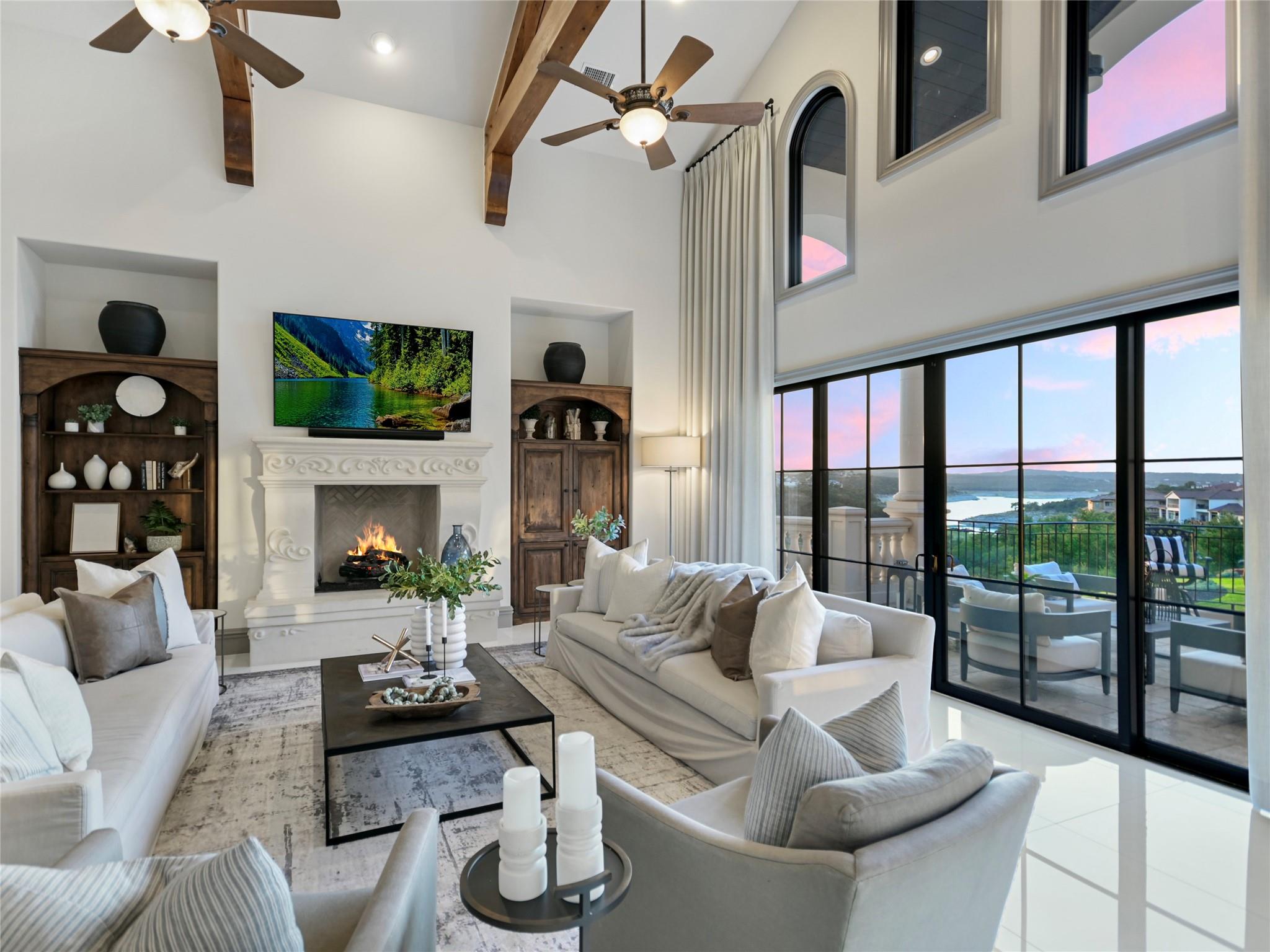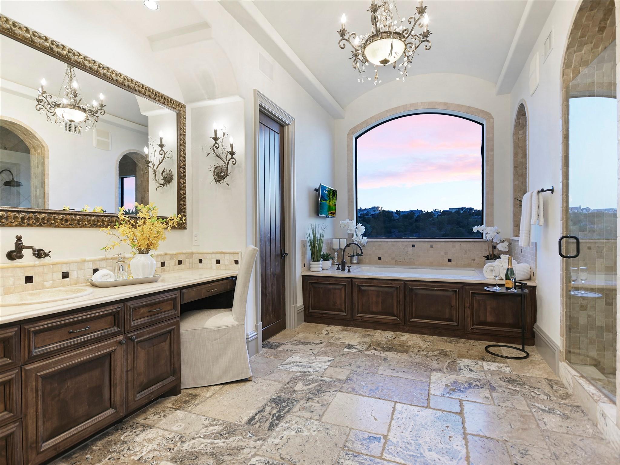 This Timeless Mediterranean-Santa Barbara Style home has a passionate history beginning with the home site selection, chosen to embrace one of the most iconic sunset coves on Lake Travis, overlooking the Large Yacht Marina. Incredible architecture and commercial grade engineering, providing a unique multi-level floor plan, ideal for formal entertaining and relaxed lake living! It was an award winning custom home, participating in the 2010 Parade of Home Tour, by a legacy estate, experienced home builder. The home provides 5 large bedrooms, two are separate entrance guest villas and 3 additional full bedrooms located in the main home, all with on suite baths. Another unique lifestyle feature is an upper tier entrance and private courtyard, with a stately home office and board room. Additionally, the main level boasts a Formal dining and living room, A Massive Greatroom, dining and kitchen, with an expansive verandah, providing panoramic views of the Lake and Yacht Marina. The lower level offers a game room and bar, media room, 2 guest bedrooms, fitness and the large verandah overlooking the lake, pool, waterfall and outdoor kitchen area. The mid-level Guest Villa, is very private and opens to the spa, with lake views. Additionally, the home has 2 Stone Gas-Log fireplaces and 2 elevators. The Main Entry Spiral Staircase is definitely a wow factor of this home! Community features include, Yacht Club and Restaurant, Fitness, Tennis and Pickle-Ball Club, Several Community Pools, Private and Public Golf Courses and options available within the Marina, based on availability. Plenty of area shopping and restaurants, with an easy commute to the Wine Country and Downtown Austin! Go to SerenitySunsets.com to see more!