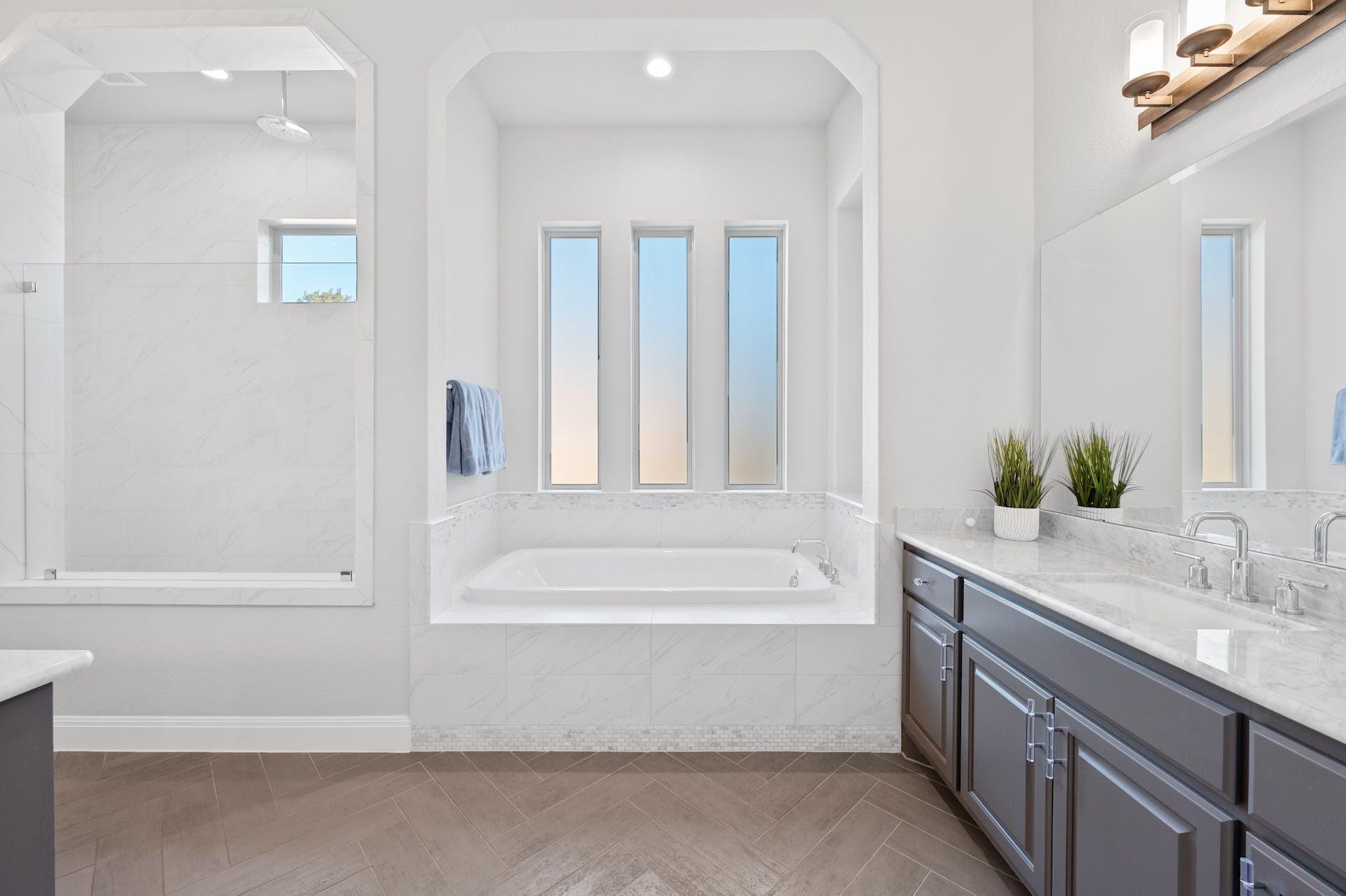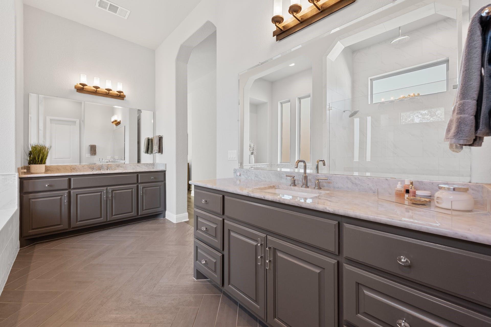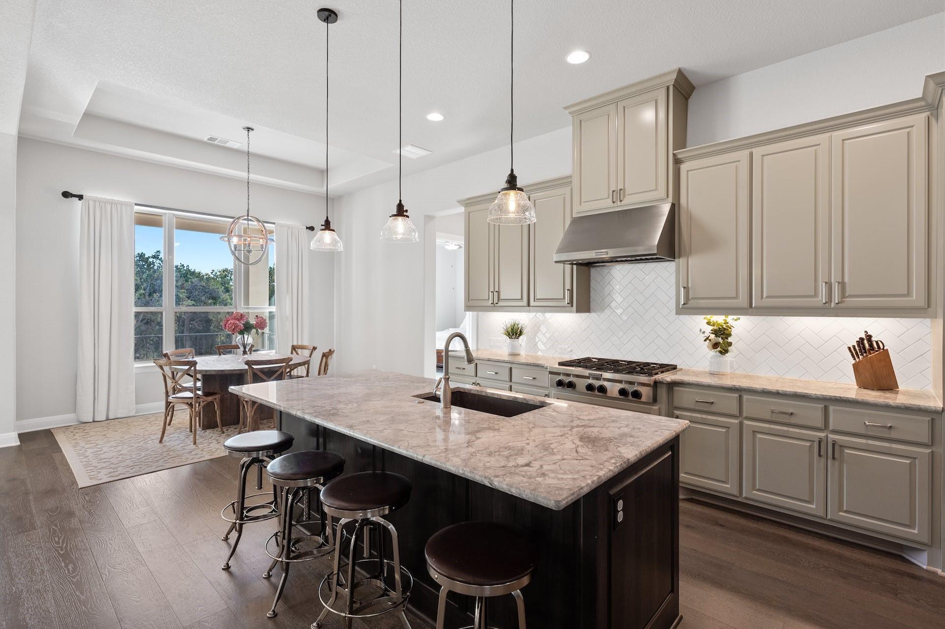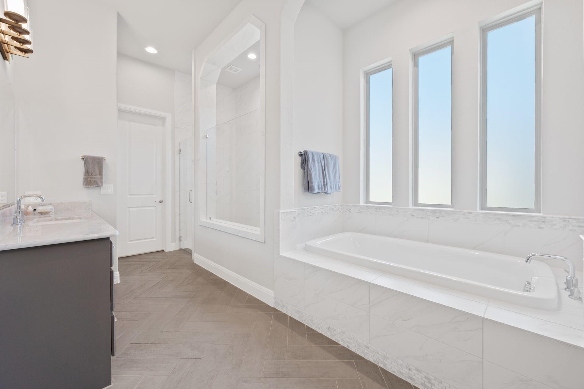 The immersion of Austin’s natural beauty and tranquility await the new owners of this luxuriously modern Mediterranean style estate. The welcoming arched entrance sets the mood when stepping into the home and onto the custom wide oak flooring. Soft light streams in from the windows and crisp, white walls combine with natural woods for a warm, inviting atmosphere. Gorgeous architectural features include high ceilings with arches connecting the generous downstairs living spaces, wood beams, and iron fixture detailing. The floor plan has been exceptionally designed and includes a large owners suite, a second bedroom, a study, and a vast open space combining the living room and kitchen on the first floor. A stunning central fireplace and the enchanting outdoor views through the picture windows complete this delightful living space. Moving upstairs, the area has been expertly divided into three spacious bedrooms, two bathrooms, and a large playroom. One of the bedrooms includes a bonus sitting nook with a sweet Juliet balcony. Added modern amenities have been well-planned including a water filtration system throughout, reverse osmosis water system, an oversized utility room, a butler pantry with wine fridge and extra storage, and a three-car garage. The property has been pre-wired for security cameras as well as Sono speakers in the kitchen and master suite. A covered back patio leads to the extensive backyard and includes a lounge area, a built in grill with storage, and a refreshing pool surrounded by stone and lush greenery creating an oasis for the Texas summertime. Backing to the greenbelt which connects to the Emma Long Park greenbelt, the property sits on approximately 0.4 acres on a cul-de-sac in the heart of a small, quiet gated community.
