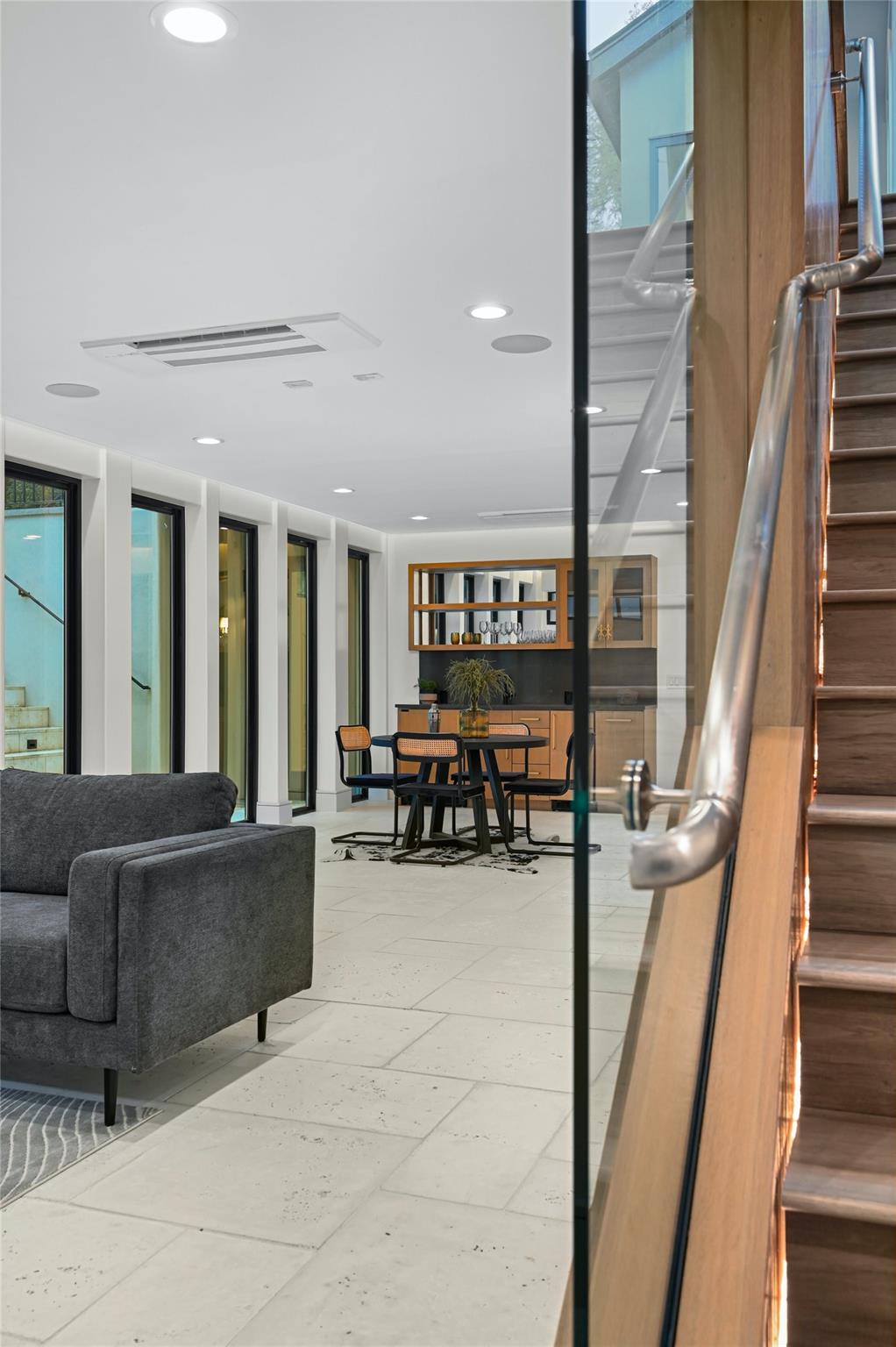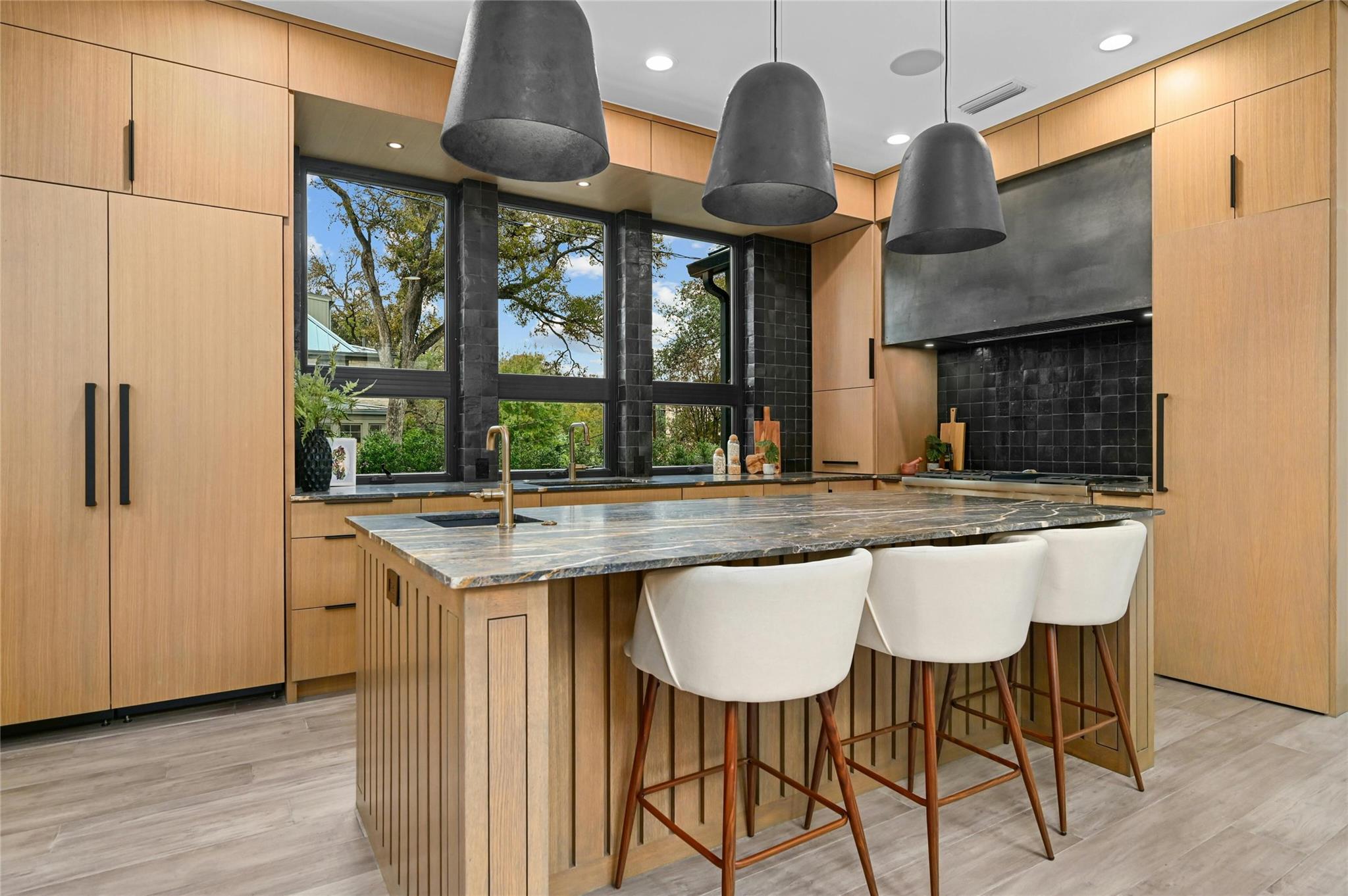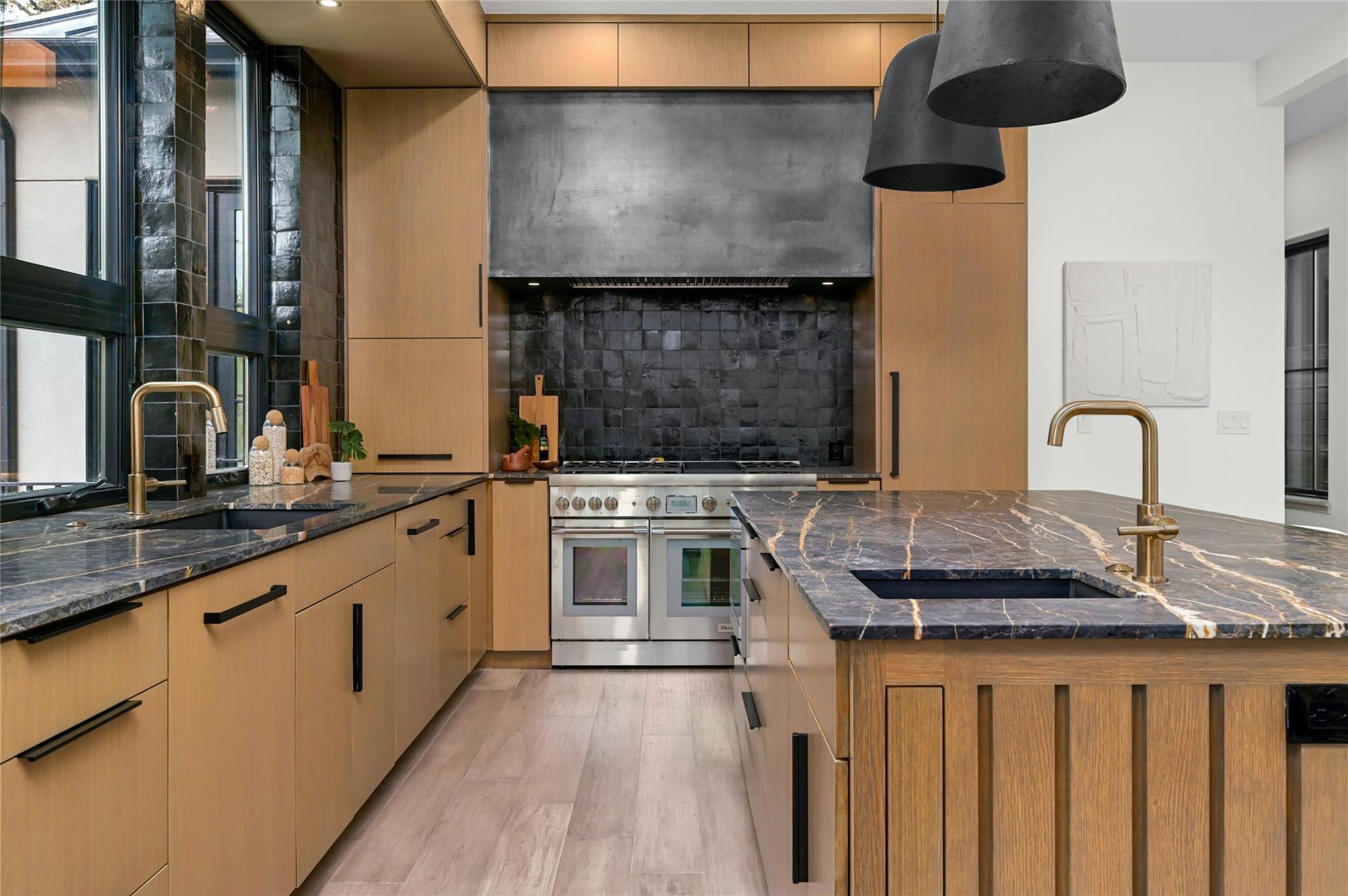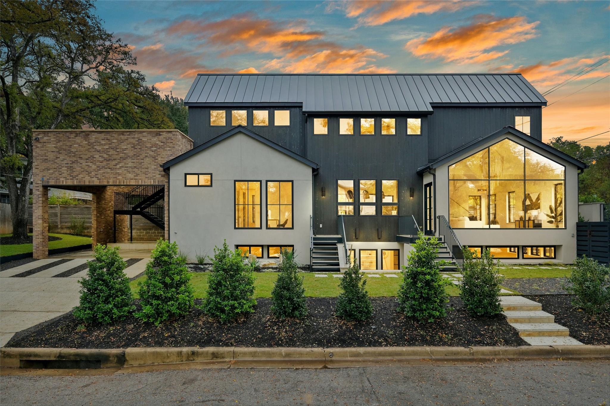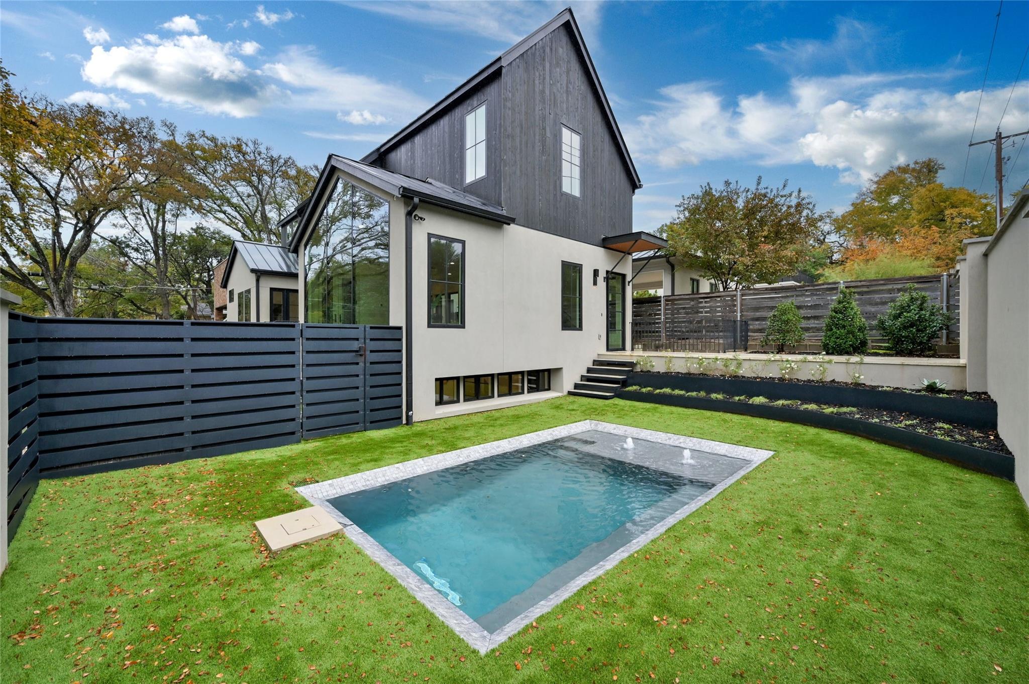 Welcome to this modern haven in the heart of Tarrytown, Austin—an extraordinary masterpiece meticulously crafted by Otto Design & Build and the esteemed Holland Architectural. This 4-bedroom, 4.5-bathroom residence spanning 3,690 sq ft stands as a tribute to entertainment and city living, located in Tarrytown with extremely close proximity to Lake Austin, Oyster Landing, Quince, Hula Hut, Mozart's Coffee, and the Lake Austin boat launch and marina. The stunning exterior, adorned with the craftsmanship of Delta Millworks' thermally-modified black cedar paneling, sets the stage for the architectural journey that unfolds within. The gourmet kitchen, featuring custom metal woven into rift-cut oak cabinetry, and a hidden pantry—all complemented by custom rift-cut oak paneled Thermador appliances—captivates upon entry. The first floor is meticulously designed, hosting a private office with exterior access and en-suite bath, providing an ideal work/life balance. Ascend to the second floor to discover a cathedral-ceiling primary suite, complete with a private balcony and built-in gas fireplace. The subterranean floor features a projector, surround sound, wine room, fully equipped bar, and a private cigar patio. An additional ensuite bedroom adds flexibility for guests or returning college students. The true paradise awaits just beyond, where custom paver flooring leads to a private pool surrounded by custom metal edging, creating a sexy and entertaining ambiance.