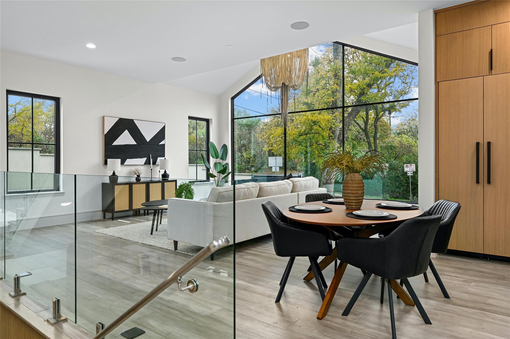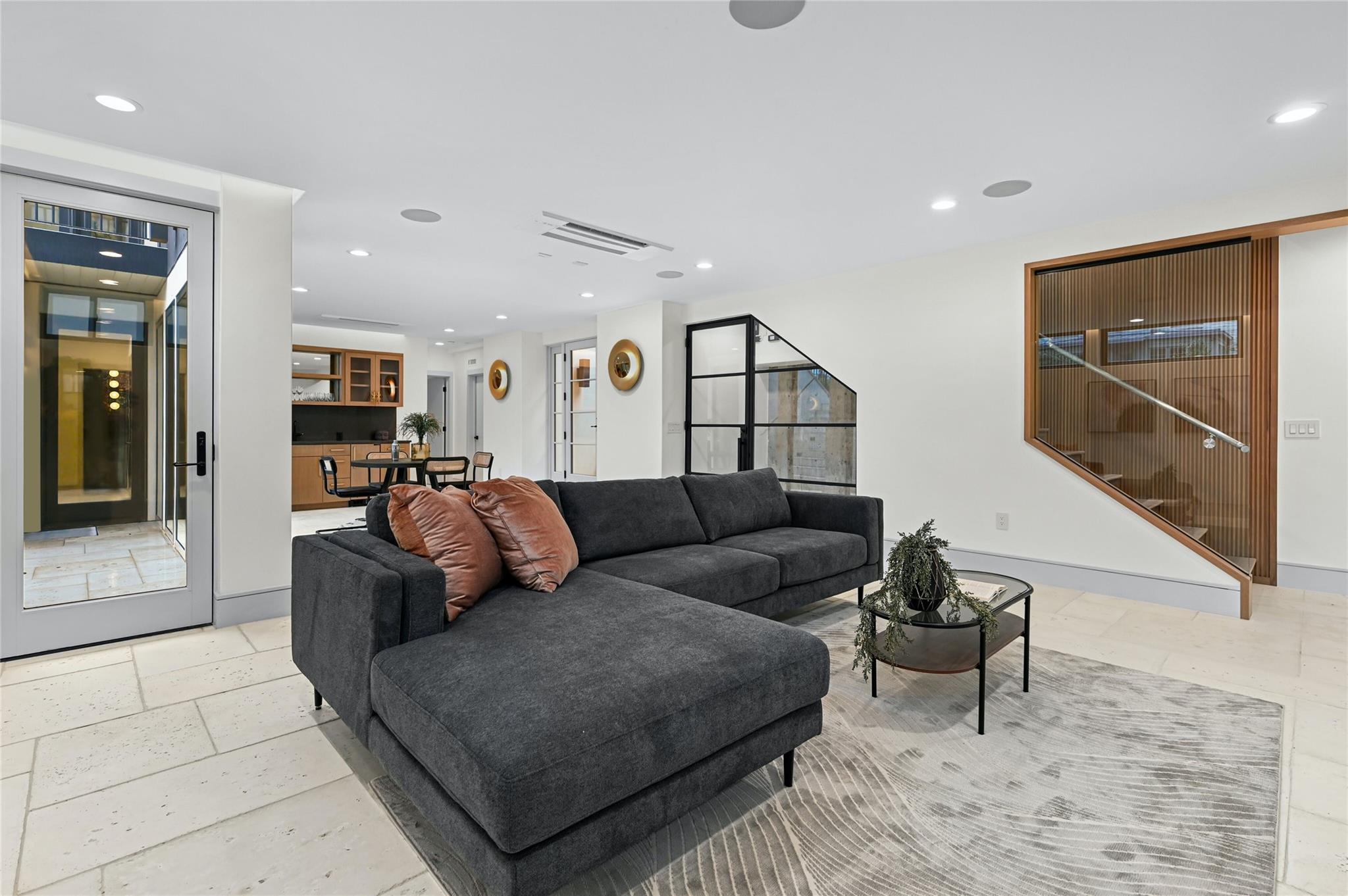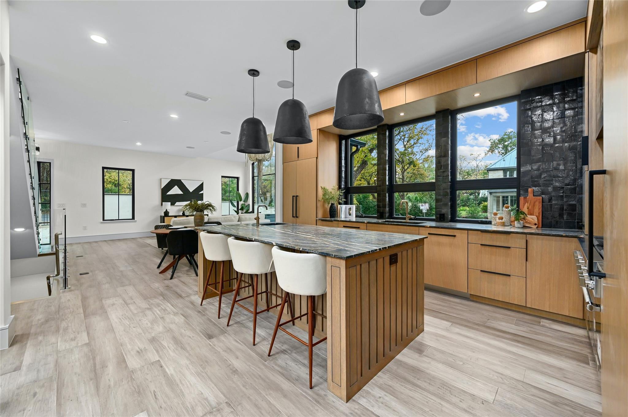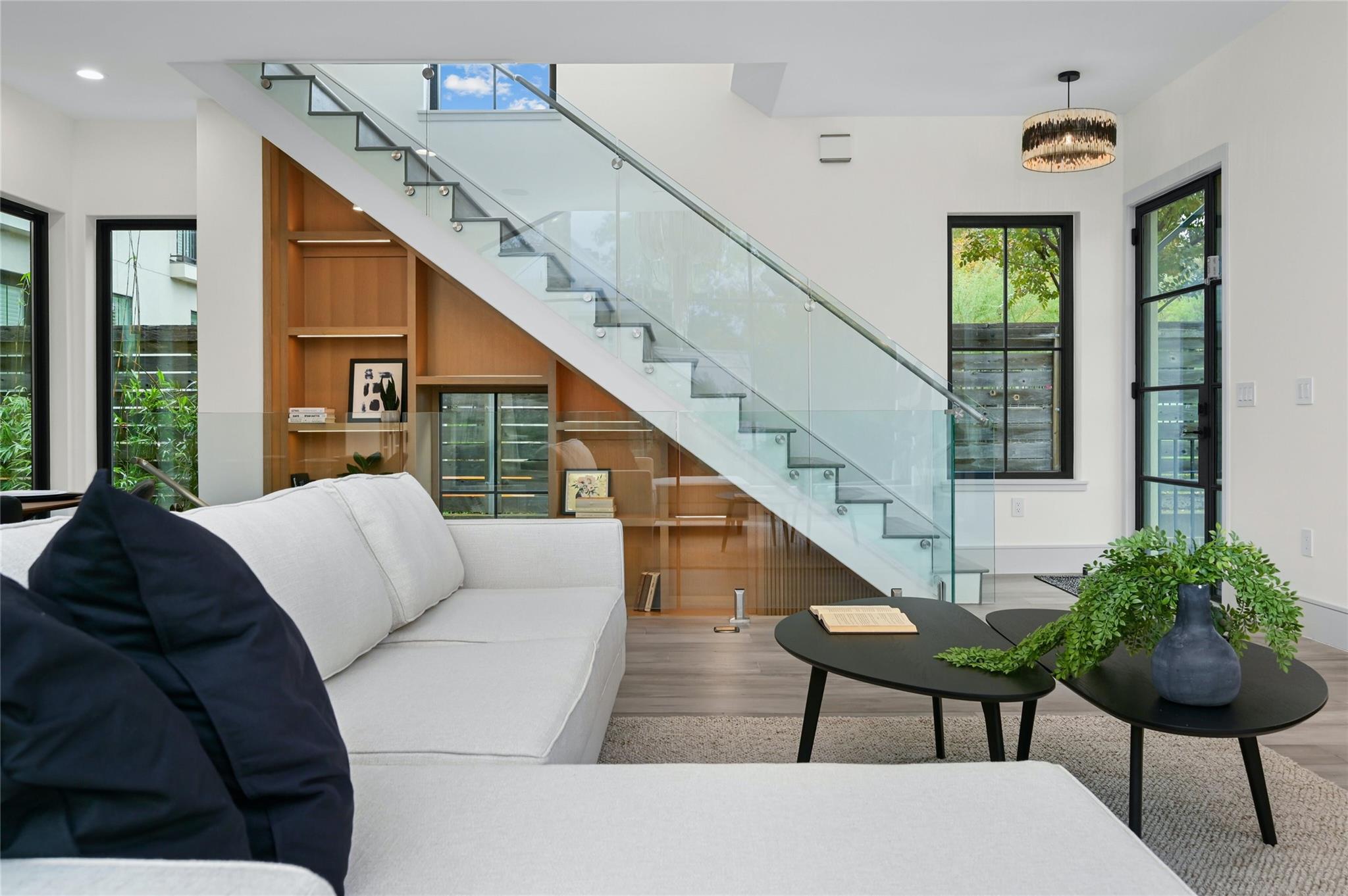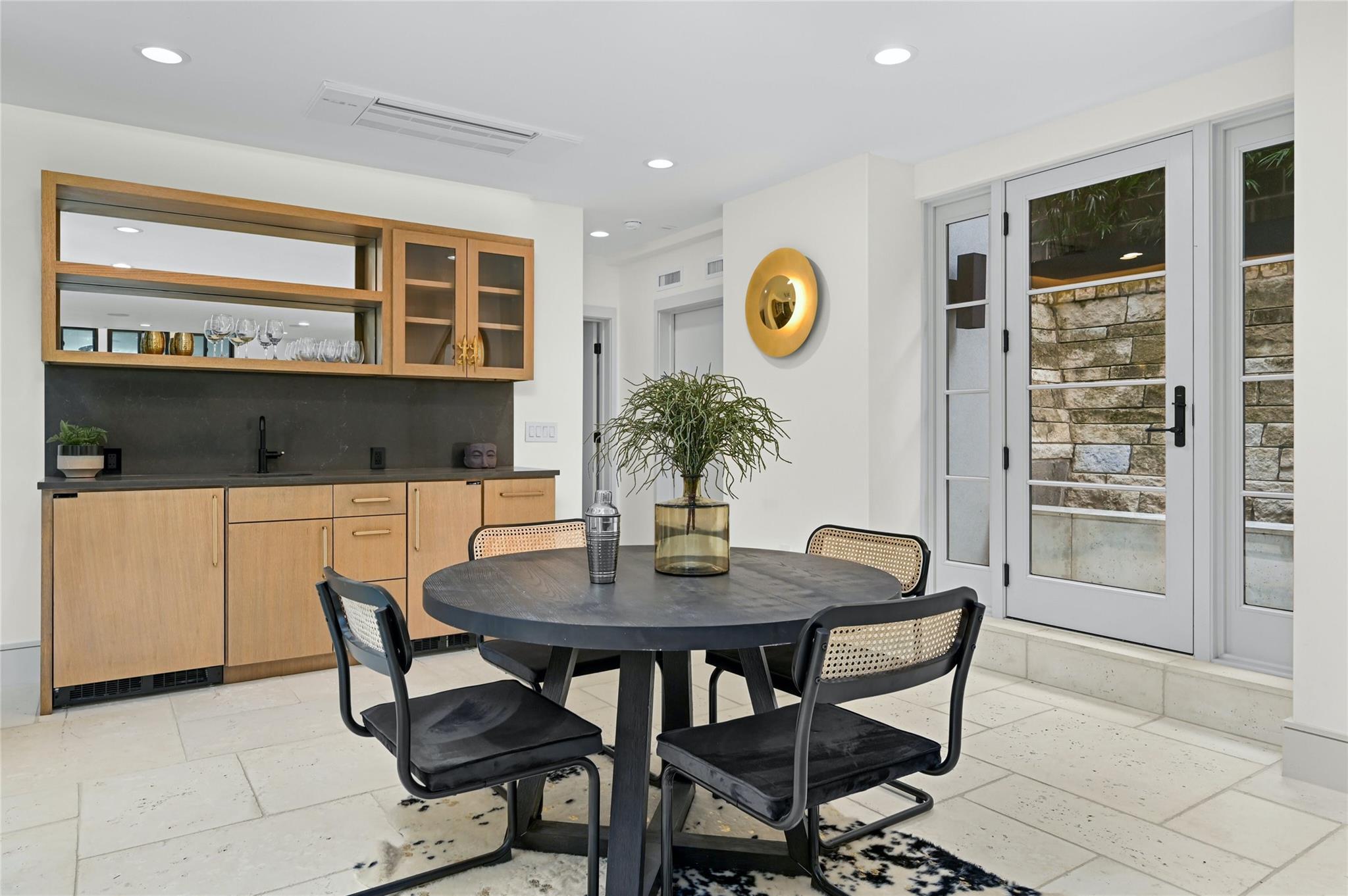 Welcome to this modern haven in the heart of Tarrytown, Austin—an extraordinary masterpiece meticulously crafted by Otto Design & Build and the esteemed Holland Architectural. This 4-bedroom, 4.5-bathroom residence spanning 3,690 sq ft stands as a tribute to entertainment and city living, located in Tarrytown with extremely close proximity to Lake Austin, Oyster Landing, Quince, Hula Hut, Mozart's Coffee, and the Lake Austin boat launch and marina. The stunning exterior, adorned with the craftsmanship of Delta Millworks' thermally-modified black cedar paneling, sets the stage for the architectural journey that unfolds within. The gourmet kitchen, featuring custom metal woven into rift-cut oak cabinetry, and a hidden pantry—all complemented by custom rift-cut oak paneled Thermador appliances—captivates upon entry. The first floor is meticulously designed, hosting a private office with exterior access and en-suite bath, providing an ideal work/life balance. Ascend to the second floor to discover a cathedral-ceiling primary suite, complete with a private balcony and built-in gas fireplace. The subterranean floor features a projector, surround sound, wine room, fully equipped bar, and a private cigar patio. An additional ensuite bedroom adds flexibility for guests or returning college students. The true paradise awaits just beyond, where custom paver flooring leads to a private pool surrounded by custom metal edging, creating a sexy and entertaining ambiance.