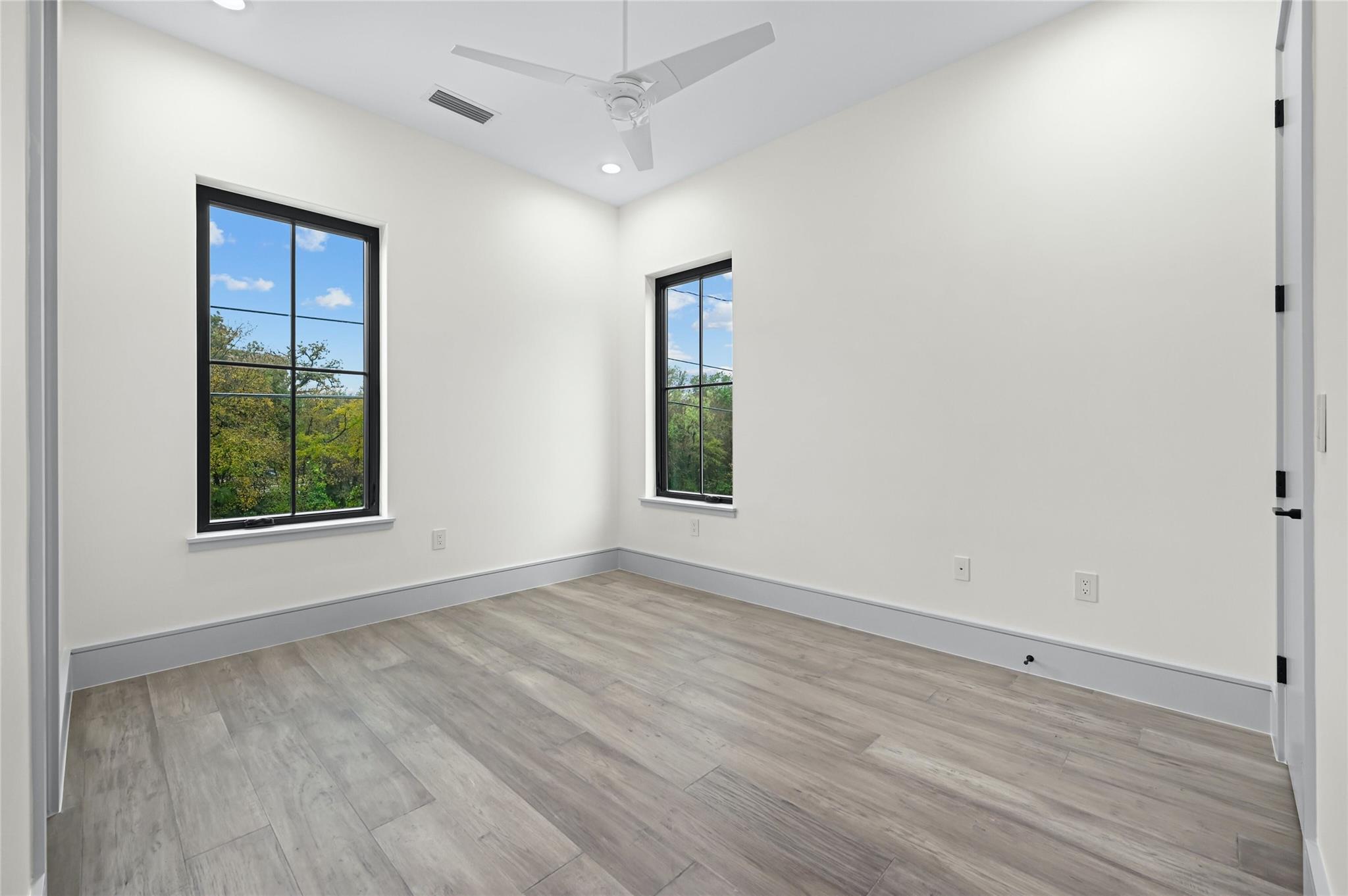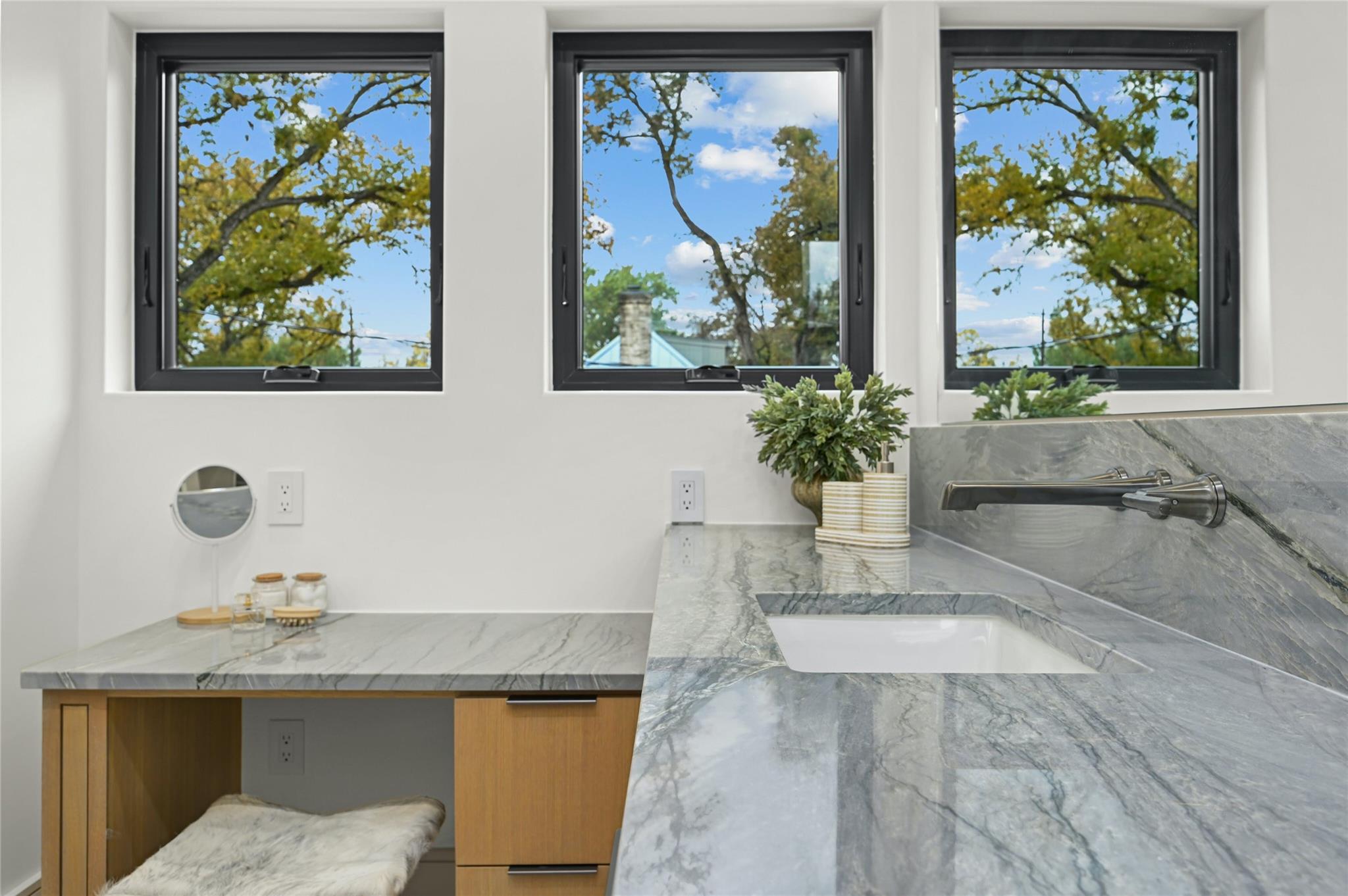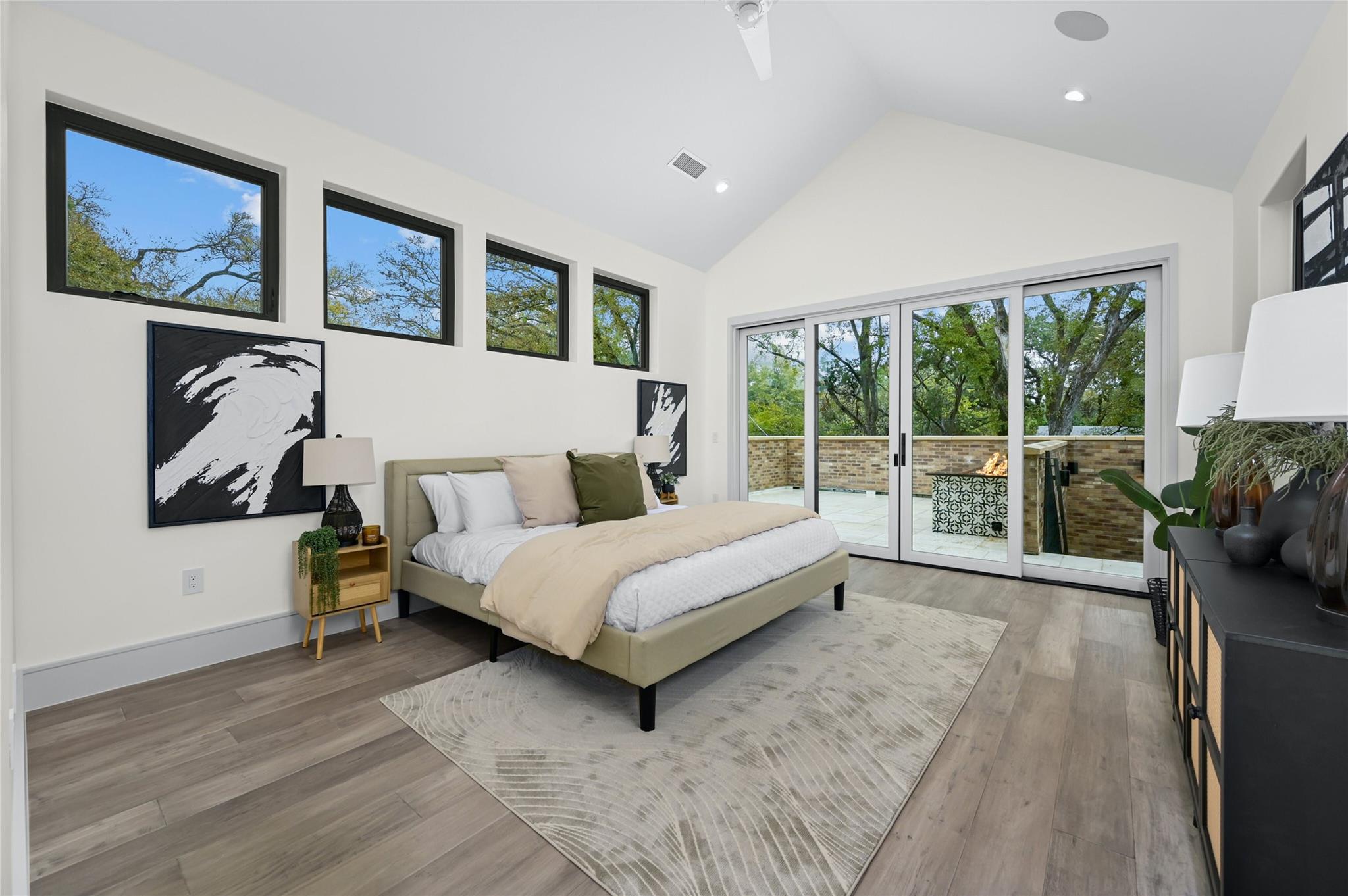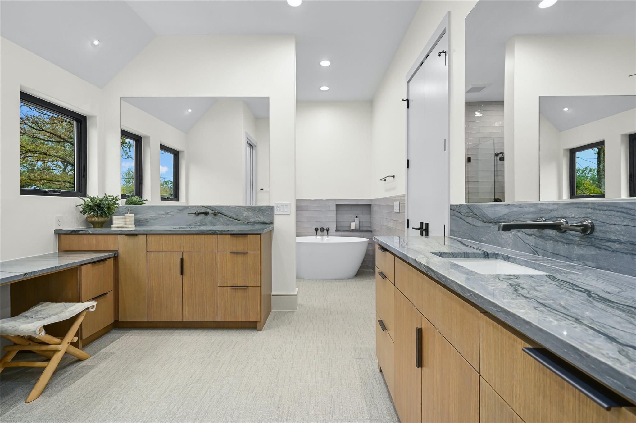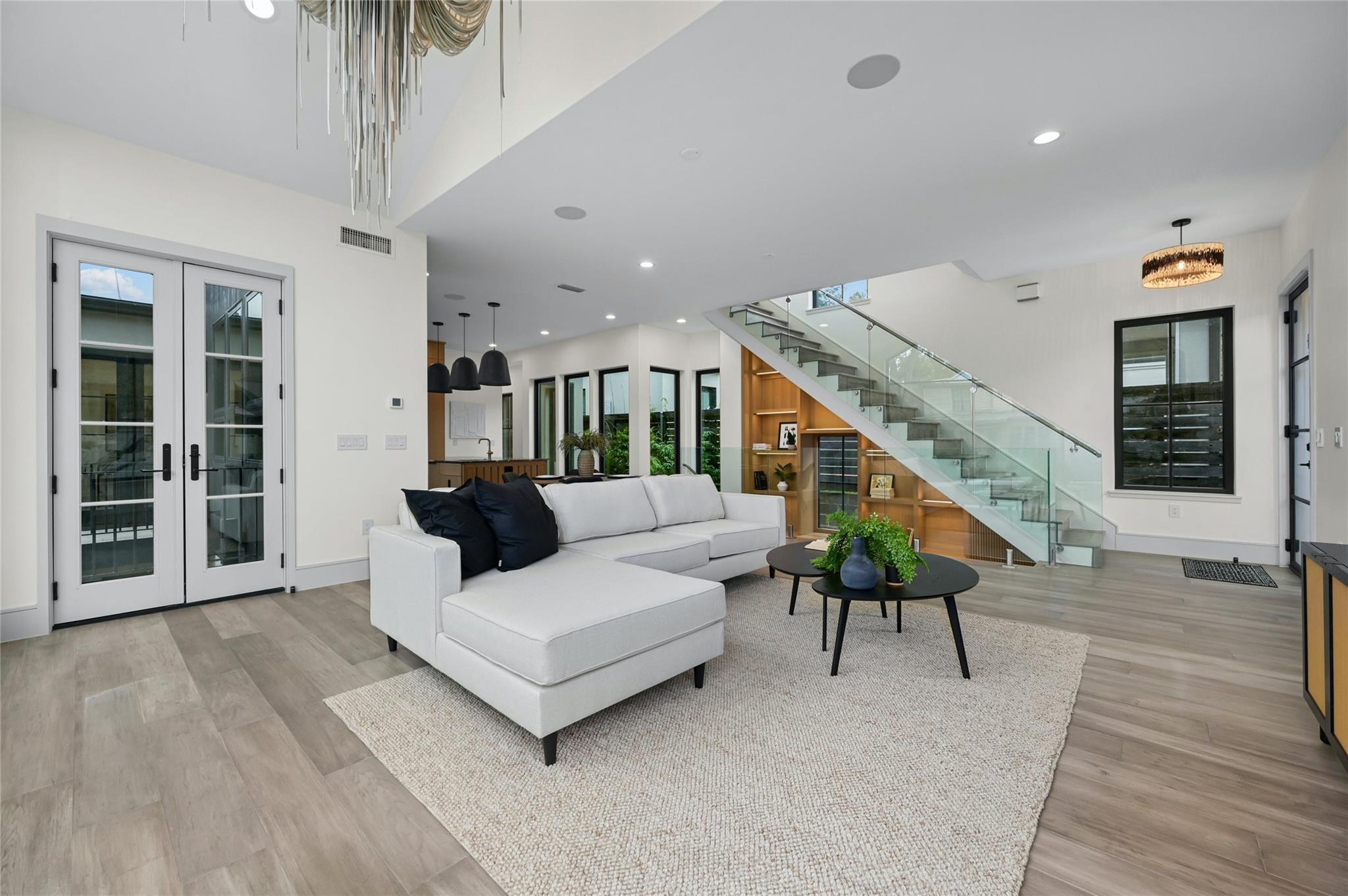 Welcome to this modern haven in the heart of Tarrytown, Austin—an extraordinary masterpiece meticulously crafted by Otto Design & Build and the esteemed Holland Architectural. This 4-bedroom, 4.5-bathroom residence spanning 3,690 sq ft stands as a tribute to entertainment and city living, located in Tarrytown with extremely close proximity to Lake Austin, Oyster Landing, Quince, Hula Hut, Mozart's Coffee, and the Lake Austin boat launch and marina. The stunning exterior, adorned with the craftsmanship of Delta Millworks' thermally-modified black cedar paneling, sets the stage for the architectural journey that unfolds within. The gourmet kitchen, featuring custom metal woven into rift-cut oak cabinetry, and a hidden pantry—all complemented by custom rift-cut oak paneled Thermador appliances—captivates upon entry. The first floor is meticulously designed, hosting a private office with exterior access and en-suite bath, providing an ideal work/life balance. Ascend to the second floor to discover a cathedral-ceiling primary suite, complete with a private balcony and built-in gas fireplace. The subterranean floor features a projector, surround sound, wine room, fully equipped bar, and a private cigar patio. An additional ensuite bedroom adds flexibility for guests or returning college students. The true paradise awaits just beyond, where custom paver flooring leads to a private pool surrounded by custom metal edging, creating a sexy and entertaining ambiance.