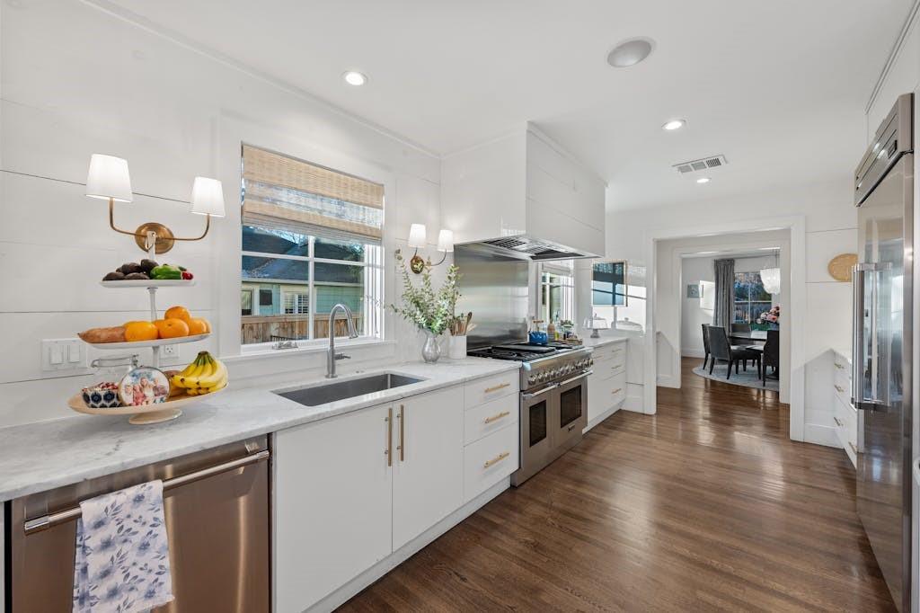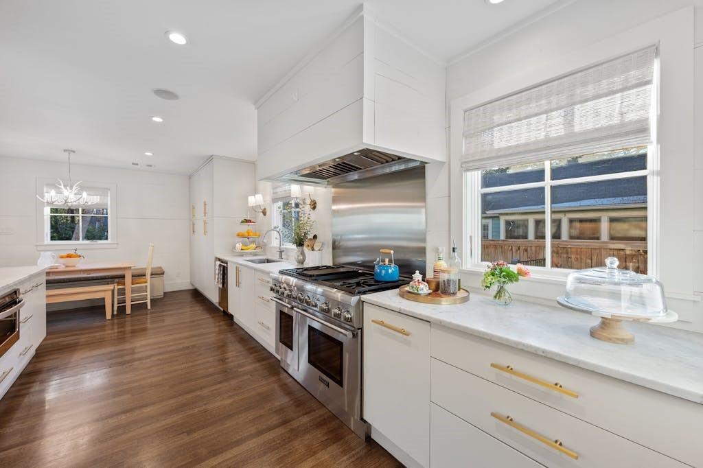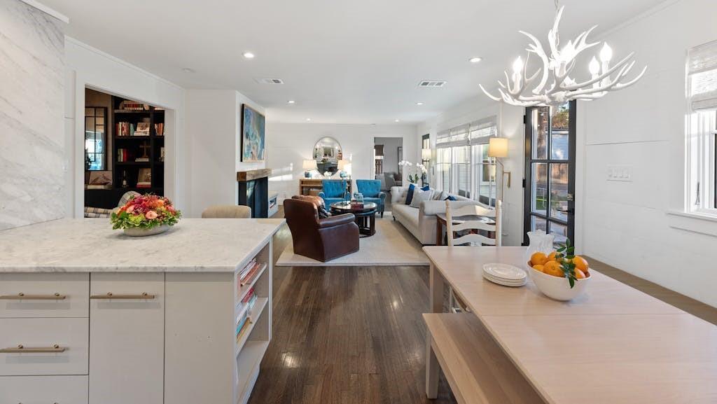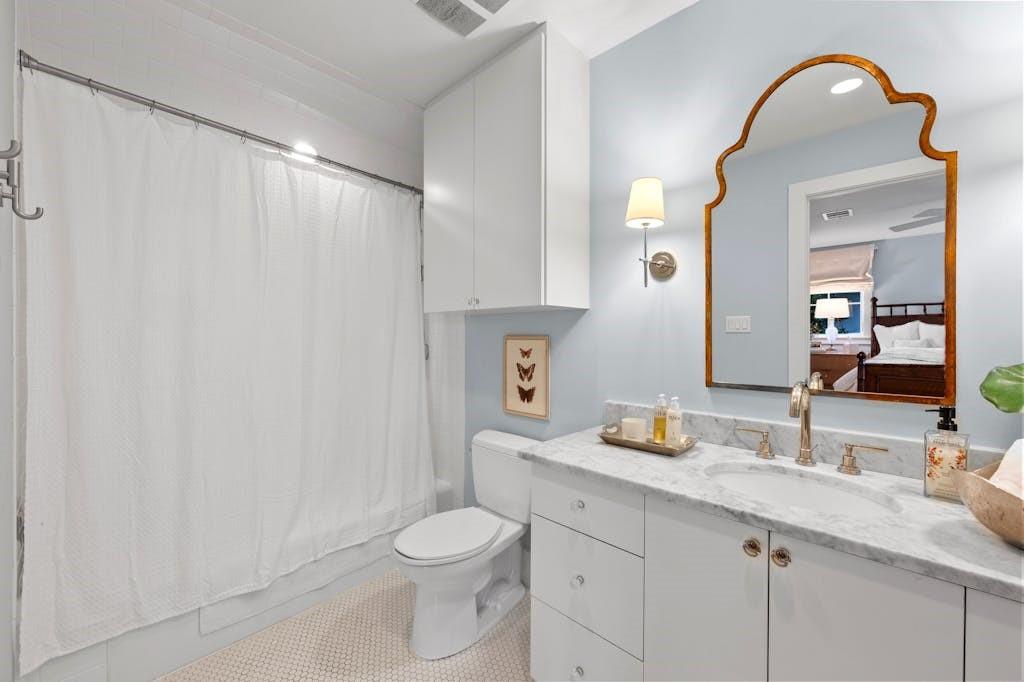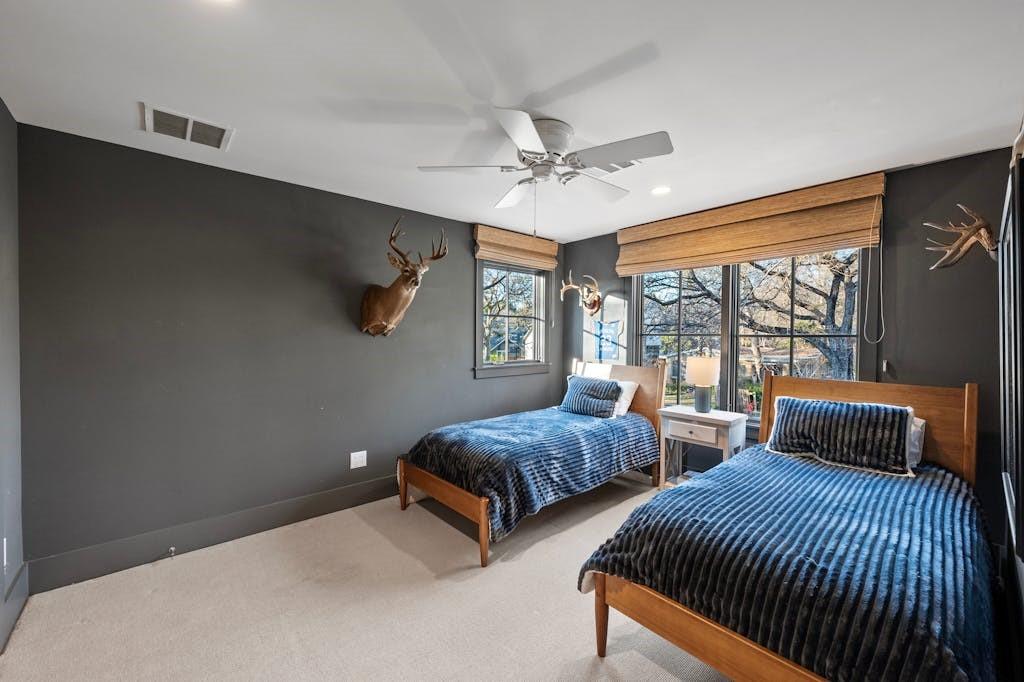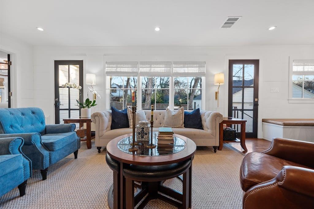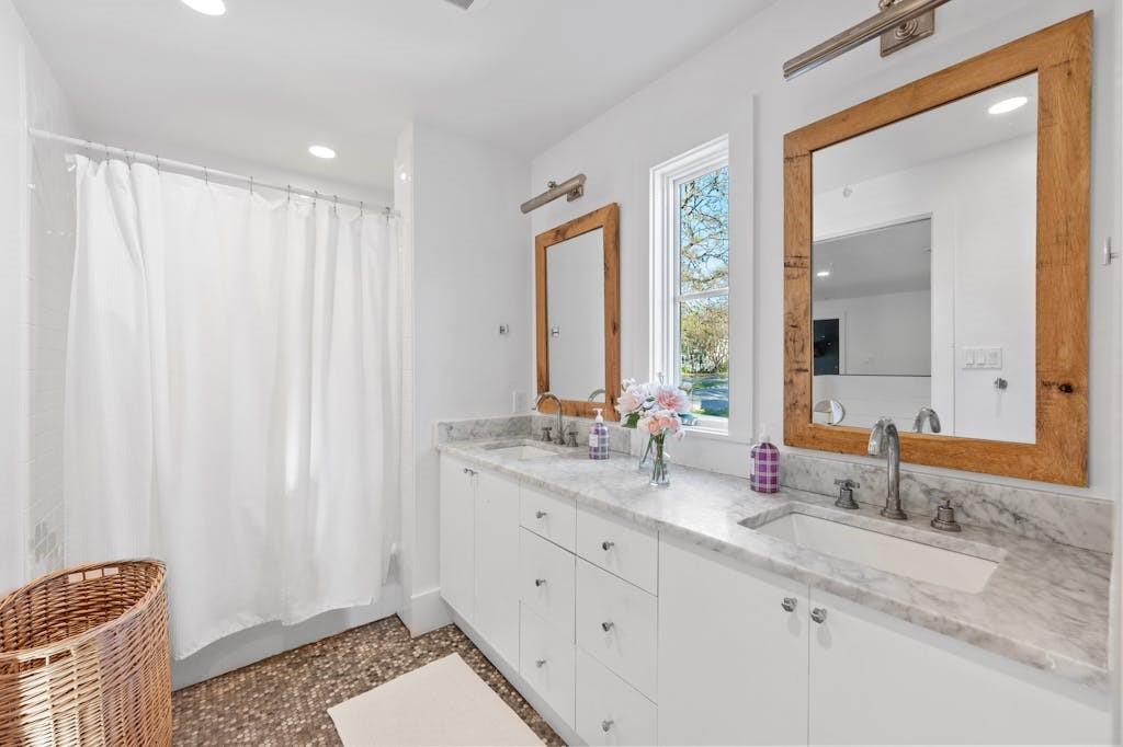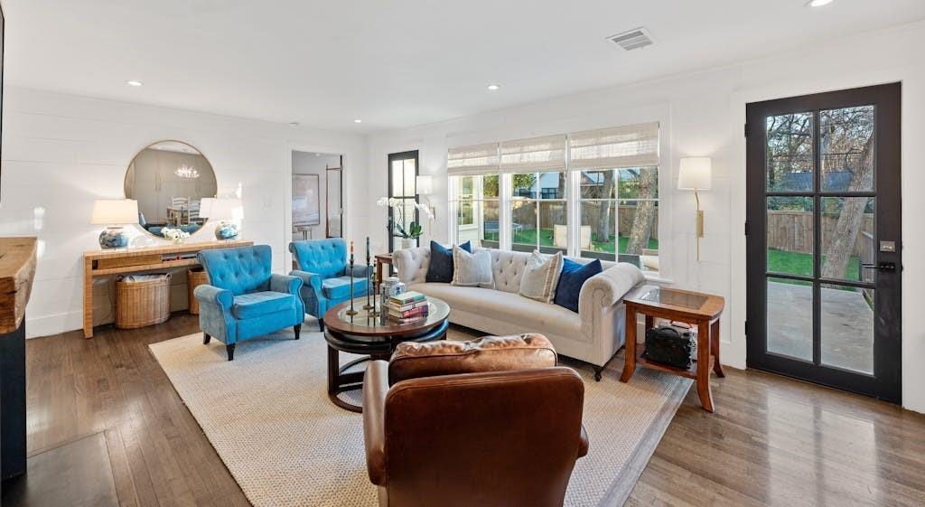 Open House for 5/11 is Cancelled. This classic farmhouse welcomes you from the moment you arrive with warm gas lanterns, a gathering front-porch, and window boxes. Beautifully remodeled by Stouse Designs and taken down to the studs in 2015, the home boasts the perfect floorplan with an exceptional 5 bedrooms & 4 ½ bathrooms on almost ¼ of an acre. This incredible gem is in the heart of Tarrytown on a quiet and charming street, just a short distance from downtown and Lake Austin. On the main level, enjoy a very versatile space with 2 living rooms, formal dining and breakfast area, a gourmet kitchen, the primary suite, an additional bedroom with ensuite bathroom, a generous laundry room and a convenient half-bathroom. Upstairs features a spacious game room, 3 additional bedrooms and 2 full bathrooms. If you need a private office or home gym, you will find the perfect finished space next to the detached garage.