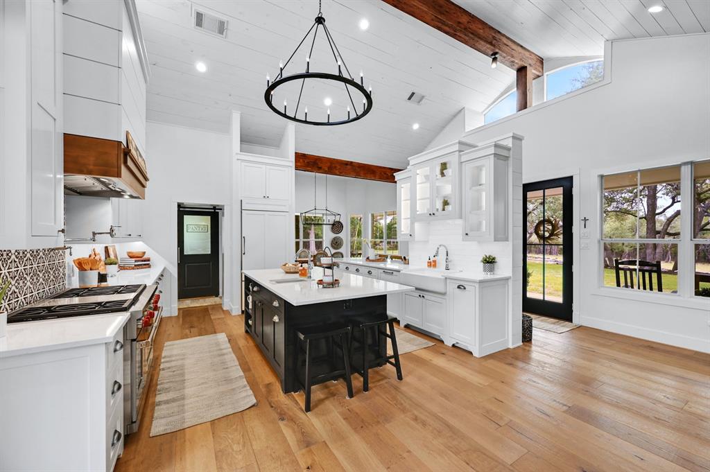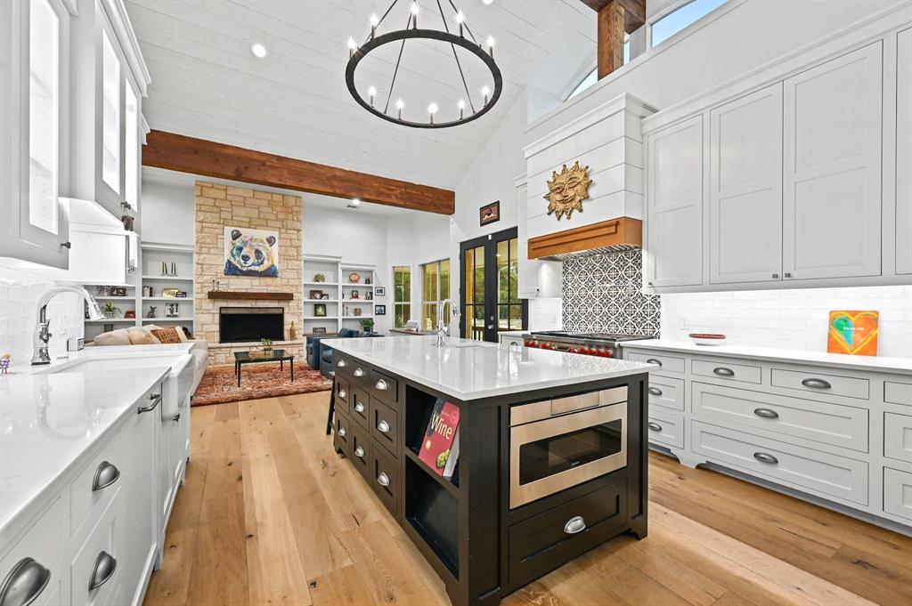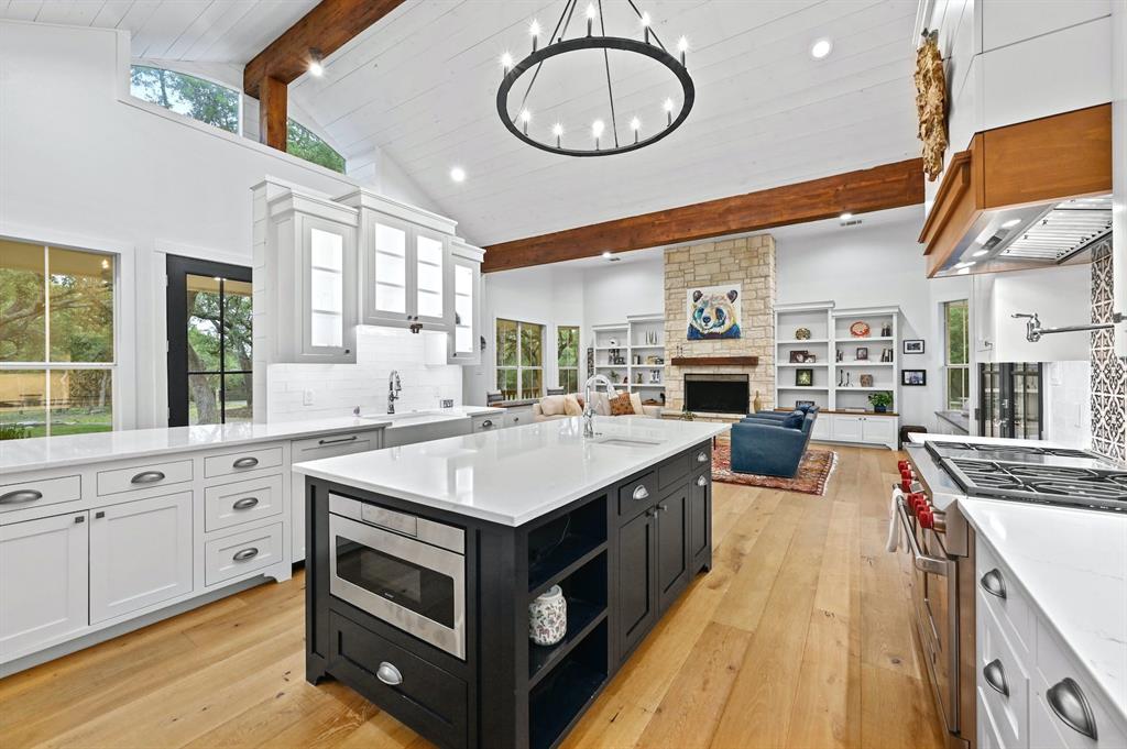 | Interior Features | Bar, Bookcases, Breakfast Bar, Built-in Features, Ceiling Fan(s), Beamed Ceilings, High Ceilings, Vaulted Ceiling(s), Quartz Counters, Double Vanity, French Doors, High Speed Internet, Kitchen Island, Multiple Living Areas, Open Floorplan, Pantry, Primary Bedroom on Main, Recessed Lighting, Smart Home, Smart Thermostat, Soaking Tub, Storage, Walk-In Closet(s), Wired for Data, Wired for Sound | |