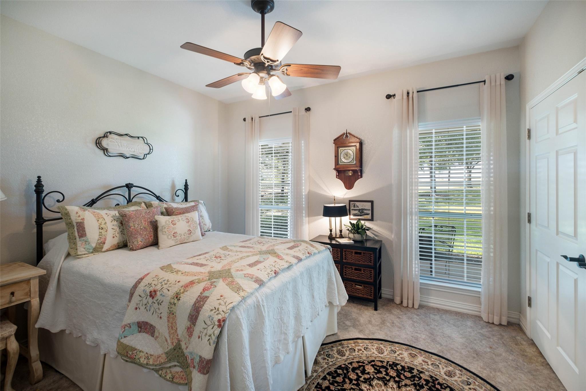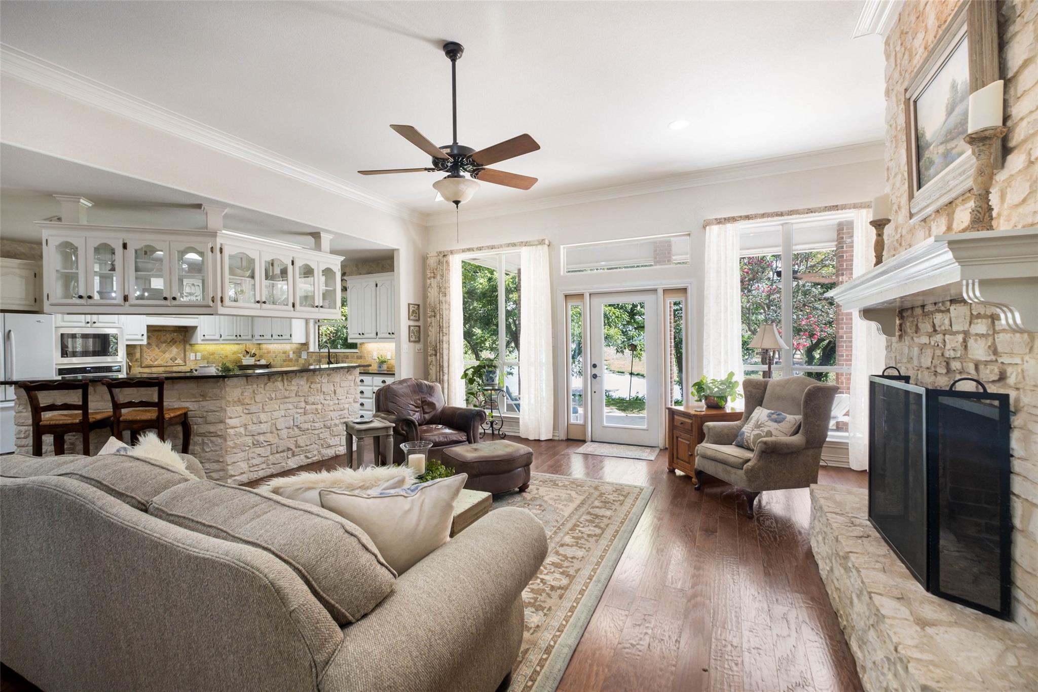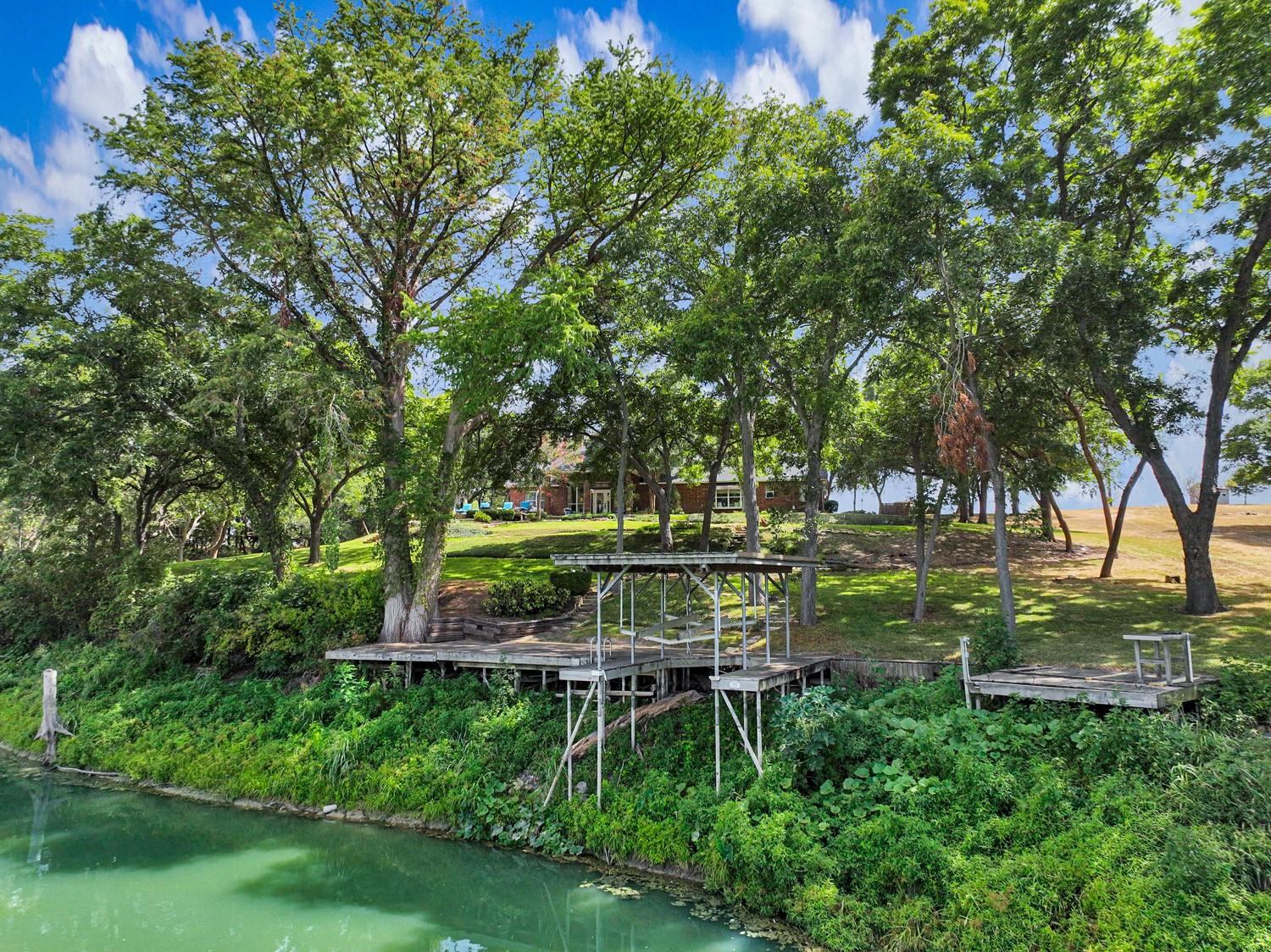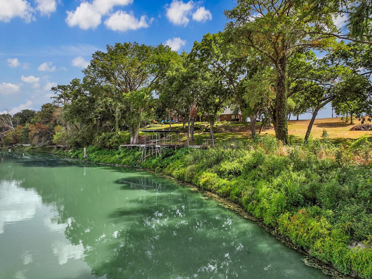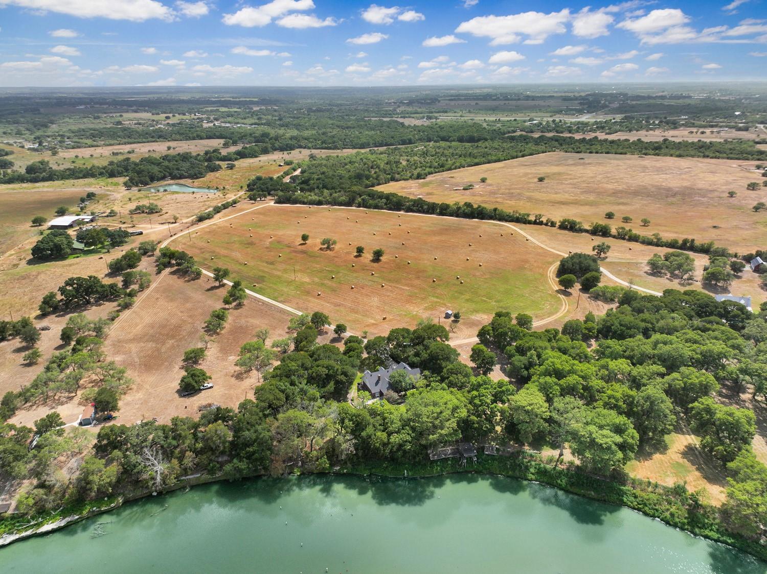 Waterfront Paradise tucked alongside the shores of Meadow Lake with over 600 ft of shoreline promising boundless aquatic delights. The boat lift and slip guarantees effortless water access, while a fish cleaning station caters to anglers. Even with reduced water levels, the Guadalupe River continues to flow through, inviting you to indulge in swimming, kayaking, and boating escapades. Positioned on 29 acres (with an optional 29 more), a meandering stone pathway guides you to the shoreline. The covered patio offers views of Meadow Lake and tranitiosn to a wooden deck and brick paver patio, creating an idyllic space for gatherings. Indoors the living room stands as the epicenter of the home with a beautiful fireplace that radiates warmth and offers breathtaking lake views. It connects to the covered patio, blurring the boundaries between indoor and outdoor living. The gourmet kitchen is a culinary masterpiece, outfitted with top-tier amenities, lustrous granite countertops, bar seating, and a substantial island. The dining room accommodates gatherings and seamlessly integrates with the living area. In the owner's suite you can bask in the soothing lake views. The en suite bathroom presents dual vanities, a sumptuous garden tub, and an artfully tiled walk-in shower. Additionally, the secondary bedrooms capture picturesque Meadow Lake vistas. This waterfront sanctuary is a rare fusion of country and lakeside living creating the ideal setting for endless days on Meadow Lake.