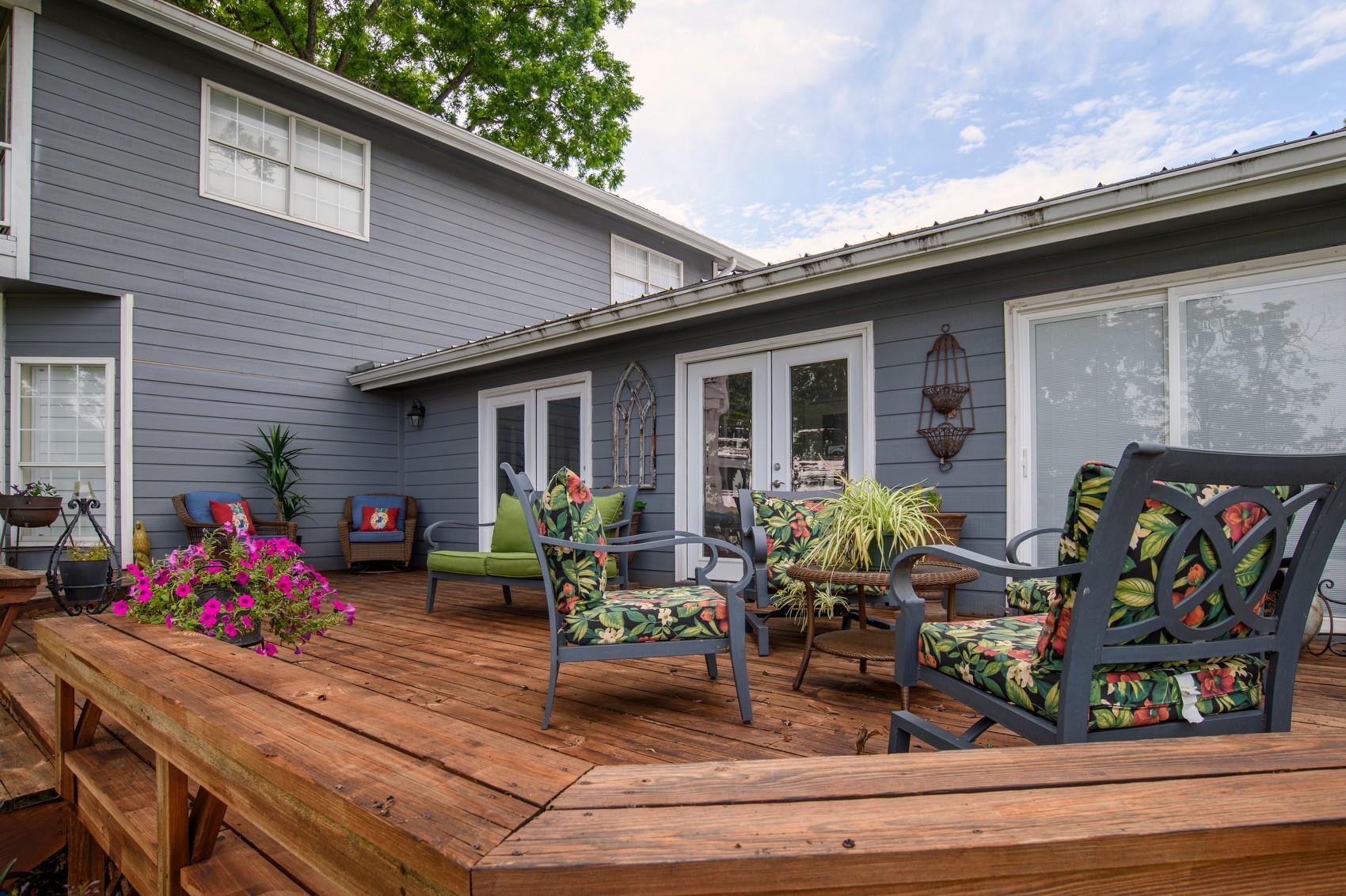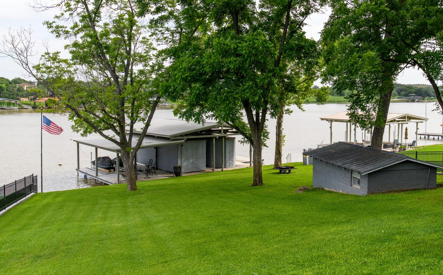 This is your opportunity to own on the Llano River Arm of Lake LBJ in this updated home. Make this a great family home or use as a potentially lucrative STR. Outstanding features are everywhere as this house has been updated throughout. A spacious courtyard at the front of the home allows for entertaining, gardening, and an extra degree of security. As you enter the home, a spacious well-equipped kitchen and large dining area are to the left & to the right, a warm, inviting living room with views of LBJ. The kitchen has an abundance of cabinets and counter space with enough room for the whole family to prepare melas together. The dining area adjacent to the kitchen can accommodate a large gathering. The family/living area leads to a deck that traverses the whole back of the house. Enjoy quiet mornings with coffee, evenings with the family, or celebrate with friends throughout the year. A lush, gently sloping backyard with large pecan trees provides shade to the property and access to the waterfront. The large boat dock, built in 2019, has two lifts for boats and a double lift for personal watercraft all under cover with high ceilings to allow for plenty of clearance above the water. The dock also has a sun deck and space to enjoy the water swimming or floating. You will have front row seats to the Aqua-Boom fireworks as they take place about a ½ mile away by the 2900 bridge. The back yard also features a 12x20 storage shed and a covered hot tub area just off the back deck. Back inside, four bedrooms, five baths, a sunroom, & a bonus room with exterior stairs which allow for a separate entrance. A 22 KW generator was installed 2022.