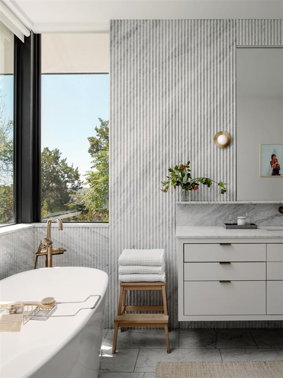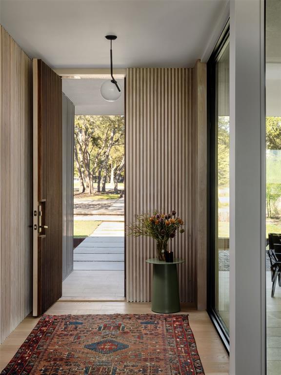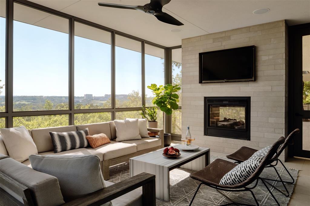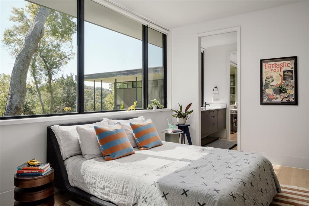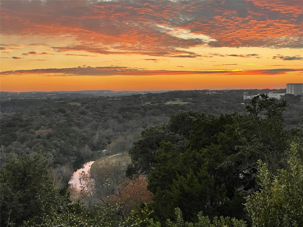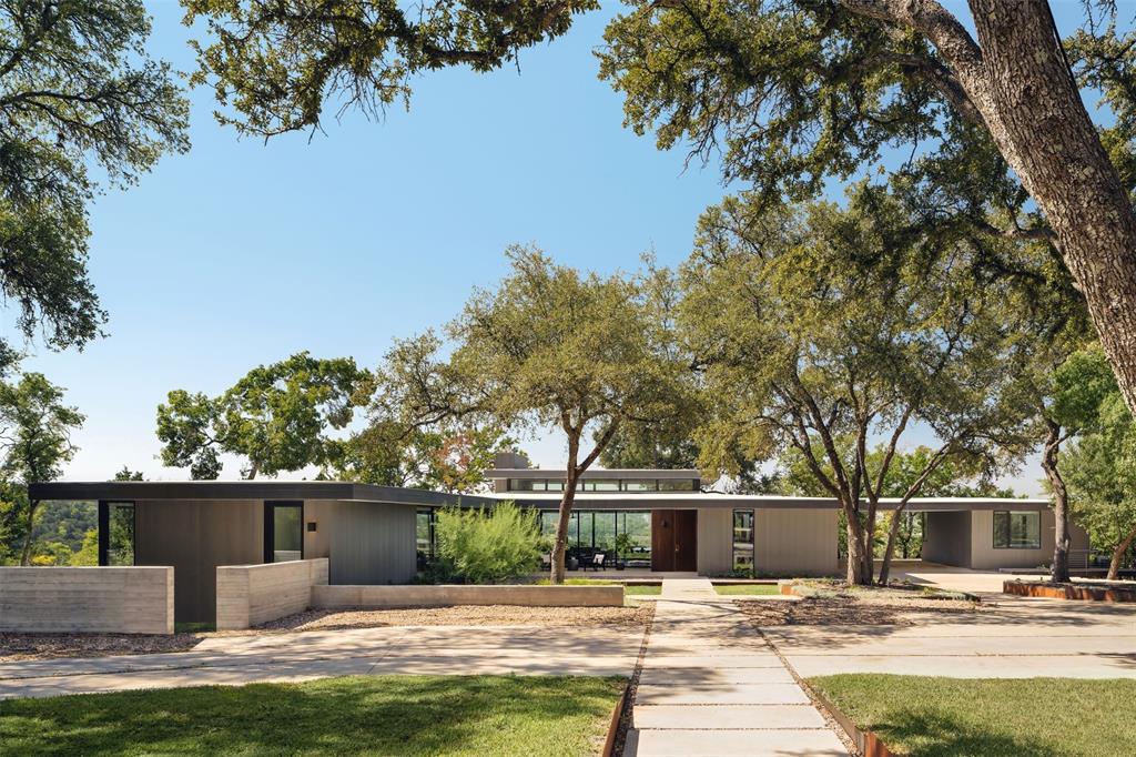 AMAZING PANORAMIC VIEWS! EXTERIOR: This single-story home sits on the largest, highest, and flattest lot with a southern view of Barton Creek and the Barton Creek Country Club and is fully fenced. 2nd owner since the 60's when it was subdivided from a ranch, the home is +/- 4,188 SF with +/- 2,300 SF of covered/screen porches, the indoors are fully fire sprinklered. The main home is a 4 bedroom 4.5 bath and the guest home is 1 bedroom with 1 bath with a kitchenette. NO CITY TAXES but in EANES ISD. The house water comes from Water District 10 and a deep water well and 5,000 water tank provides all irrigation needs for the 2+ acre lawn and garden. The former sport court is currently used as an overflow parking area but could easily be restored to its former glory. Two large industrial sized automatic steel gates provide ample security and privacy and give easy access in and out of the property. There is a crushed granite walking trail around the perimeter of the property along with a 12' x 50' fenced garden. INTERIOR: This home has brushed white oak flooring and natural stone throughout. Meticulous custom lighting design with primarily Juno LED's. All cabinets and carpentry work were custom built to order in a local shop. Floor to ceiling glass in the main living areas with large sliding glass doors. The home is prewired for solar panels from the roof to the electric meter and plumbed for geothermal heating and cooling and a 50amp outlet in carport is provided for EV vehicles. Each room is hardwired with highspeed CAT 6E, Coax, and 12 volt wires. The kitchen features Calcutta Gold Natural Stone in the kitchen and scullery with built in Wolf appliances. The Master Bedroom features a walk-in closet with water and dryer connections and his and hers separate bathrooms.