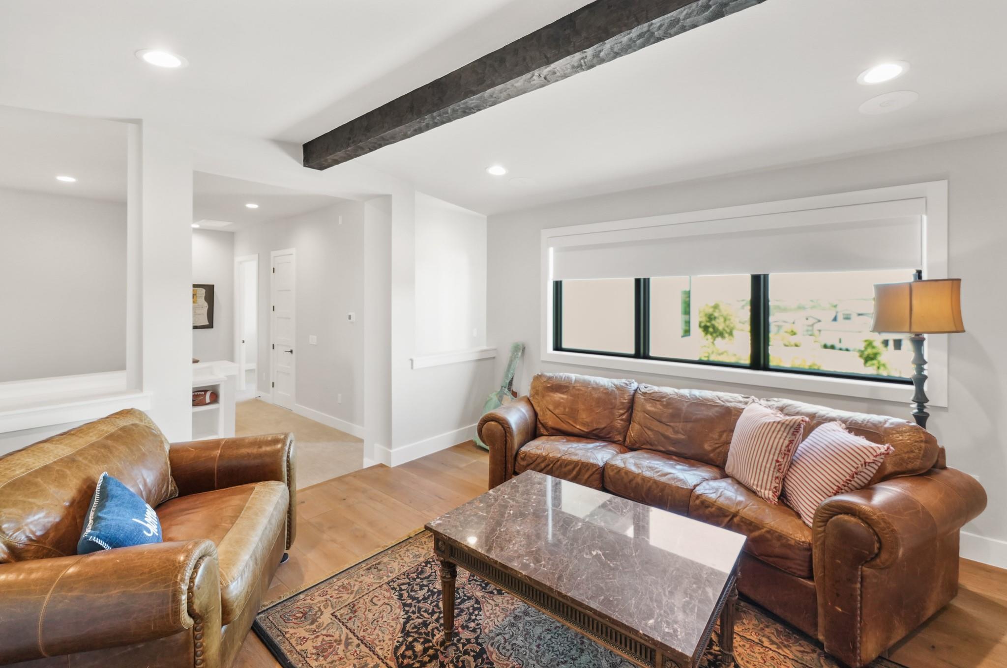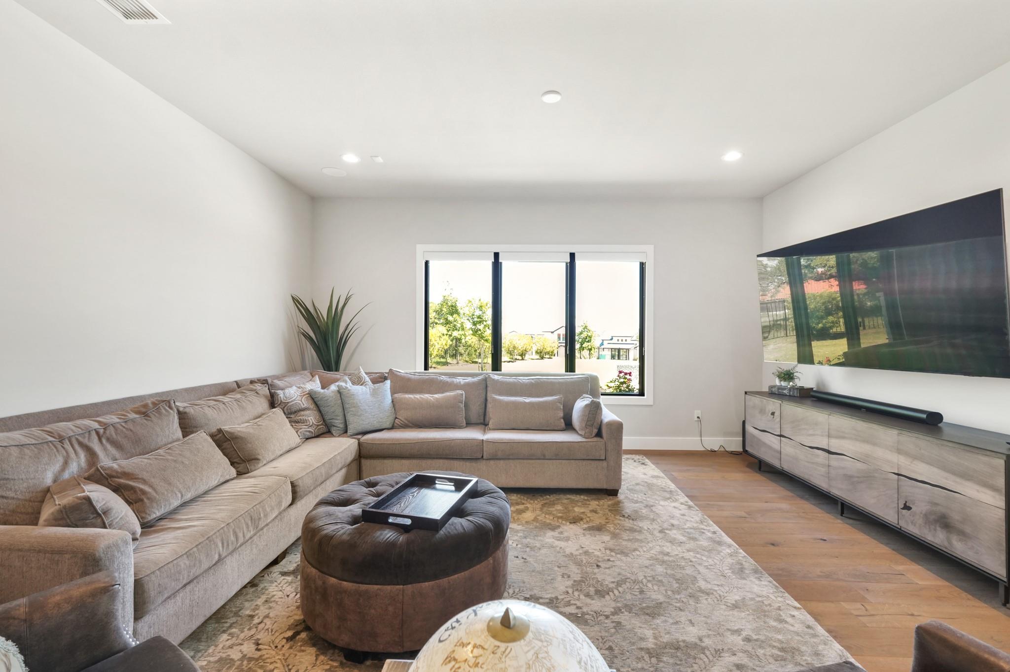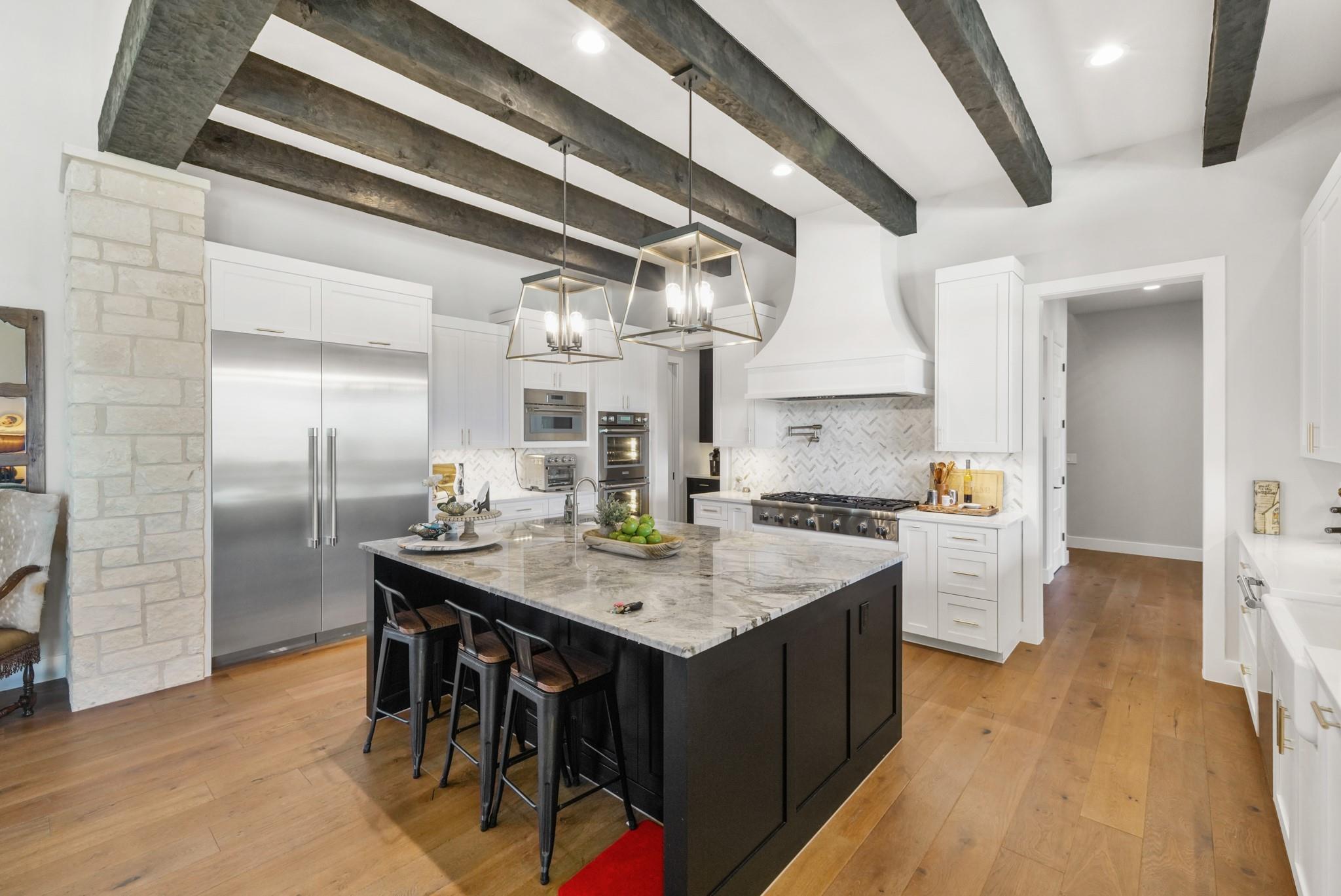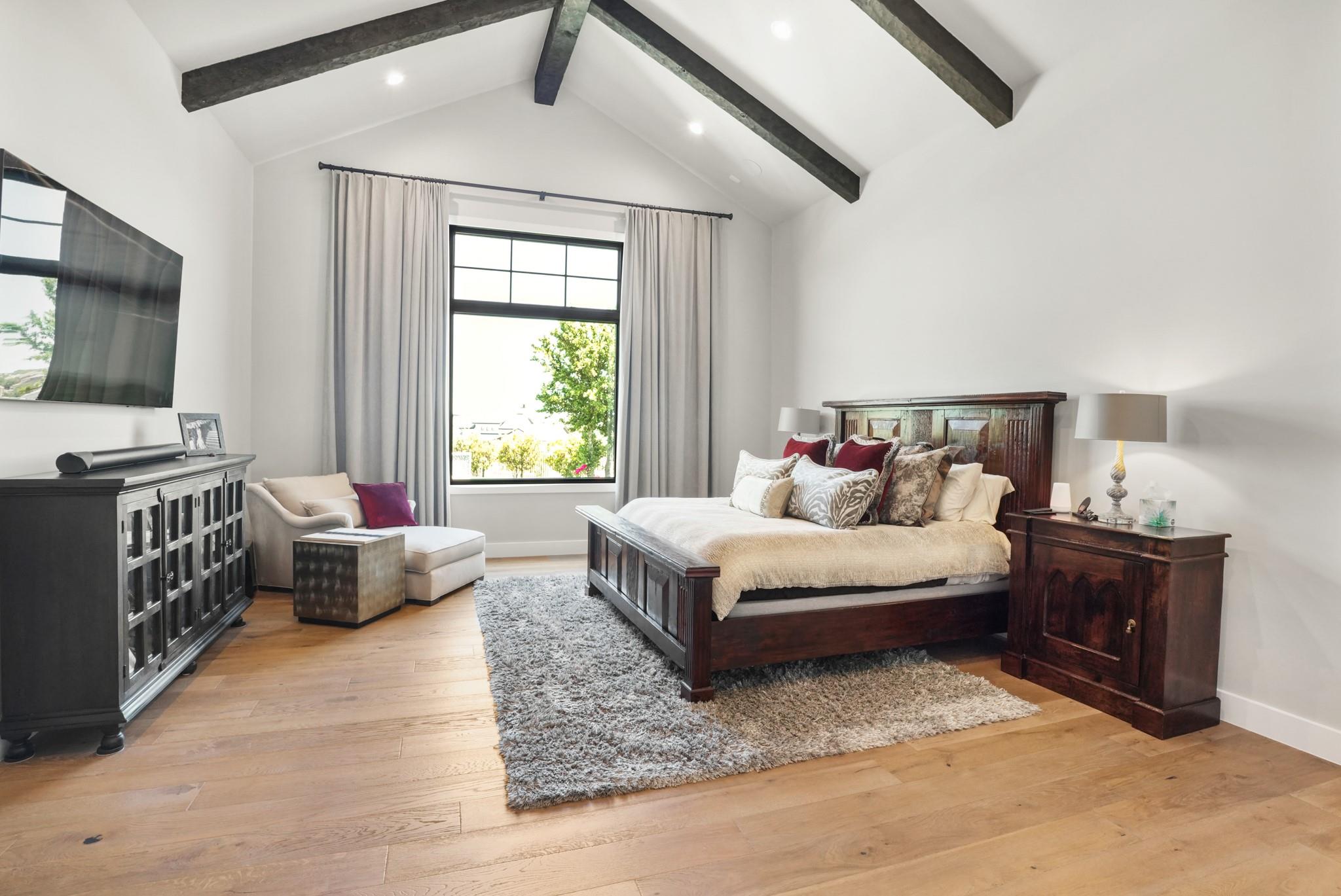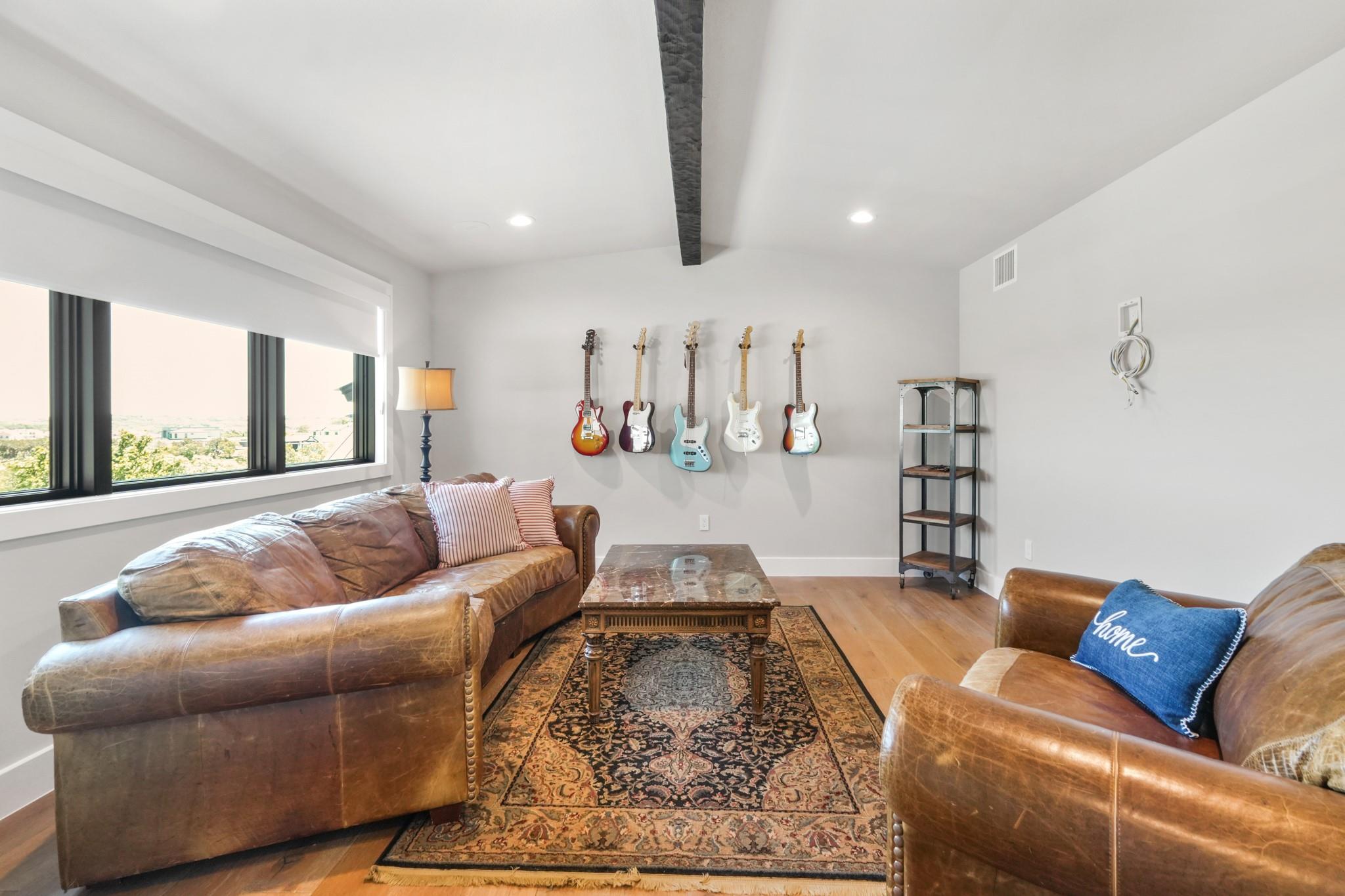 Welcome to your Oasis in the Peninsula of Desirable Rough Hollow at Lake Travis! This stunning custom-built home, completed in 2021, boasts unparalleled craftsmanship and an array of upscale features designed to elevate your lifestyle. Nestled on meticulously landscaped grounds with manicured trees and a wrought iron fence, this exquisite residence offers a blend of elegance and modern convenience. Step inside to discover an inviting ambiance highlighted by French Oak Wood/Custom Tile/Matisse Carpet Flooring throughout. Entertain with ease in the expansive living areas, including a massive living room adorned with vaulted wood truss ceilings and a floor-to-ceiling stone fireplace, perfect for cozy gatherings. Walls of windows flood the space with natural sunlight and provide breathtaking views of the surrounding landscape. The gourmet kitchen is a chef's dream, featuring high-end Thermador stainless steel appliances, double ovens, granite and quartz countertops, and high wood beam ceilings. A butler's pantry and a custom utility room with quartz counters add both style and functionality. Unwind in the spacious master suite on the main level, complete with a double quartz vanity/deep soaker tub/twin-head oversized shower. Additional highlights include a dedicated office, a second living room/media room with a custom suede leather granite wet bar and a climate-controlled wine room. Upstairs, you'll find large secondary bedrooms and a huge third living area! Step Outside to enjoy an upgraded pool by Millennium with an expansive outdoor living area with a fireplace ensuring ample space for relaxation and entertainment...perfect for al fresco dining and gatherings with loved ones. Convenient amenities abound, including Cat6 wiring in the home, surround sound, central vacuum, instant hot water heater and oversized 3-Car Garage. Enjoy Rough Hollow Resort amenities, popular schools, parks, shopping, dining, golf & major thoroughfares, for luxury living in a prime location!