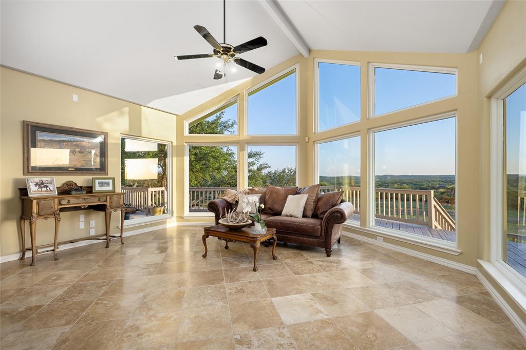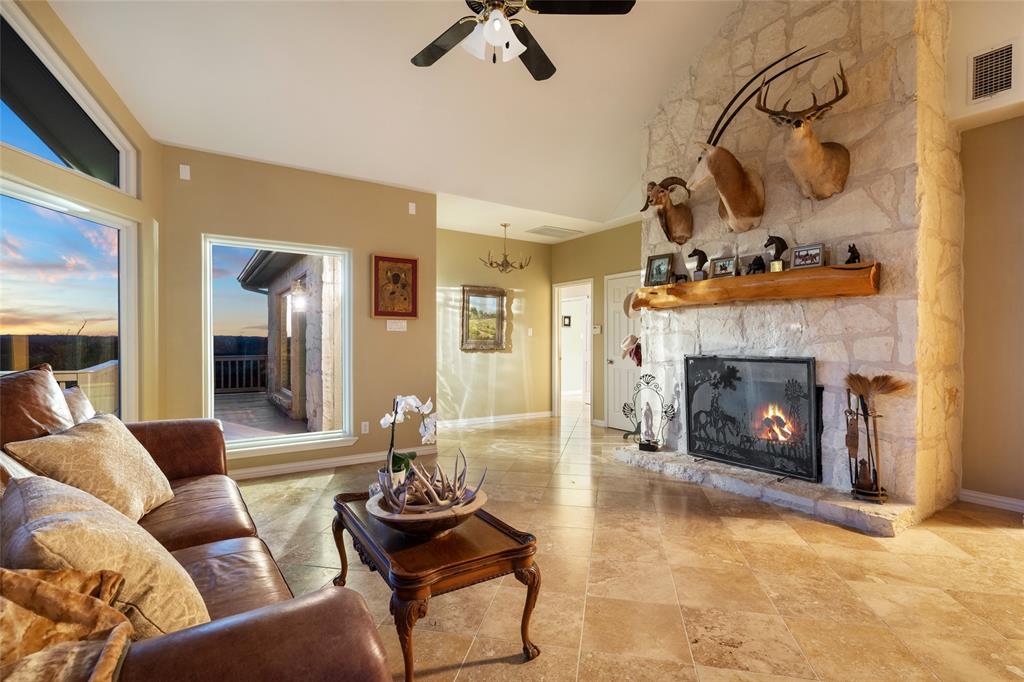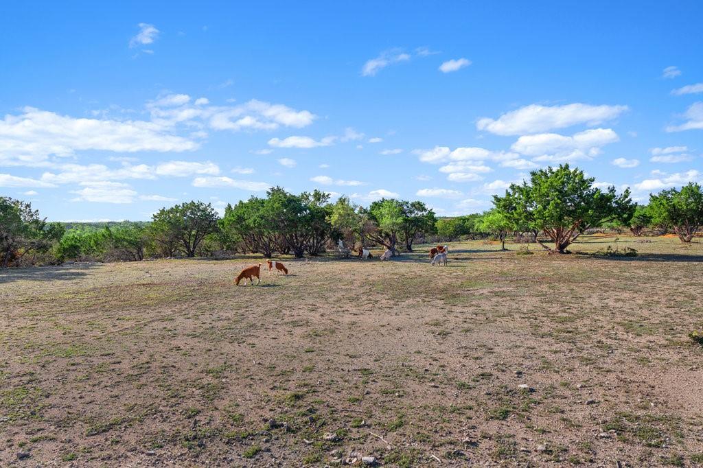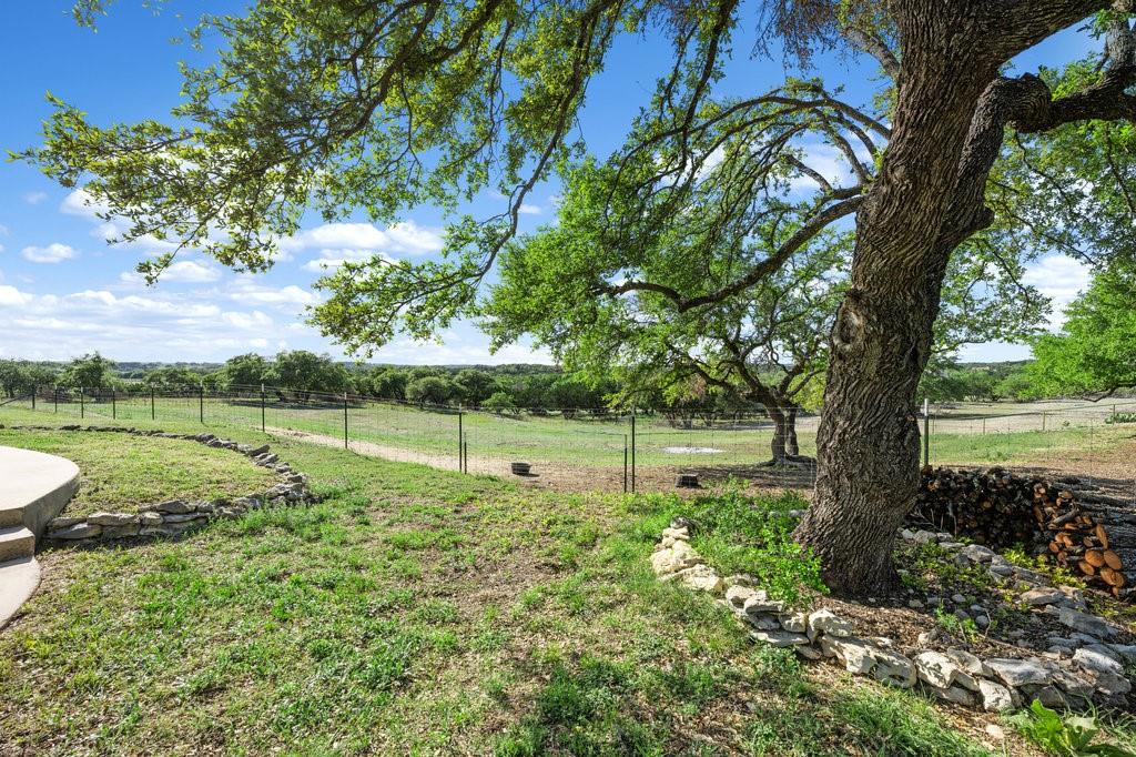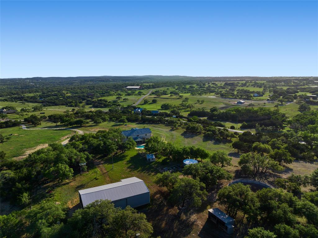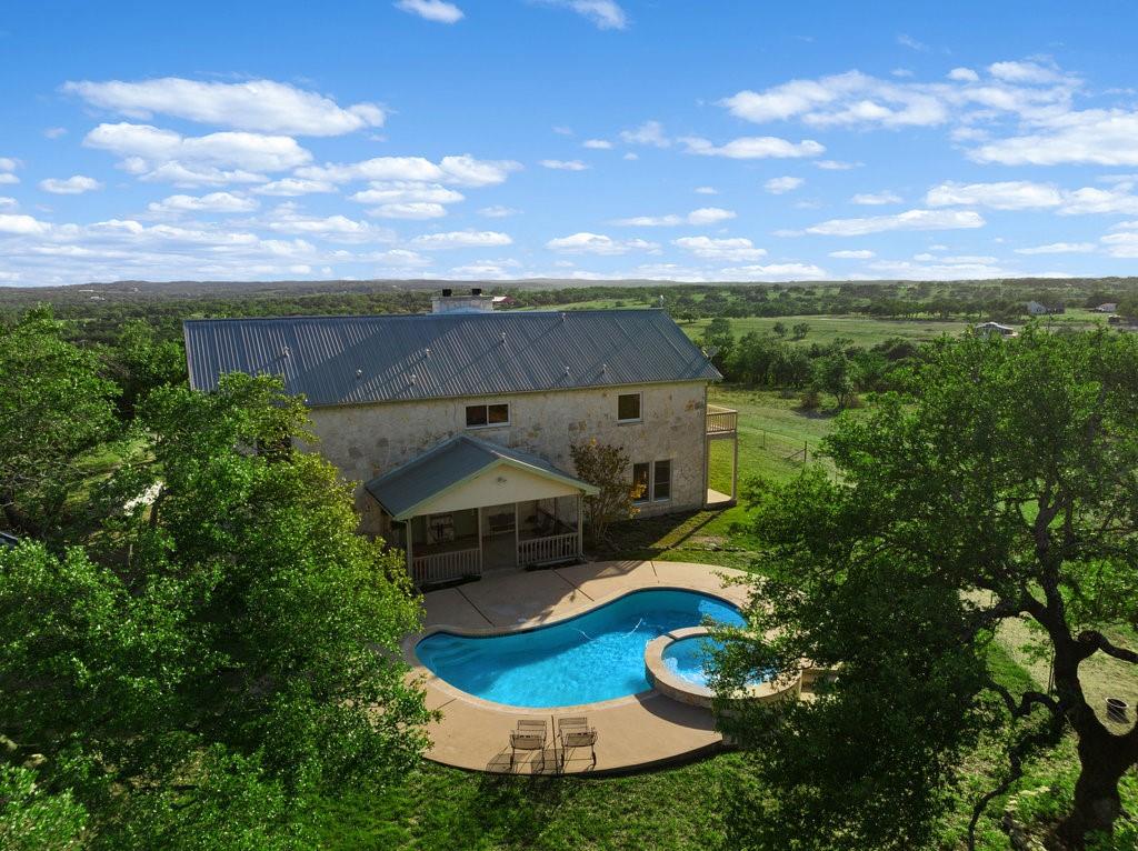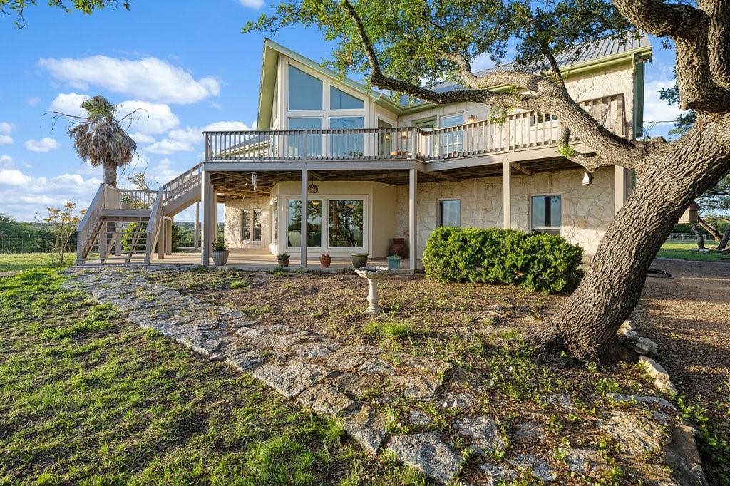 Enjoy The Privilege of Privacy on 29.117 fully fenced acres. With divided pastures this land is cleared, full of towering hardwoods and ag exempt. A gated entry and tree lined drive sets the tone with green fenced pastures on each side allowing your horses or livestock to greet you. This enchanting custom home has been remodeled to offer a tranquil getaway with modern luxury. Nestled high on a hilltop with 3140 square feet, you will find 3 bedrooms, a study which can serve as a 4th bedroom, 3 full baths, two living both with white limestone fireplaces, 2 dining rooms and a large country kitchen with soft white cabinetry and windows that bring nature inside. Generously sized family room with vaulted ceilings graced by a stone fireplace and huge walls of windows that invite wonderful natural light and breathtaking sunsets over the spacious deck. Rich travertine flooring flows throughout this main level where you will find a private owner's retreat with soft white shutters on windows and access to freshly painted deck. A sunny breakfast nook and a handsome study could serve as your 4th bedrooms with access to a beautifully remodeled full bathroom. The lower level offers 2 bedrooms with wood flooring, shutters on windows and a beautifully remodeled bathroom offering tile wainscotting, dual vanities with granite countertops and a walk-in shower with floor to ceiling tile surround. Grand living showcases a built-in entertainment wall with bookshelves and walls of glass to enjoy views and grant access to covered patio. Treat your senses aside a sparkling pool with a waterfall spa and a covered patio which delivers wonderful views of land and hill country. Multiple outdoor living areas creating a wealth of entertaining options. The large Mueller metal building has two rooms totaling nearly 3000 square feet of storage. Rainwater & well. Can be subdivided into 6 acre parcels and has two entrances to the land. One entrance is on Fitzhugh and the other on South Oak Forest.