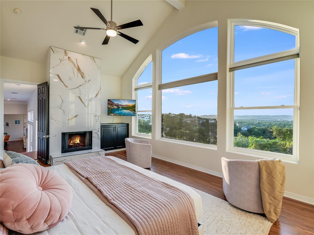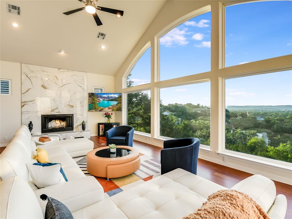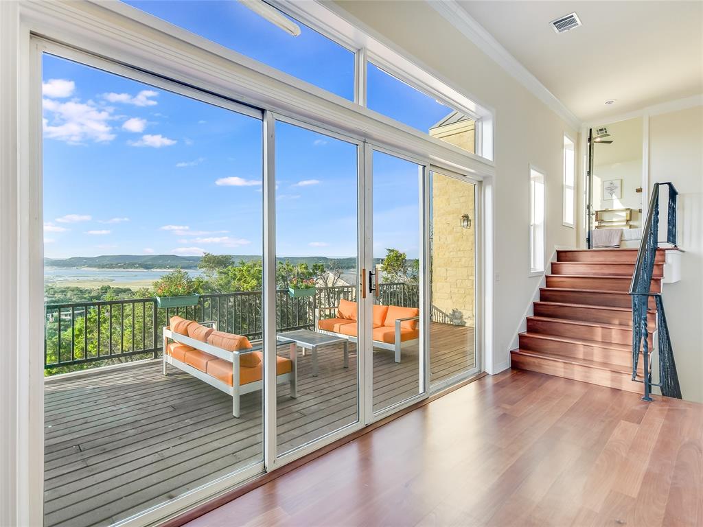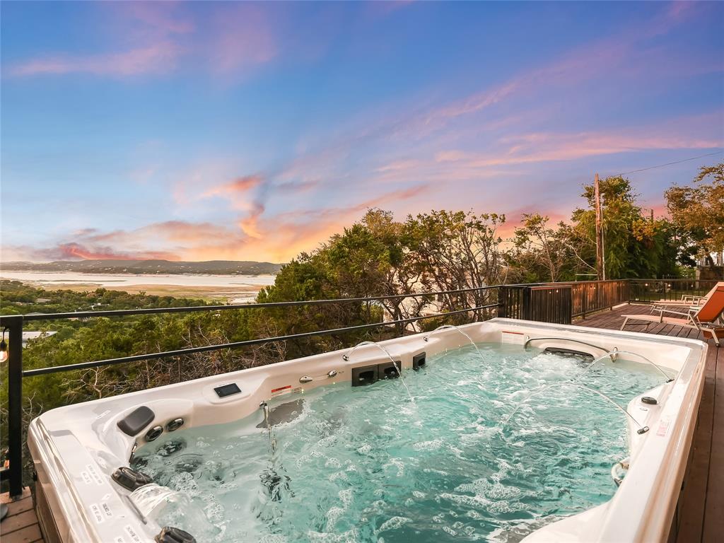 Breathtaking views greet you when you walk into this warm and welcoming remodeled home with panoramic views of Lake Travis and Texas Hill Country. Walls of windows allow an abundance of natural light as you look out onto the mesmerizing waters of the lake. Enjoy lake views from almost every room in the house. This home is ready for entertaining with the spacious kitchen opening to the massive living area leading to one of two oversized decks. Enjoy an evening in the brand-new swim spa with relaxing massage jets or workout swimming against powerful swim jets. This home serves as a sanctuary of tranquility, where modern design seamlessly intertwines with simplicity and calmness. This carefully curated home exudes a soothing aura, creating an atmosphere that promotes relaxation. Natural light floods the house through large windows, making the home feel airy and ethereal. This natural light, combined with the tranquil colors, creates a soothing and rejuvenating effect that encourages a sense of peace and calmness. Cozy areas and comfortable armchairs invite you to unwind, read a book, or simply enjoy a moment of solitude while watching the sunset over Lake Travis. The entire home is thoughtfully designed to provide a peaceful retreat where you can escape the demands of daily life and find the calmness, we all deserve.