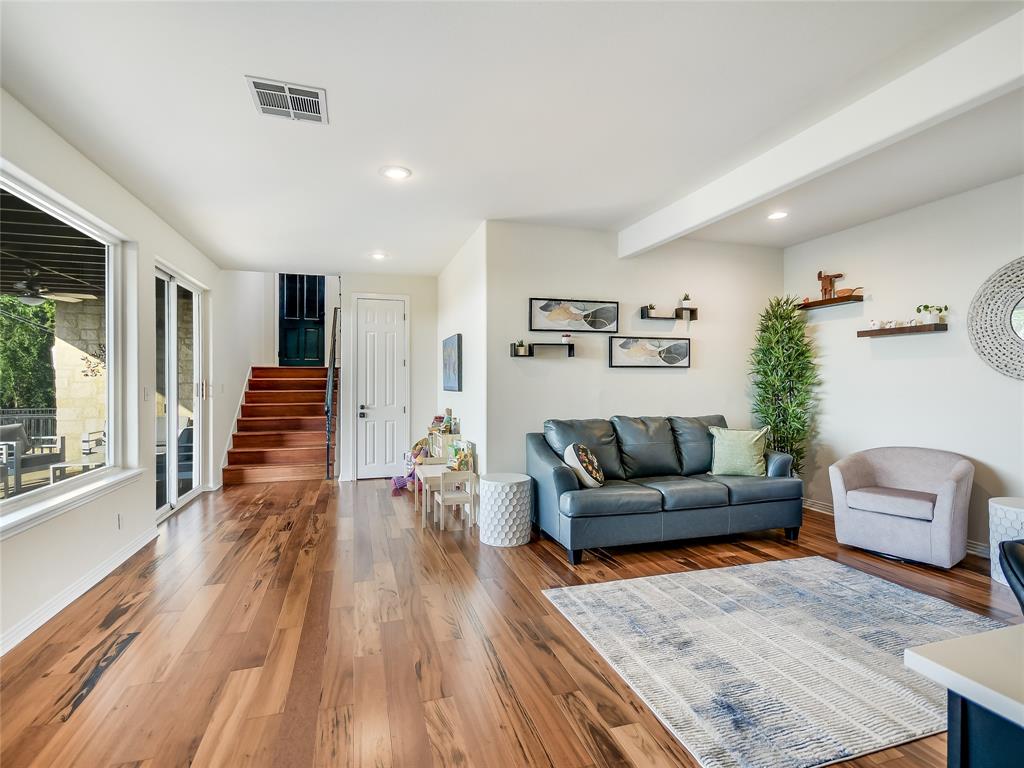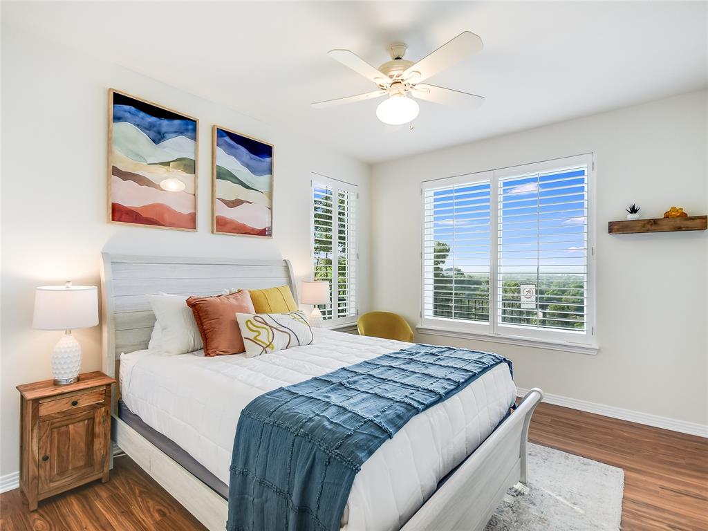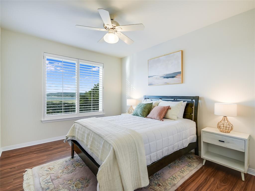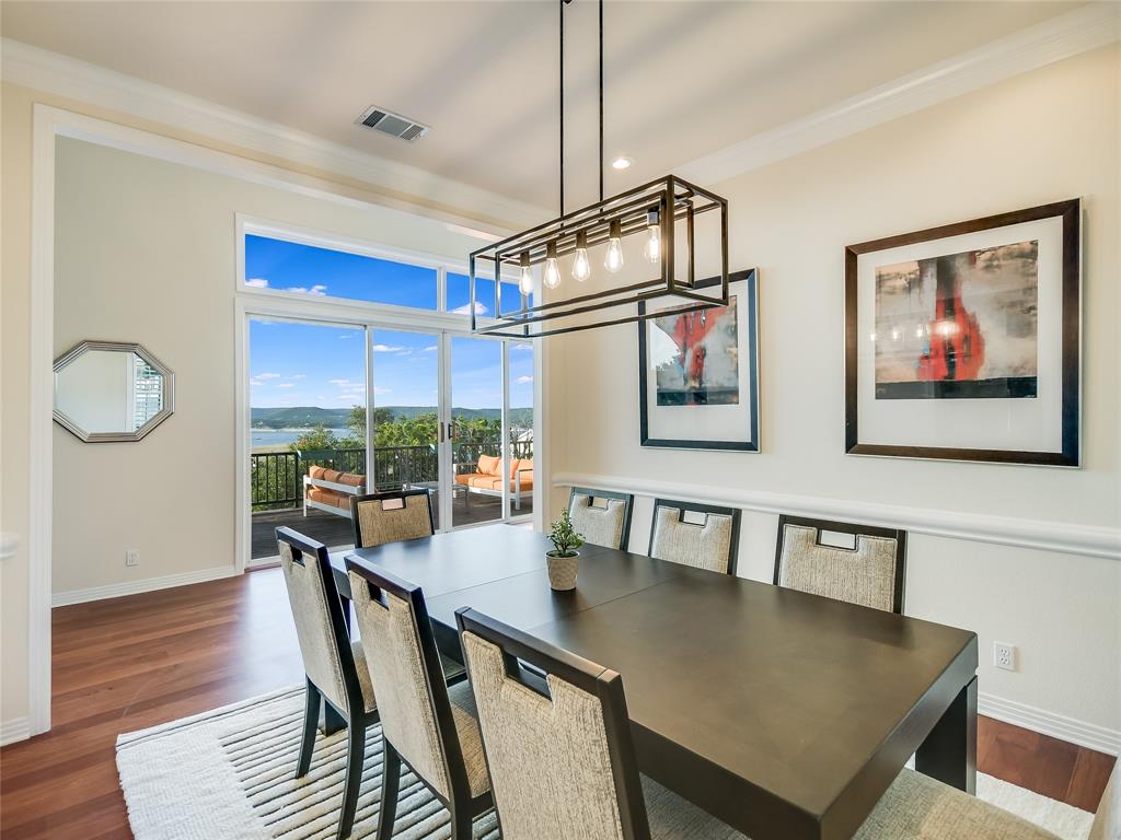 Breathtaking views greet you when you walk into this warm and welcoming remodeled home with panoramic views of Lake Travis and Texas Hill Country. Walls of windows allow an abundance of natural light as you look out onto the mesmerizing waters of the lake. Enjoy lake views from almost every room in the house. This home is ready for entertaining with the spacious kitchen opening to the massive living area leading to one of two oversized decks. Enjoy an evening in the brand-new swim spa with relaxing massage jets or workout swimming against powerful swim jets. This home serves as a sanctuary of tranquility, where modern design seamlessly intertwines with simplicity and calmness. This carefully curated home exudes a soothing aura, creating an atmosphere that promotes relaxation. Natural light floods the house through large windows, making the home feel airy and ethereal. This natural light, combined with the tranquil colors, creates a soothing and rejuvenating effect that encourages a sense of peace and calmness. Cozy areas and comfortable armchairs invite you to unwind, read a book, or simply enjoy a moment of solitude while watching the sunset over Lake Travis. The entire home is thoughtfully designed to provide a peaceful retreat where you can escape the demands of daily life and find the calmness, we all deserve.