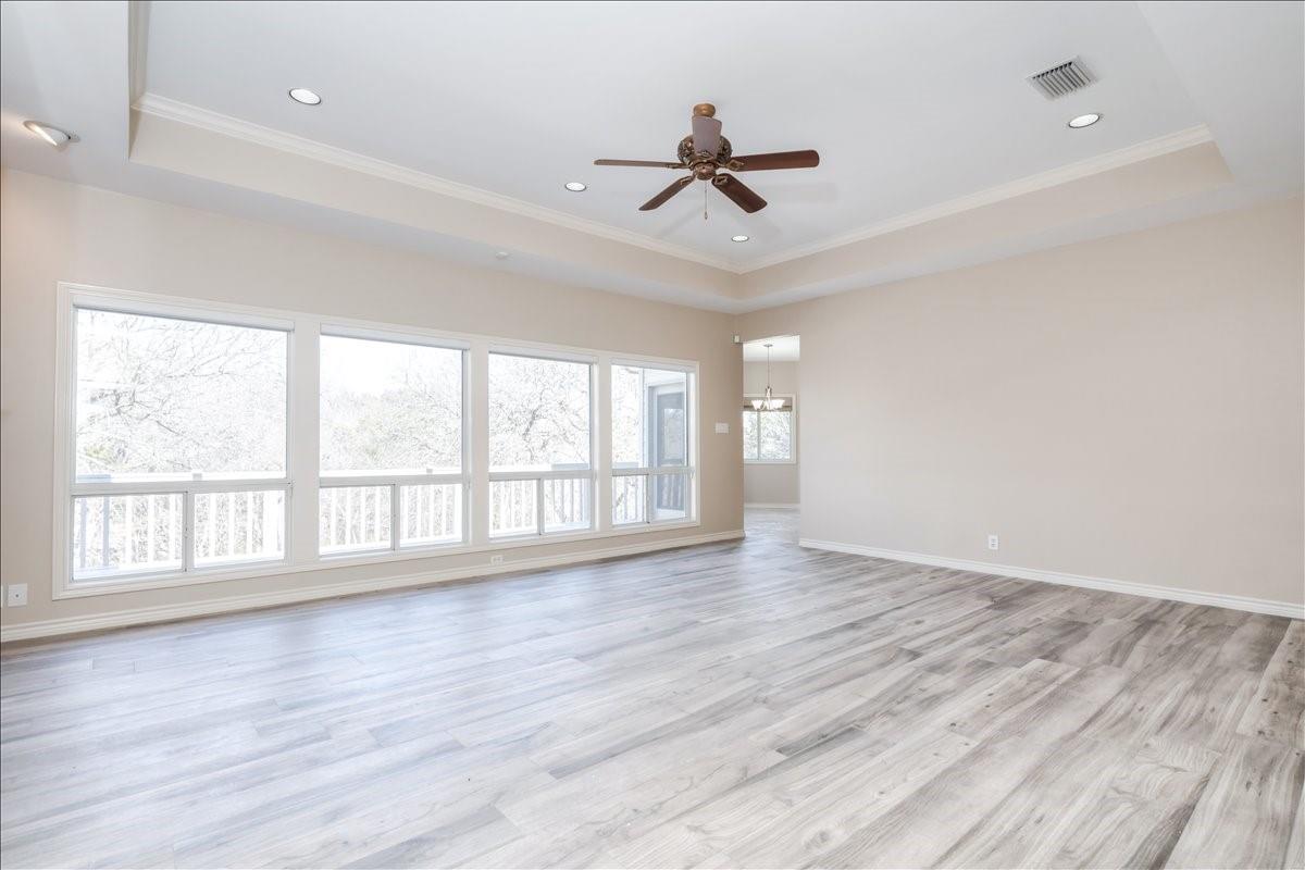 Welcome to your dream home nestled in the heart of nature's beauty! This charming 2-story abode, sitting gracefully on a generous .378-acre wooded lot, is a tranquil oasis you'll be proud to call home. Located in a coveted area that backs to the serene Eanes Creek & a majestic grove of trees, this home offers a perfect blend of natural tranquility & modern comfort. The interior offers an inviting & well-thought-out 3,157 sq ft floor plan adorned with luxury vinyl flooring & fresh neutral paint. The main floor is designed for entertaining & relaxation, featuring an elegant formal dining room that sets the stage for memorable gatherings & a cozy family room with built-in bookcases, a wood-burning fireplace, & picturesque view of the lush greenbelt. The chef's kitchen is a true delight, equipped with granite countertops, a breakfast bar, an abundance of cabinetry, & stainless-steel appliances. The adjacent sunny breakfast room offers direct access to the upper deck, where you can enjoy your morning coffee amidst the treetops. The main floor also hosts the owner's suite, featuring a tray ceiling, crown molding, direct access to the deck, a walk-in closet, & a spa-like en-suite bathroom complete with a dual vanity, soaking tub, & an oversized walk-in shower. The lower floor offers 3 additional bedrooms, a guest bathroom, & an incredible game room with a wet bar & access to the lower deck, making it a fantastic space for entertainment & relaxation. Step out onto the decks, & you'll be greeted by breathtaking scenery & comfortable spaces to lounge, entertain, & soak in the fresh air. This home offers great privacy thanks to its generous lot & lush surroundings, creating a serene retreat from the hustle & bustle of city life. Conveniently located just minutes away from Zilker Park, Barton Springs, Lady Bird Lake, Downtown Austin, & more, you'll have easy access to all the amenities this vibrant city has to offer. Walking distance to exemplary Eanes ISD schools.