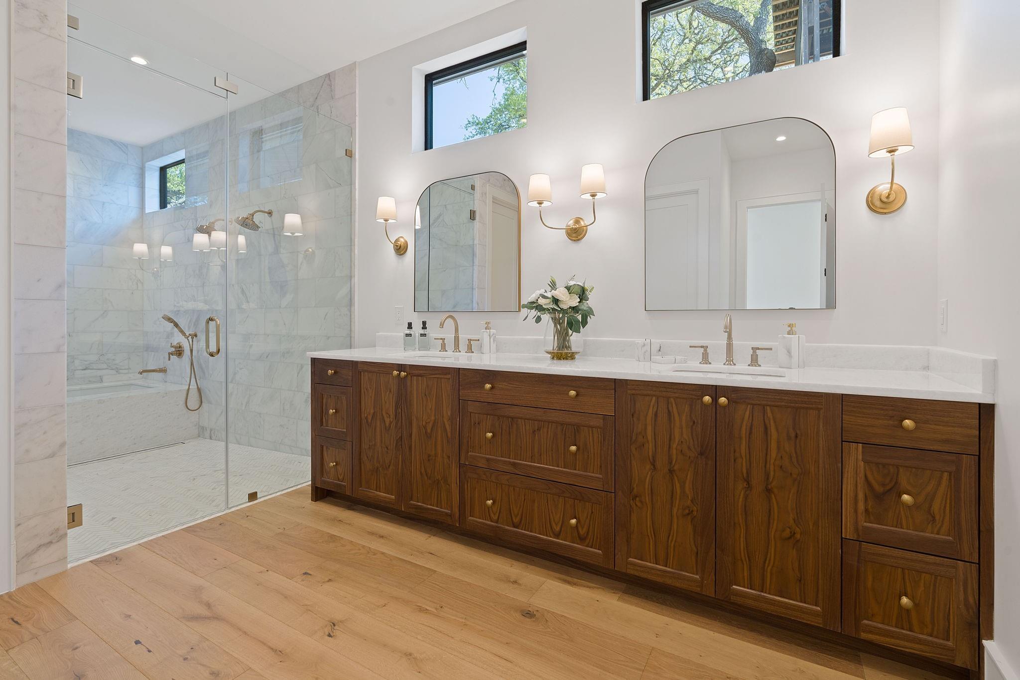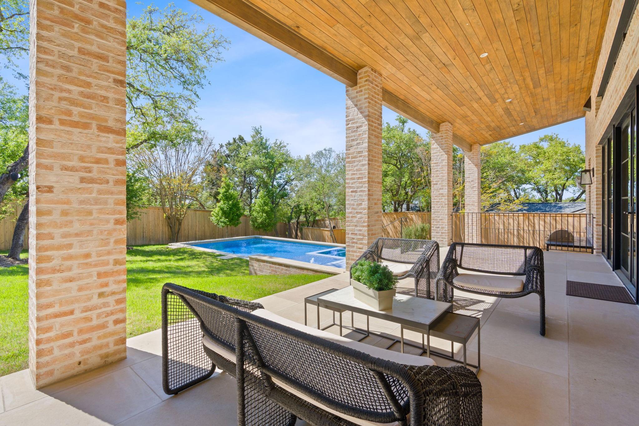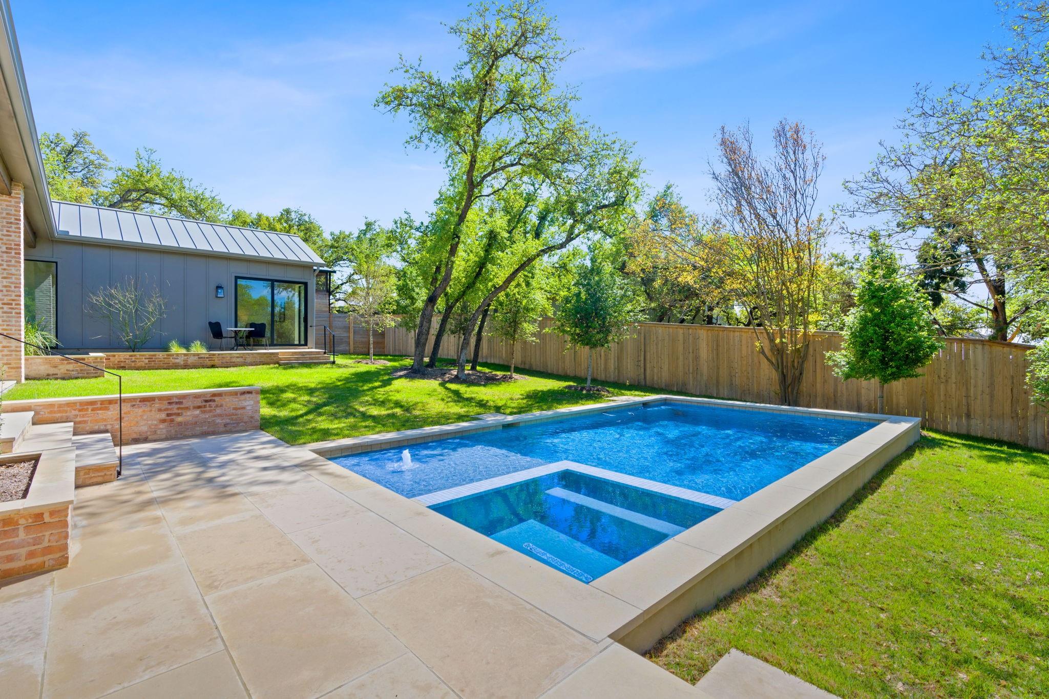 Experience luxury living in Austin's sought-after Lost Creek community. This stunning new build combines classic architecture with modern flair, offering a fresh take on upscale living. Flooded with natural light, the interiors are warm and inviting, showcasing clean lines and top-notch craftsmanship. The open floor plan reveals a chef's kitchen with a butler pantry, ideal for entertaining. The living area features a charming brick fireplace wall, while the sunroom vestibule leads to a private primary suite with an enormous walk-in closet and a spa-like bath with multiple shower heads and a luxurious soaking tub. Upstairs, enjoy beautiful hill country views, four additional bedrooms, three baths, a game room, and a convenient stackable laundry closet. Step outside to an outdoor oasis with a pool, hot tub, beach area, and a half bath for poolside convenience. The spacious flat backyard is perfect for outdoor activities and entertaining. Located on a quiet cul-de-sac in the prestigious Eanes Independent School District, this home offers privacy and tranquility. With impeccable finishes and meticulous attention to detail, this exceptional home in Lost Creek is a masterpiece of modern luxury and timeless elegance.