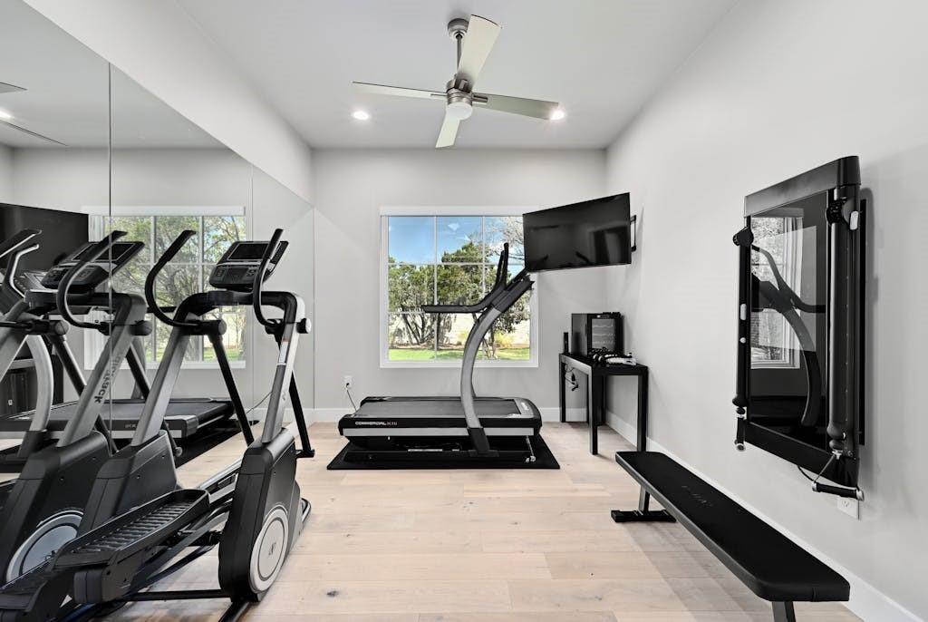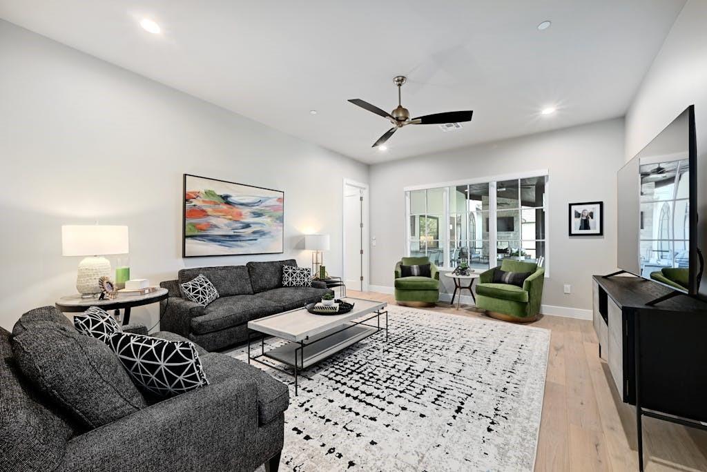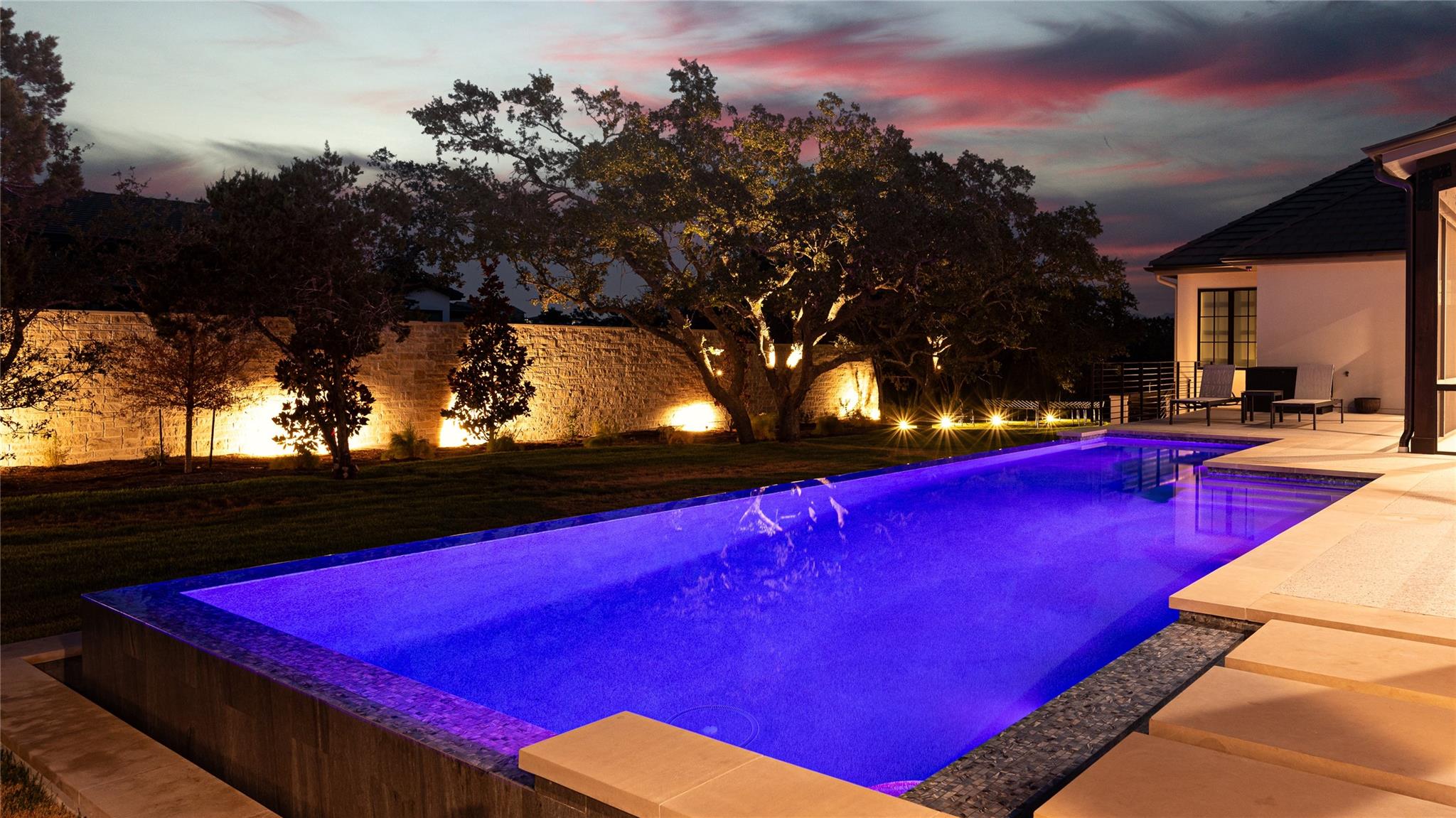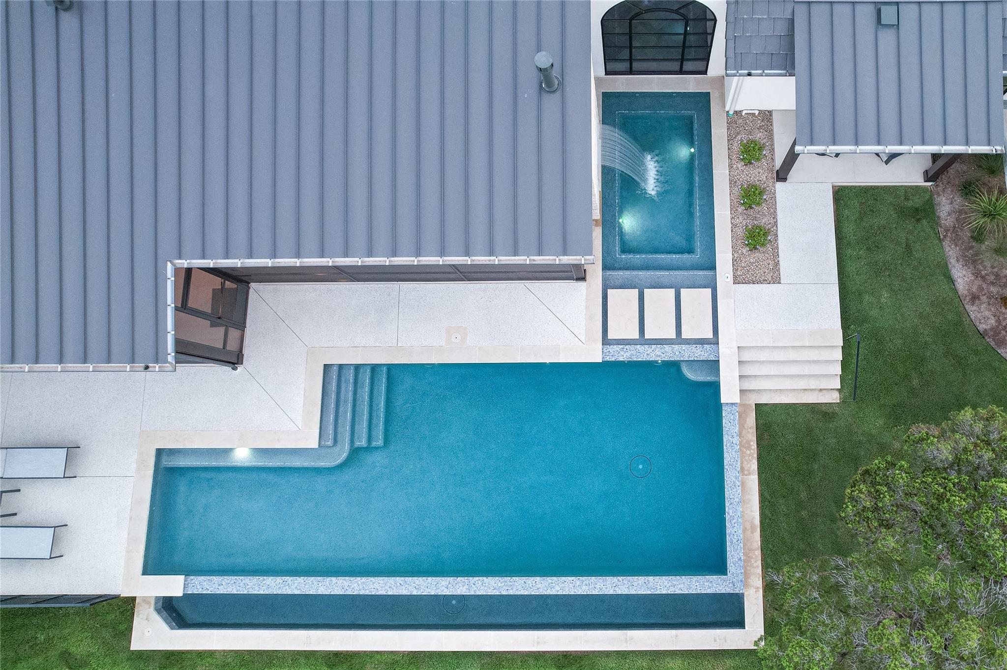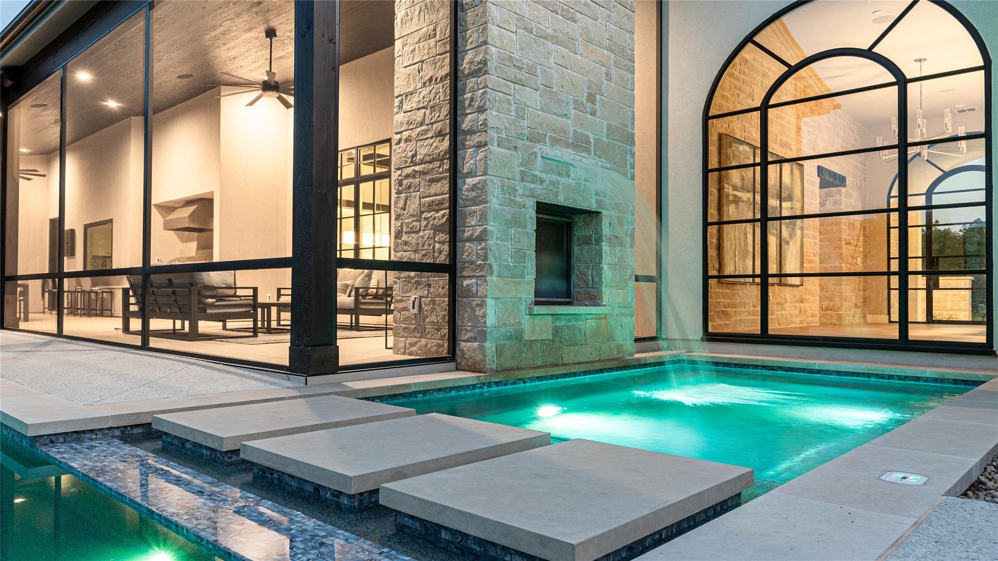 Nestled in the back of Madrone Canyon, a new luxury, gated community, Eppright Homes has designed a modern French country showpiece for you to call home. The exterior is a blend of our beautiful, native, Texas limestone and modern stucco with a pavestone driveway surrounded by a fresh, budding landscape. You and your guests will pass by a private paved courtyard with firepit and welcomed into the home through an arched custom steel door and grand entry showcasing views of the spa fireplace waterfall. Designed to utilize the .83 acre lot and maximize the outdoor space, this home features a large screened in outdoor entertaining space as well as a massive luxurious negative edge pool and spa. There are many fabulous custom features added to this elegant, luxury home, including flip out window from bar to patio, wrapping station, craft room, mudroom with lockers and a large shoe closet, ensuite walk in closets plus linen closets in all bedrooms, hardwood and tile throughout home, large holiday storage closet, white oak reeded dining buffet, fireplace in master bathroom, wired custom shades with sheer and blackout option in bedrooms, custom Control4 AV, 2 W/Ds, luxury SKS appliances, 4 ovens, 5ft work sink, 2 dishwashers, butler's pantry with second refrigerator, RO, cooktop with gas, induction and sous vide, oversized extra tall 4 car garage with EV chargers, 2 offices, one with hidden door. This home has it all for ease of living and entertaining! Note: master drapes and garage refrigerator excluded from sale. Listing agent is builder, owner and occupant. Completed March 2023. Call/text agent for gate code.