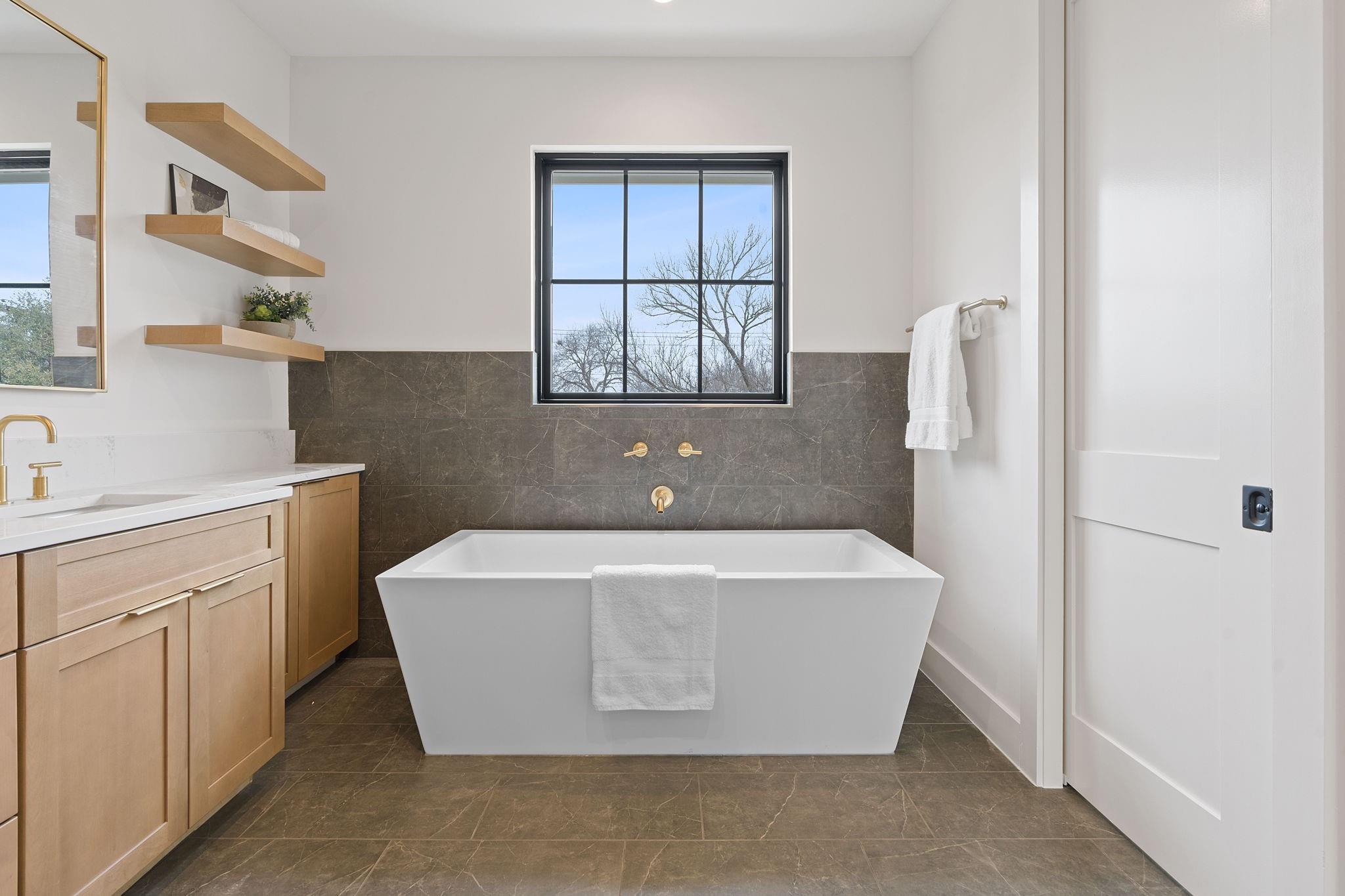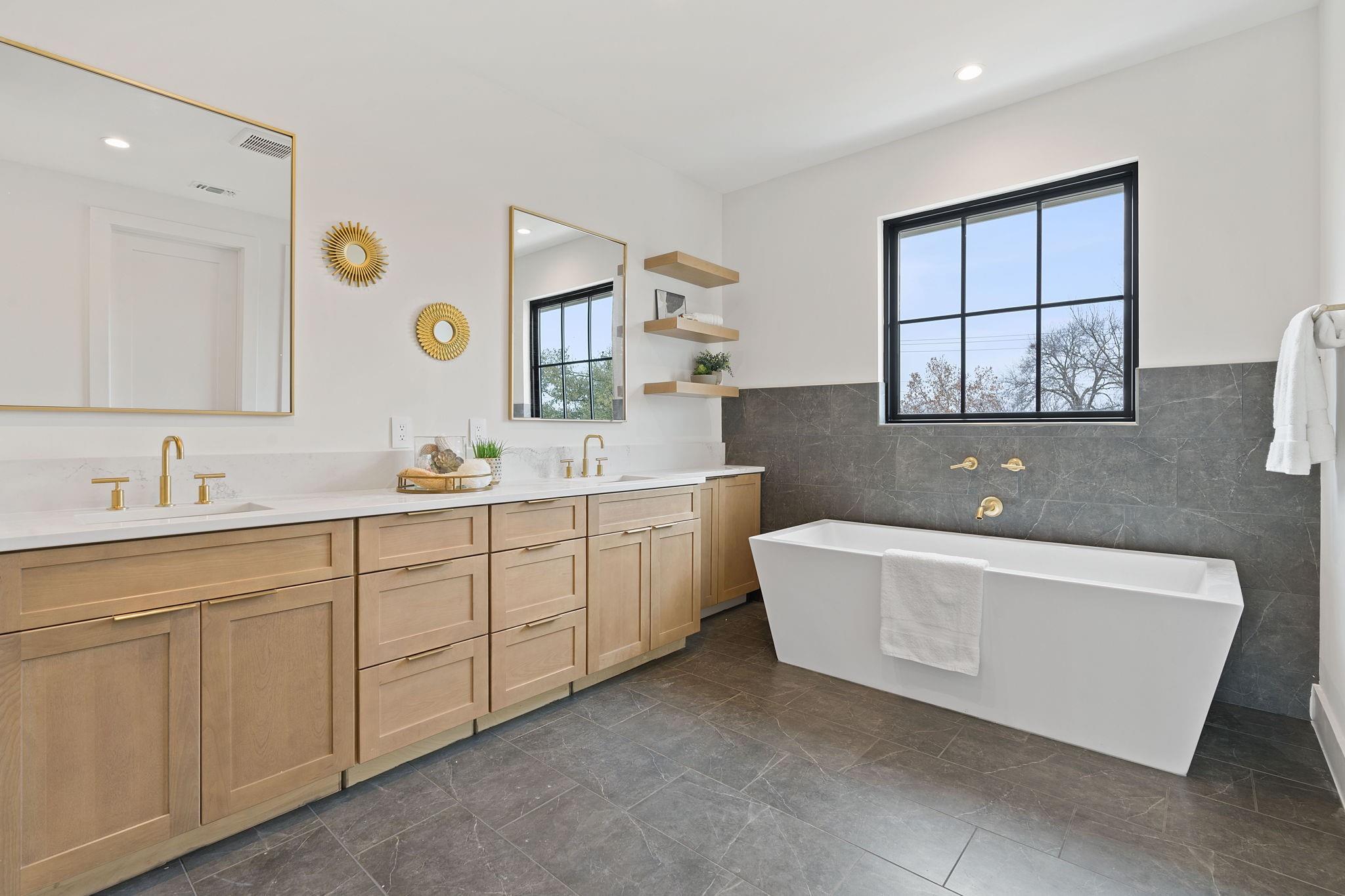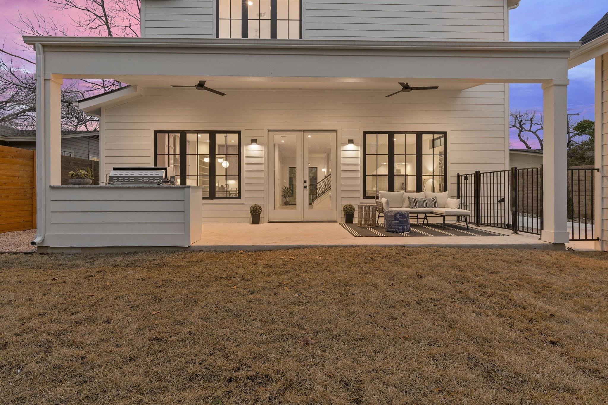 New Build in the heart of CRESTVIEW! This 4 bedroom | 3.5 bath modern farmhouse also includes a flex/office for plenty of room. Just under 2,800 sq ft of tailored design selections with bold tile, modern fixtures, engineered hardwood floors, quartz countertops, and stainless steel appliances. Overlooking the living (complete with built-in bar), dining, and outdoor living spaces, the kitchen provides the perfect place to prep while entertaining. The second floor, hosts the primary en suite with large soaking tub, spacious walk-in shower and dual vanities. Also on the second floor, a large laundry room, 2 more bedrooms and another full bath with dual vanity. Relax in the backyard and enjoy the built-in outdoor kitchen and generous covered patio. Mission Homes has been building homes in Austin since 2019 and uses the most energy efficient approaches, including spray foam insulation and zip panels for the exterior.