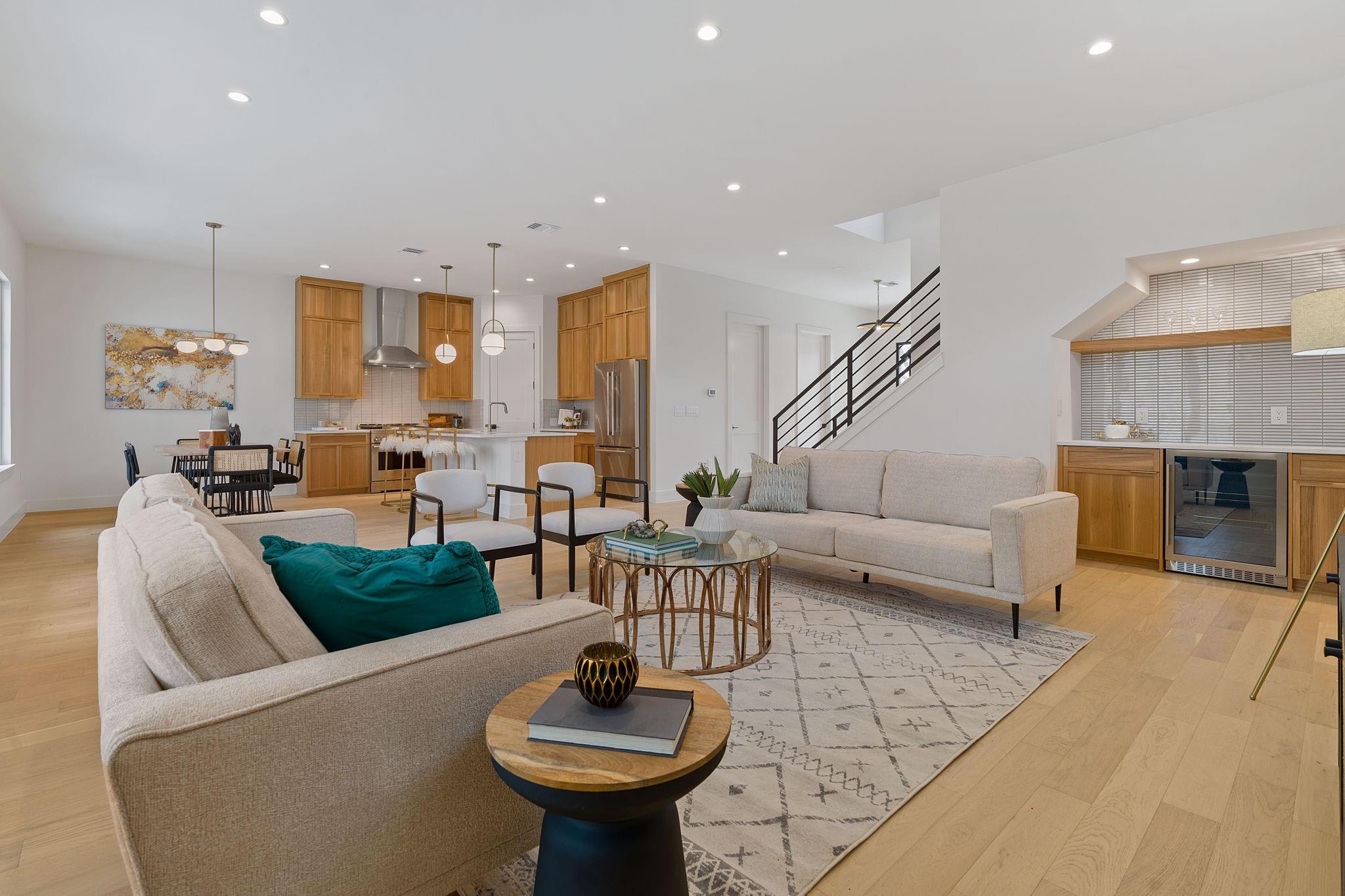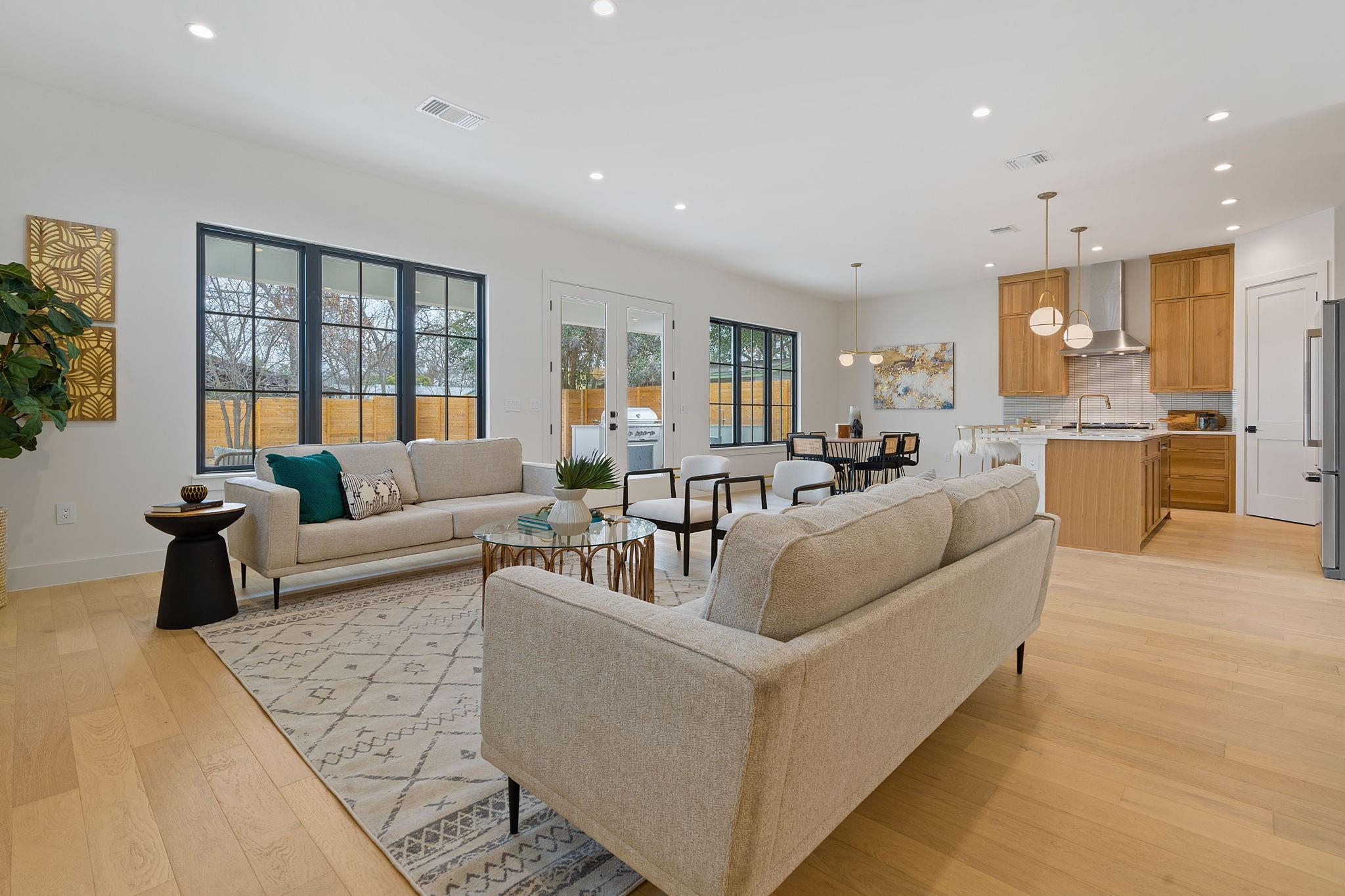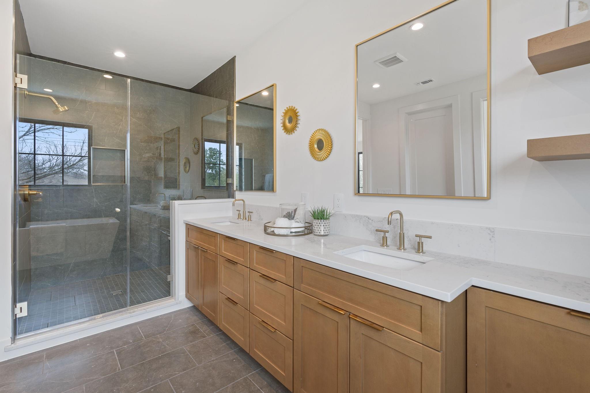 New Build in the heart of CRESTVIEW! This 4 bedroom | 3.5 bath modern farmhouse also includes a flex/office for plenty of room. Just under 2,800 sq ft of tailored design selections with bold tile, modern fixtures, engineered hardwood floors, quartz countertops, and stainless steel appliances. Overlooking the living (complete with built-in bar), dining, and outdoor living spaces, the kitchen provides the perfect place to prep while entertaining. The second floor, hosts the primary en suite with large soaking tub, spacious walk-in shower and dual vanities. Also on the second floor, a large laundry room, 2 more bedrooms and another full bath with dual vanity. Relax in the backyard and enjoy the built-in outdoor kitchen and generous covered patio. Mission Homes has been building homes in Austin since 2019 and uses the most energy efficient approaches, including spray foam insulation and zip panels for the exterior.