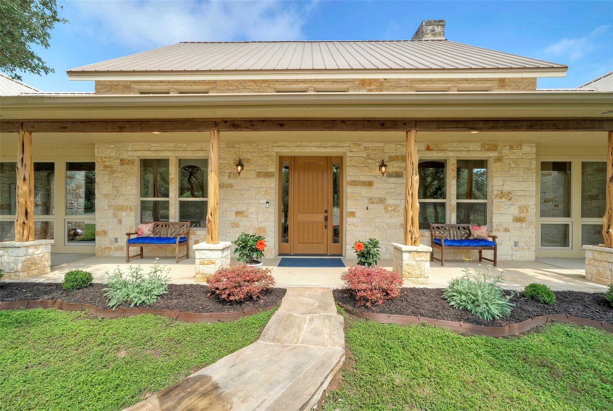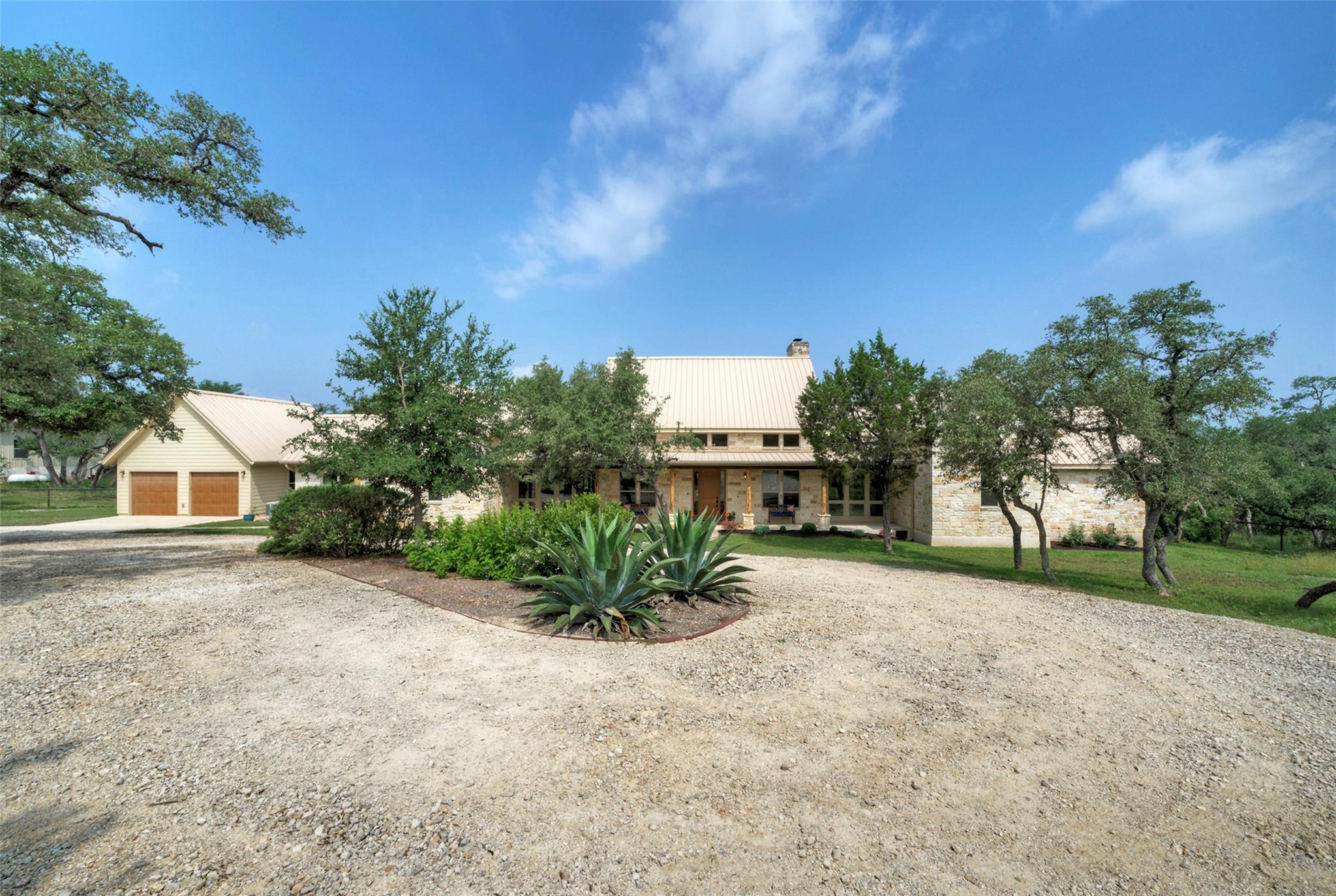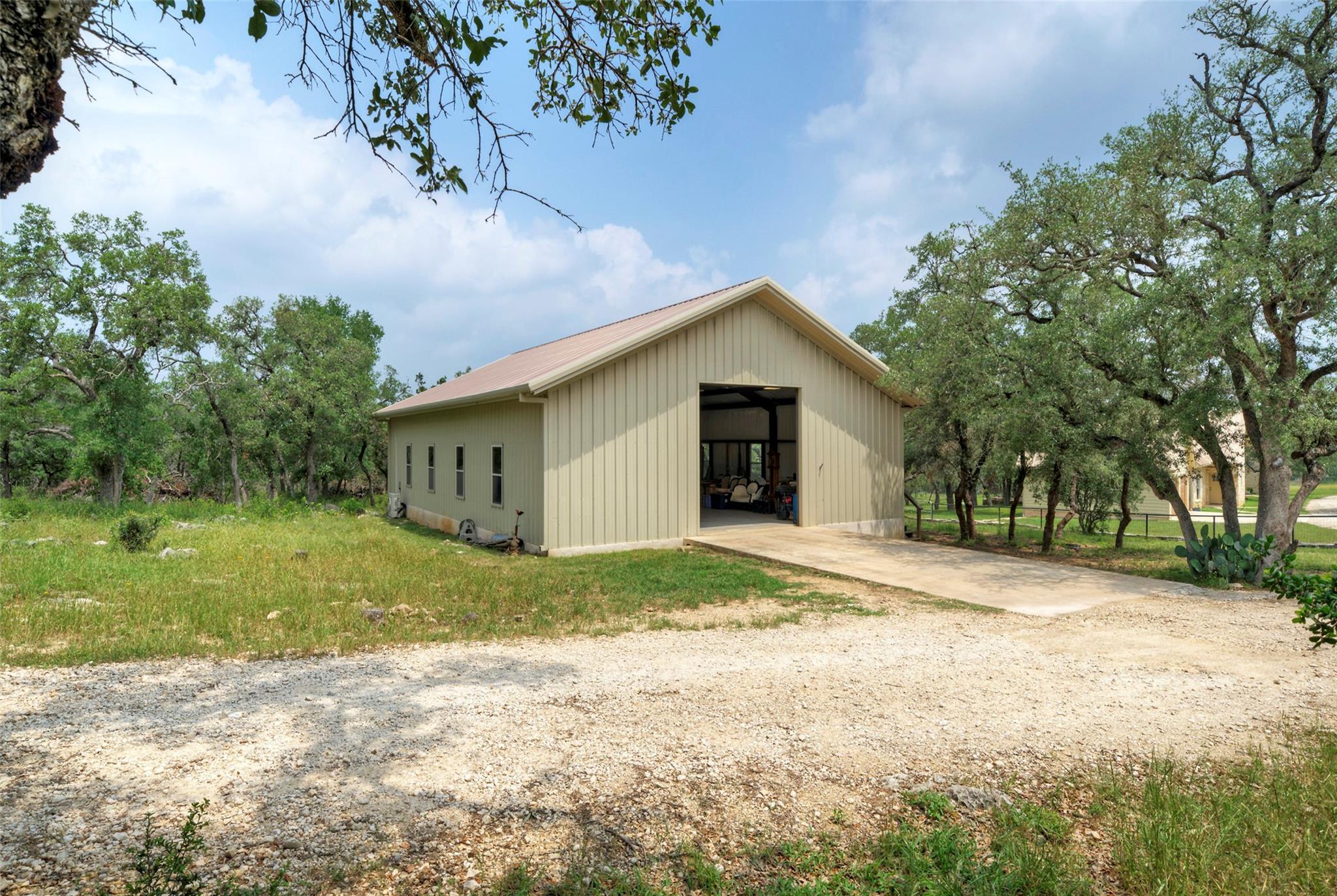 Nestled within the picturesque Bridlewood community lies this 24-acre gated sanctuary that beckons those in search of tranquility, privacy, & country living. Yet, it's a mere 10-min. drive away from both Wimberley Square & San Marcos/I-35. This property offers an agricultural exemption with freely roaming cattle. Homeowners may also choose to opt for a wildlife exemption by fencing the property to embrace nature in its purest form. As you step inside the beautifully maintained 3,322 sqft single-story home, a sense of superior craftsmanship immediately envelops you. Designed by Charles Roccaforte's Hill Country Plans & constructed by Briggs Construction Co., every corner is a testament to meticulous design. Hickory floors lead the way, guiding you through spaces adorned with 18+ ft ceilings & thoughtfully selected sink & light fixtures. The primary bedroom is a sanctuary in itself, boasting a cozy sitting room, his & her closets, & direct access to the expansive back patio. Stepping onto the patio, you're greeted by sprawling views of wooded acreage & majestic oak trees. Beyond the home, a well-appointed toy/equipment barn stands tall at 40'x60' and includes a 38'x12.8' air-conditioned space. It's perfect for storage, creative pursuits, or simply a refuge from the Texas heat. What truly sets this estate apart is its location. A mere 45-min. drive takes you to both Austin & San Antonio, giving you easy access to all the amenities of city life while ensuring you can return to your countryside haven at day's end. The location offers school choice, with both Wimberley ISD & San Marcos ISD options available. Plus, the esteemed San Marcos Academy, a renowned preparatory school, is just min. away. Priced to sell at $1.998 million, this estate is a testament to attention to detail, high-end features, & an incredible location. It's your invitation to embrace the beauty of Texas Hill Country living while keeping the conveniences of the city within easy reach.