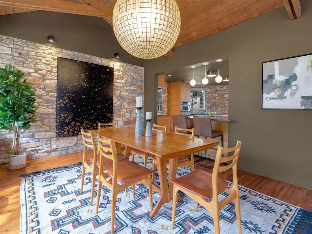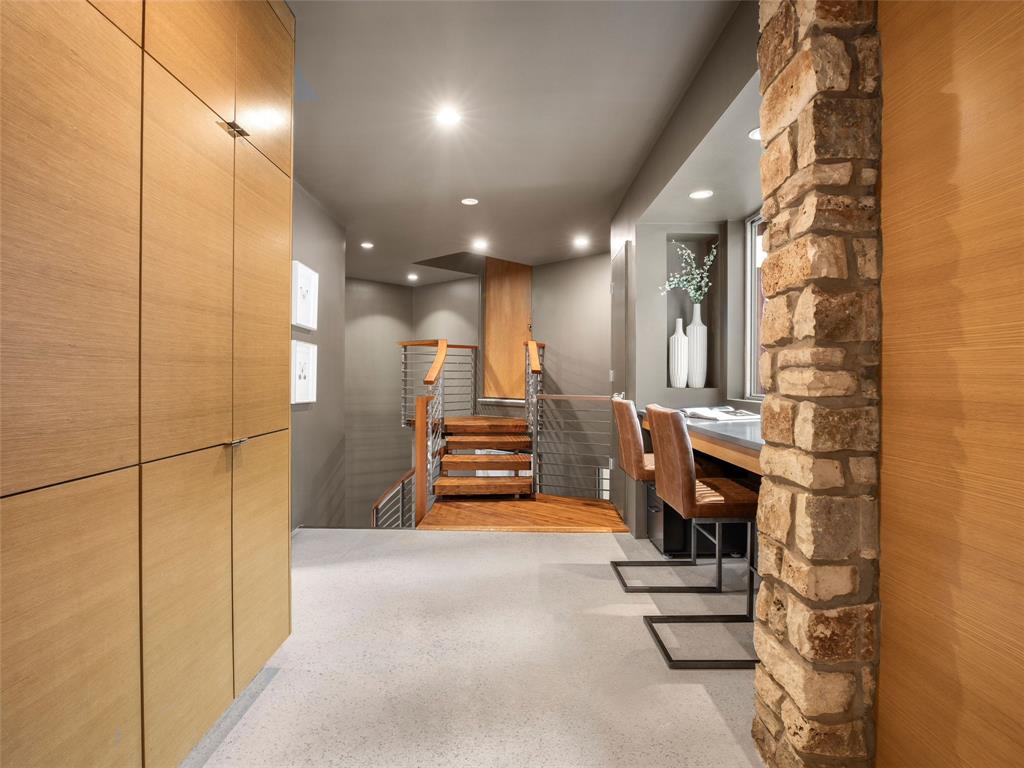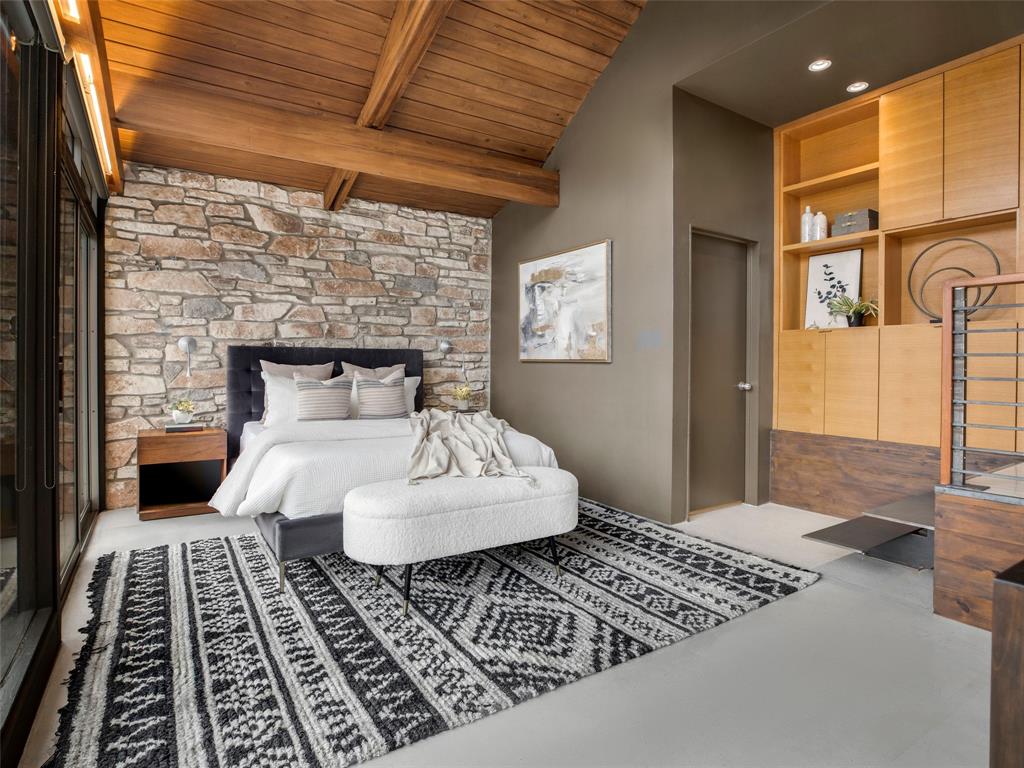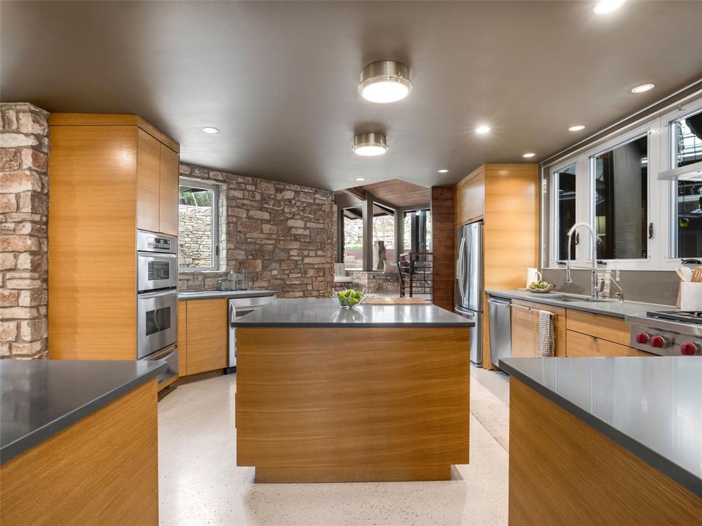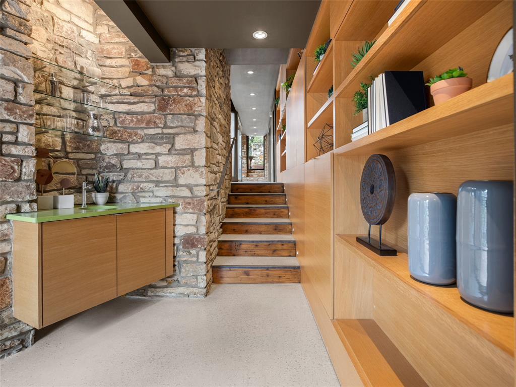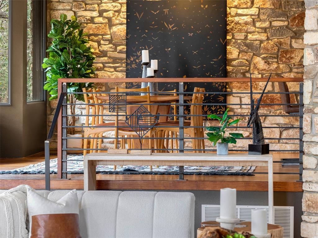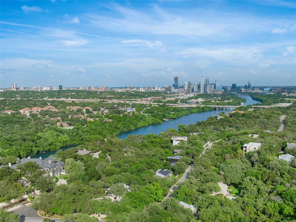 Stratford Hills Tree House: Inspired by its surroundings, this architectural gem was designed to blend seamlessly into nature in one of Austin's most beloved neighborhoods, on a lush .65 acres. The gorgeous living area is the heart of the home, with an amazing stone fireplace at the focal point reaching the soaring wood-beamed ceilings with peek-a-boo skylights - all surrounded by walls of glass overlooking the surrounding beauty of nature. Wood, stone, and glass are a thoughtful theme throughout the property, maximizing the views, and providing rich texture and detailing. Among the various outdoor spaces, an interior courtyard makes for a lovely place to meditate, and adds a nice focal point from the interior of the home. The primary suite is privately situated and offers stunning floor-to-ceiling windows with an unforgettable primary bath and direct patio access - the perfect getaway. This home features four bedrooms, three full bathrooms, and two half bathrooms, including a guest suite on the lower level of the home with a private entrance, full bath and separate laundry. Located in a centrally located part of town with incredible access to Downtown Austin (less than 3 miles away), and within a few blocks to Zilker Park.