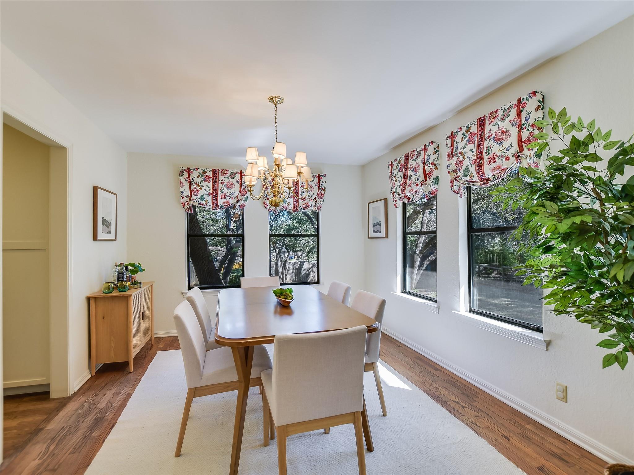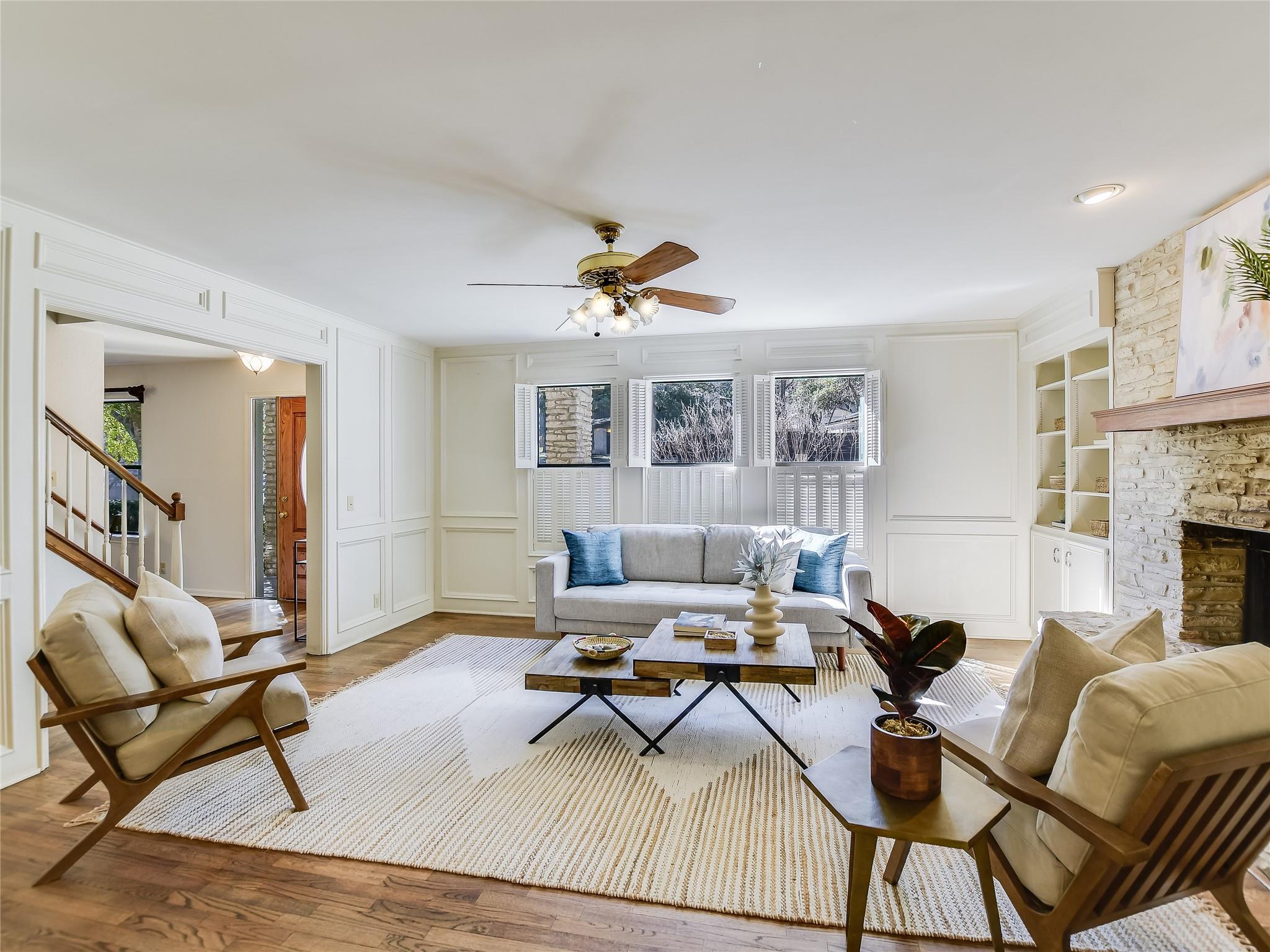 Such a welcoming home ready for the next lucky owners! Beautiful hardwood floors on entire main level. Updated kitchen with stainless steel appliances (double ovens perfect for gatherings!), granite counters, & pull-out drawers open to family room with rustic stone fireplace and amazing natural light (true for the entire house!). Awesome game room up surrounded by 3 spacious bedrooms & upstairs deck. Primary bedroom also filled with light, two closets, updated bath with double vanities and walk-in shower. Incredible backyard with double decks (one covered), great trees and plenty of room for kids or pets. Walking distance to elementary & middle schools as well as Las Palomas!