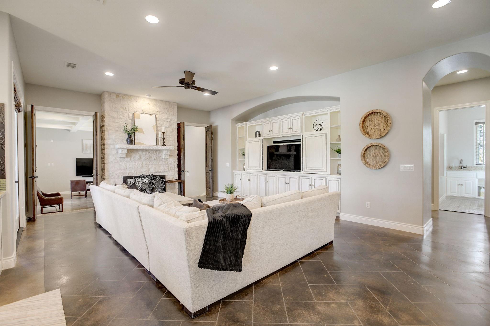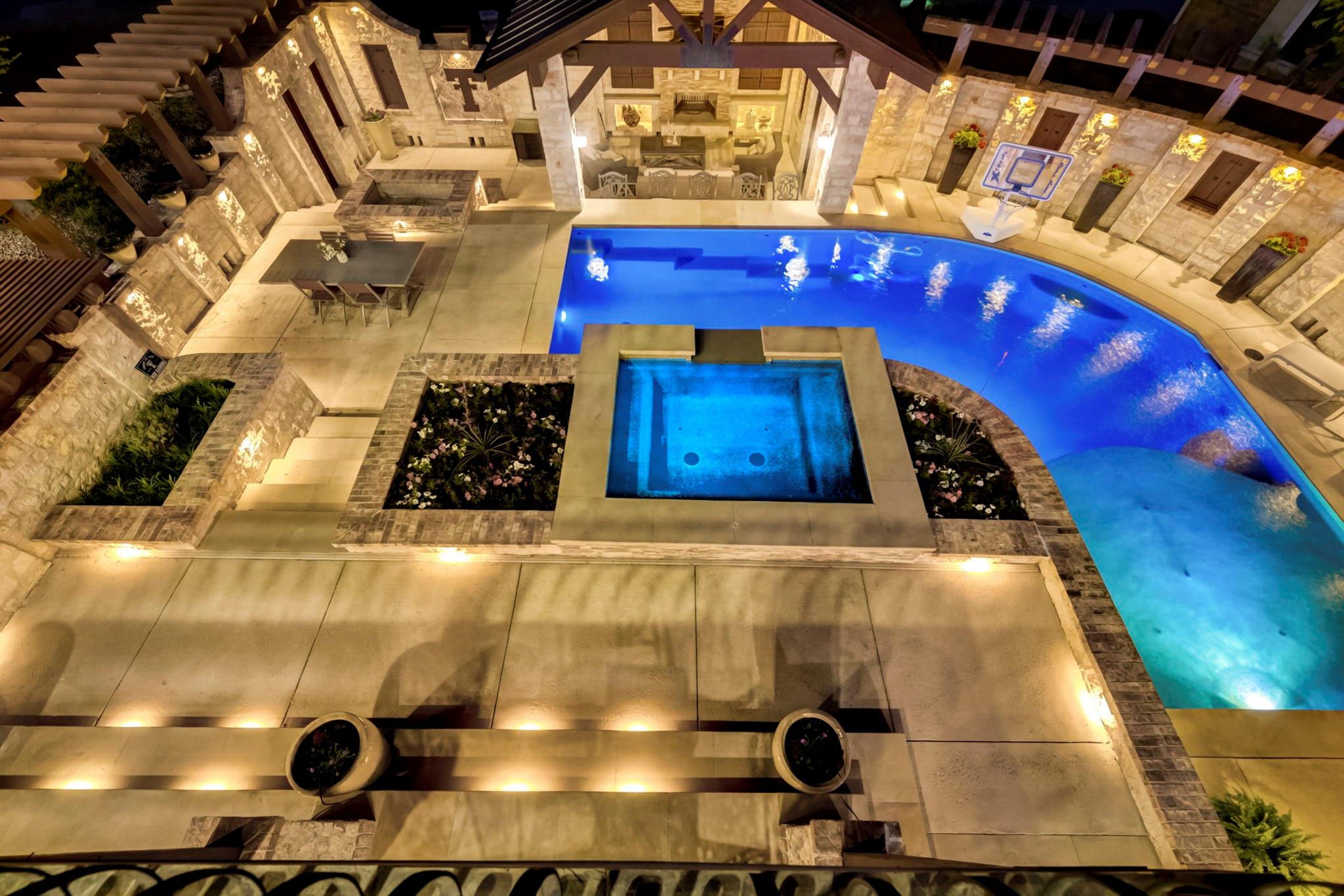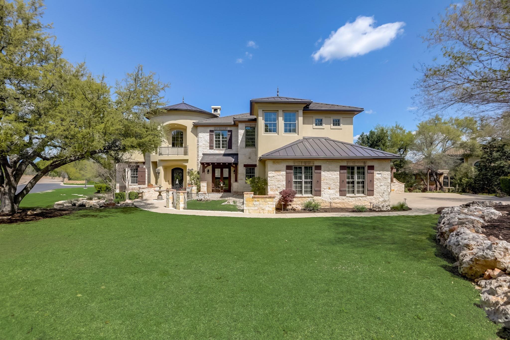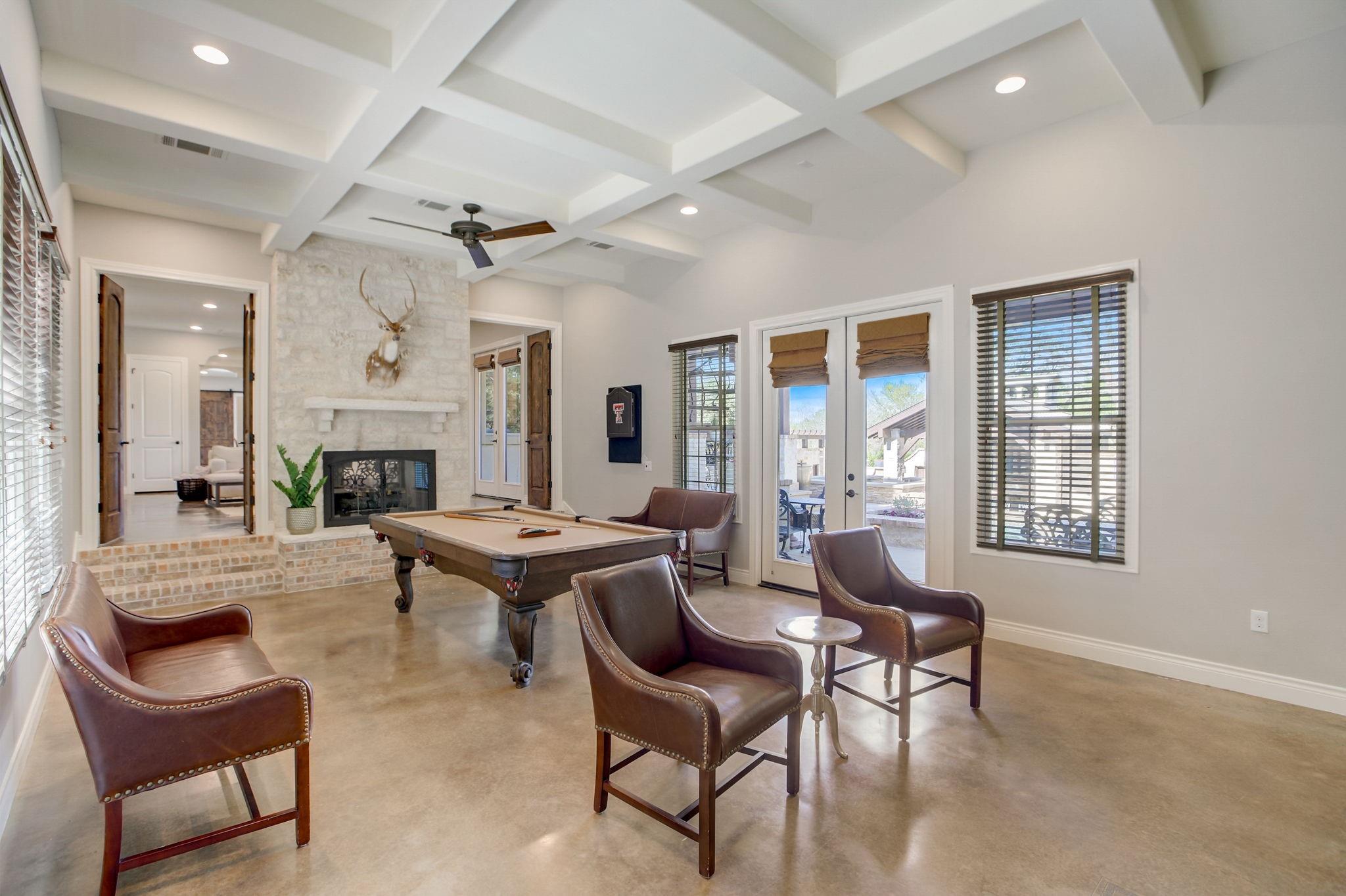 Nestled within a prestigious golf course community, this luxurious two-story home epitomizes refined living at its finest. Stepping through the grand iron door, you're greeted by a world of opulence illuminated by natural light pouring through expansive windows. The gourmet kitchen, a chef's dream with top-of-the-line appliances and custom cabinetry, beckons culinary indulgence. Elegant formal dining awaits in the adjacent dining room, perfect for hosting unforgettable gatherings. Upstairs, plush bedrooms offer serene retreats, each designed with comfort and style in mind, they boast ample space, plush carpeting, and large windows framing scenic views of the surrounding landscape. These bedrooms provide cozy sanctuaries for rest and relaxation, with thoughtfully appointed details ensuring every resident's comfort. The primary bedroom suite is a sanctuary unto itself, featuring a spacious sitting room, private balcony overlooking the serene surroundings, and a convenient coffee bar area for morning indulgences. Additional flex rooms cater to various needs, from a sophisticated billiards room to versatile spaces adaptable to your lifestyle. Outside, the meticulously landscaped outdoor living space features a resort-style pool, cascading waterfalls, and an inviting outdoor kitchen, creating a private oasis for relaxation and entertainment. With its exquisite detailing, panoramic views, and unparalleled amenities, this residence stands as a beacon of sophistication and comfort in an idyllic setting.
