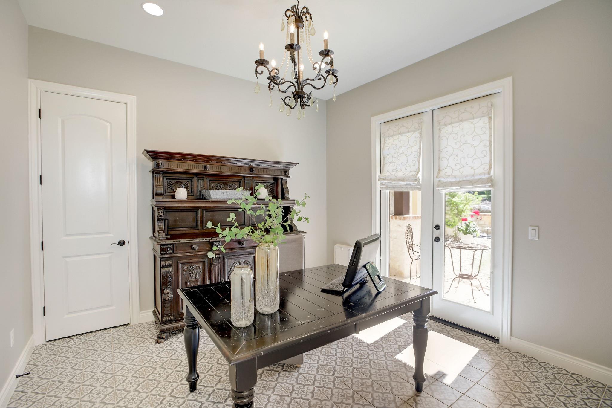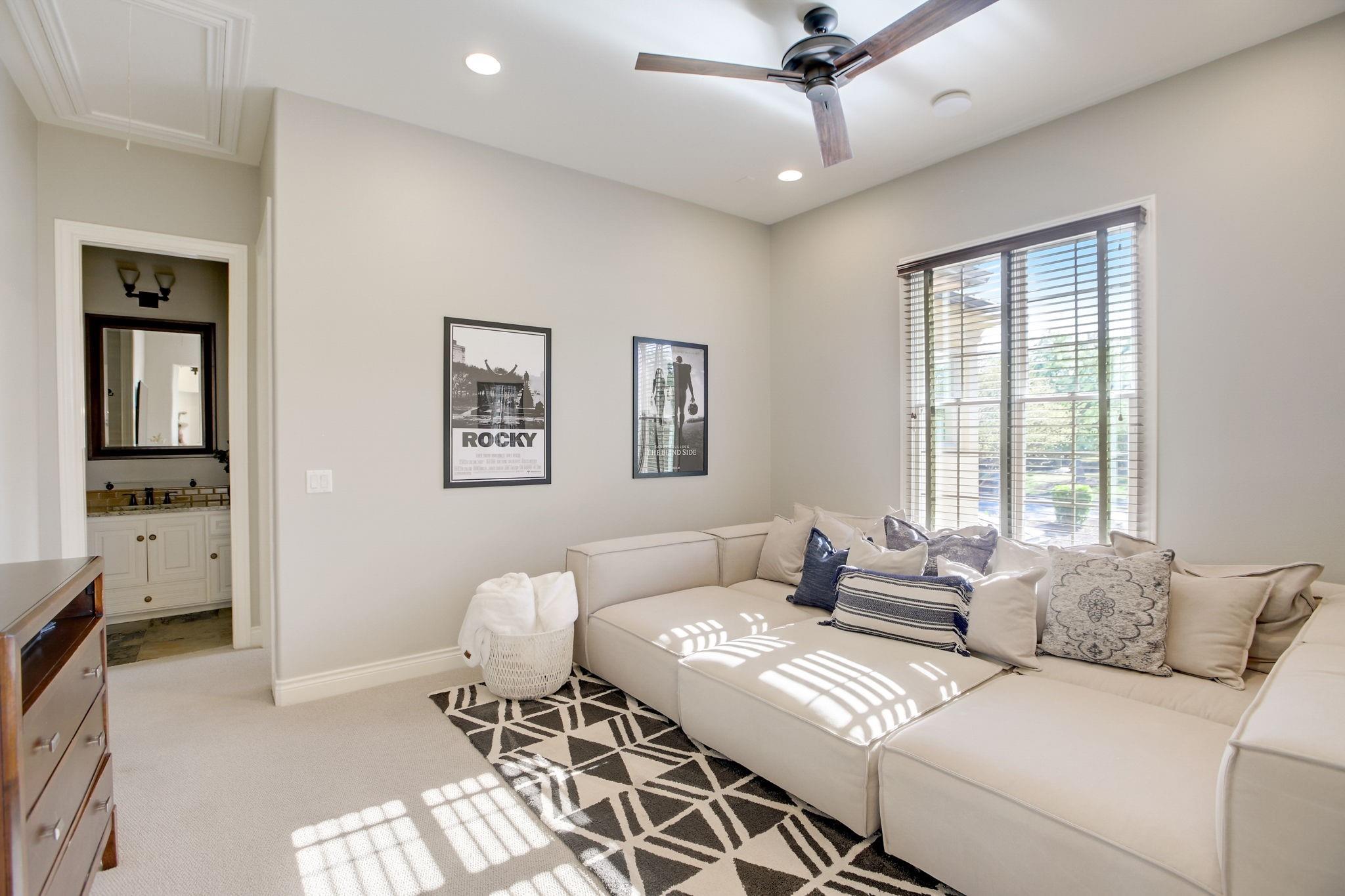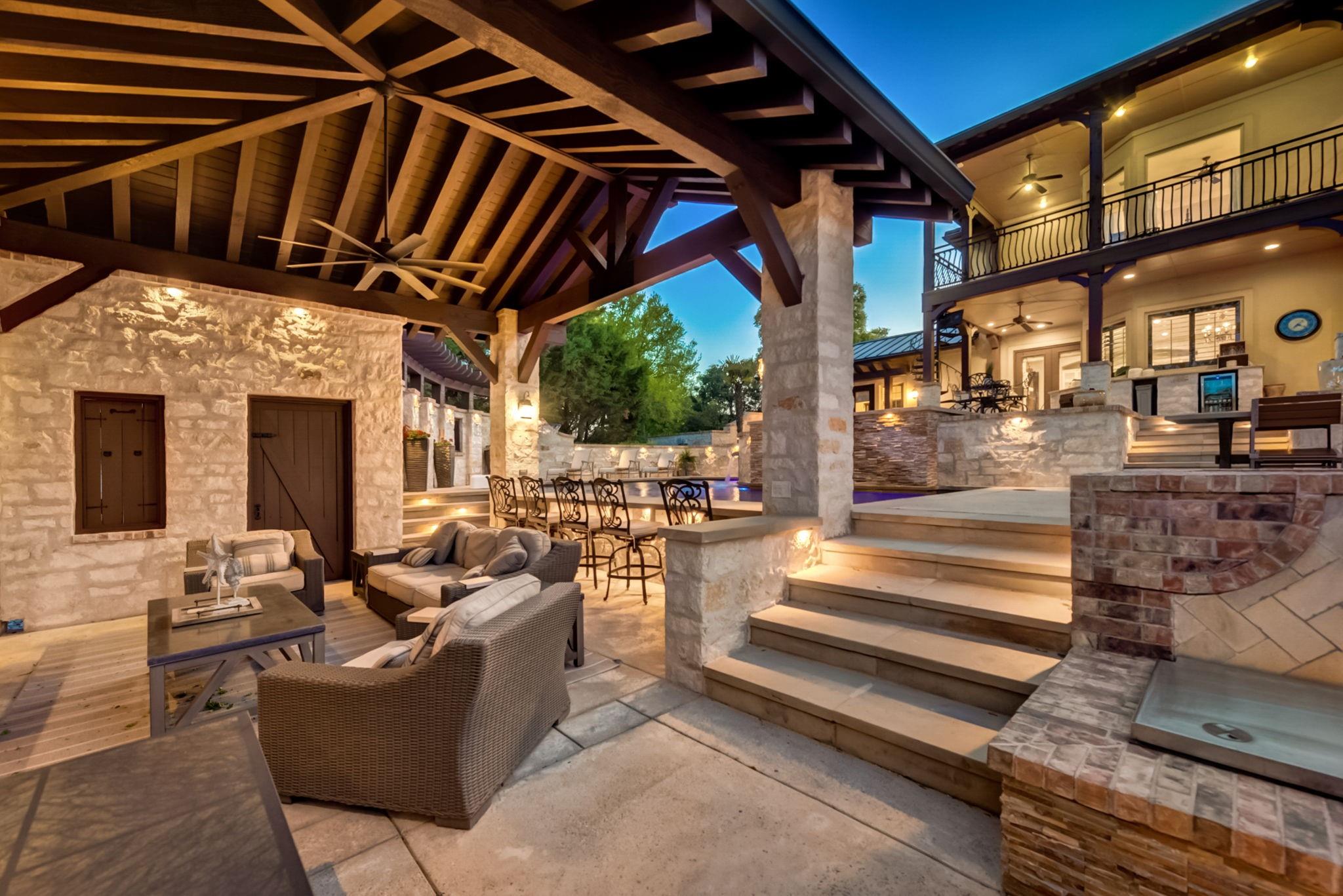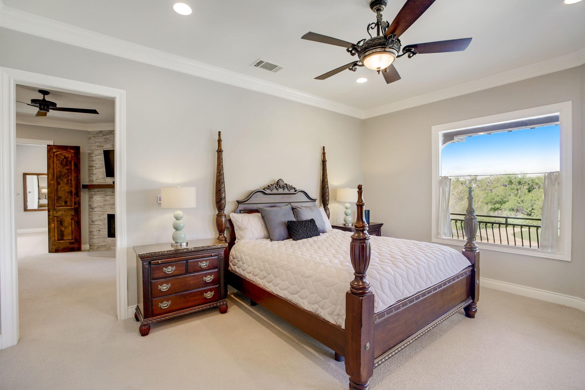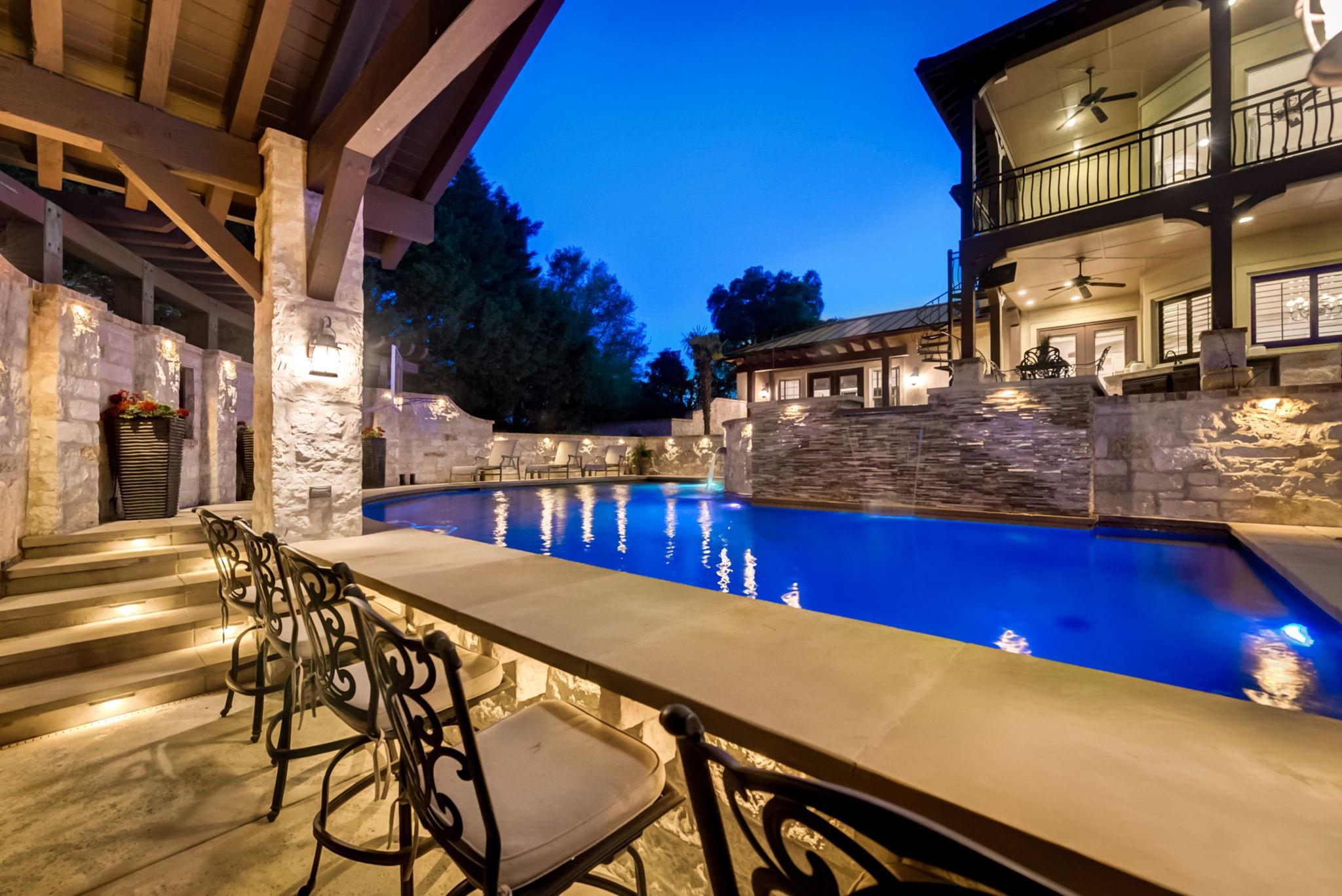 Nestled within a prestigious golf course community, this luxurious two-story home epitomizes refined living at its finest. Stepping through the grand iron door, you're greeted by a world of opulence illuminated by natural light pouring through expansive windows. The gourmet kitchen, a chef's dream with top-of-the-line appliances and custom cabinetry, beckons culinary indulgence. Elegant formal dining awaits in the adjacent dining room, perfect for hosting unforgettable gatherings. Upstairs, plush bedrooms offer serene retreats, each designed with comfort and style in mind, they boast ample space, plush carpeting, and large windows framing scenic views of the surrounding landscape. These bedrooms provide cozy sanctuaries for rest and relaxation, with thoughtfully appointed details ensuring every resident's comfort. The primary bedroom suite is a sanctuary unto itself, featuring a spacious sitting room, private balcony overlooking the serene surroundings, and a convenient coffee bar area for morning indulgences. Additional flex rooms cater to various needs, from a sophisticated billiards room to versatile spaces adaptable to your lifestyle. Outside, the meticulously landscaped outdoor living space features a resort-style pool, cascading waterfalls, and an inviting outdoor kitchen, creating a private oasis for relaxation and entertainment. With its exquisite detailing, panoramic views, and unparalleled amenities, this residence stands as a beacon of sophistication and comfort in an idyllic setting.