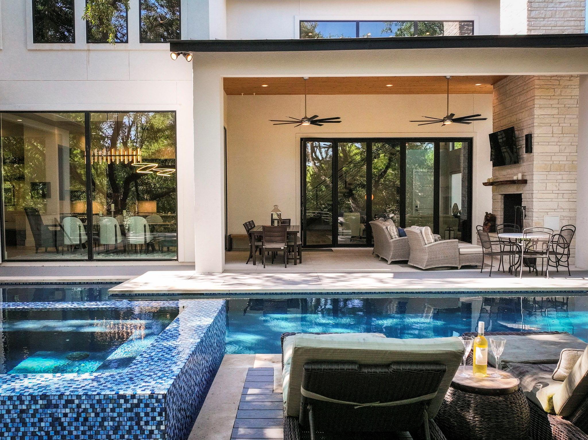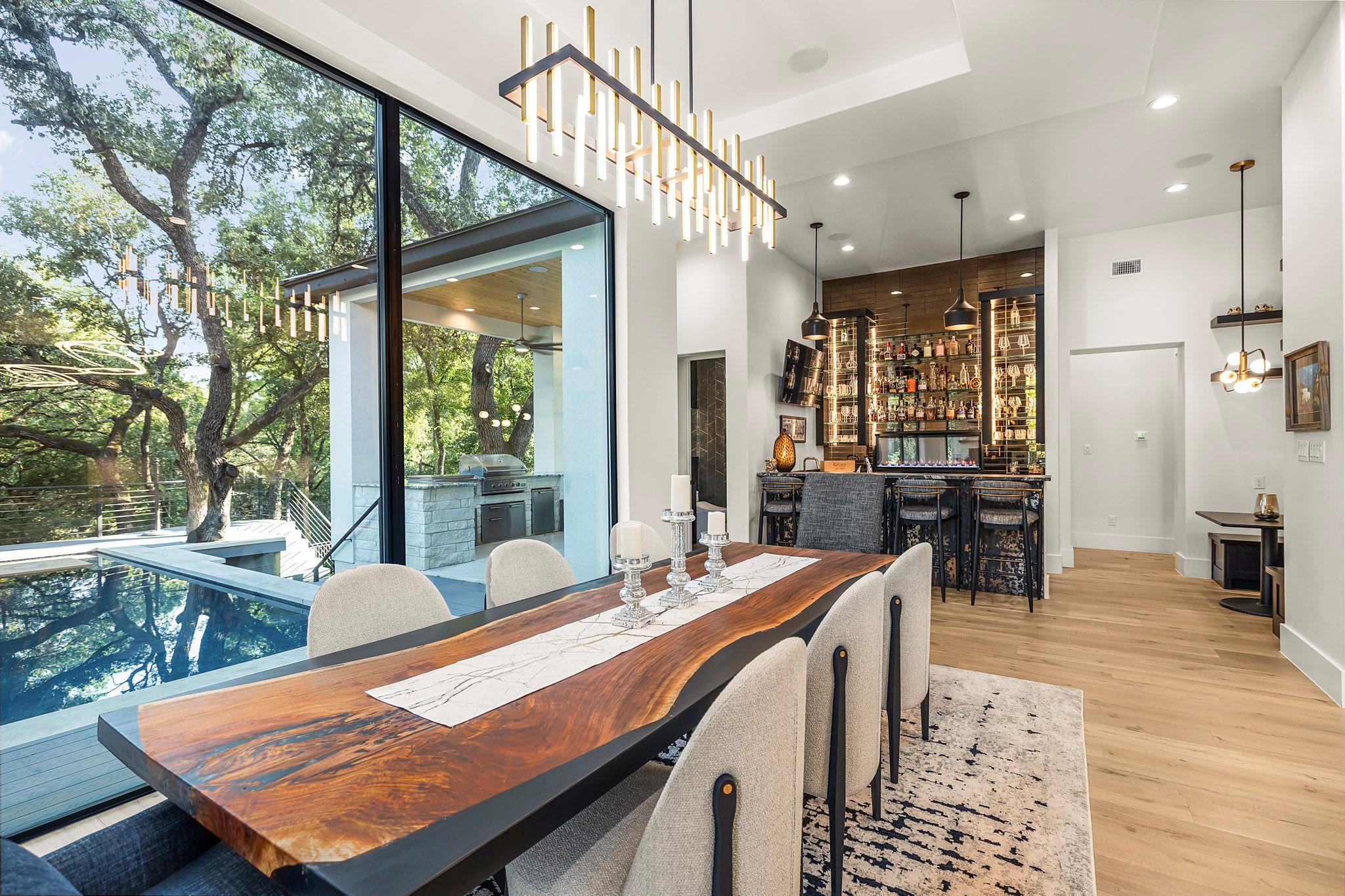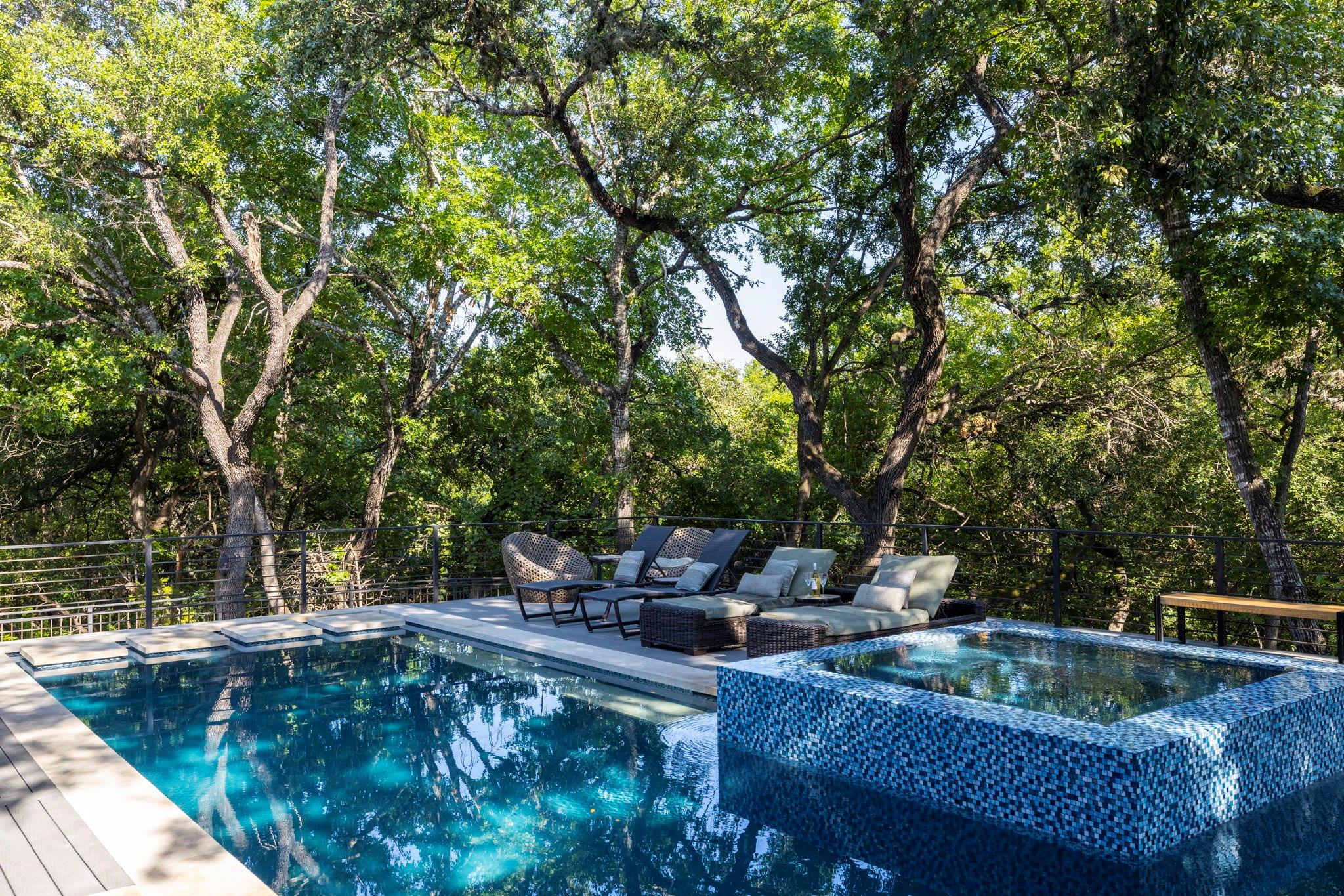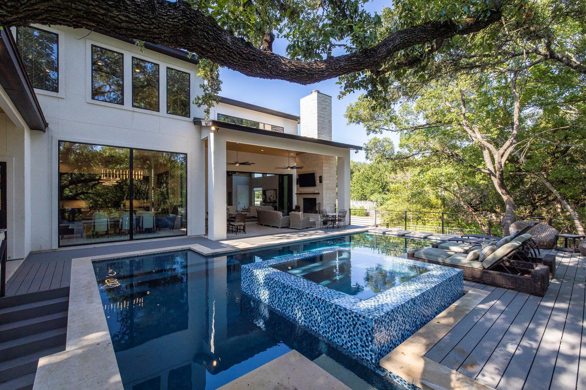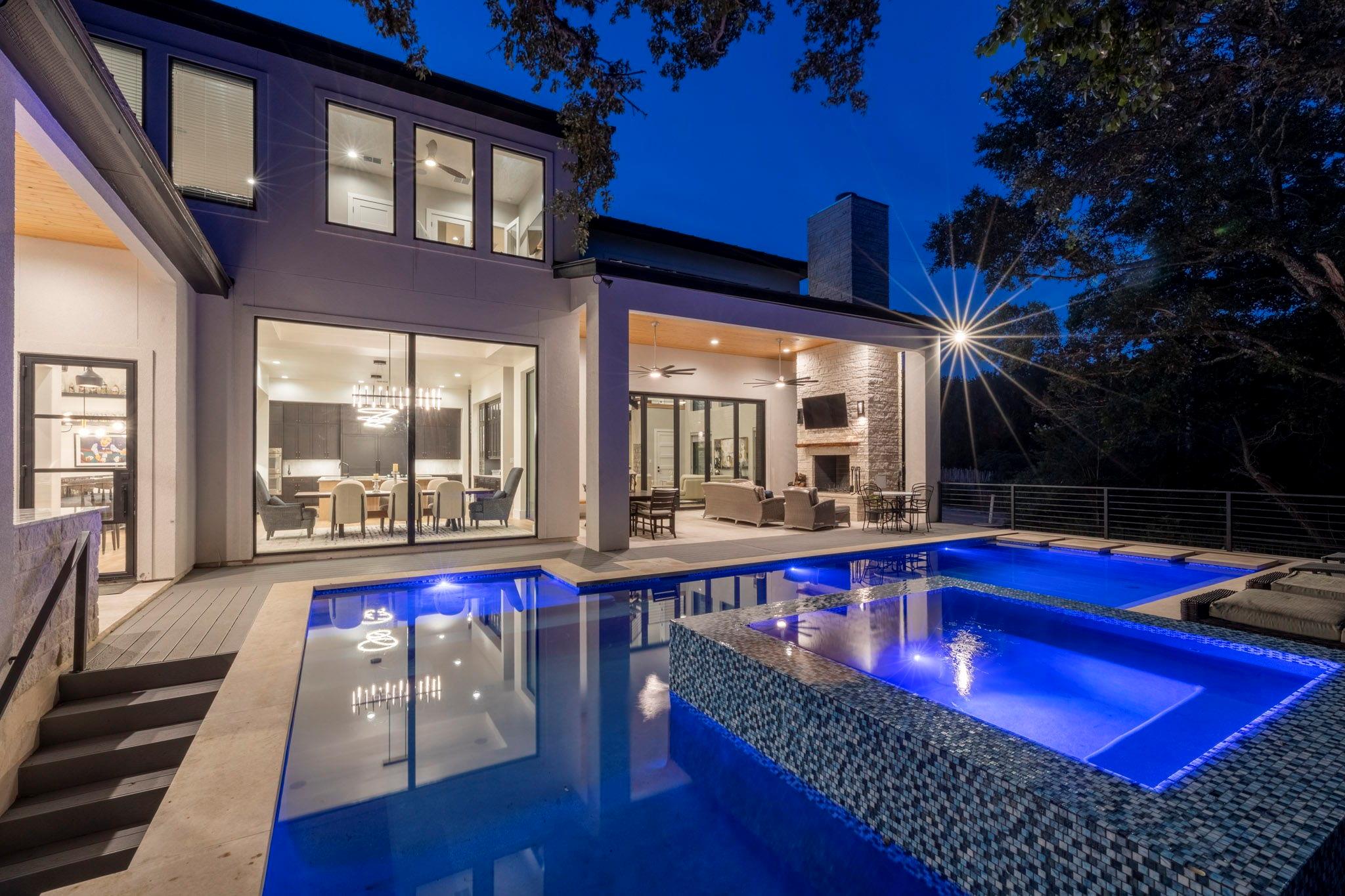 This stunning home, located in a boutique community near Gruene is a clean modern design with exquisite hill country flare. Home of local builder with top-of-the-line upgrades and a unique floor plan for ultimate desired living conditions. Opens to soaring tall open space with windows floor to ceiling. Magnificent lighting fixtures throughout and a staircase that accents the entire home. Living area over looks outdoor oasis with pool, outdoor living, and dining area. Remarkable kitchen with banquet island, custom cabinetry, butler pantry, Thermador appliances, & wine fridge/storge area. The primary/master bedroom downstair is stunning with ensuite and show stopping closet. Office/workspace, amazing theatre room, and a full bar with seating area finishes off the massive 1st floor living. Upstairs is complete with additional primary/master suite including air jet tub, full walk-in shower, huge walk-in closet with island and an attached living room. Also, a gym, office, and game room with bar area. Luxury living at its finest.