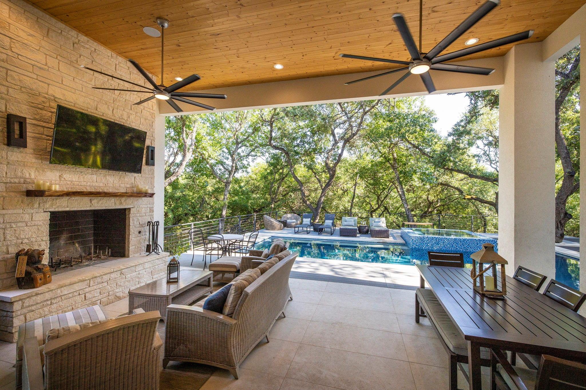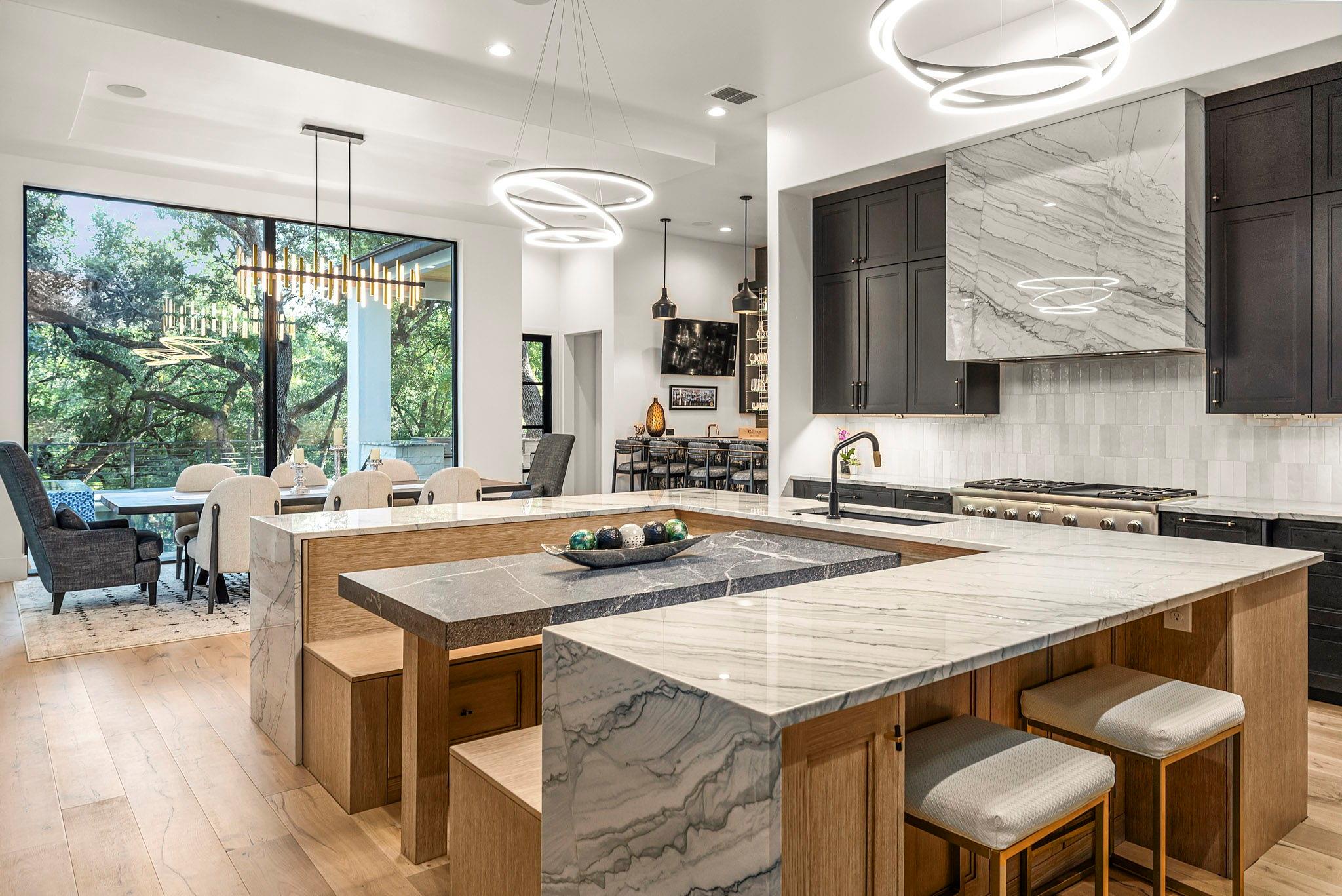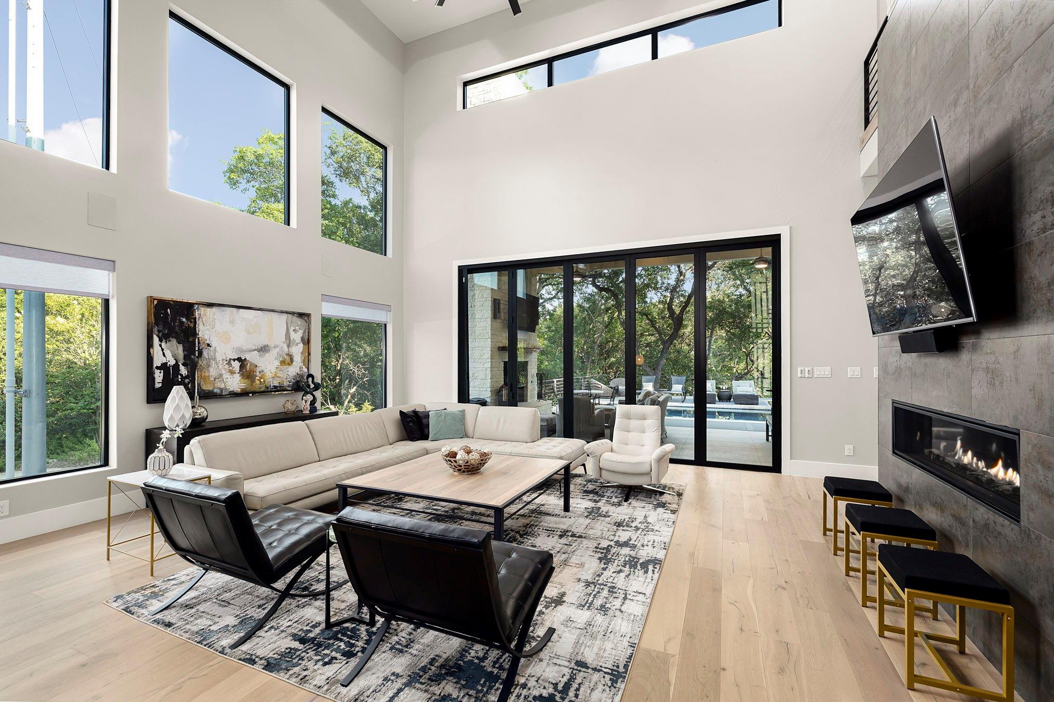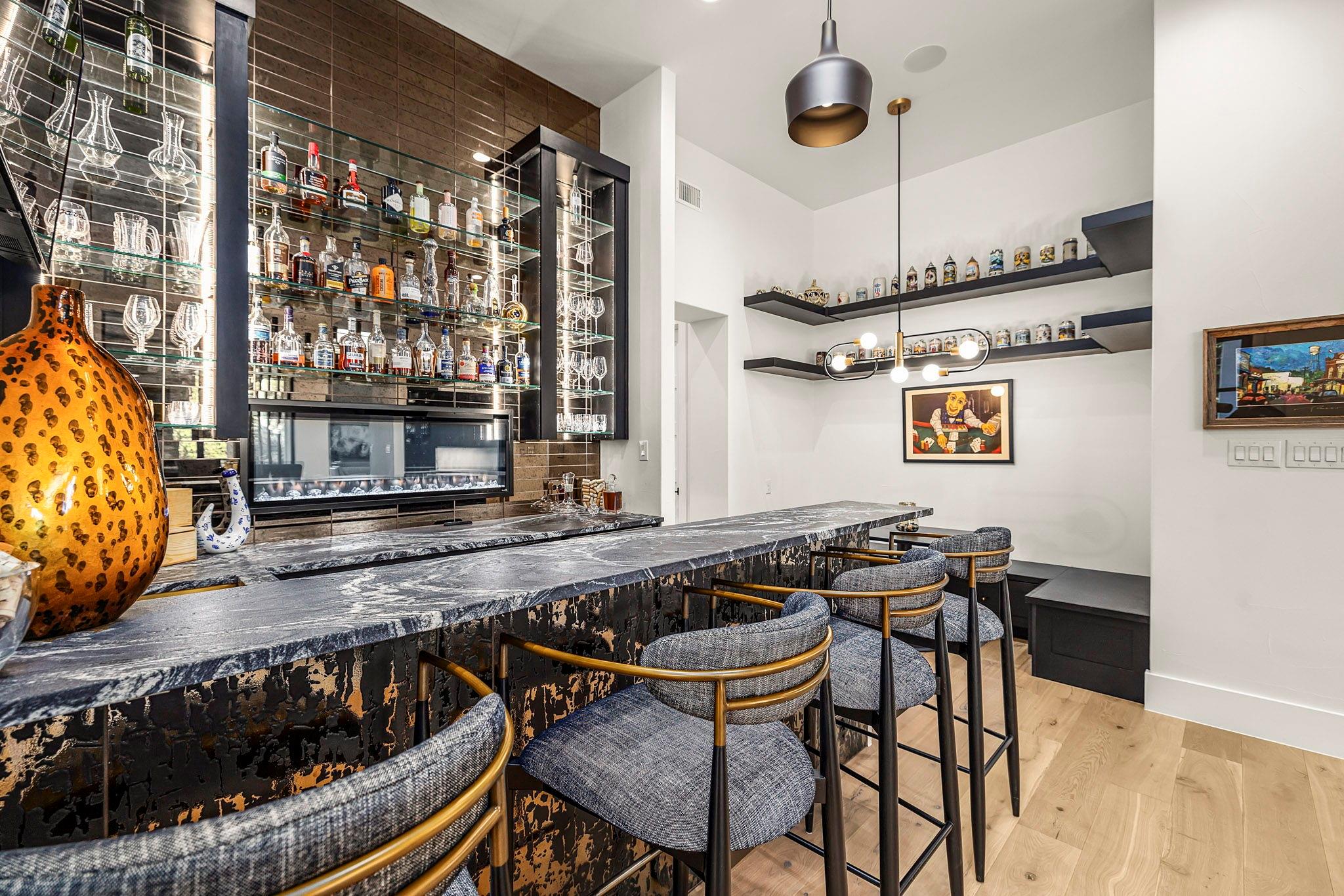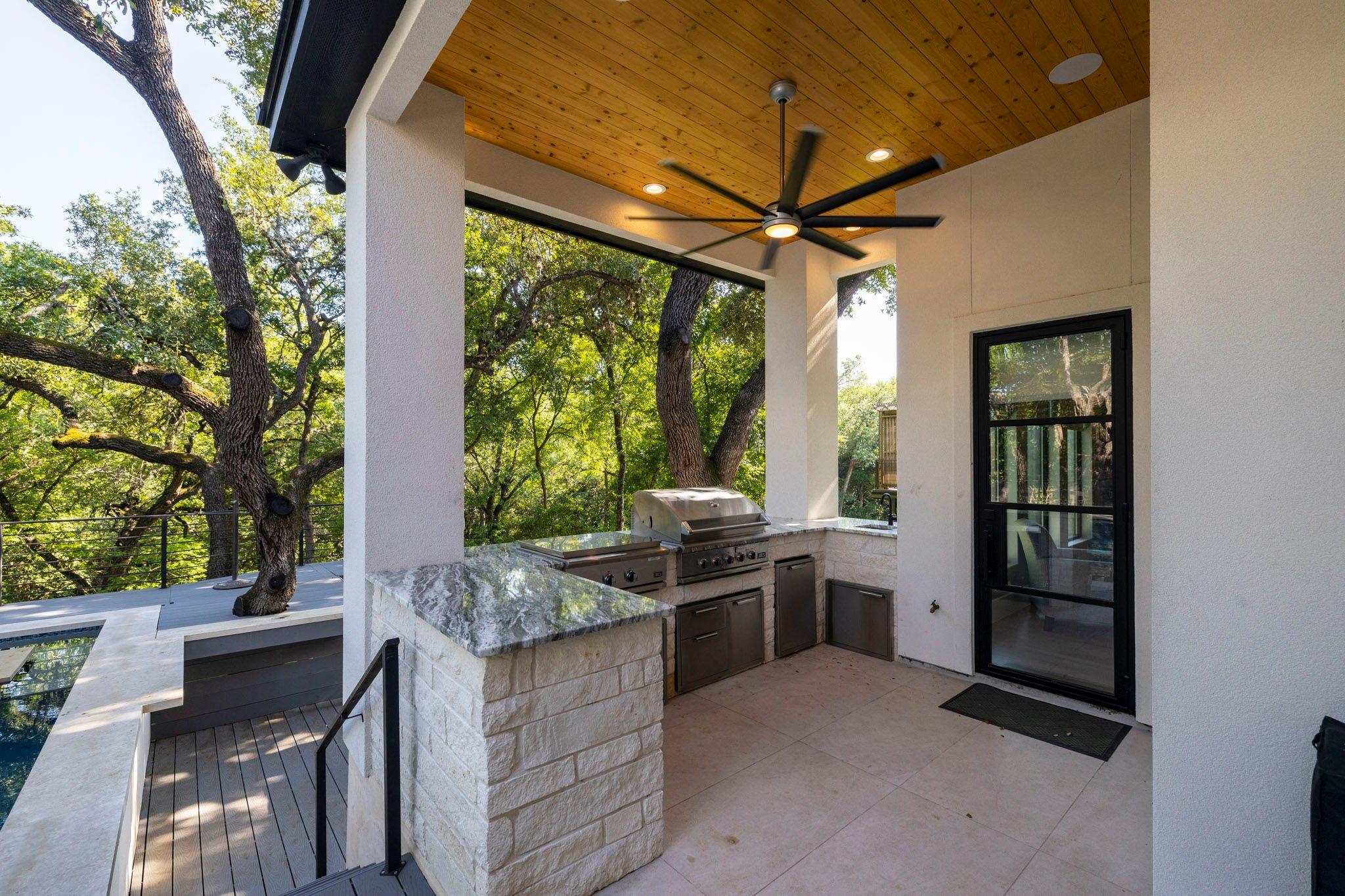 This stunning home, located in a boutique community near Gruene is a clean modern design with exquisite hill country flare. Home of local builder with top-of-the-line upgrades and a unique floor plan for ultimate desired living conditions. Opens to soaring tall open space with windows floor to ceiling. Magnificent lighting fixtures throughout and a staircase that accents the entire home. Living area over looks outdoor oasis with pool, outdoor living, and dining area. Remarkable kitchen with banquet island, custom cabinetry, butler pantry, Thermador appliances, & wine fridge/storge area. The primary/master bedroom downstair is stunning with ensuite and show stopping closet. Office/workspace, amazing theatre room, and a full bar with seating area finishes off the massive 1st floor living. Upstairs is complete with additional primary/master suite including air jet tub, full walk-in shower, huge walk-in closet with island and an attached living room. Also, a gym, office, and game room with bar area. Luxury living at its finest.